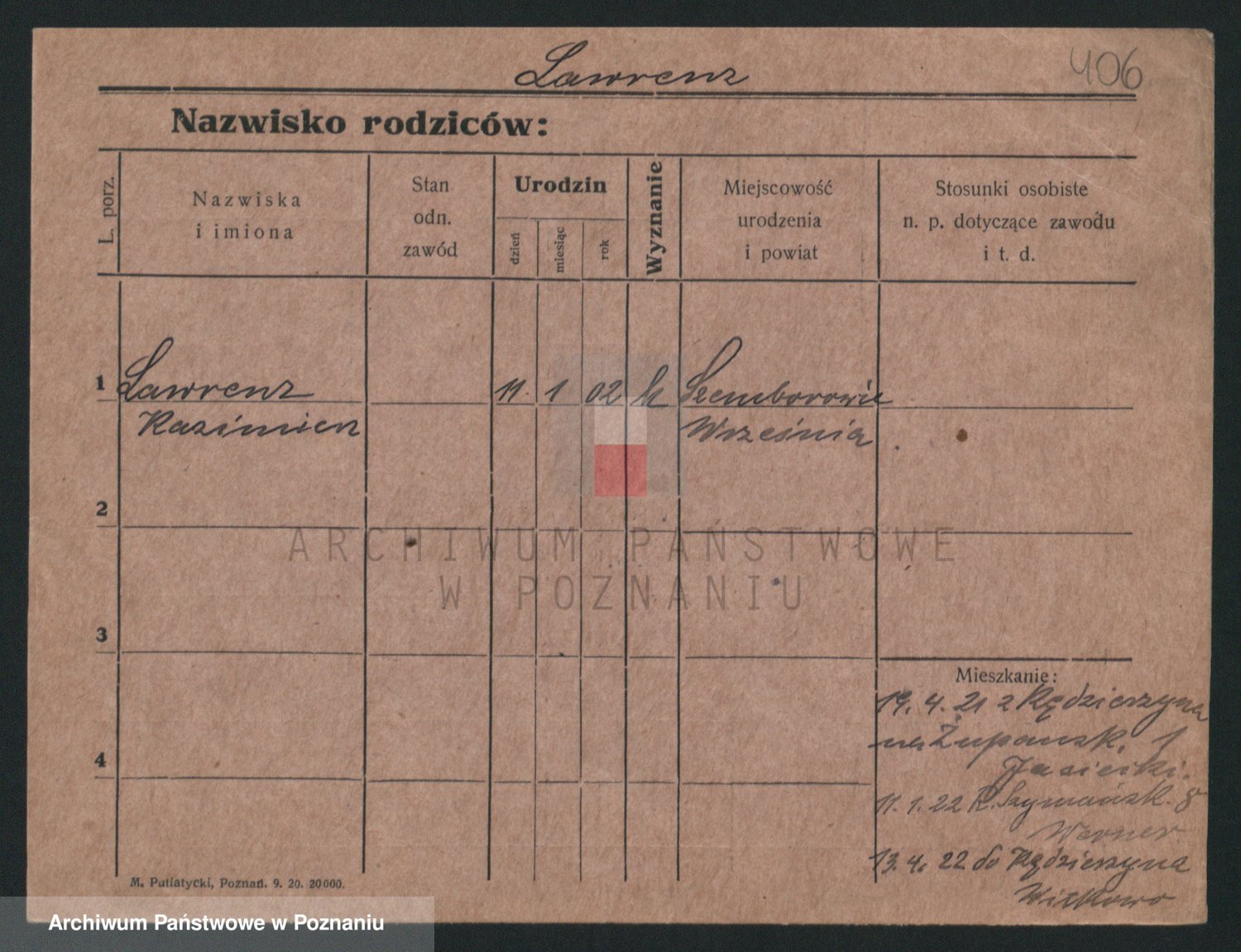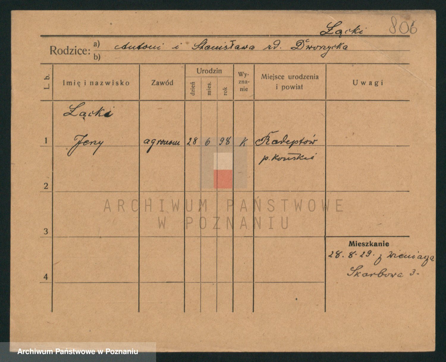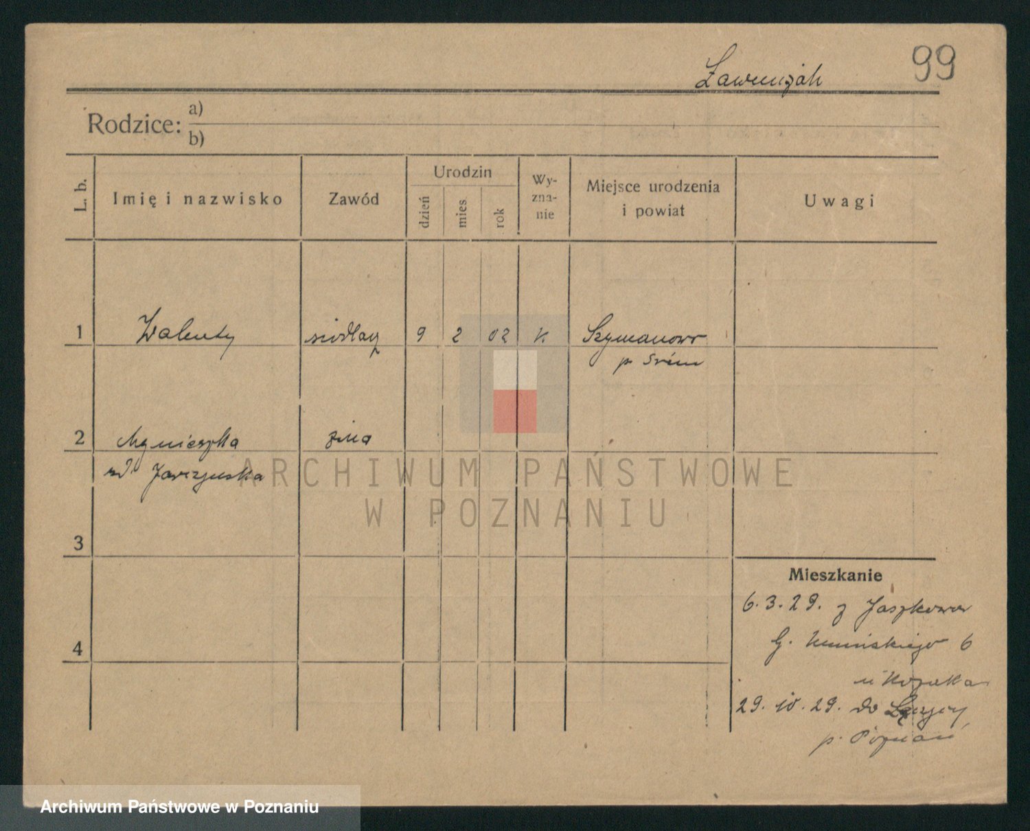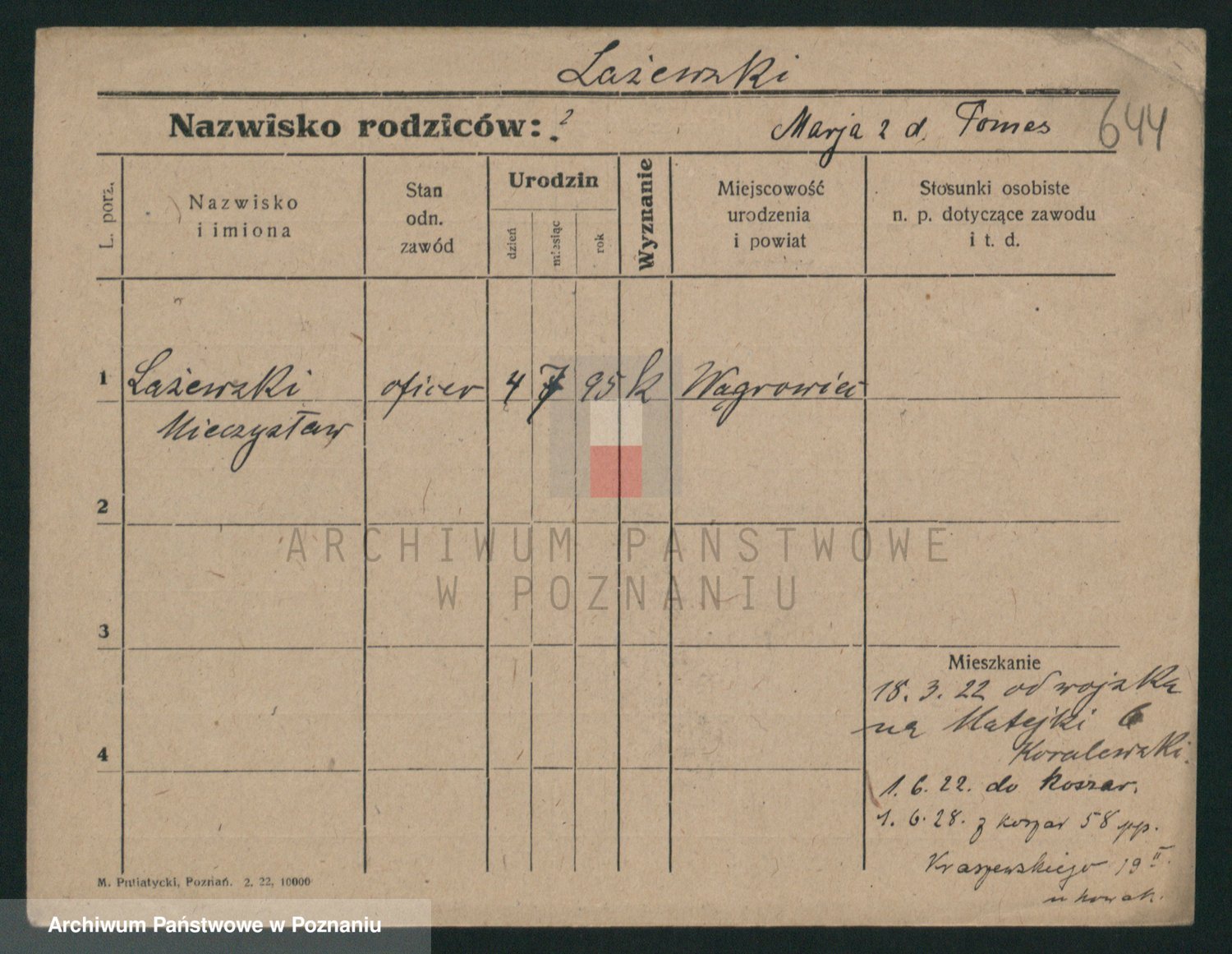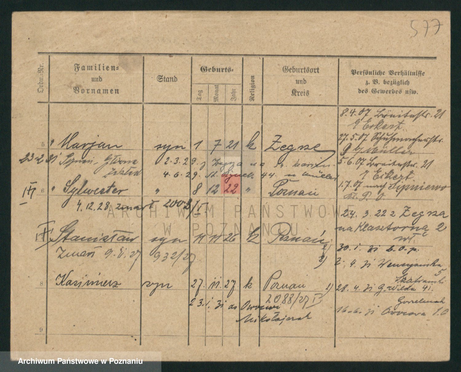 Podgląd karty osobowej dostępny jest po kliknięciu na nazwisko lub ikonkę karty. Można dokonywać powiększenia (ikony na górze) lub przechodzić między kolejnymi skanami (strzałki po bokach).