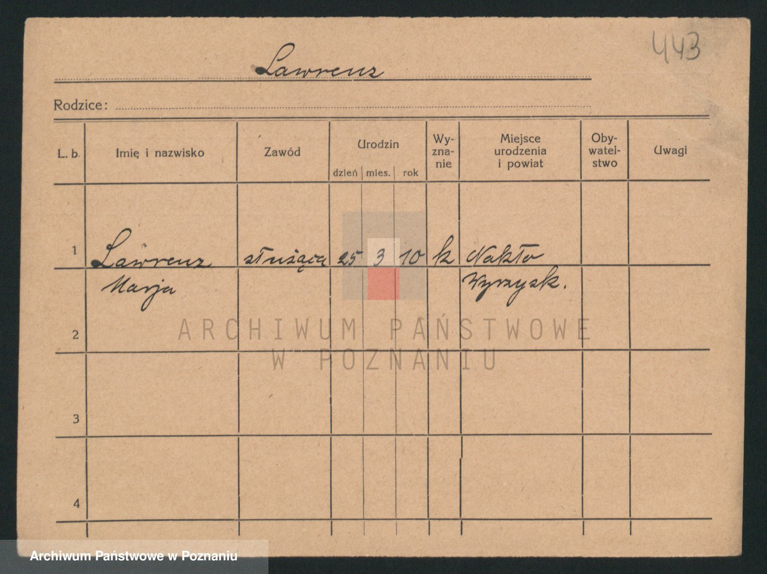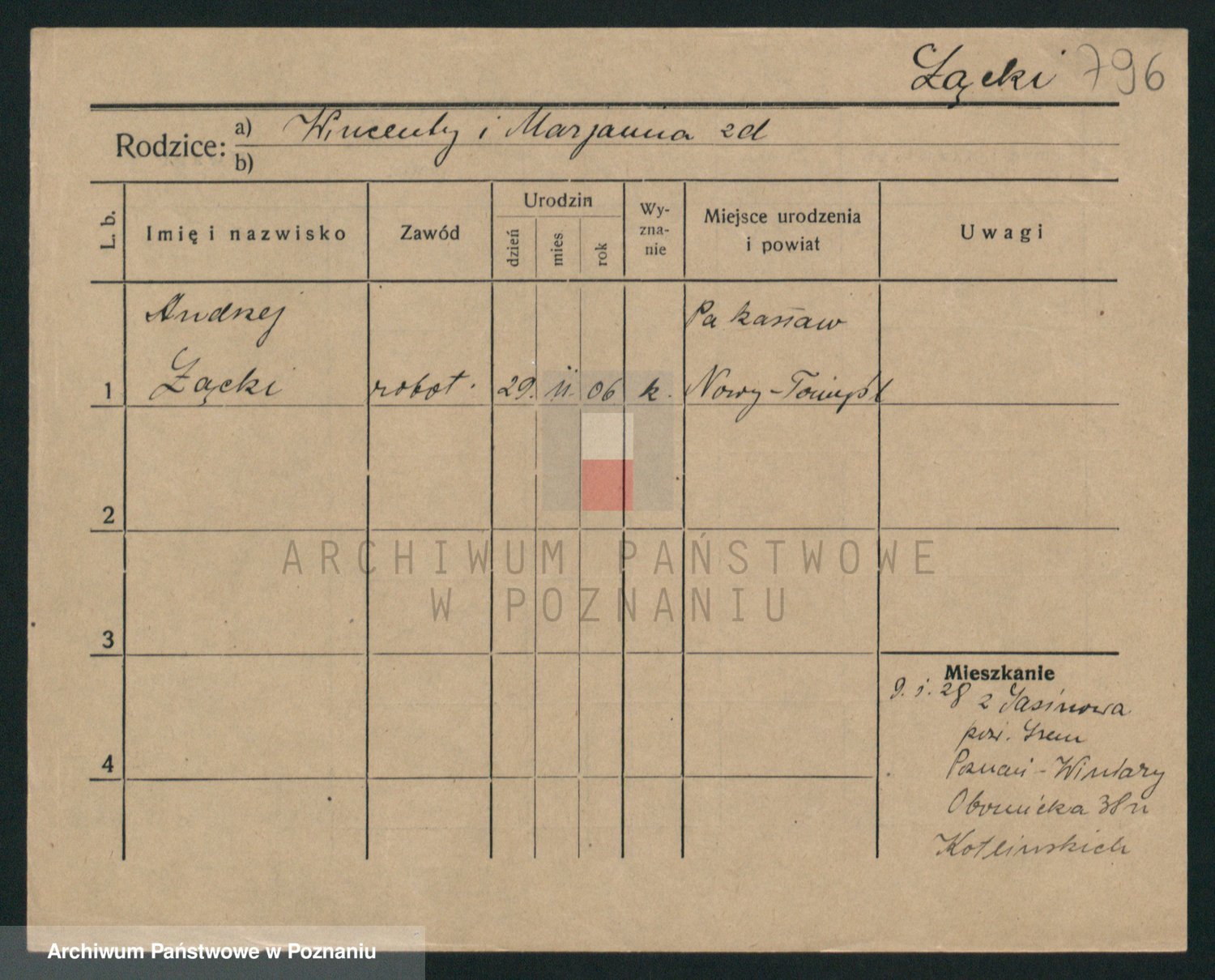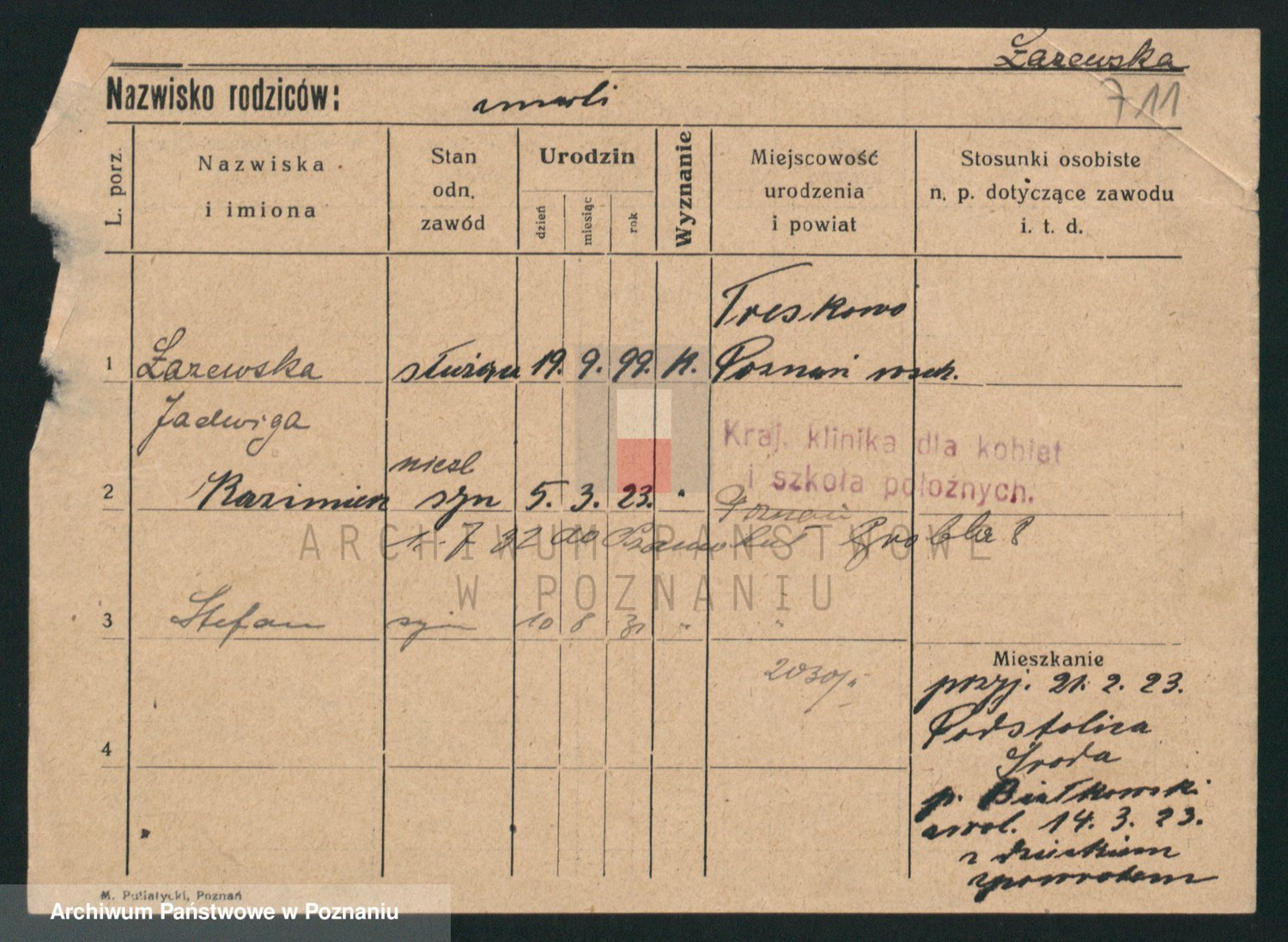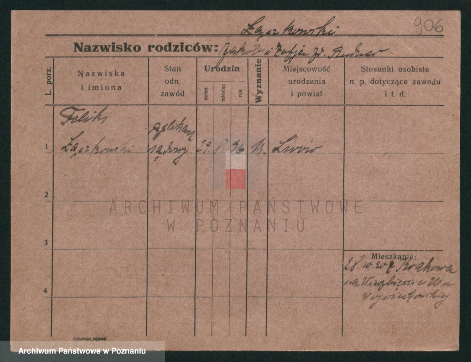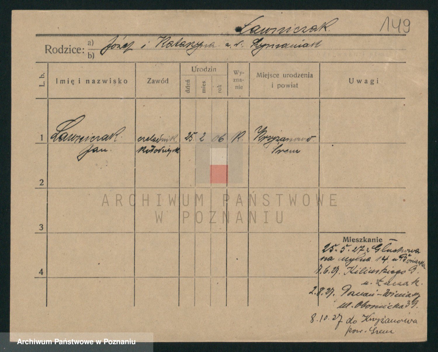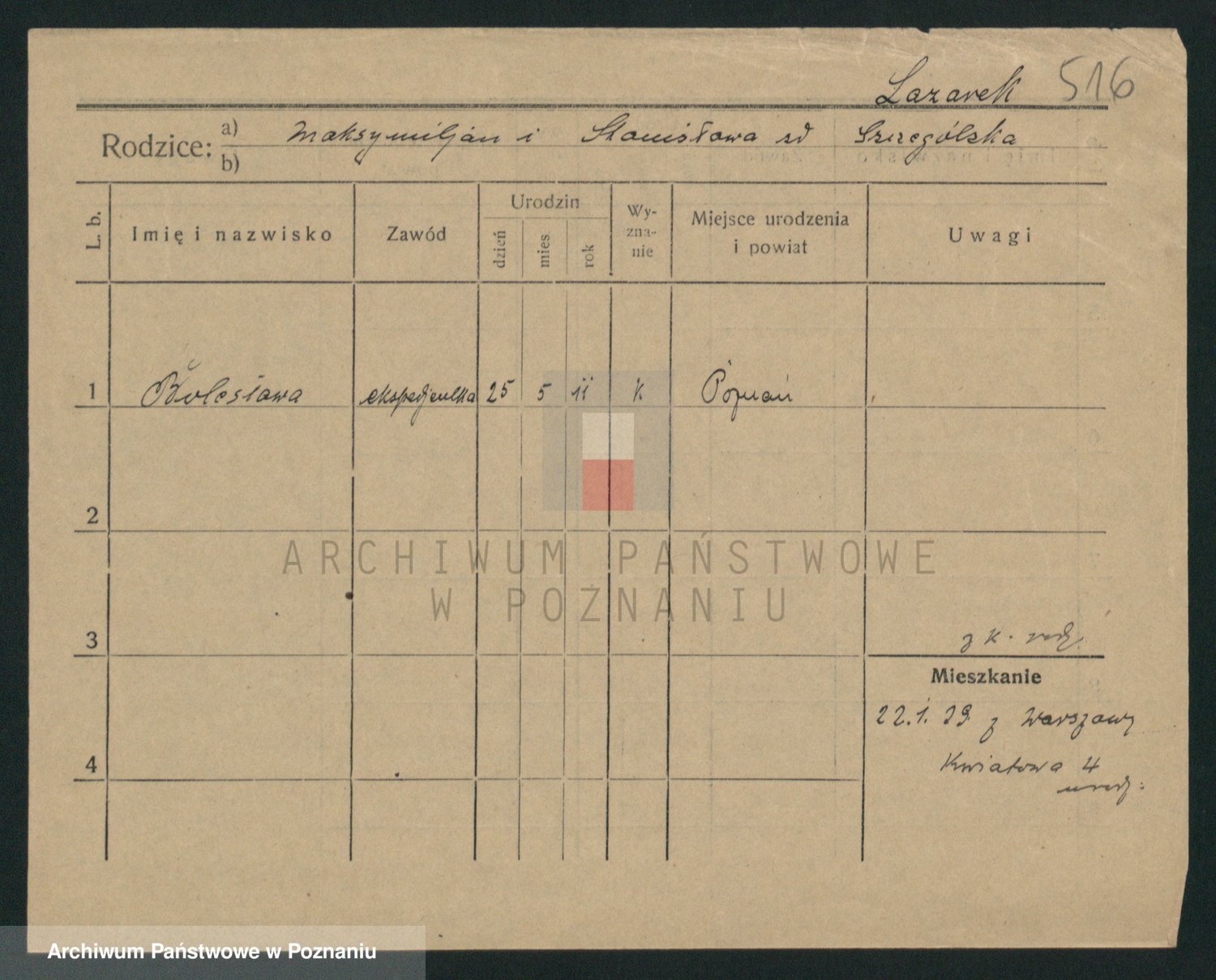 Podgląd karty osobowej dostępny jest po kliknięciu na nazwisko lub ikonkę karty. Można dokonywać powiększenia (ikony na górze) lub przechodzić między kolejnymi skanami (strzałki po bokach).
