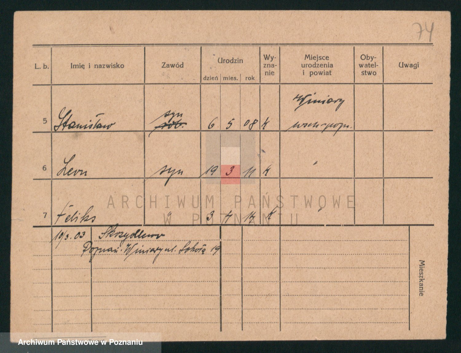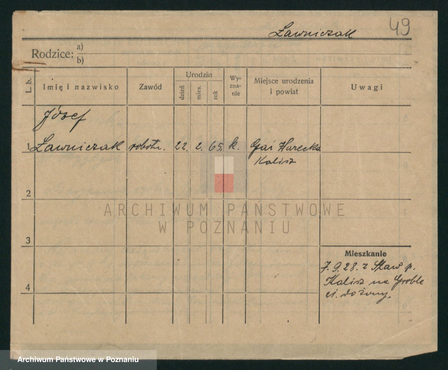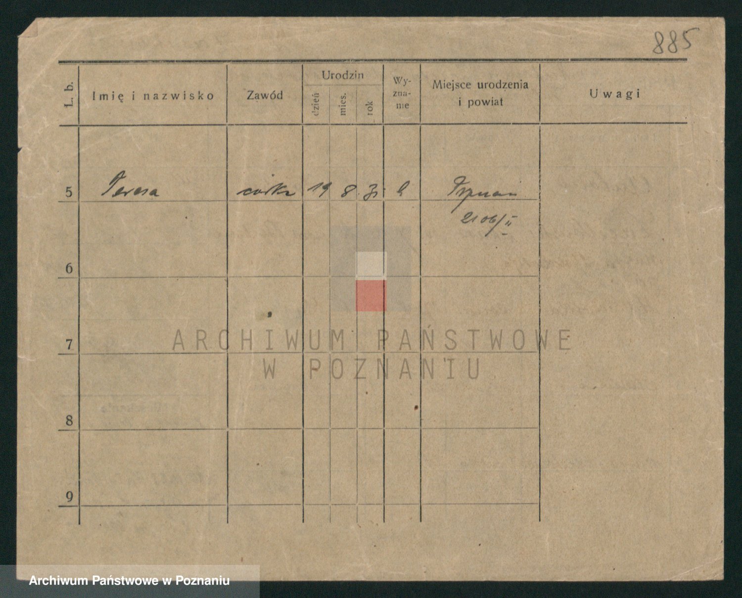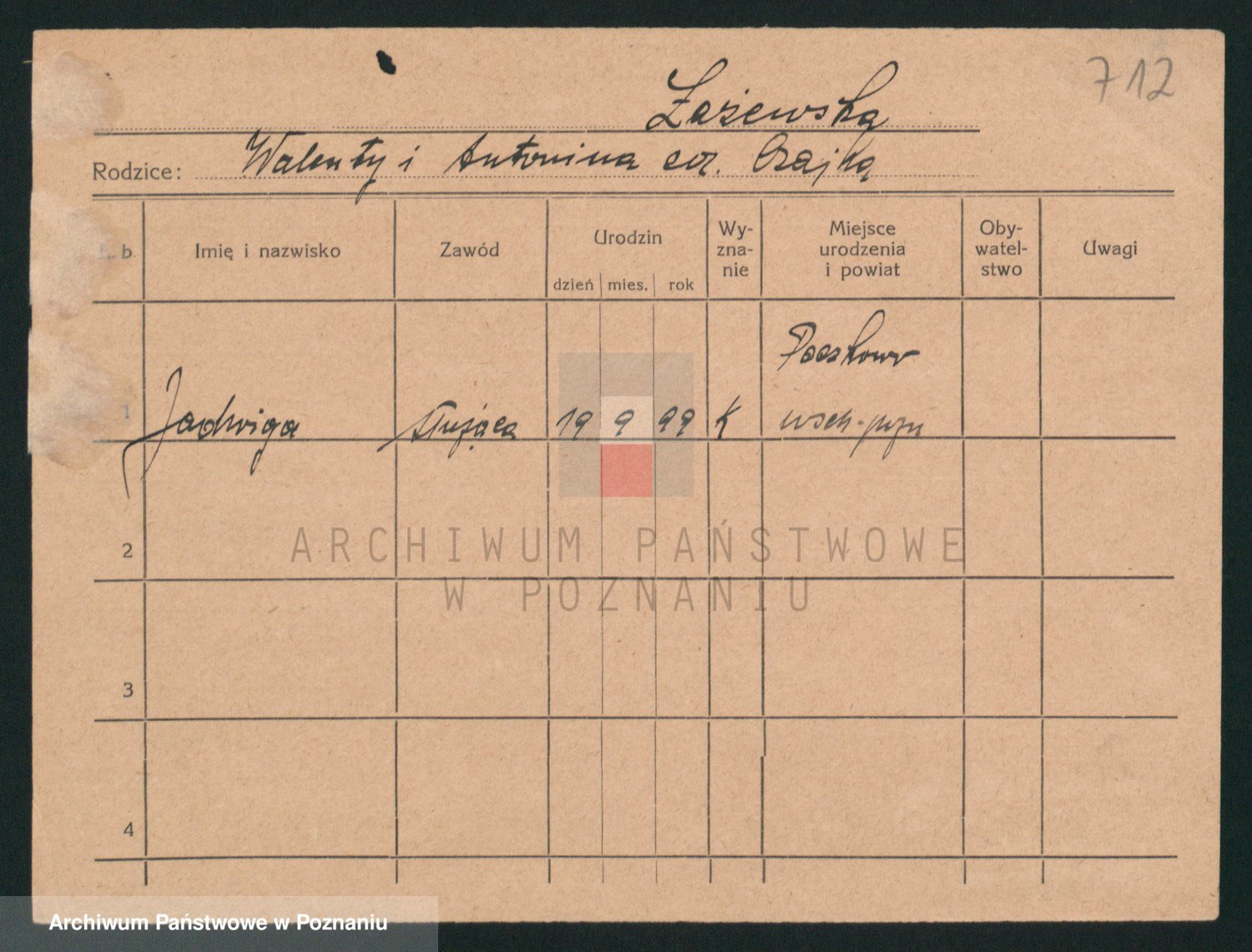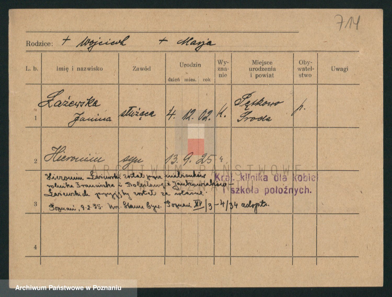 Podgląd karty osobowej dostępny jest po kliknięciu na nazwisko lub ikonkę karty. Można dokonywać powiększenia (ikony na górze) lub przechodzić między kolejnymi skanami (strzałki po bokach).