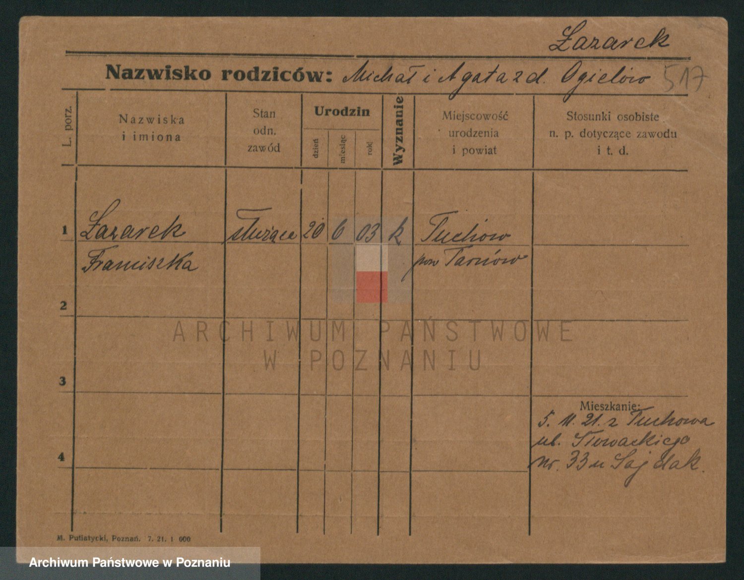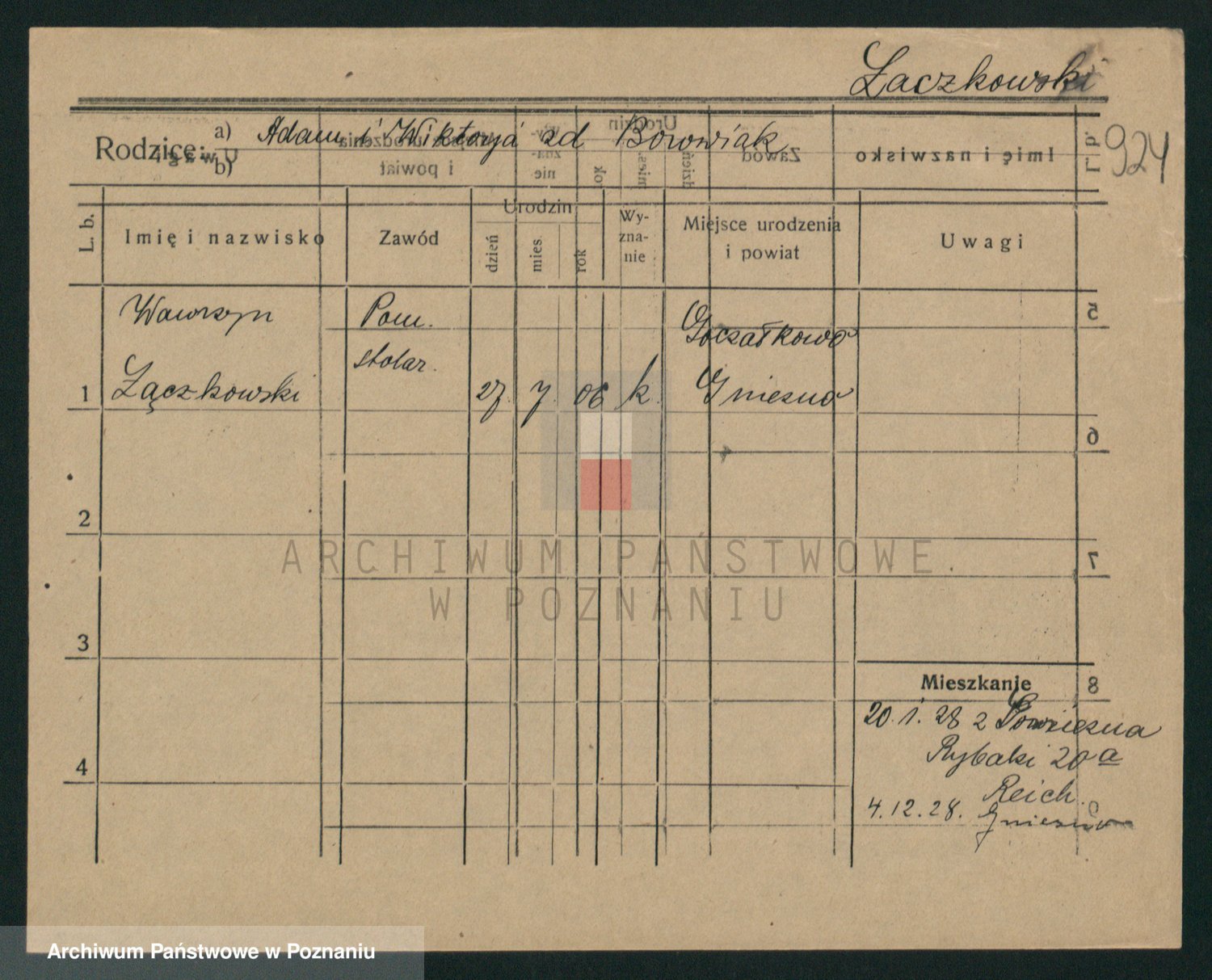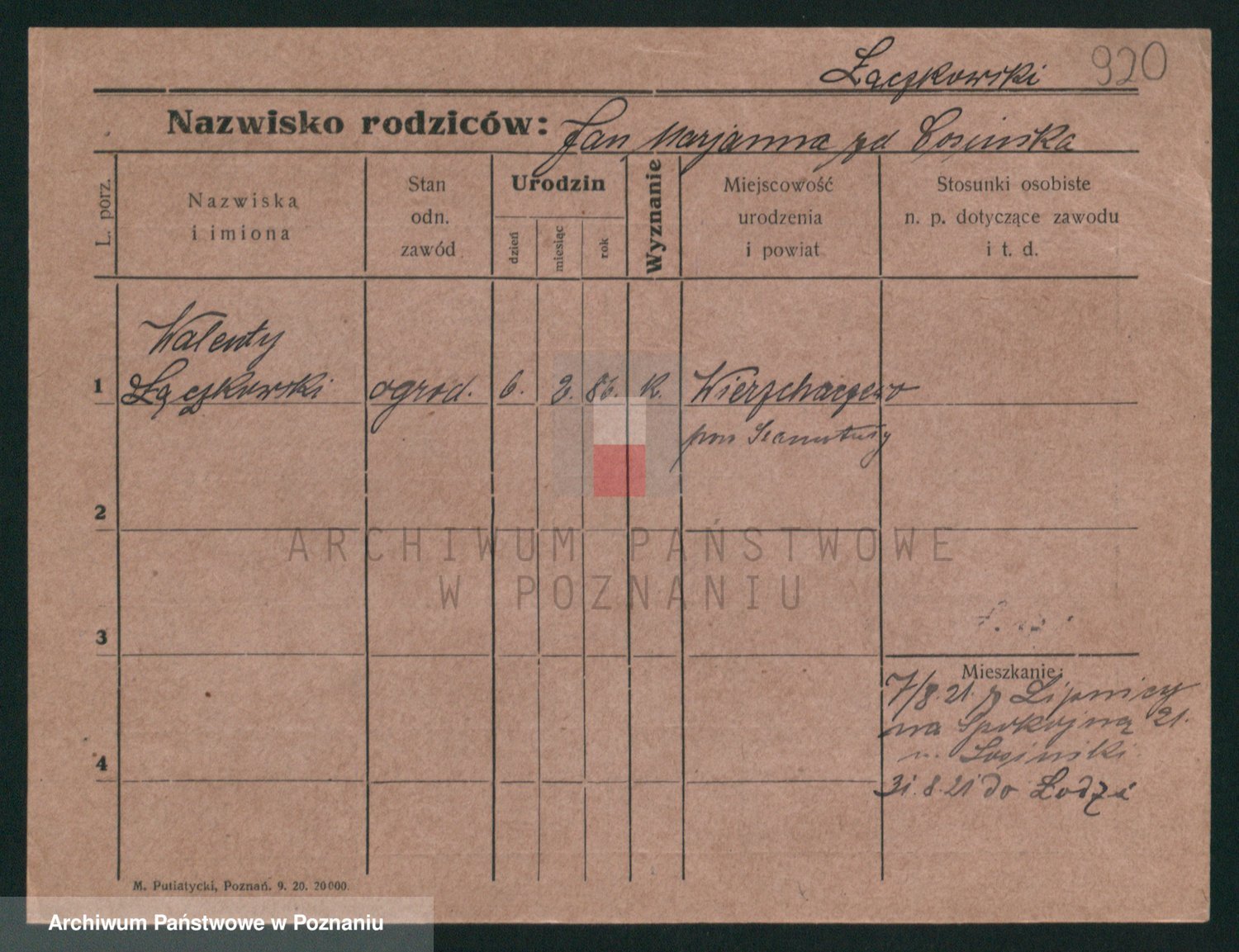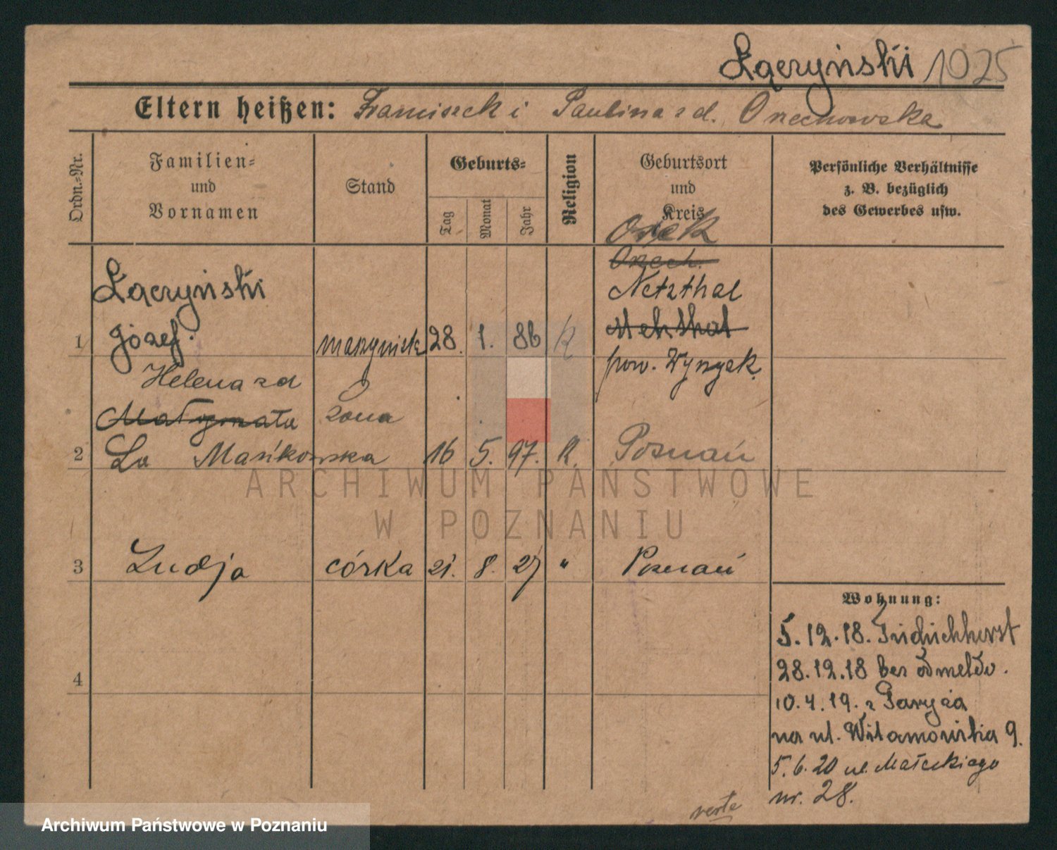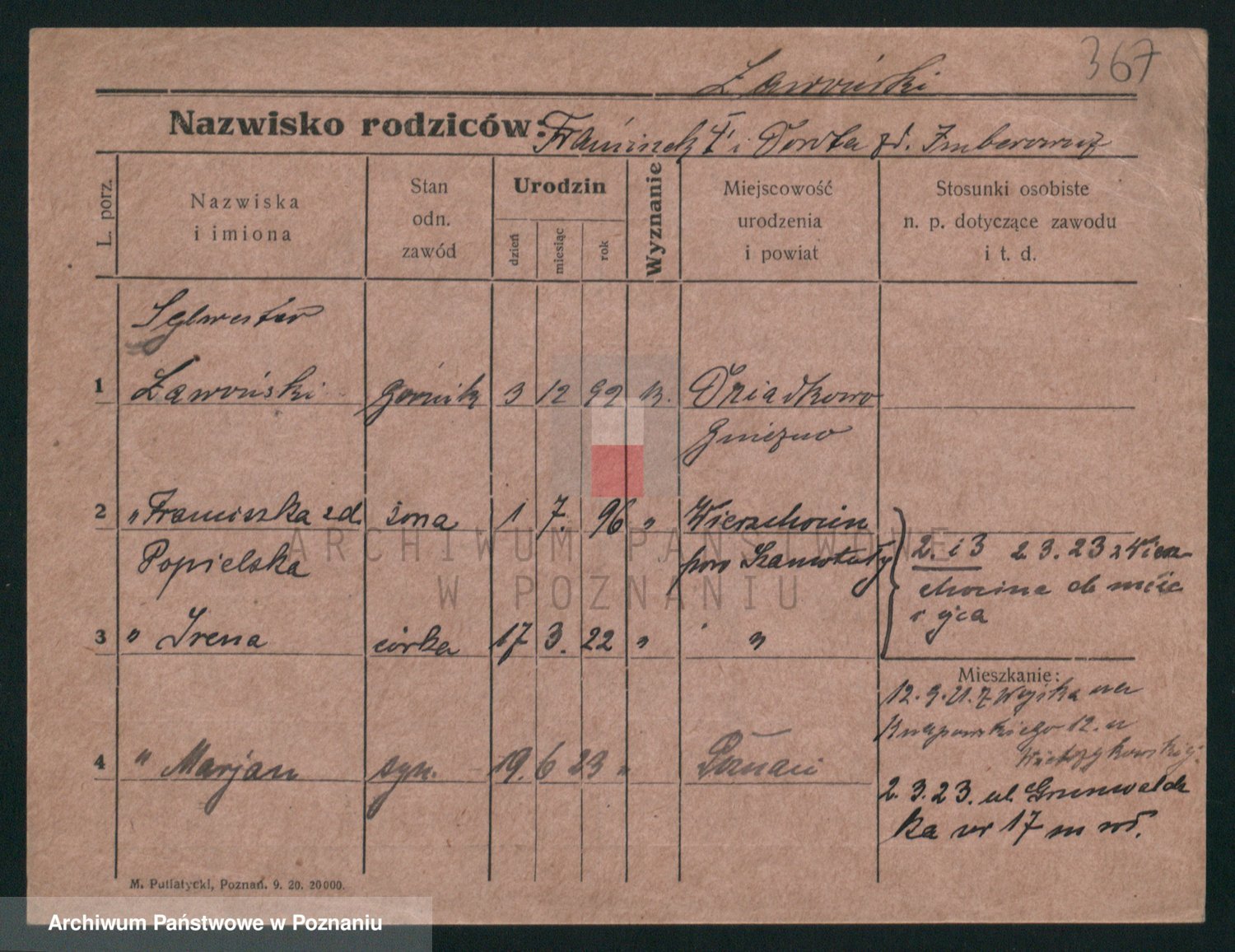 Podgląd karty osobowej dostępny jest po kliknięciu na nazwisko lub ikonkę karty. Można dokonywać powiększenia (ikony na górze) lub przechodzić między kolejnymi skanami (strzałki po bokach).
