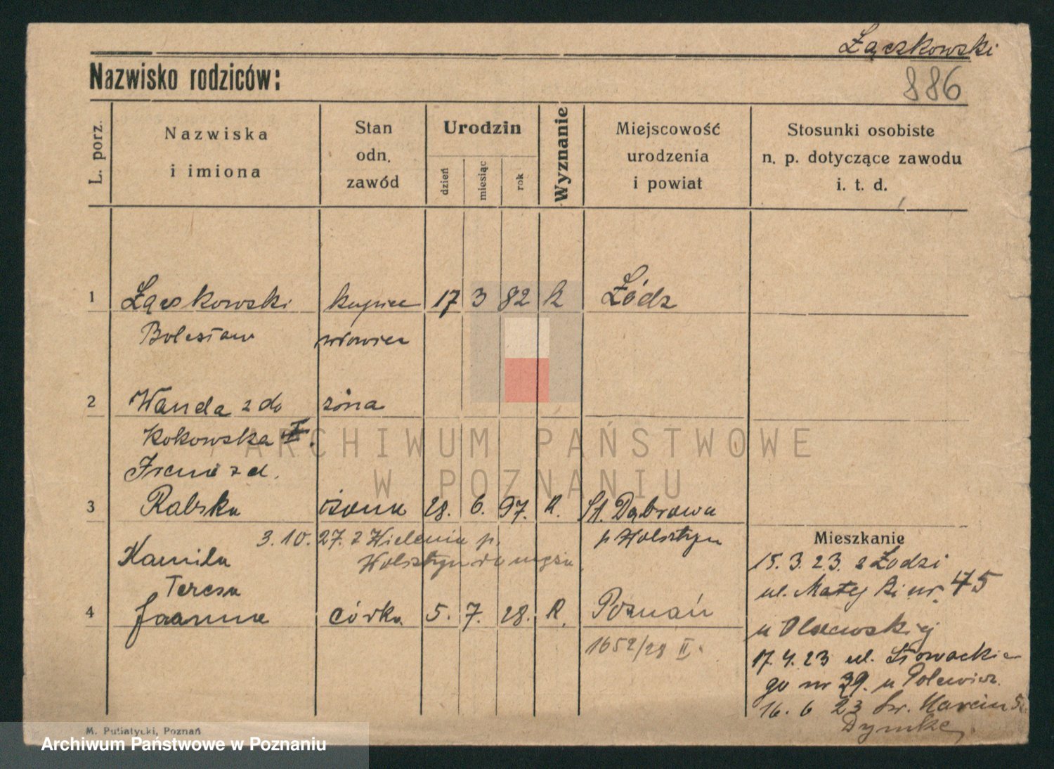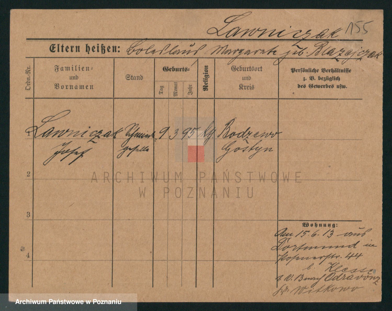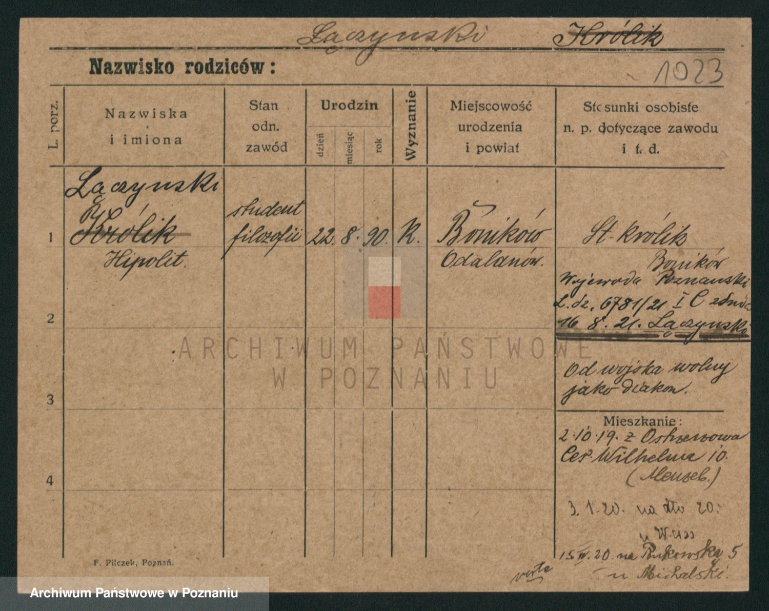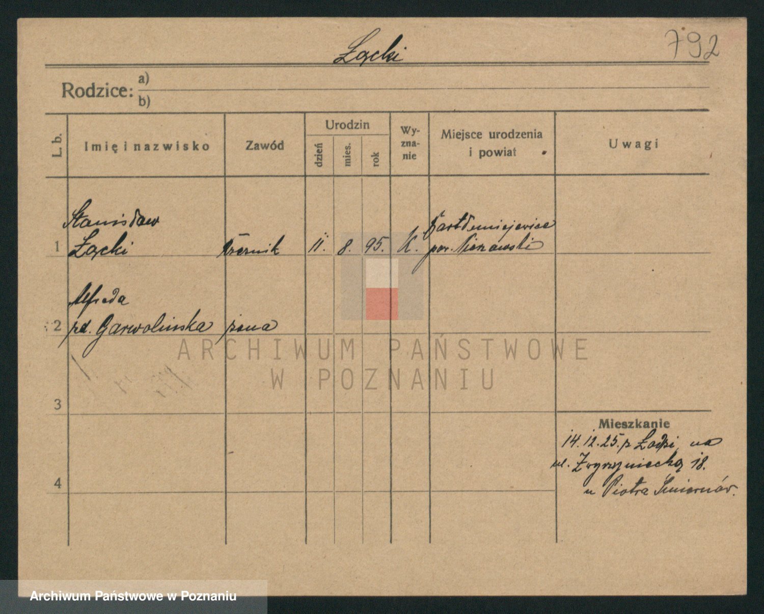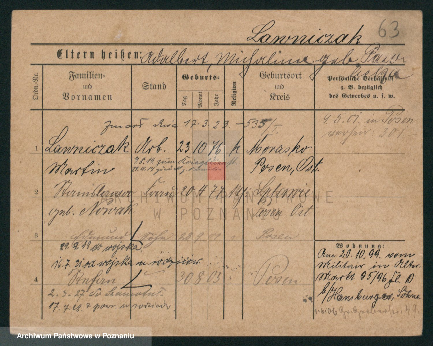 Podgląd karty osobowej dostępny jest po kliknięciu na nazwisko lub ikonkę karty. Można dokonywać powiększenia (ikony na górze) lub przechodzić między kolejnymi skanami (strzałki po bokach).