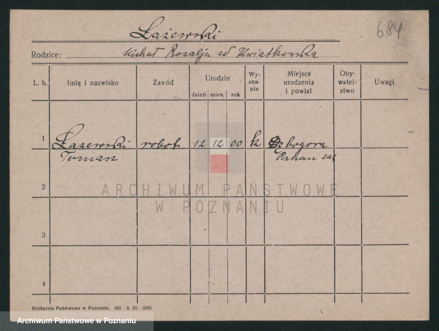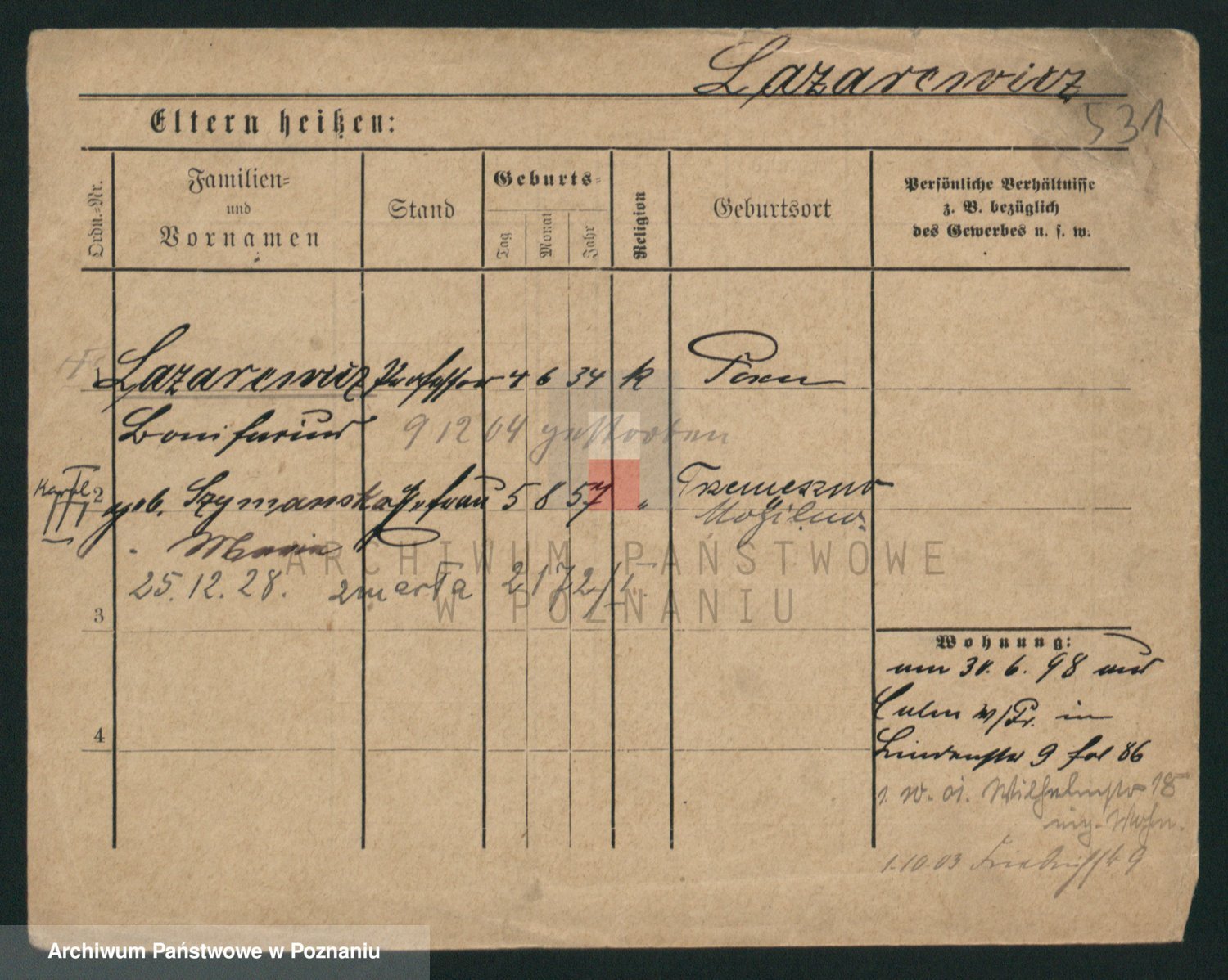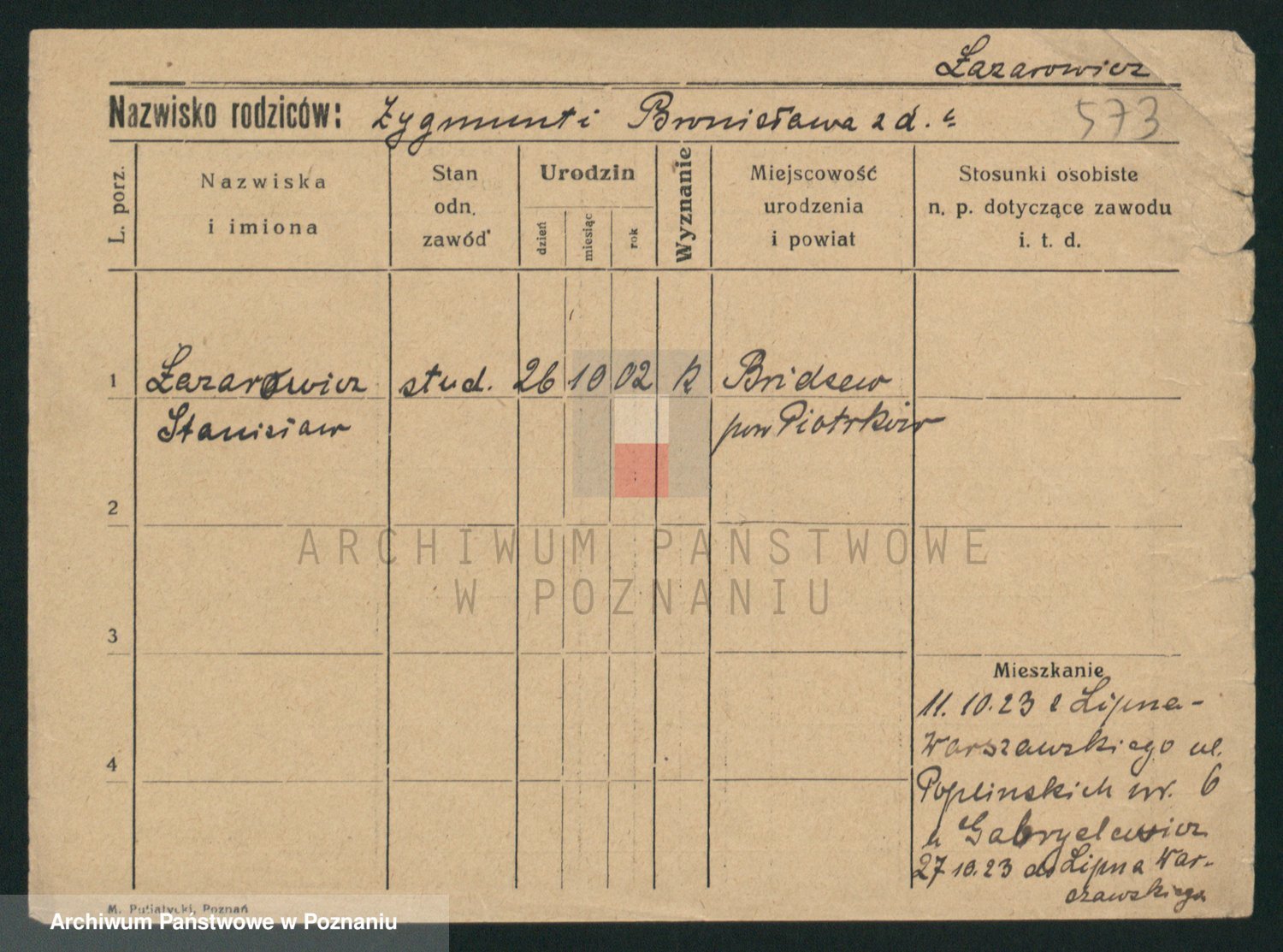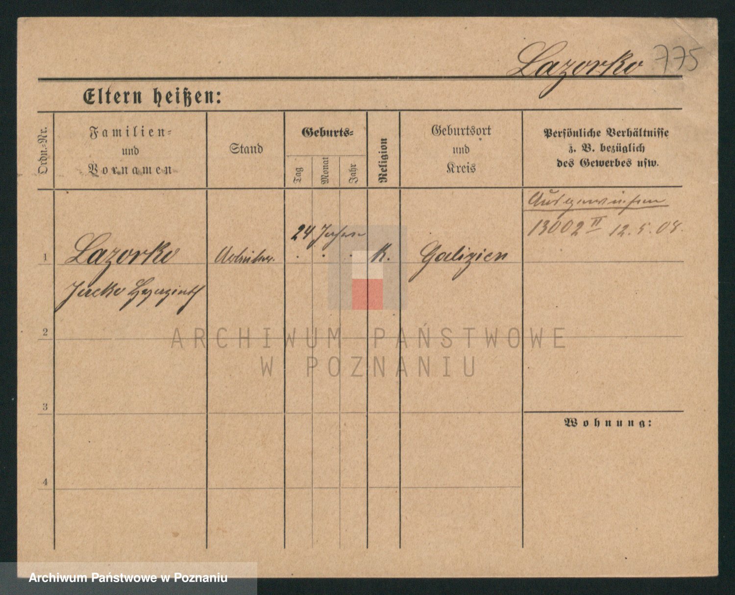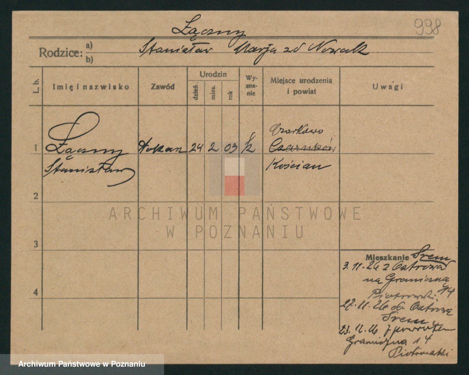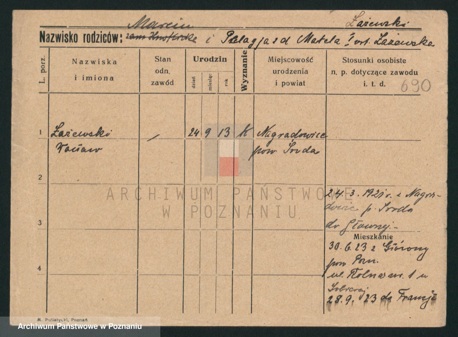 Podgląd karty osobowej dostępny jest po kliknięciu na nazwisko lub ikonkę karty. Można dokonywać powiększenia (ikony na górze) lub przechodzić między kolejnymi skanami (strzałki po bokach).