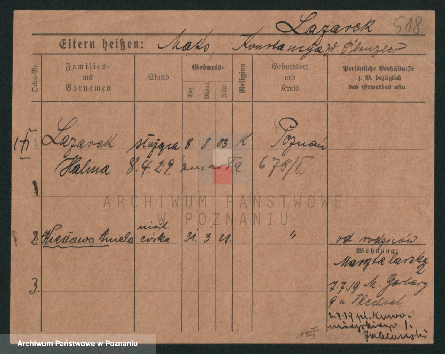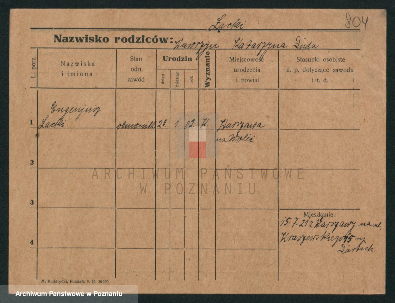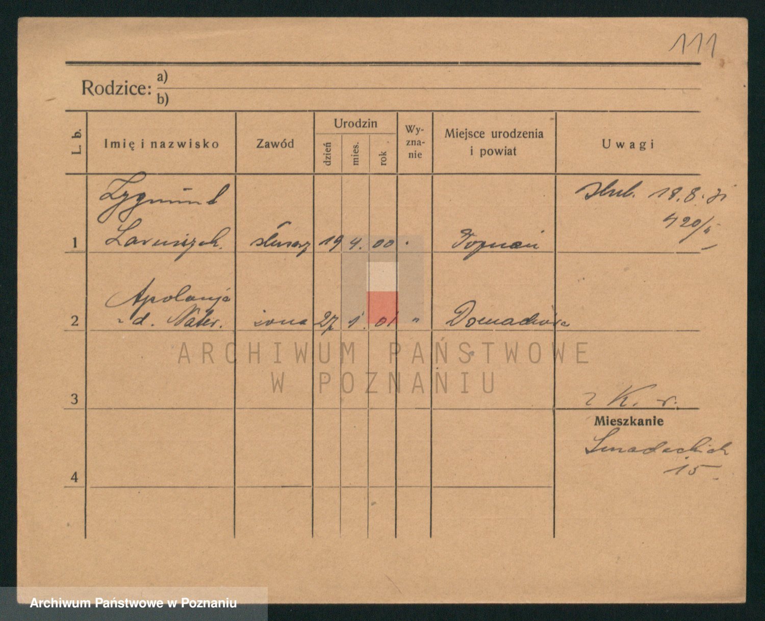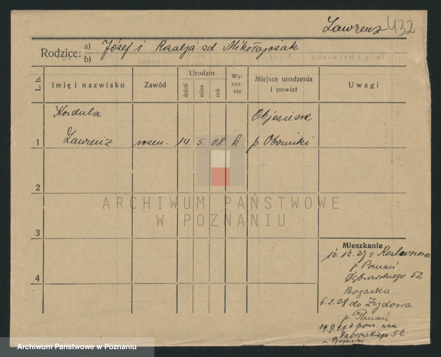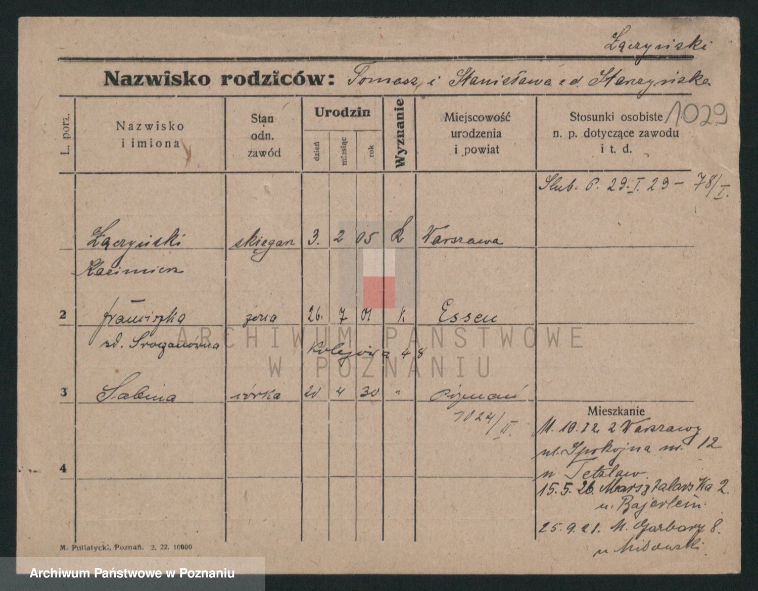 Podgląd karty osobowej dostępny jest po kliknięciu na nazwisko lub ikonkę karty. Można dokonywać powiększenia (ikony na górze) lub przechodzić między kolejnymi skanami (strzałki po bokach).