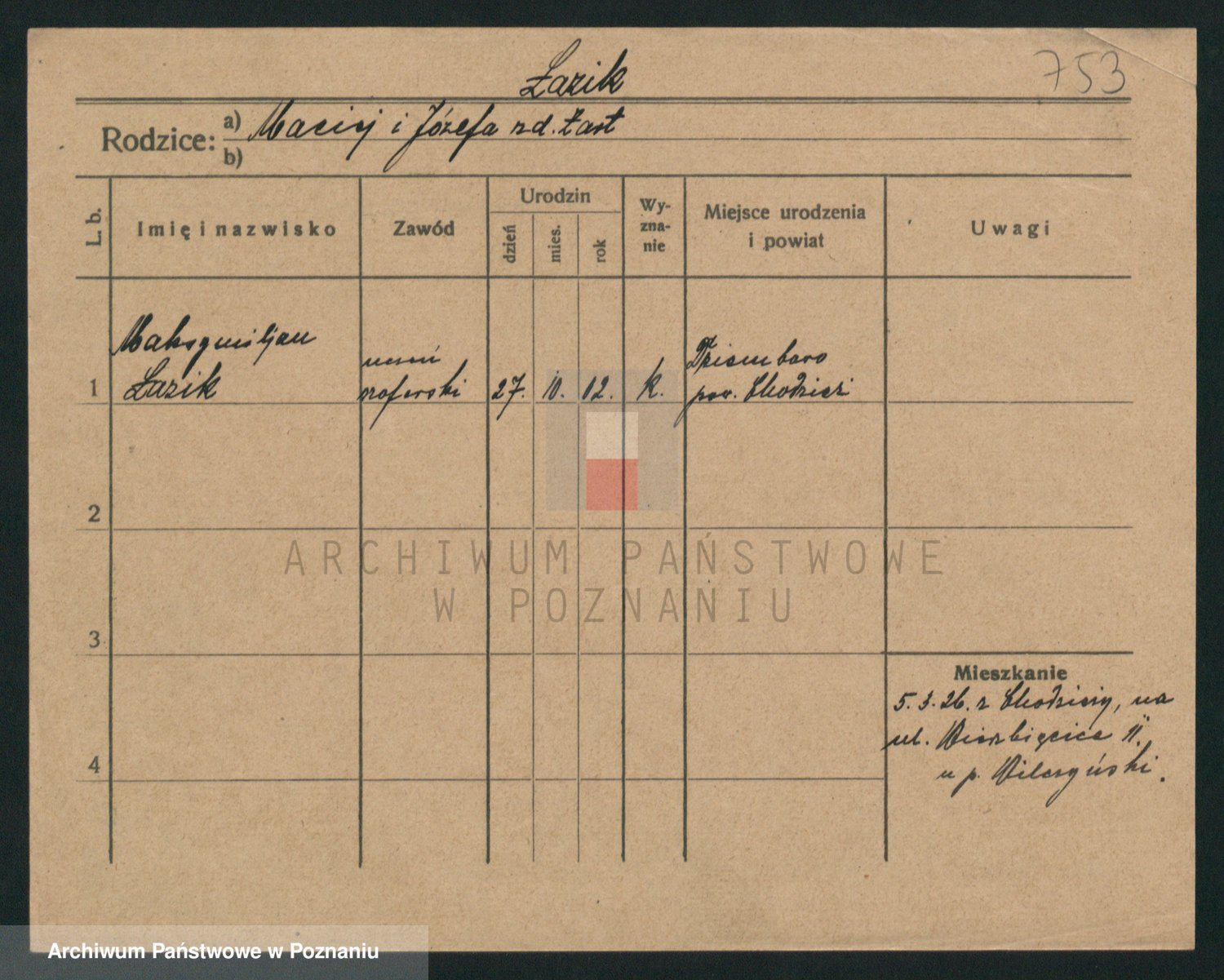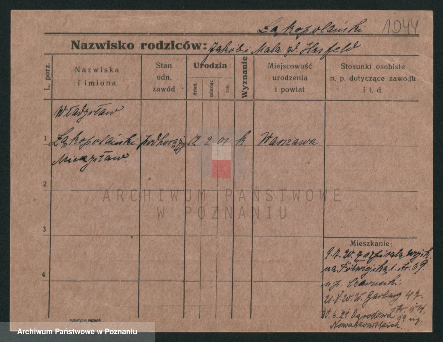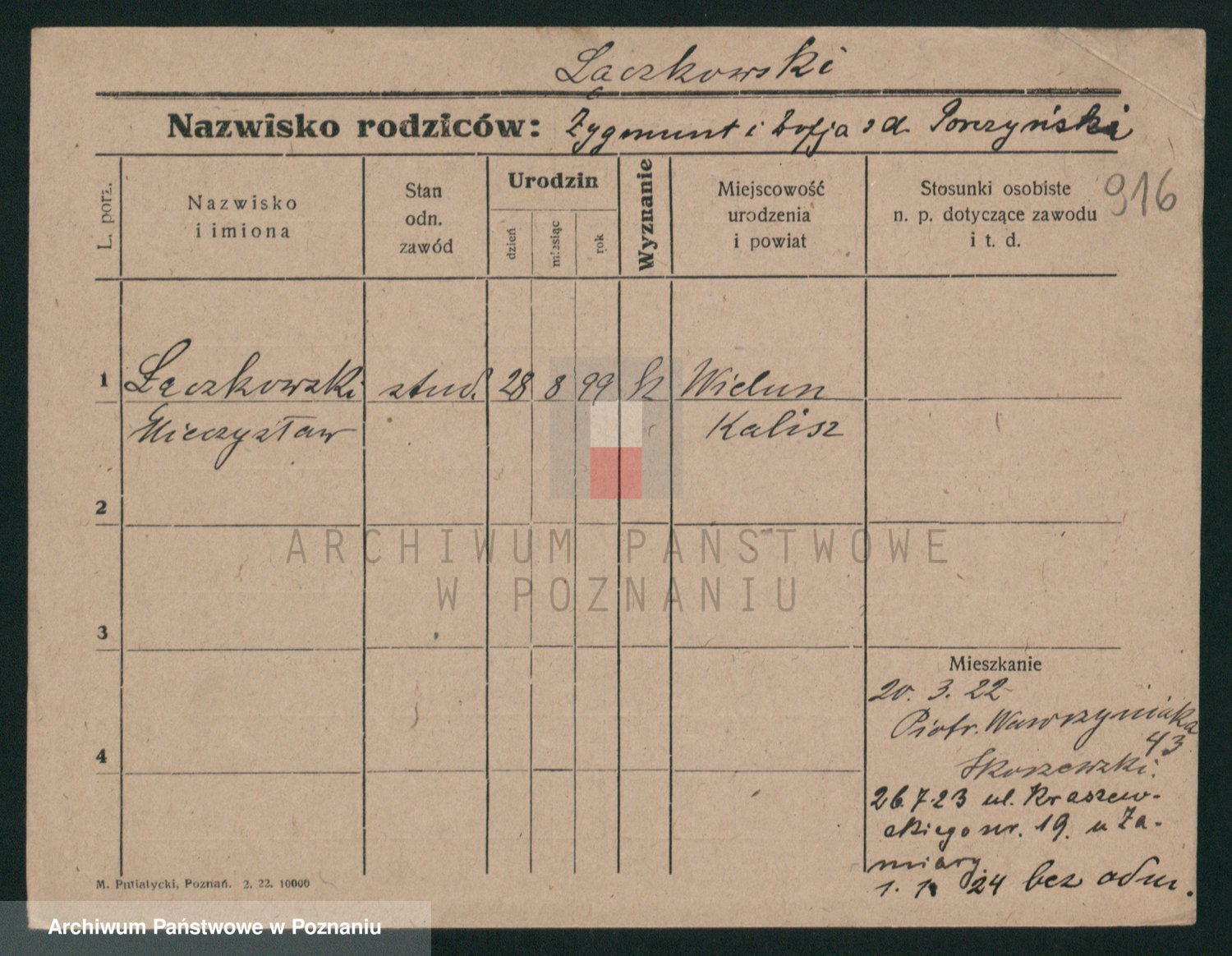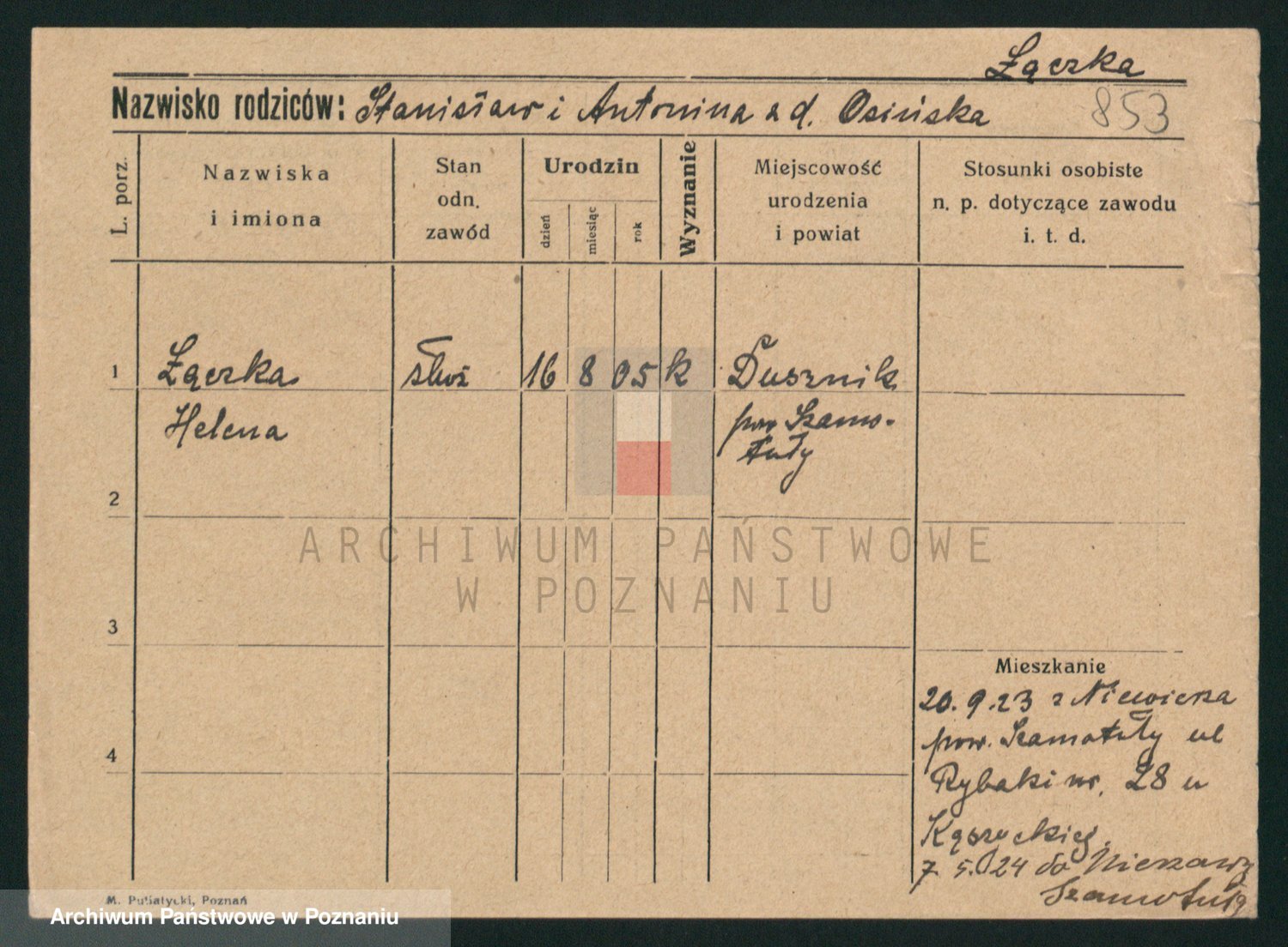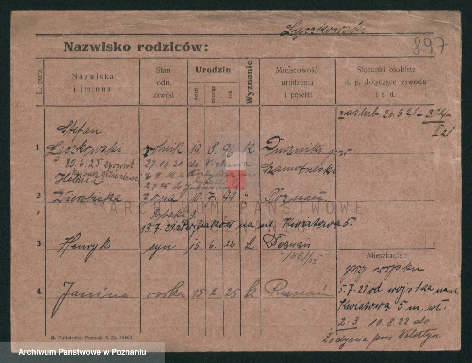 Podgląd karty osobowej dostępny jest po kliknięciu na nazwisko lub ikonkę karty. Można dokonywać powiększenia (ikony na górze) lub przechodzić między kolejnymi skanami (strzałki po bokach).