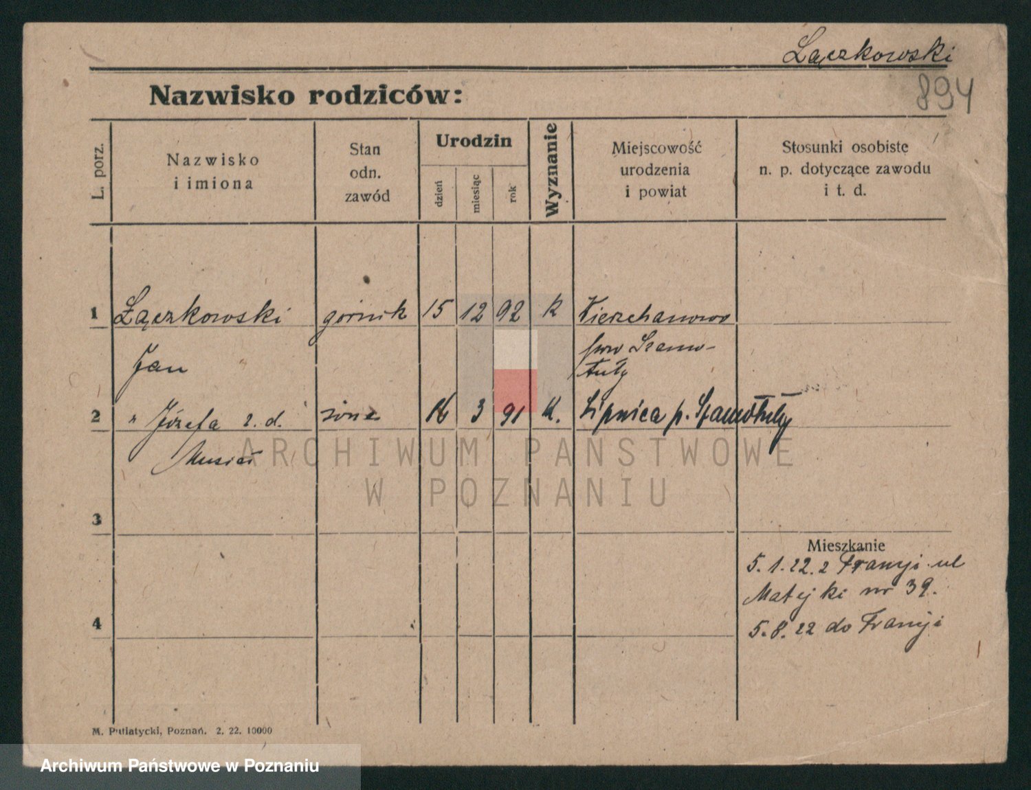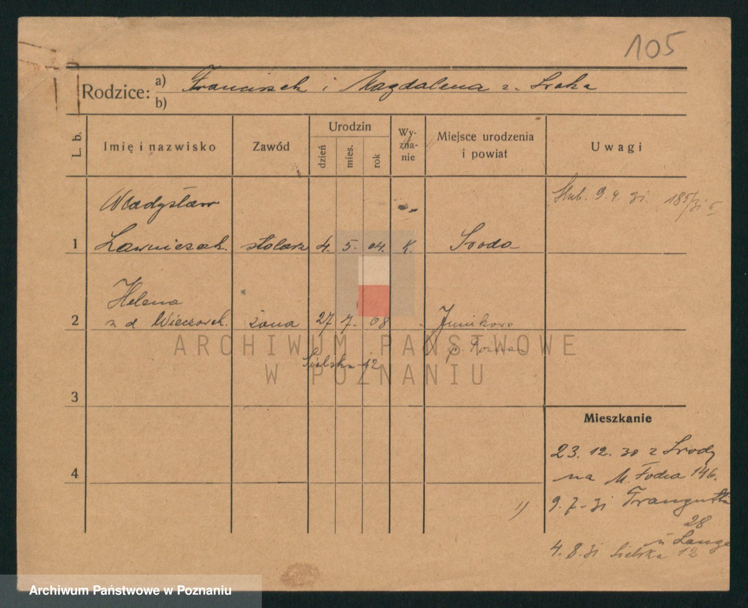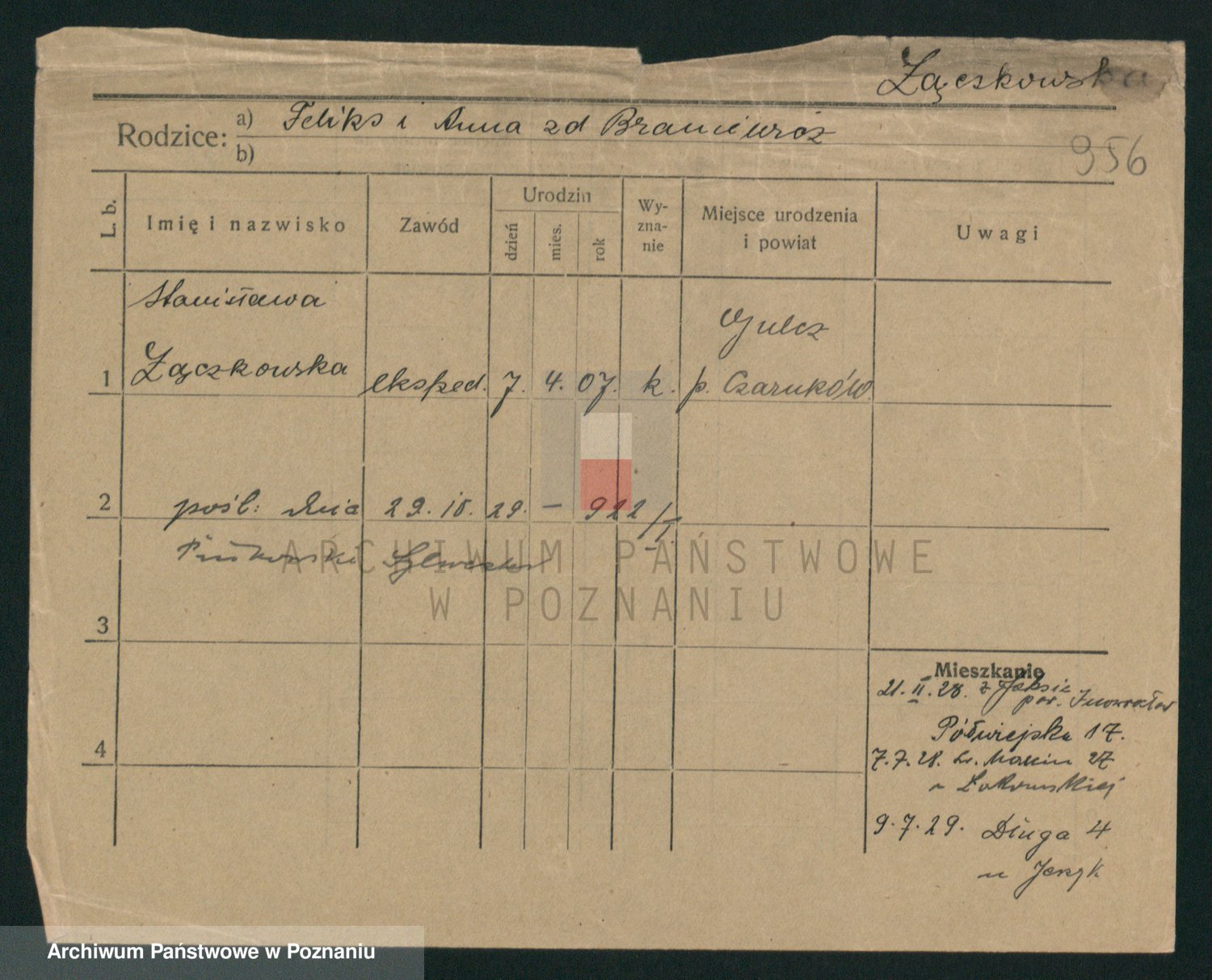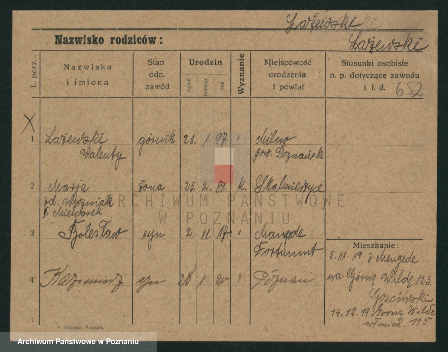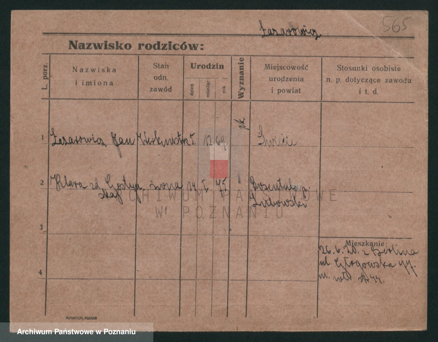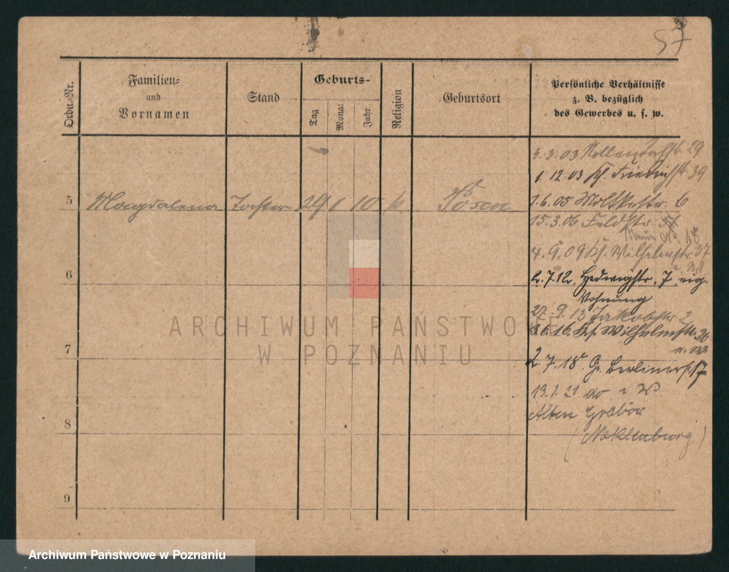 Podgląd karty osobowej dostępny jest po kliknięciu na nazwisko lub ikonkę karty. Można dokonywać powiększenia (ikony na górze) lub przechodzić między kolejnymi skanami (strzałki po bokach).