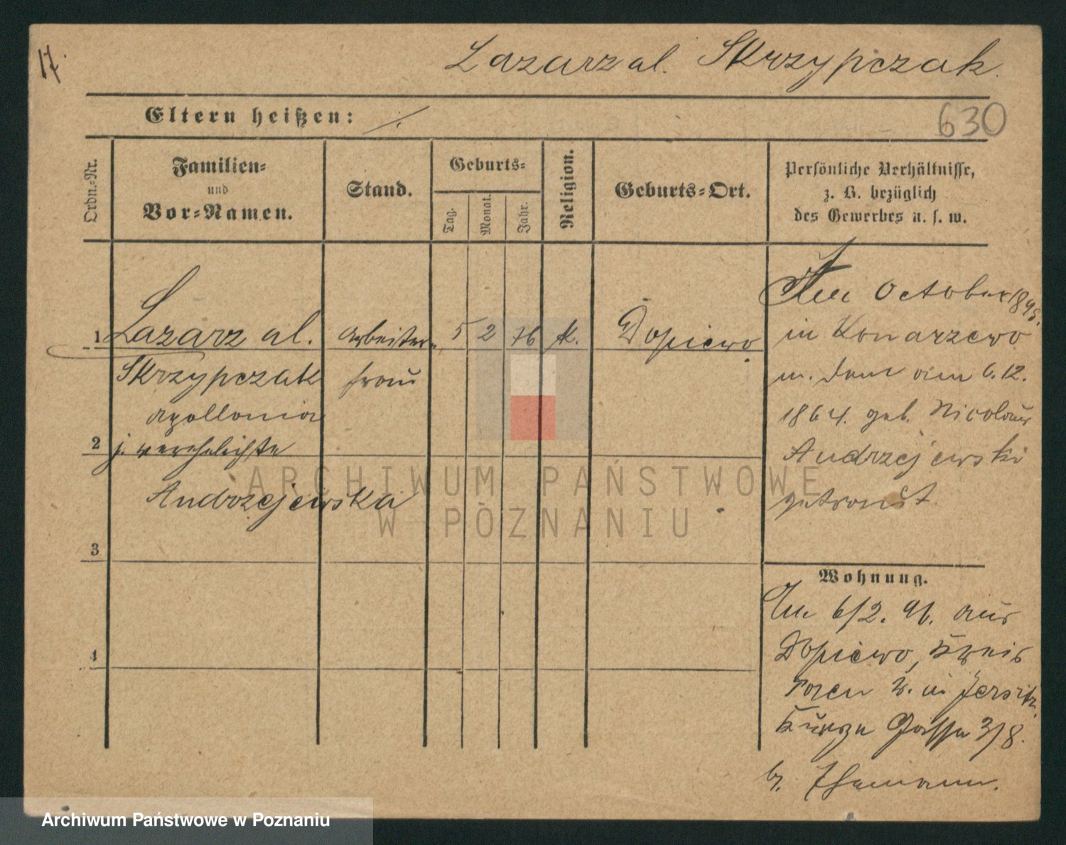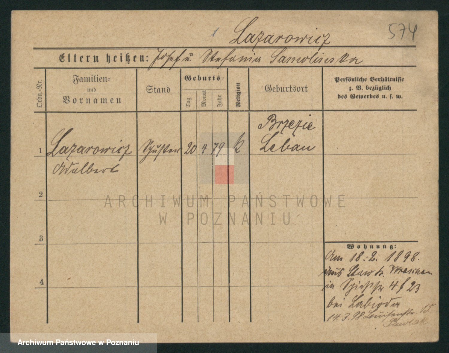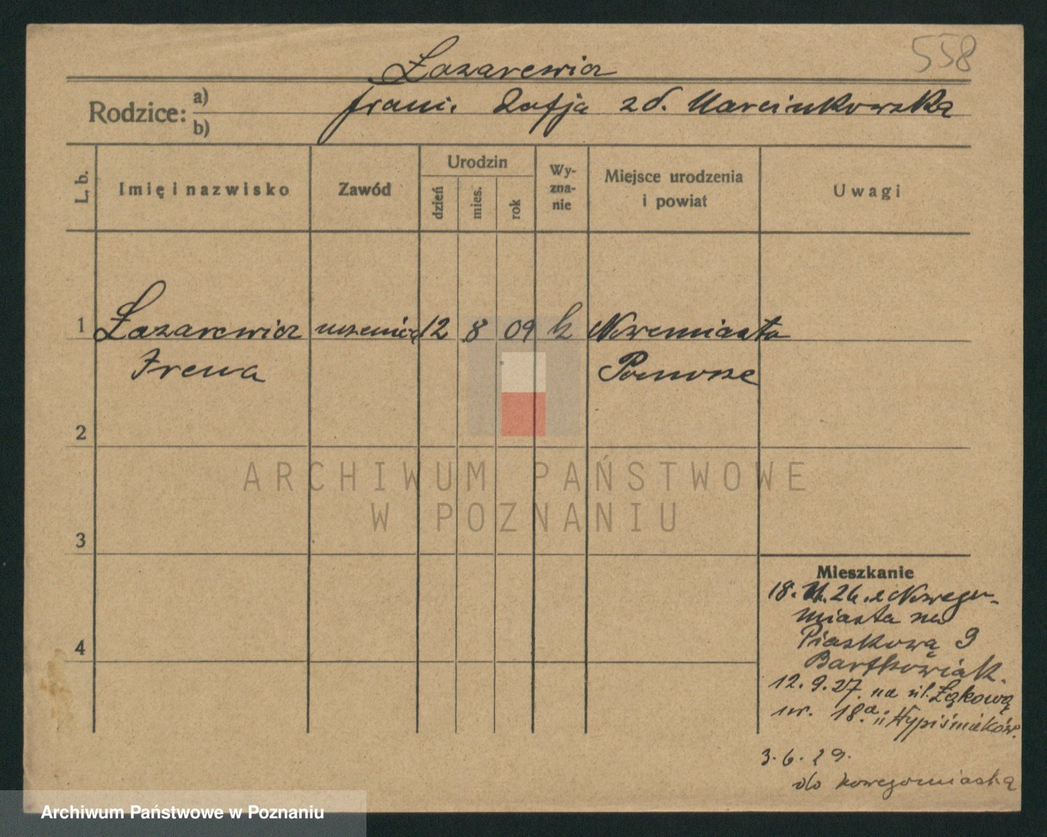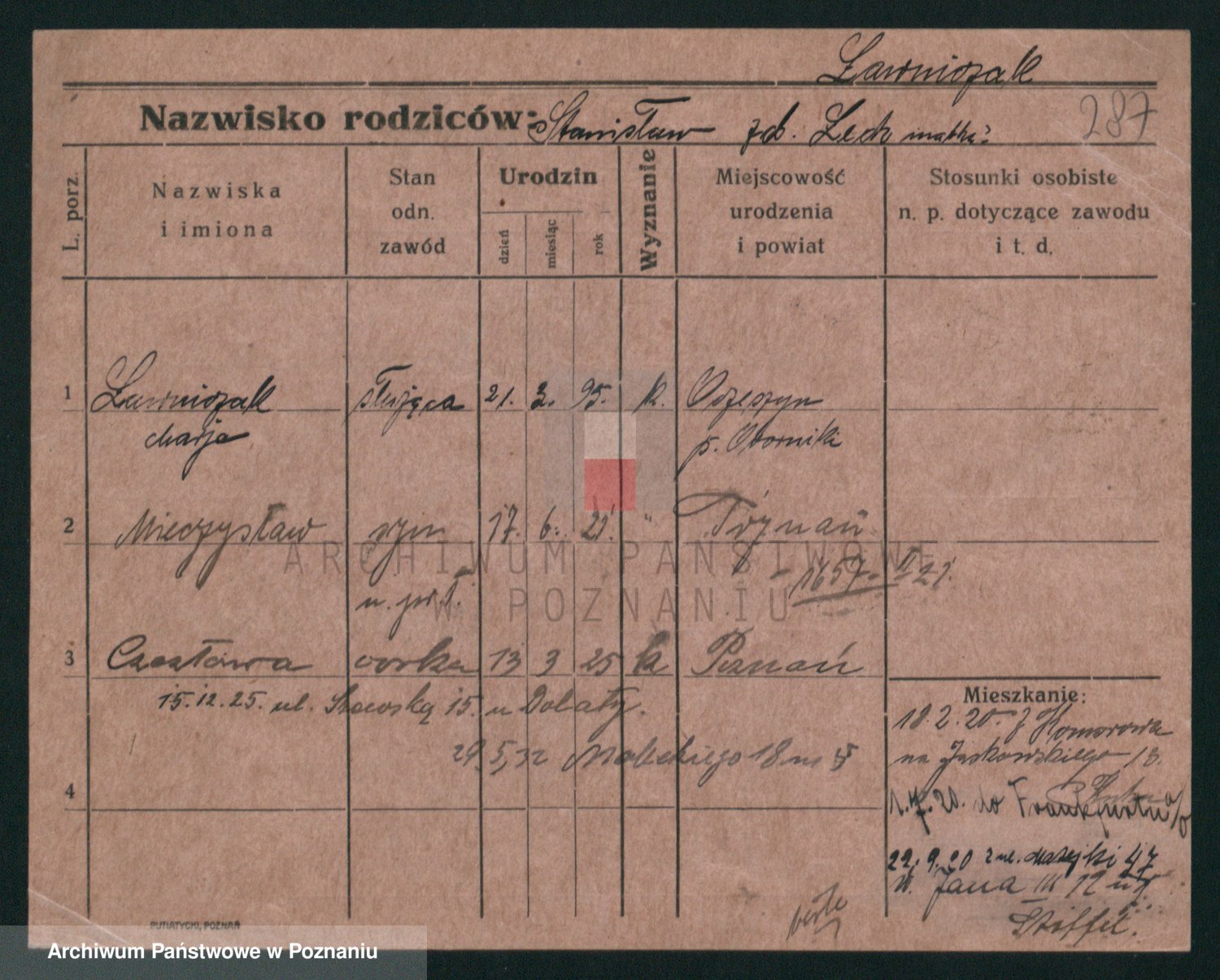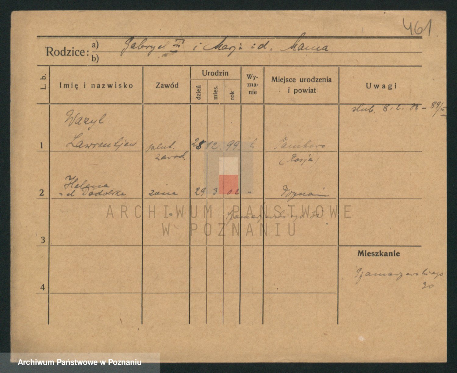 Podgląd karty osobowej dostępny jest po kliknięciu na nazwisko lub ikonkę karty. Można dokonywać powiększenia (ikony na górze) lub przechodzić między kolejnymi skanami (strzałki po bokach).