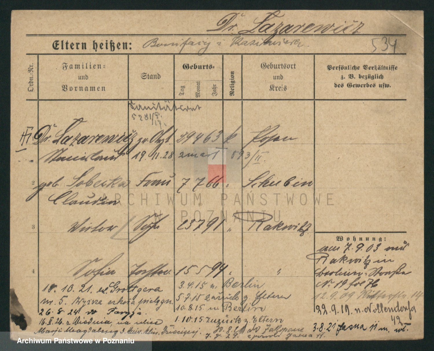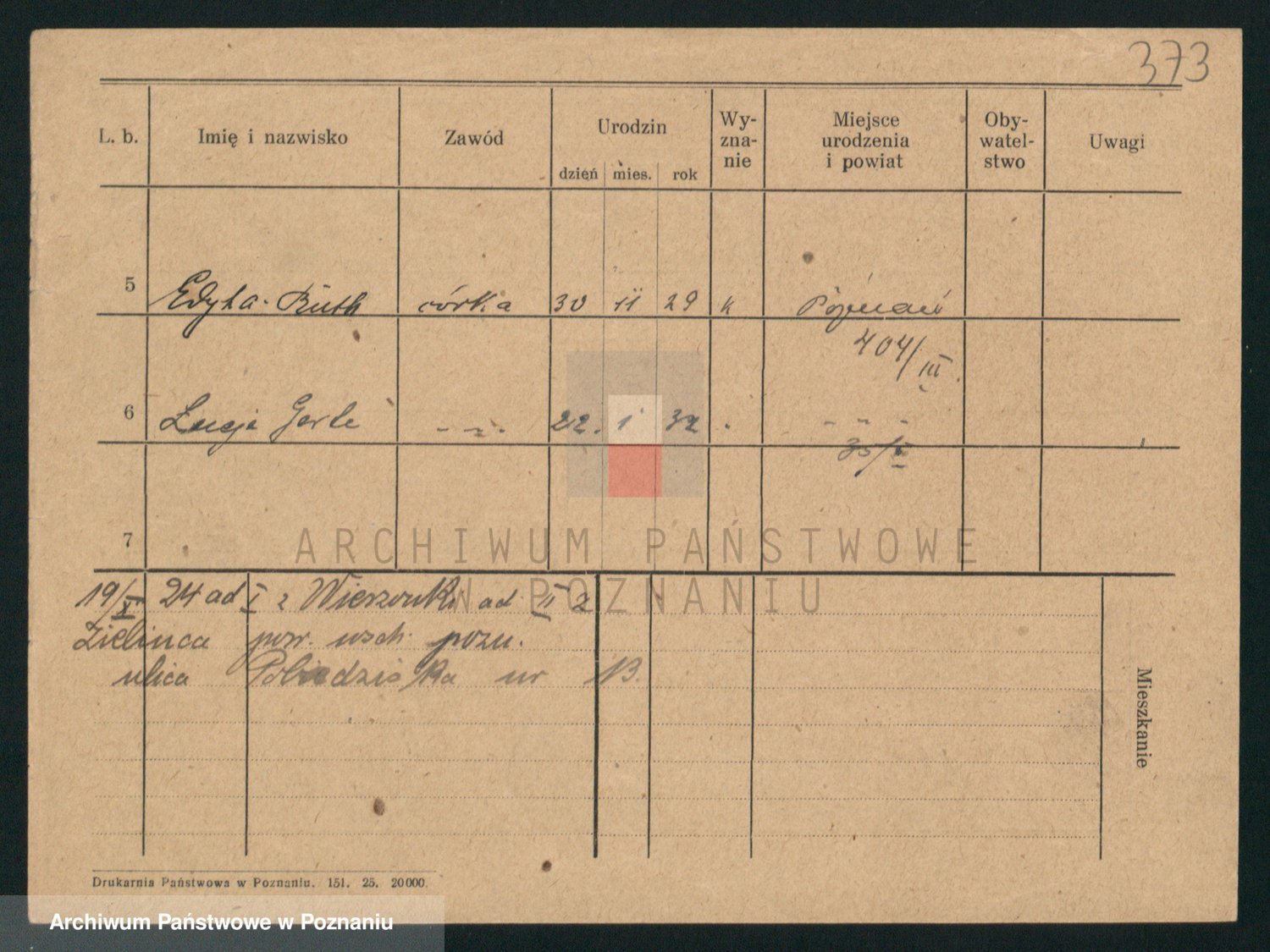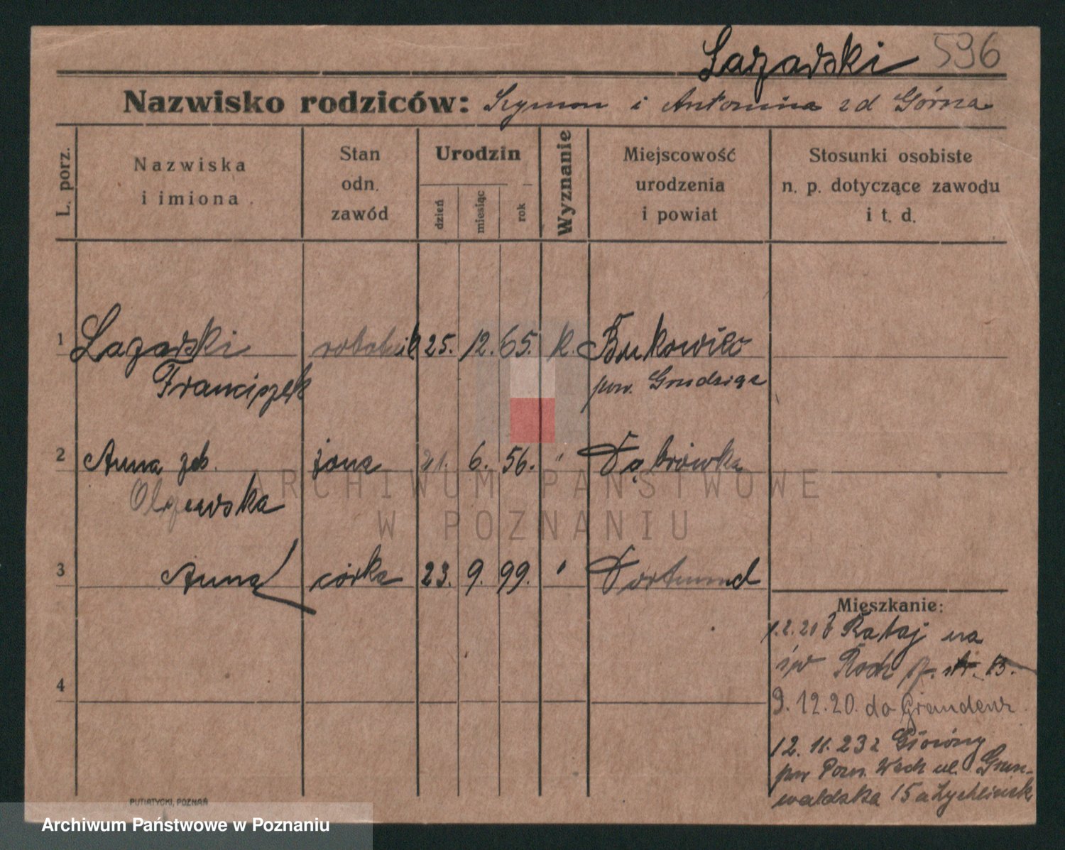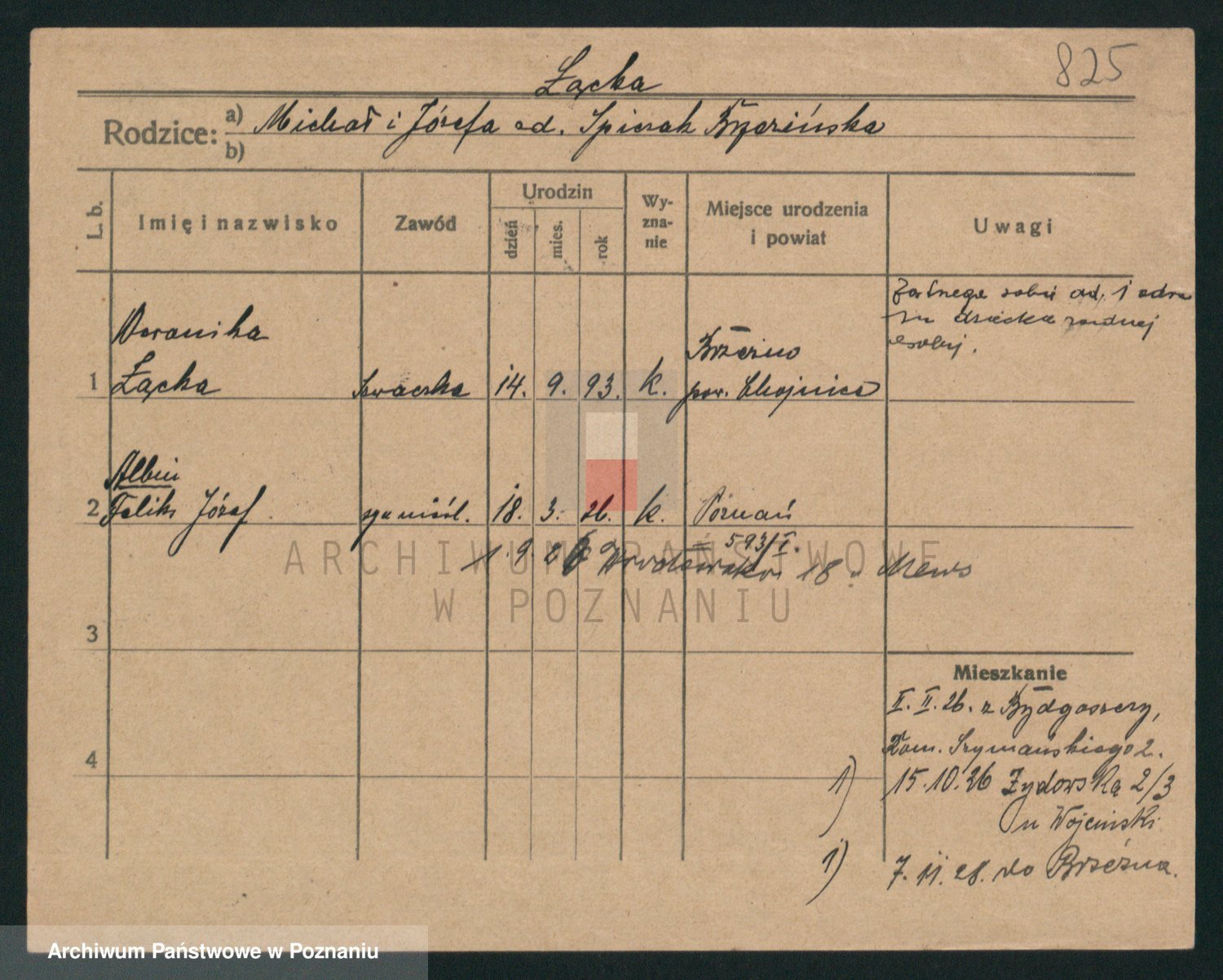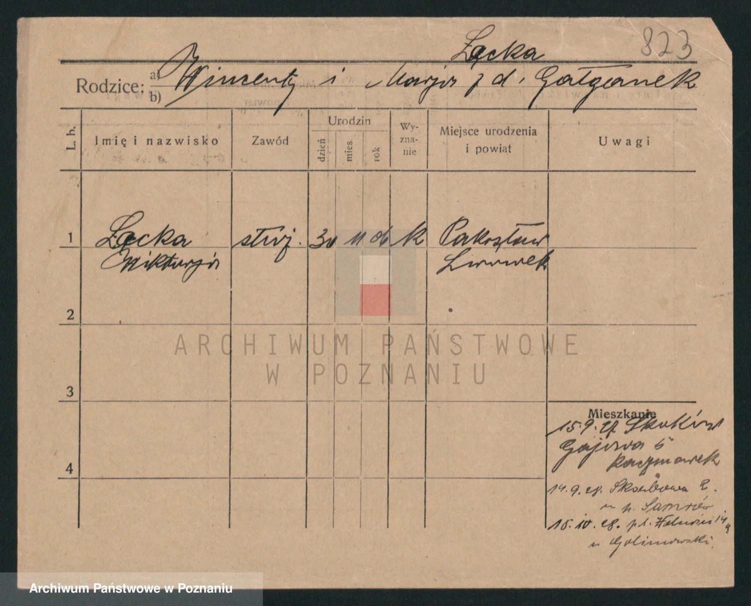 Podgląd karty osobowej dostępny jest po kliknięciu na nazwisko lub ikonkę karty. Można dokonywać powiększenia (ikony na górze) lub przechodzić między kolejnymi skanami (strzałki po bokach).