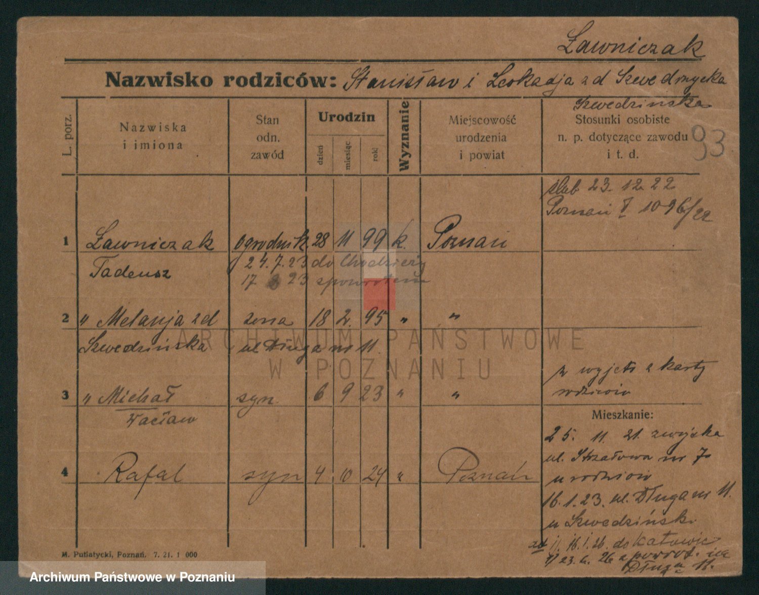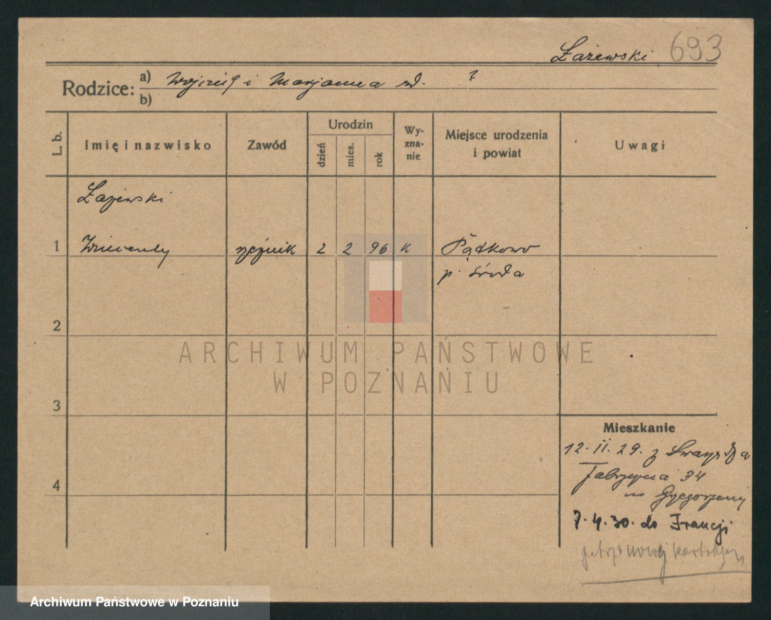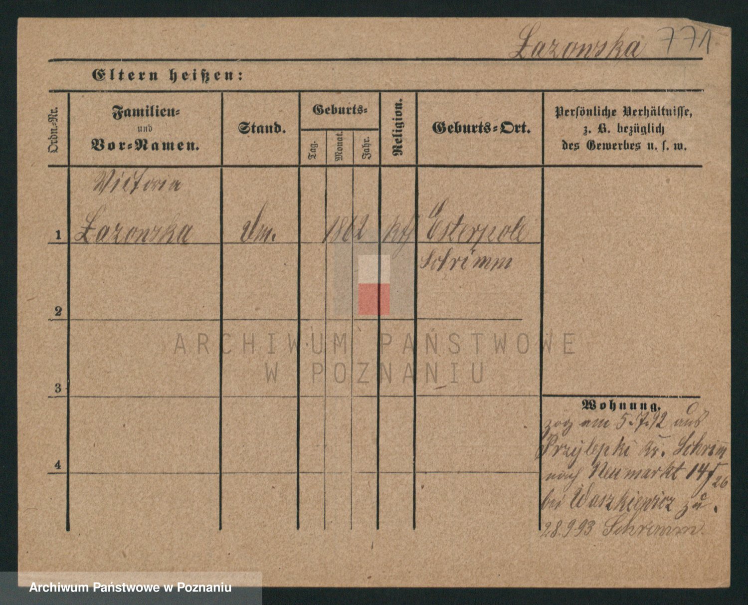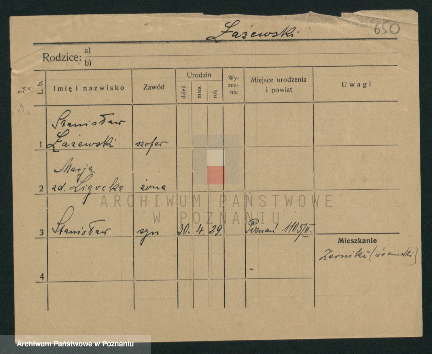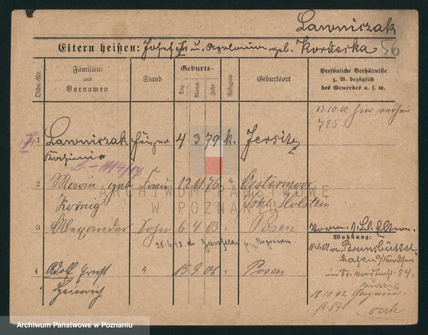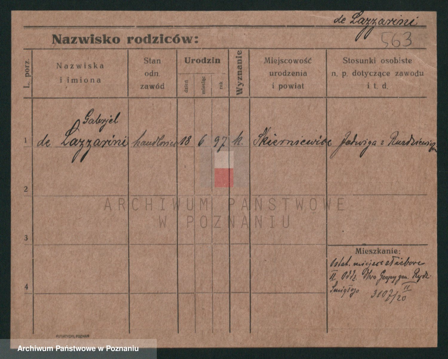 Podgląd karty osobowej dostępny jest po kliknięciu na nazwisko lub ikonkę karty. Można dokonywać powiększenia (ikony na górze) lub przechodzić między kolejnymi skanami (strzałki po bokach).