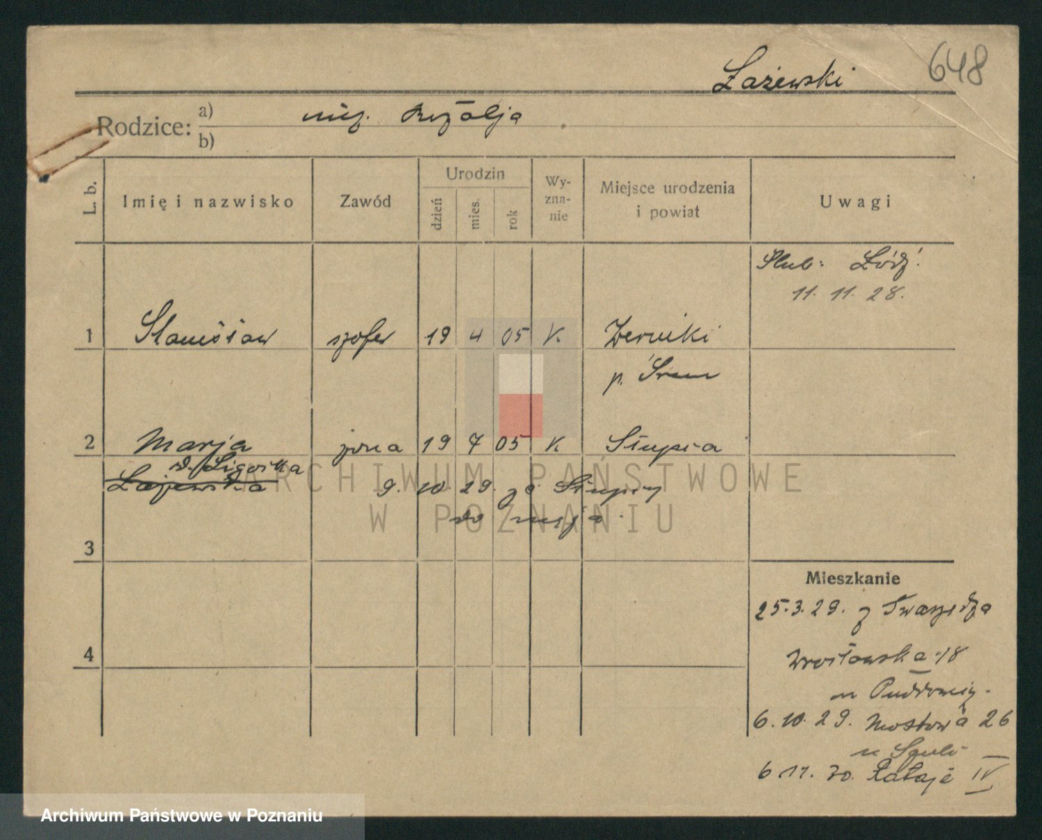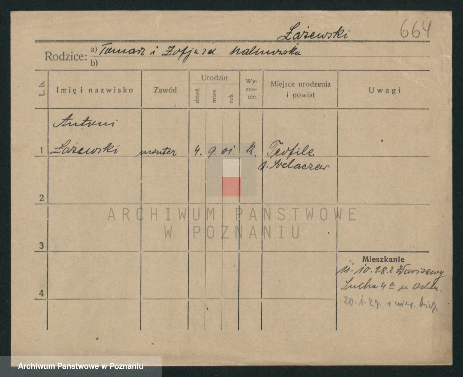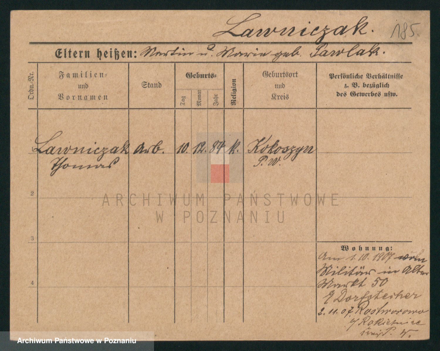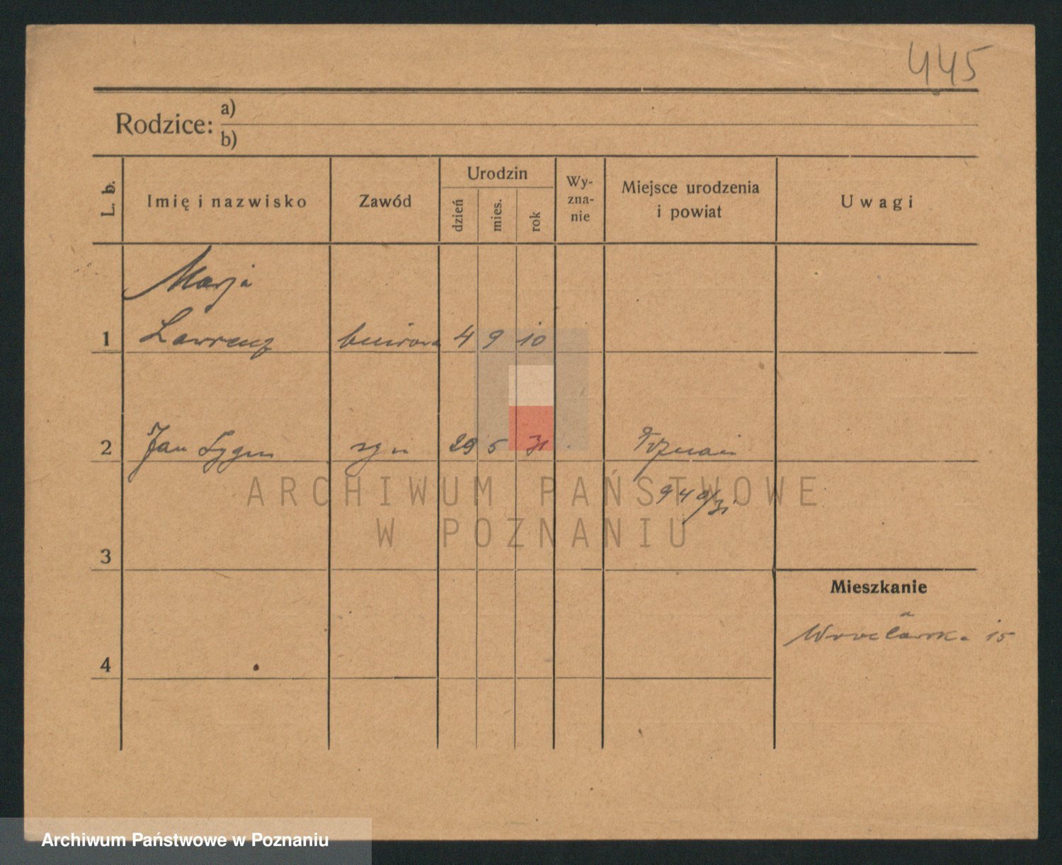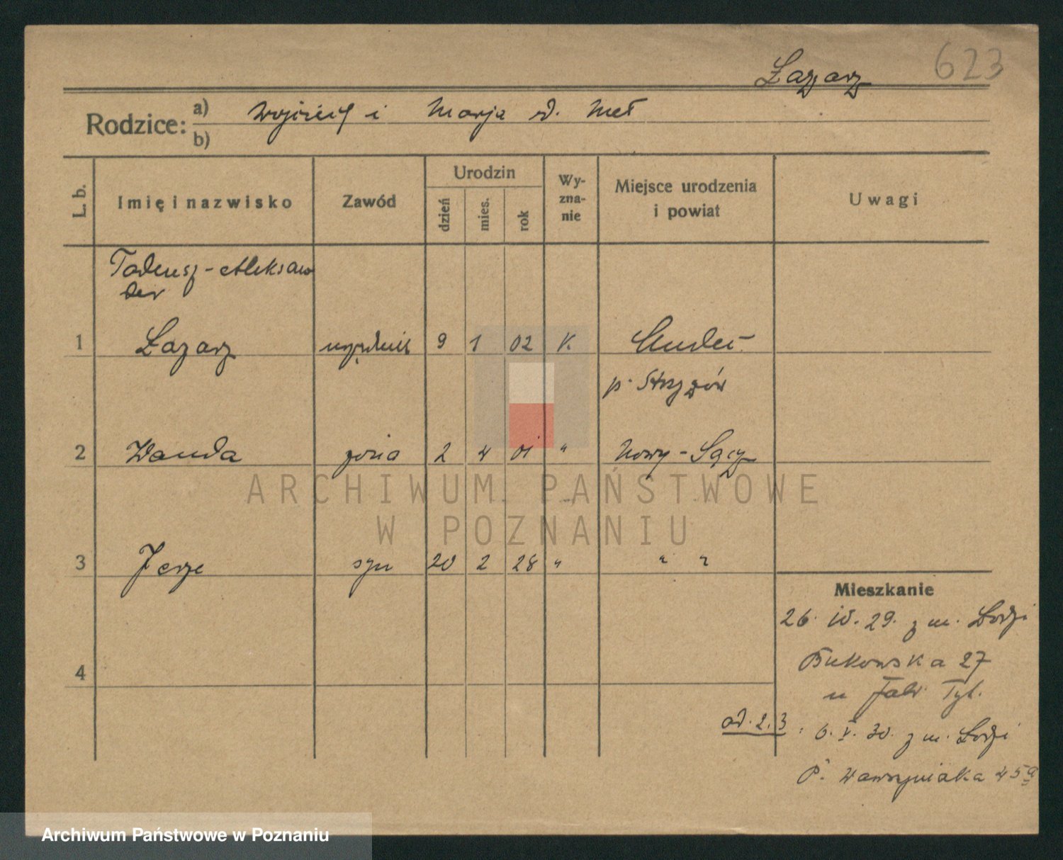 Podgląd karty osobowej dostępny jest po kliknięciu na nazwisko lub ikonkę karty. Można dokonywać powiększenia (ikony na górze) lub przechodzić między kolejnymi skanami (strzałki po bokach).
