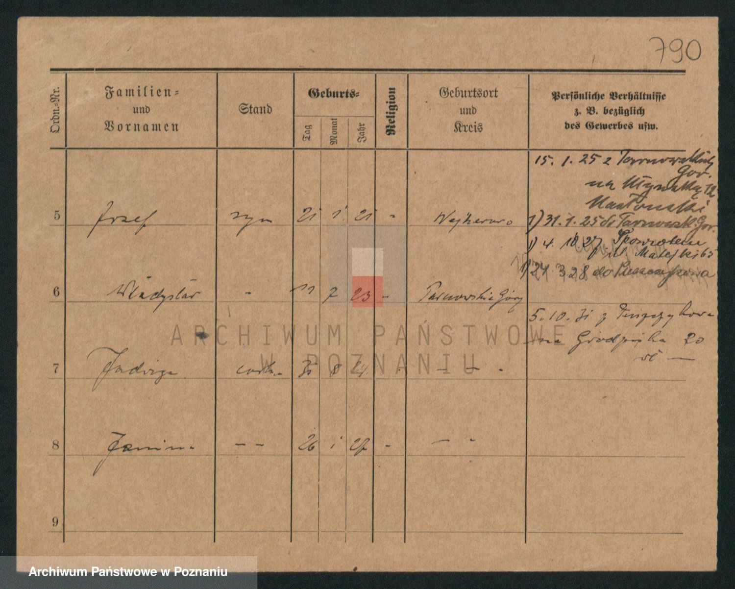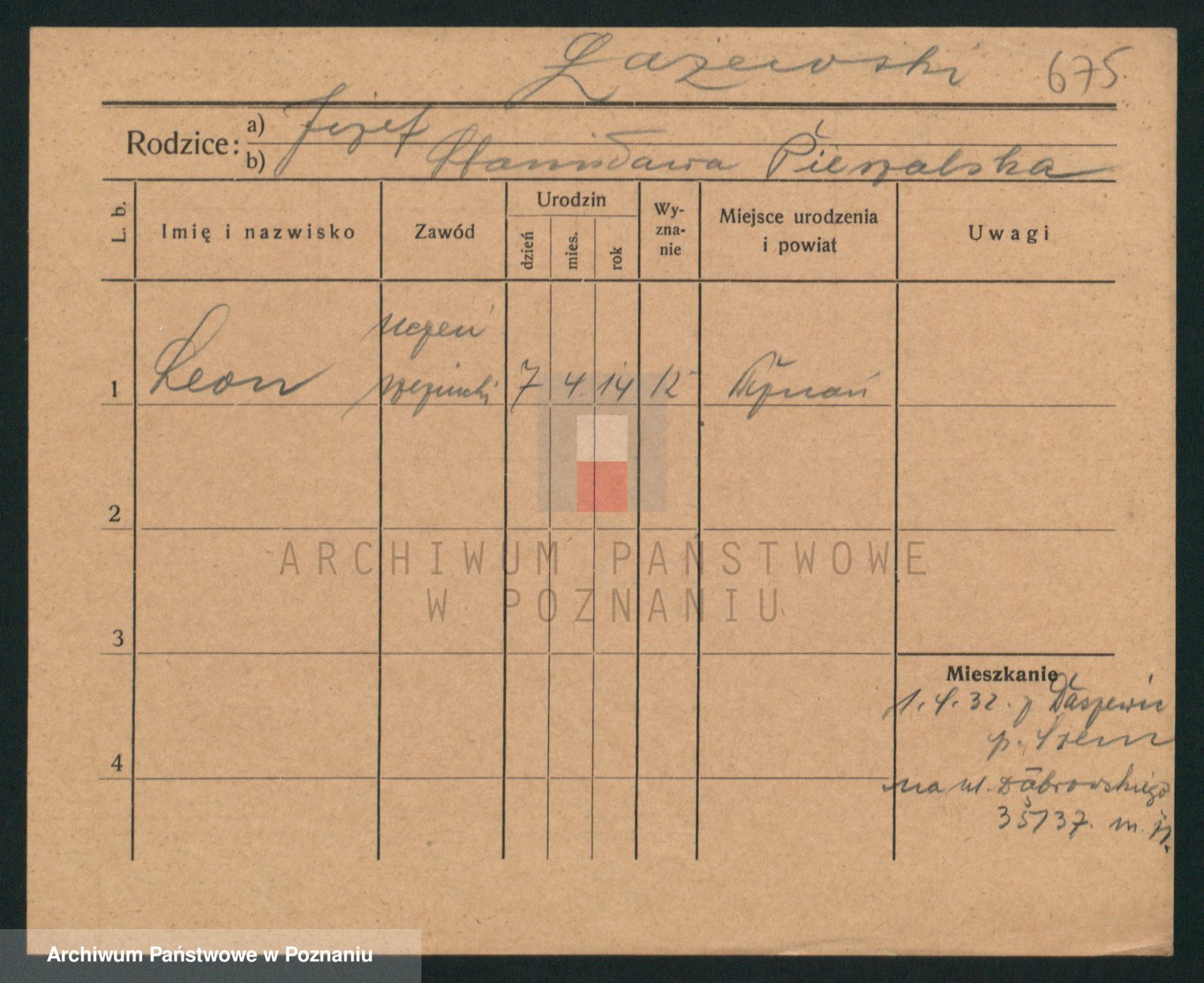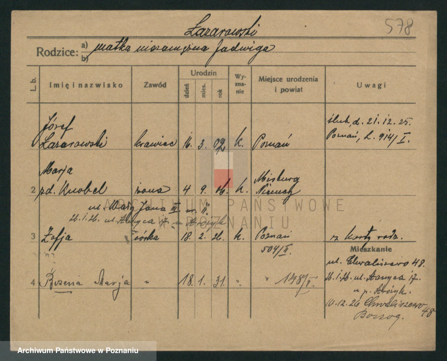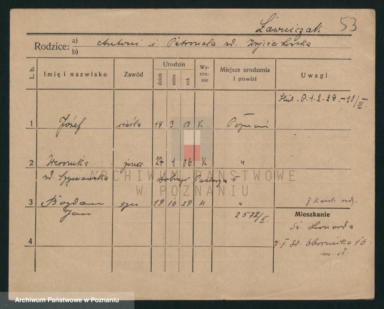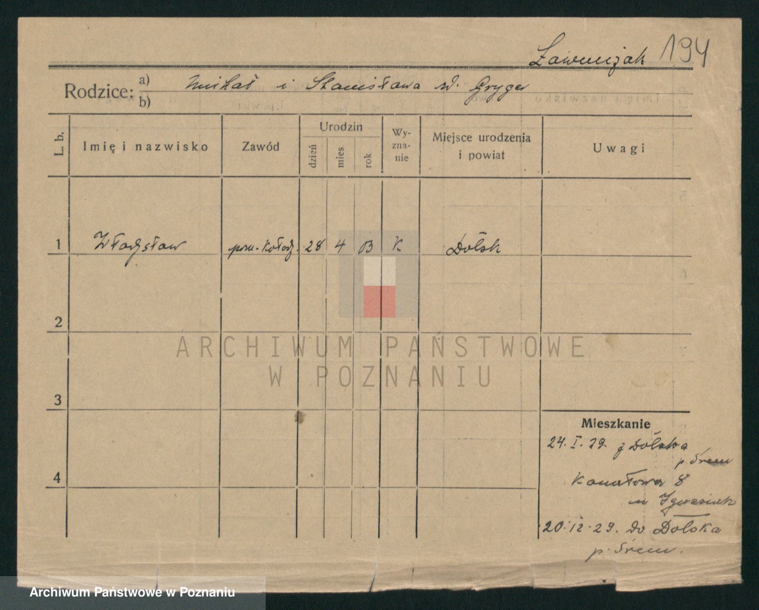 Podgląd karty osobowej dostępny jest po kliknięciu na nazwisko lub ikonkę karty. Można dokonywać powiększenia (ikony na górze) lub przechodzić między kolejnymi skanami (strzałki po bokach).