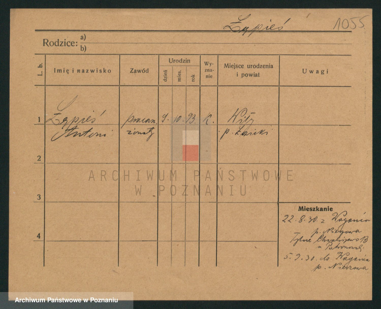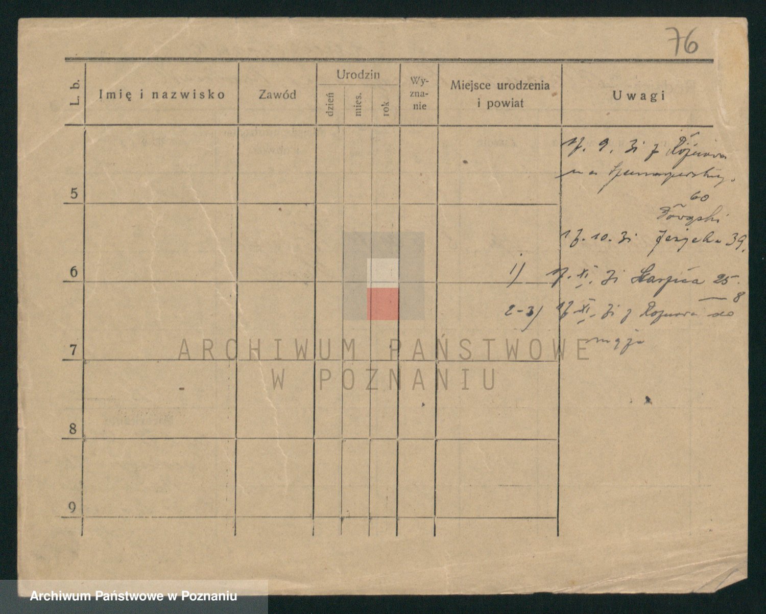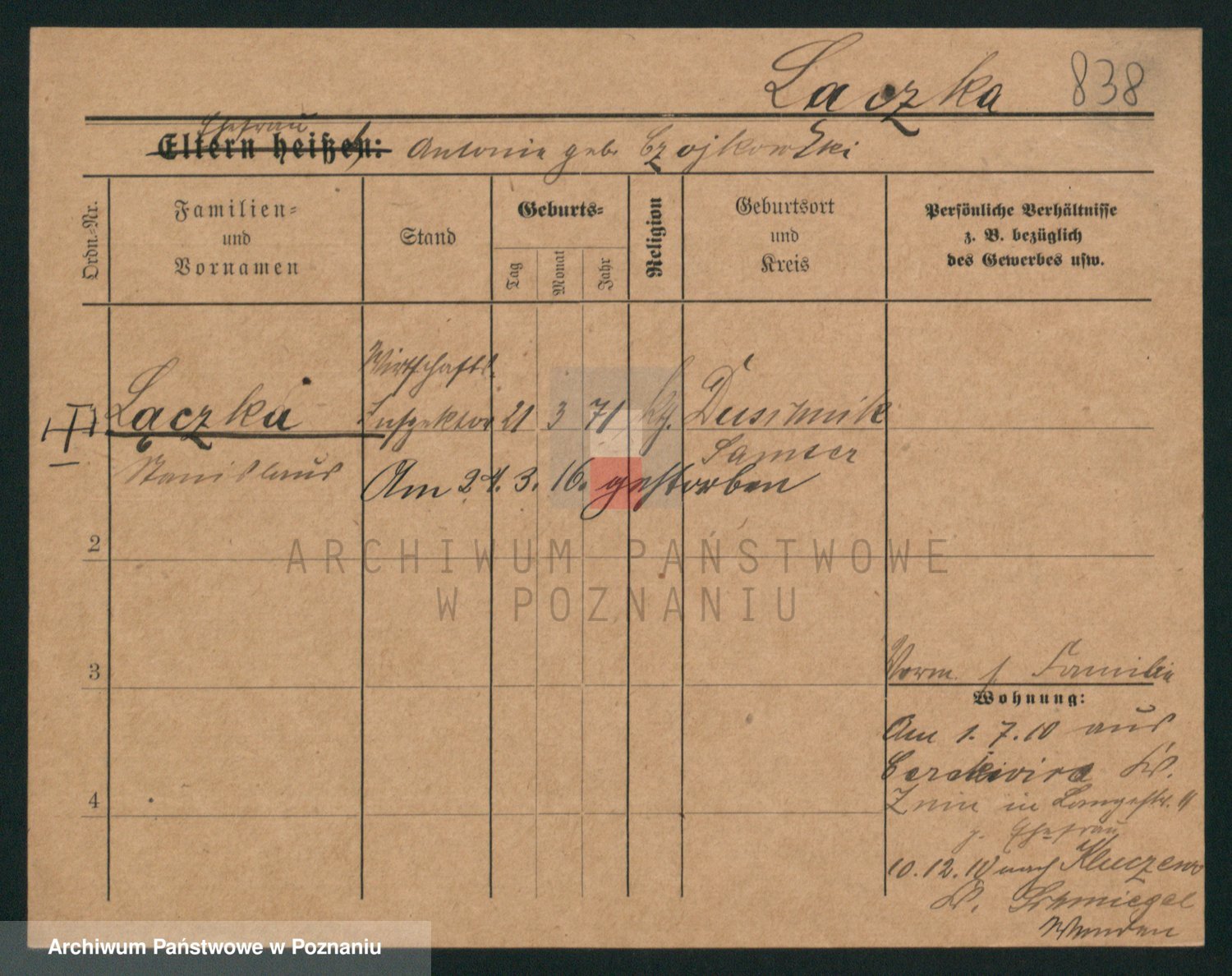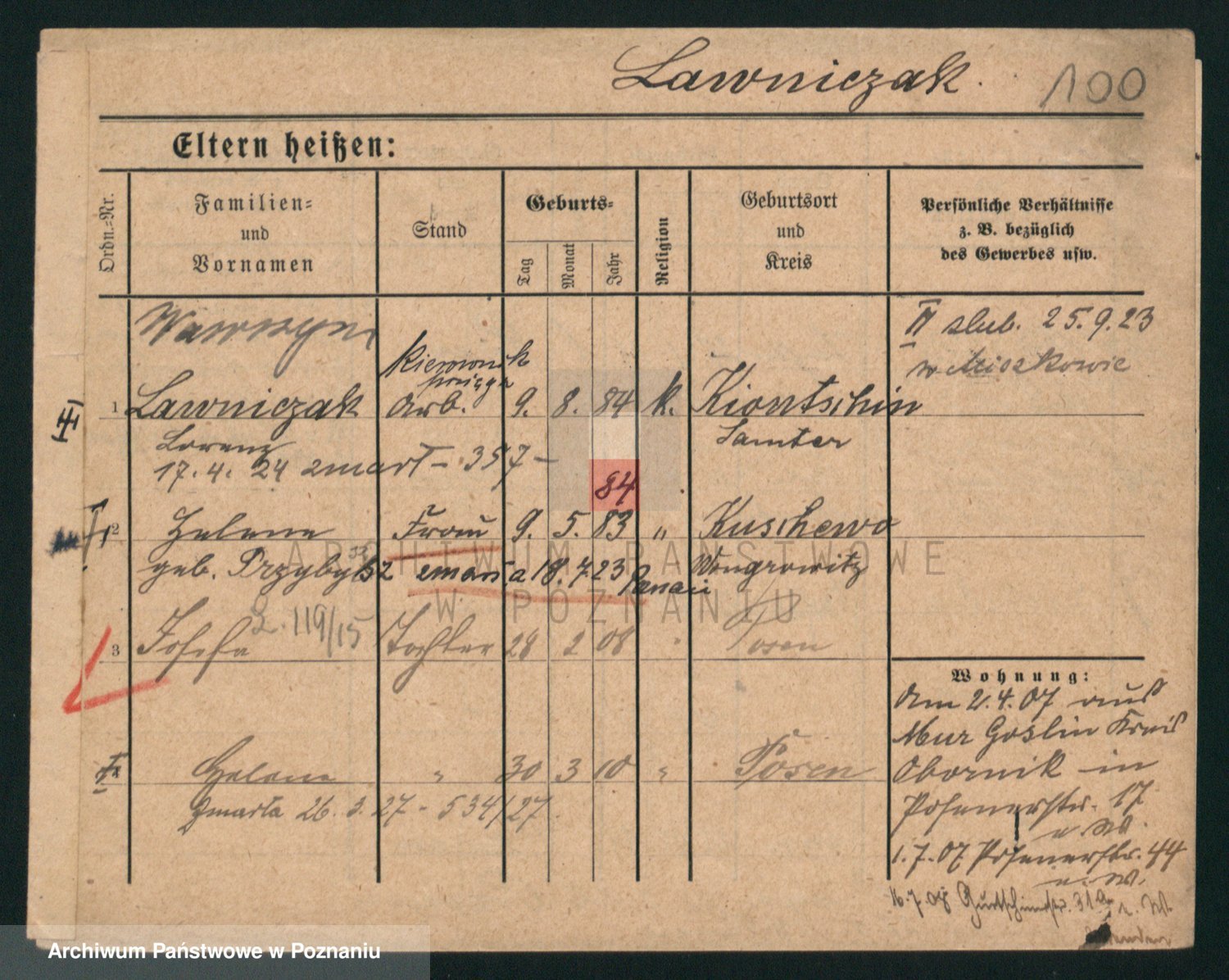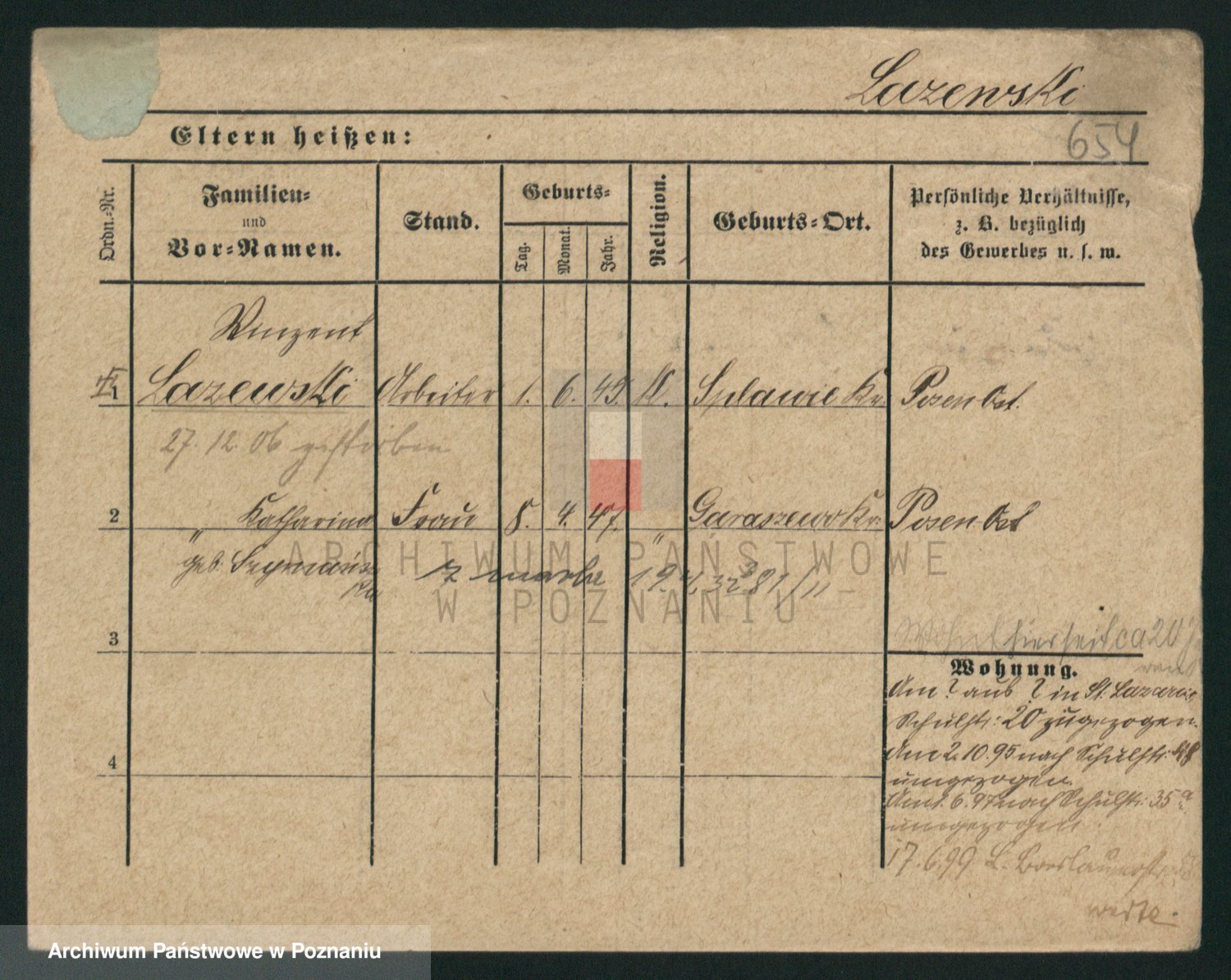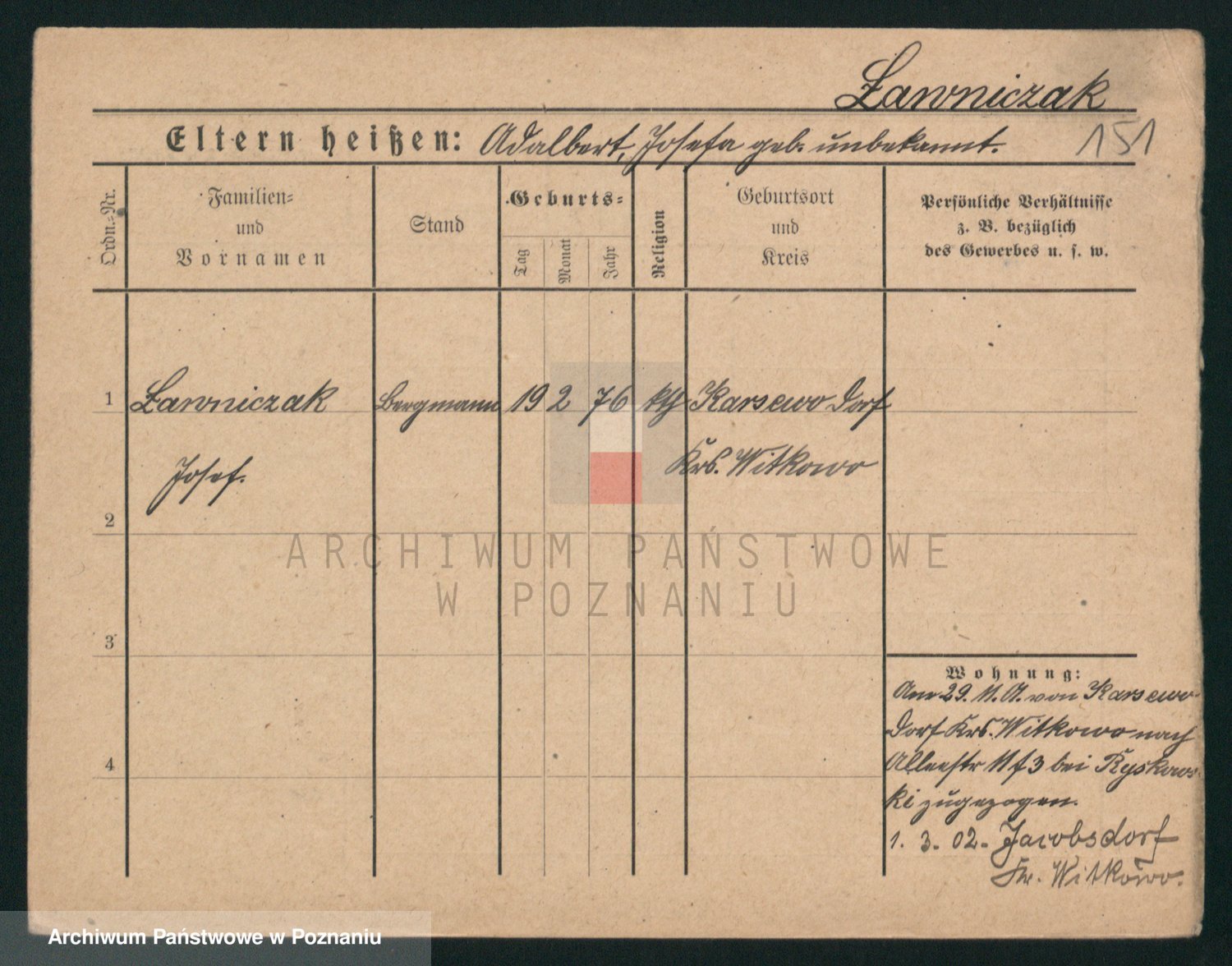 Podgląd karty osobowej dostępny jest po kliknięciu na nazwisko lub ikonkę karty. Można dokonywać powiększenia (ikony na górze) lub przechodzić między kolejnymi skanami (strzałki po bokach).