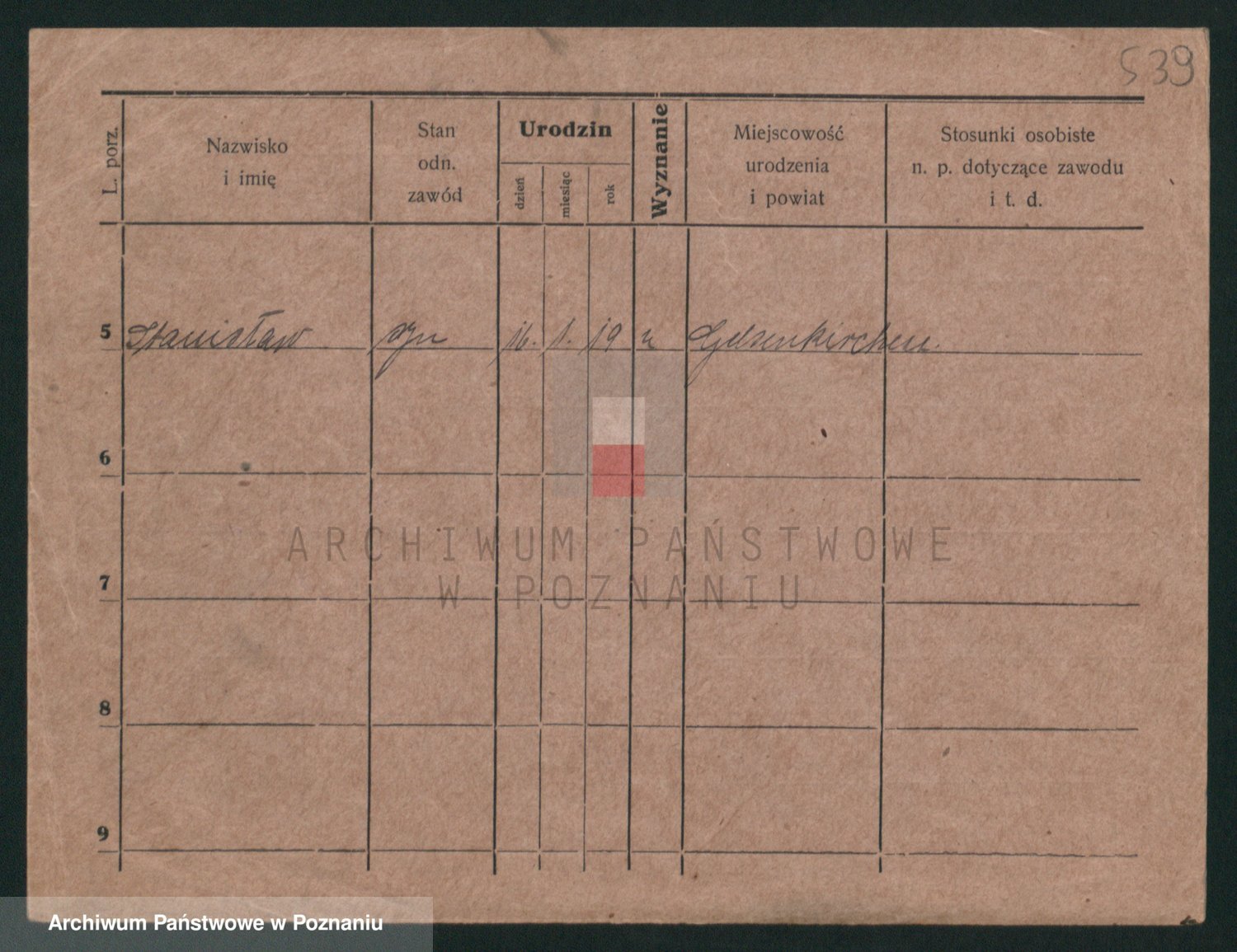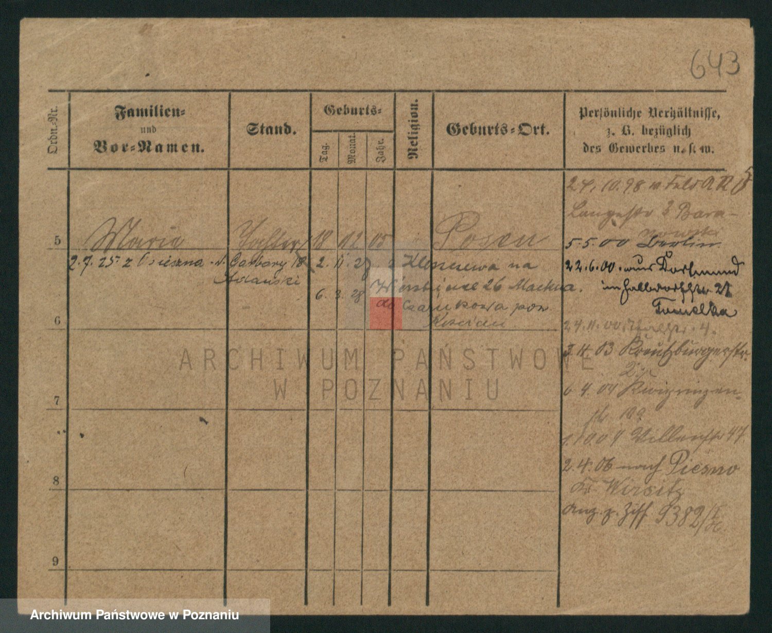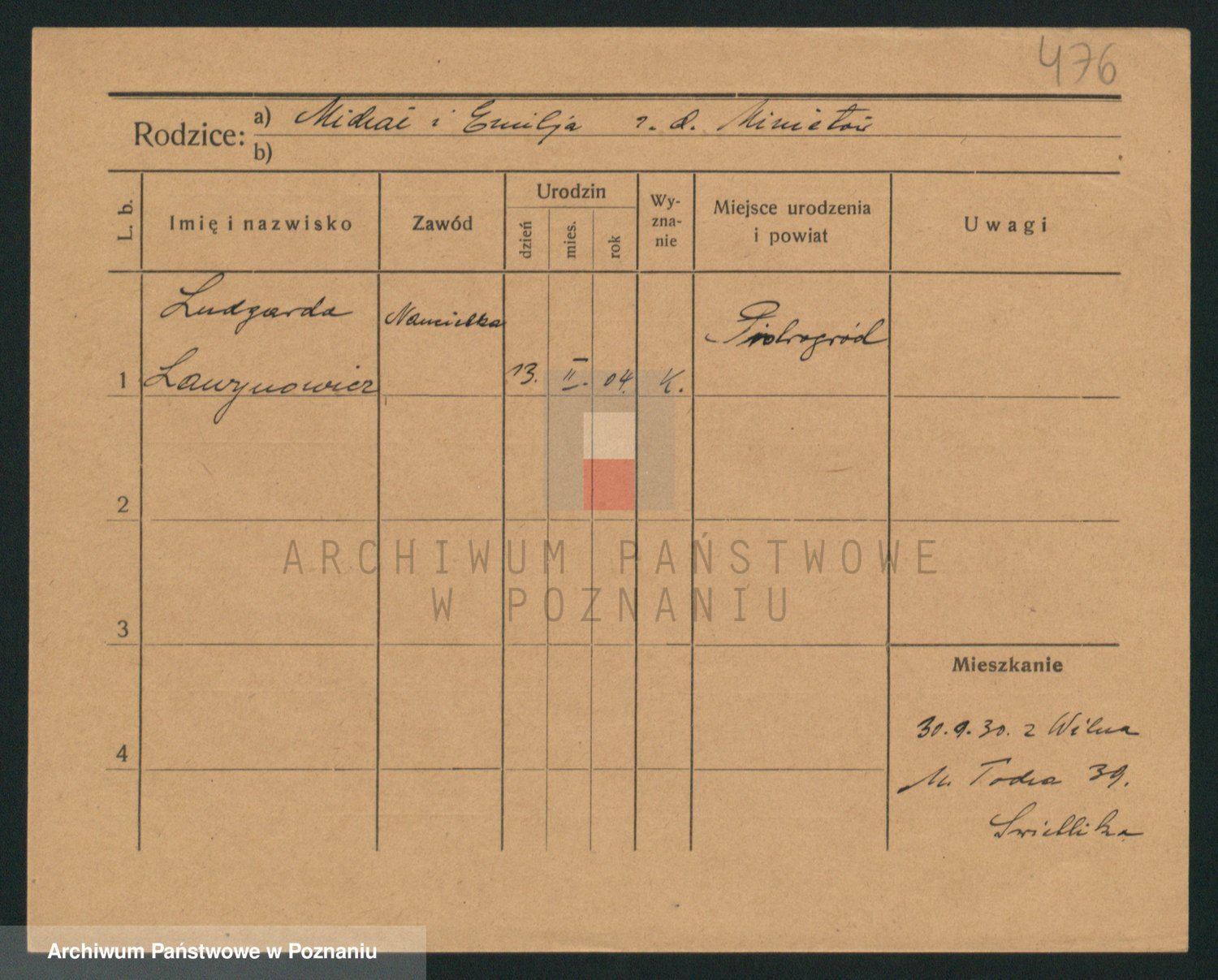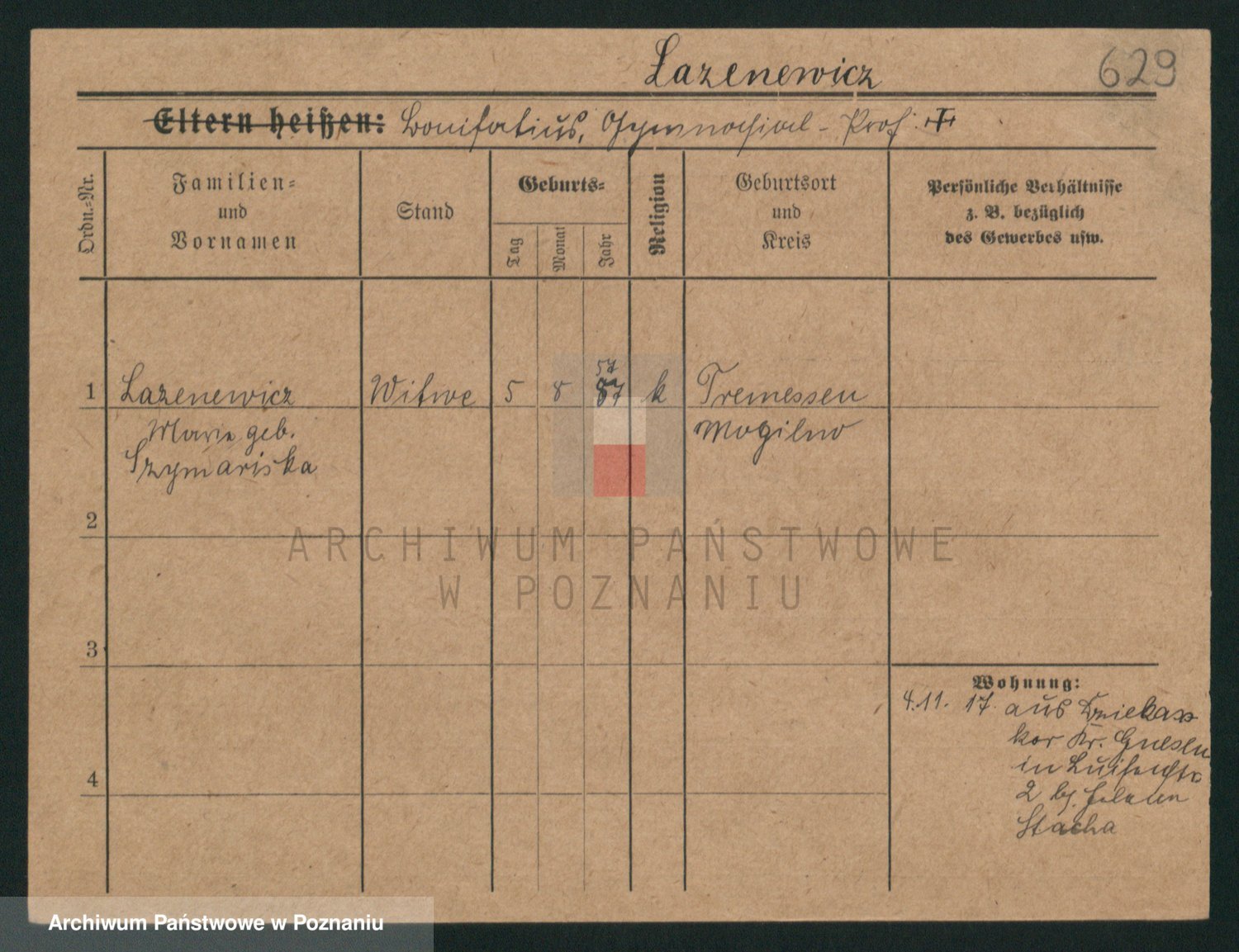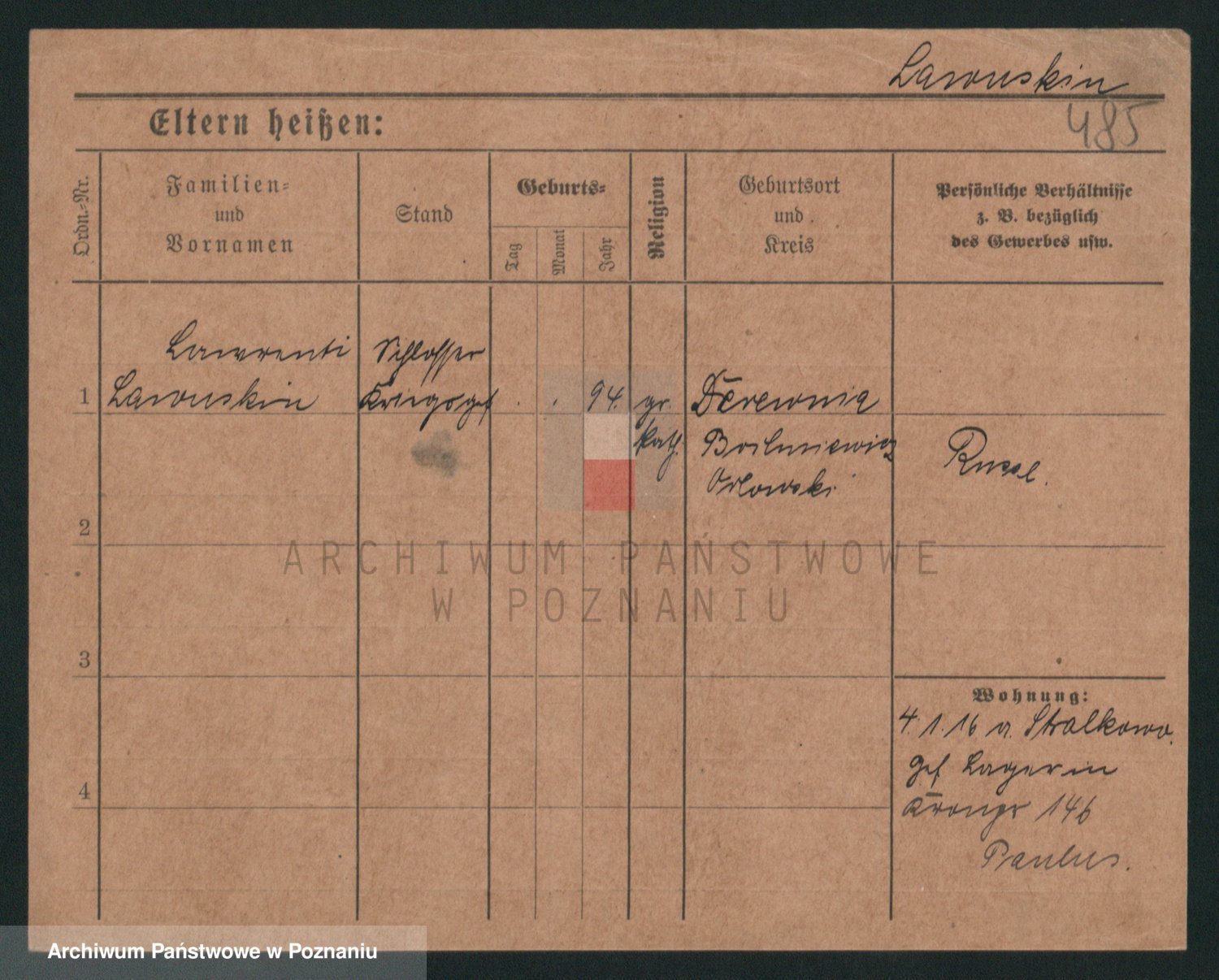 Podgląd karty osobowej dostępny jest po kliknięciu na nazwisko lub ikonkę karty. Można dokonywać powiększenia (ikony na górze) lub przechodzić między kolejnymi skanami (strzałki po bokach).
