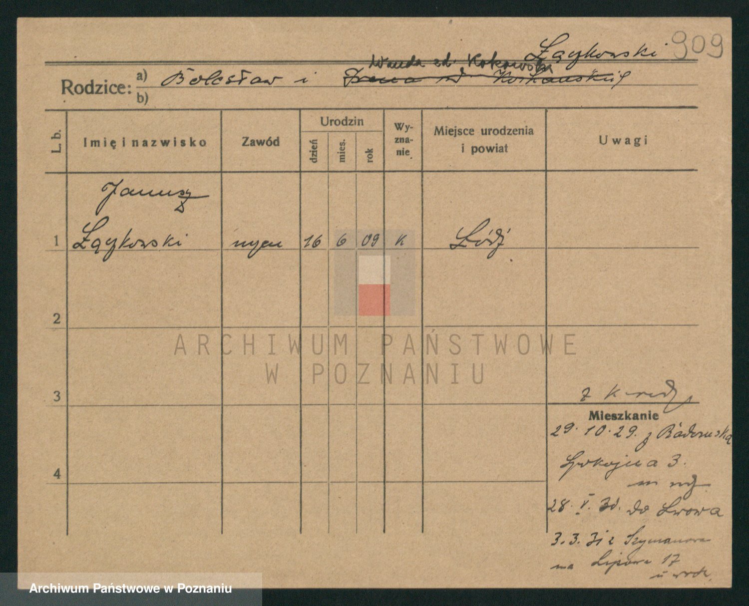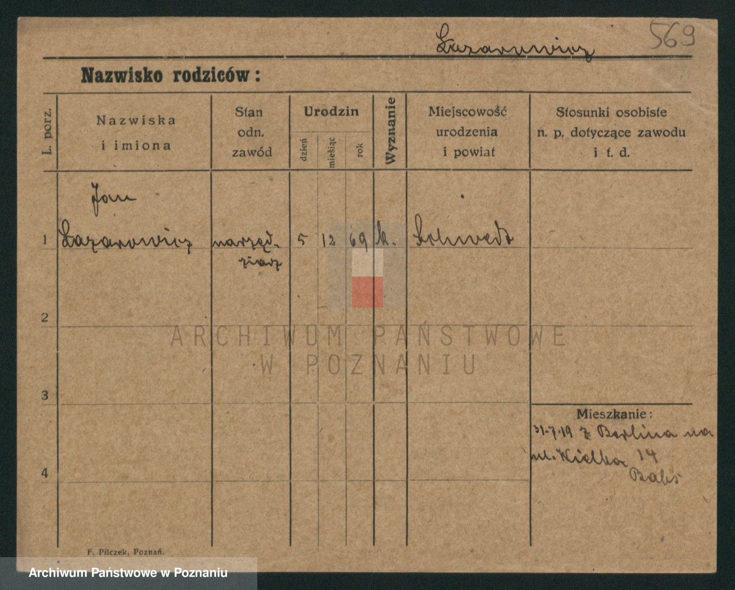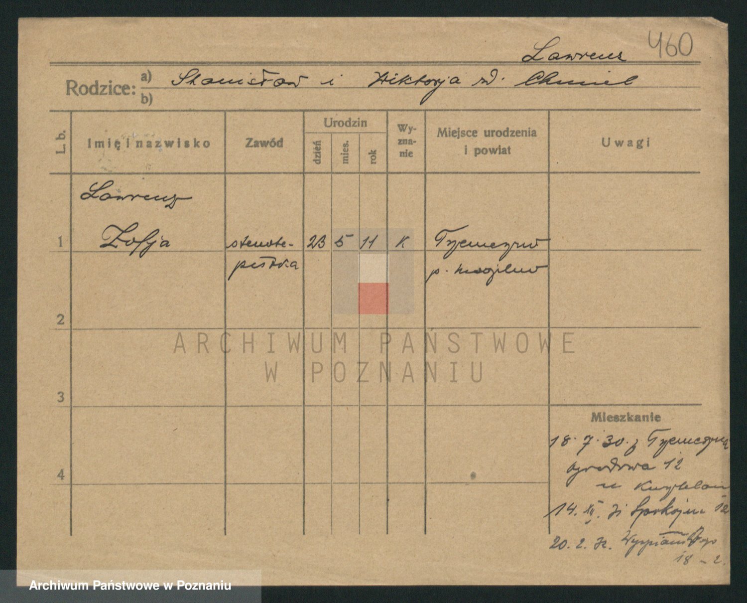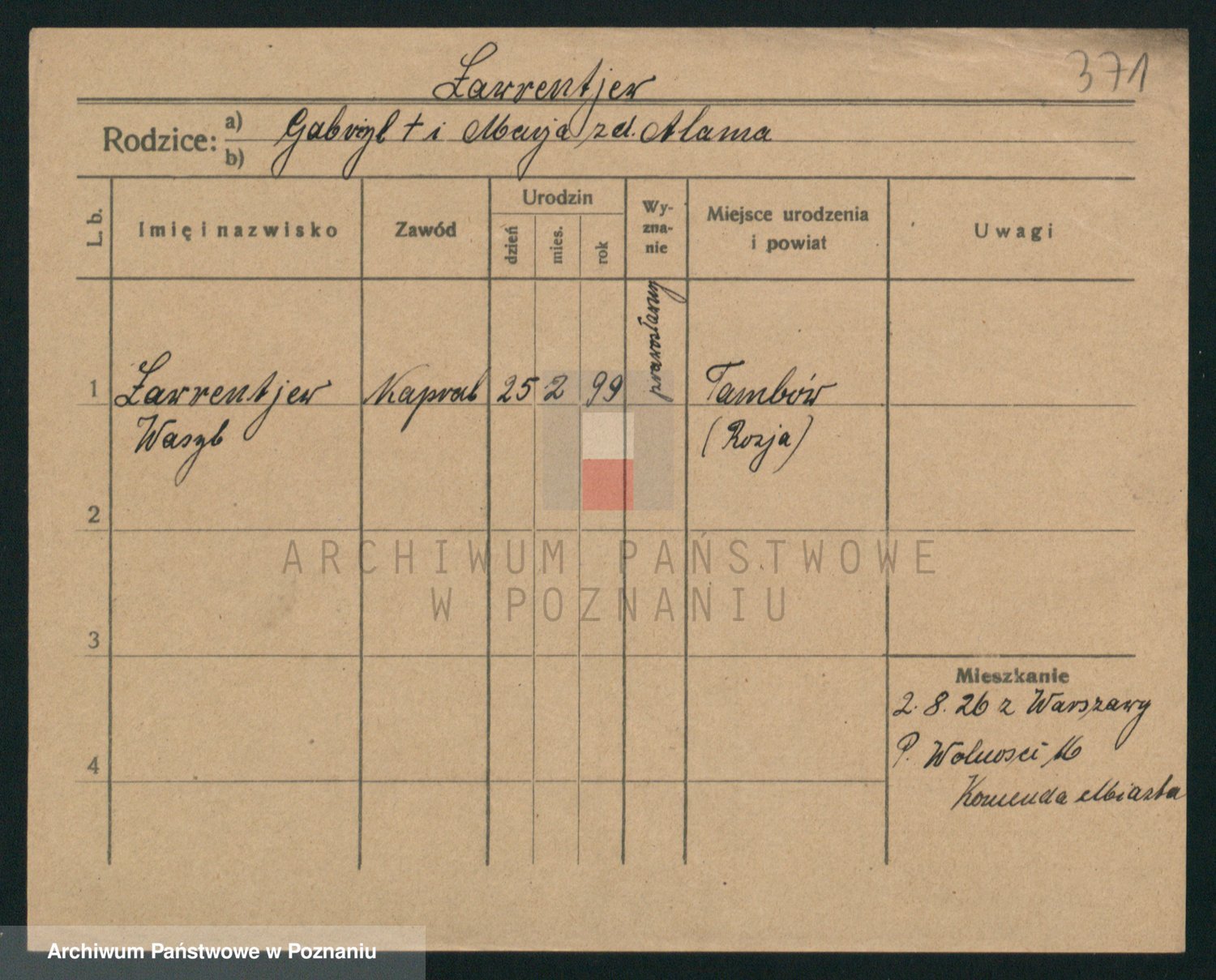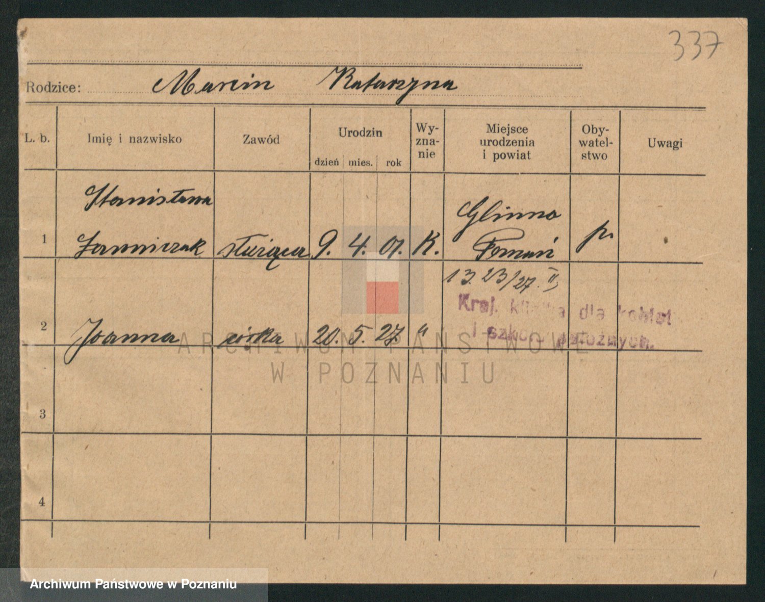 Podgląd karty osobowej dostępny jest po kliknięciu na nazwisko lub ikonkę karty. Można dokonywać powiększenia (ikony na górze) lub przechodzić między kolejnymi skanami (strzałki po bokach).