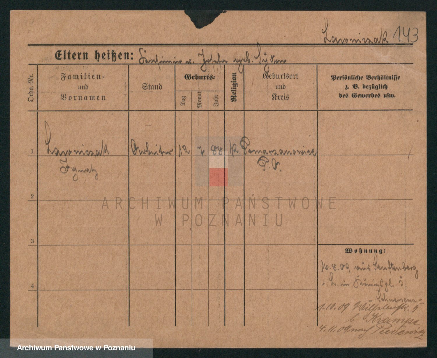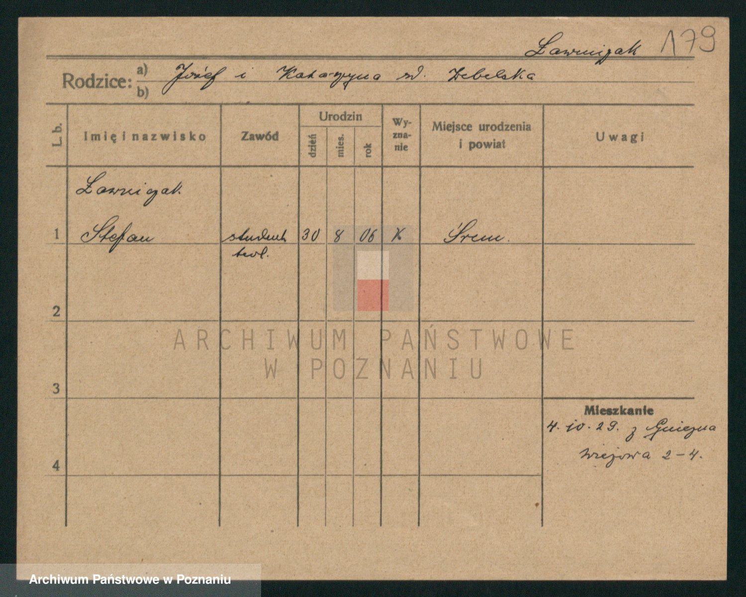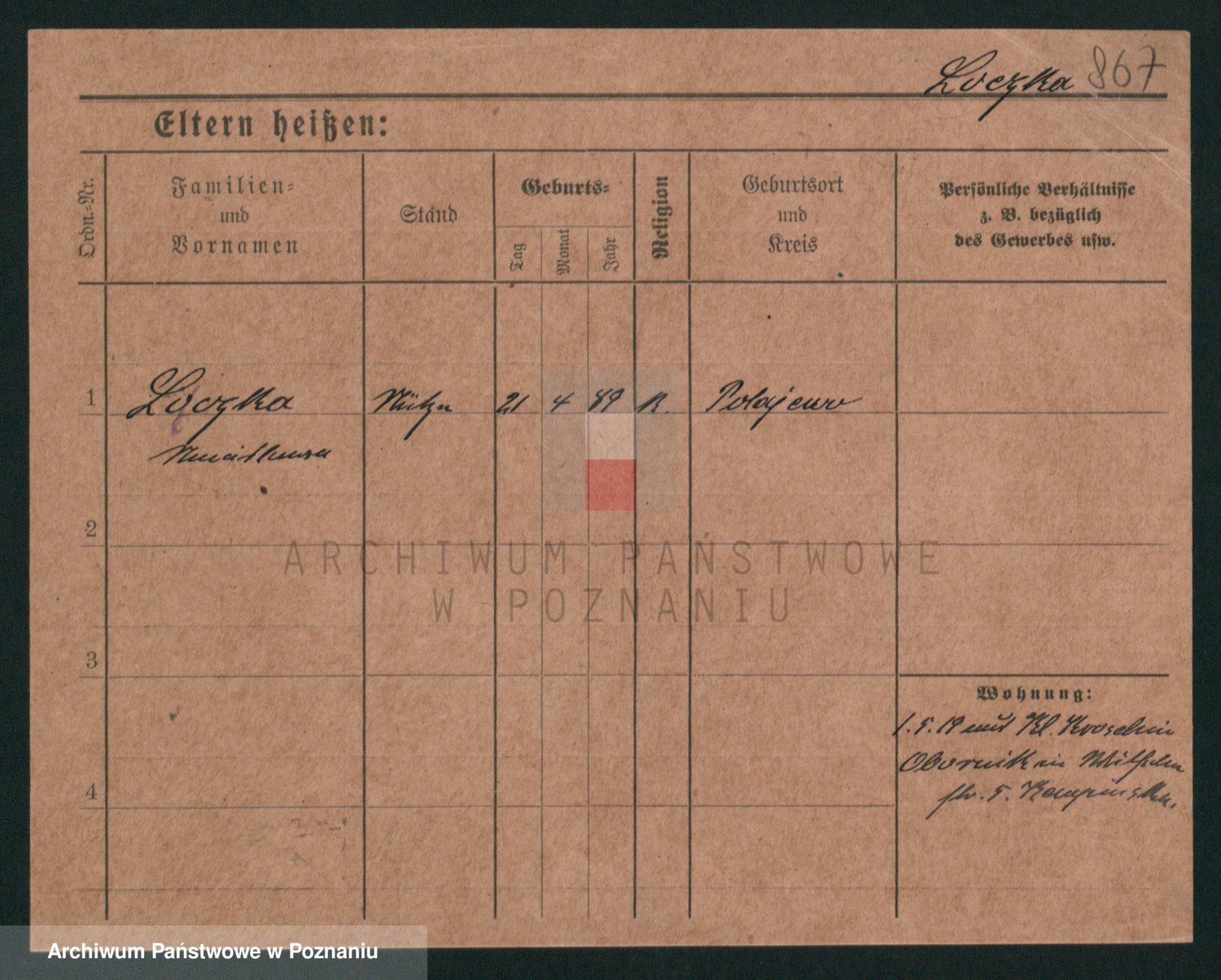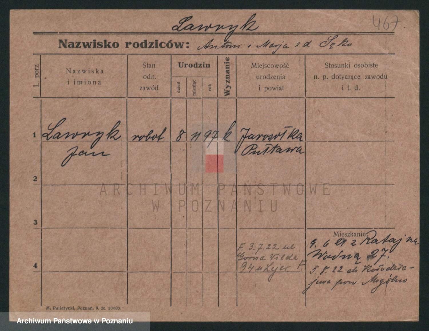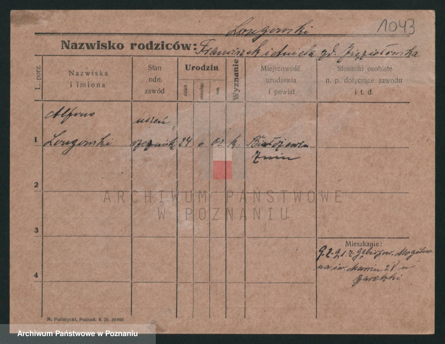 Podgląd karty osobowej dostępny jest po kliknięciu na nazwisko lub ikonkę karty. Można dokonywać powiększenia (ikony na górze) lub przechodzić między kolejnymi skanami (strzałki po bokach).