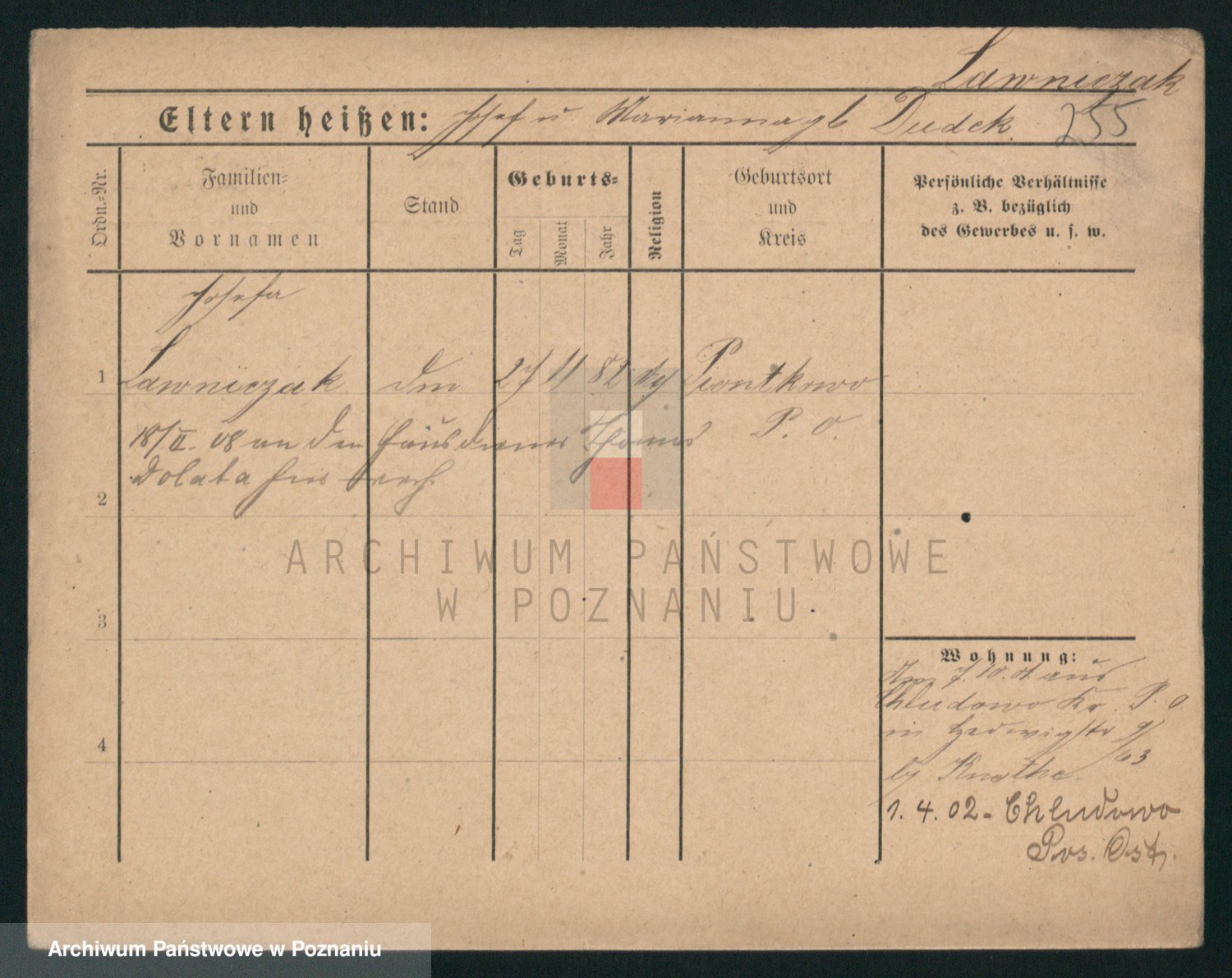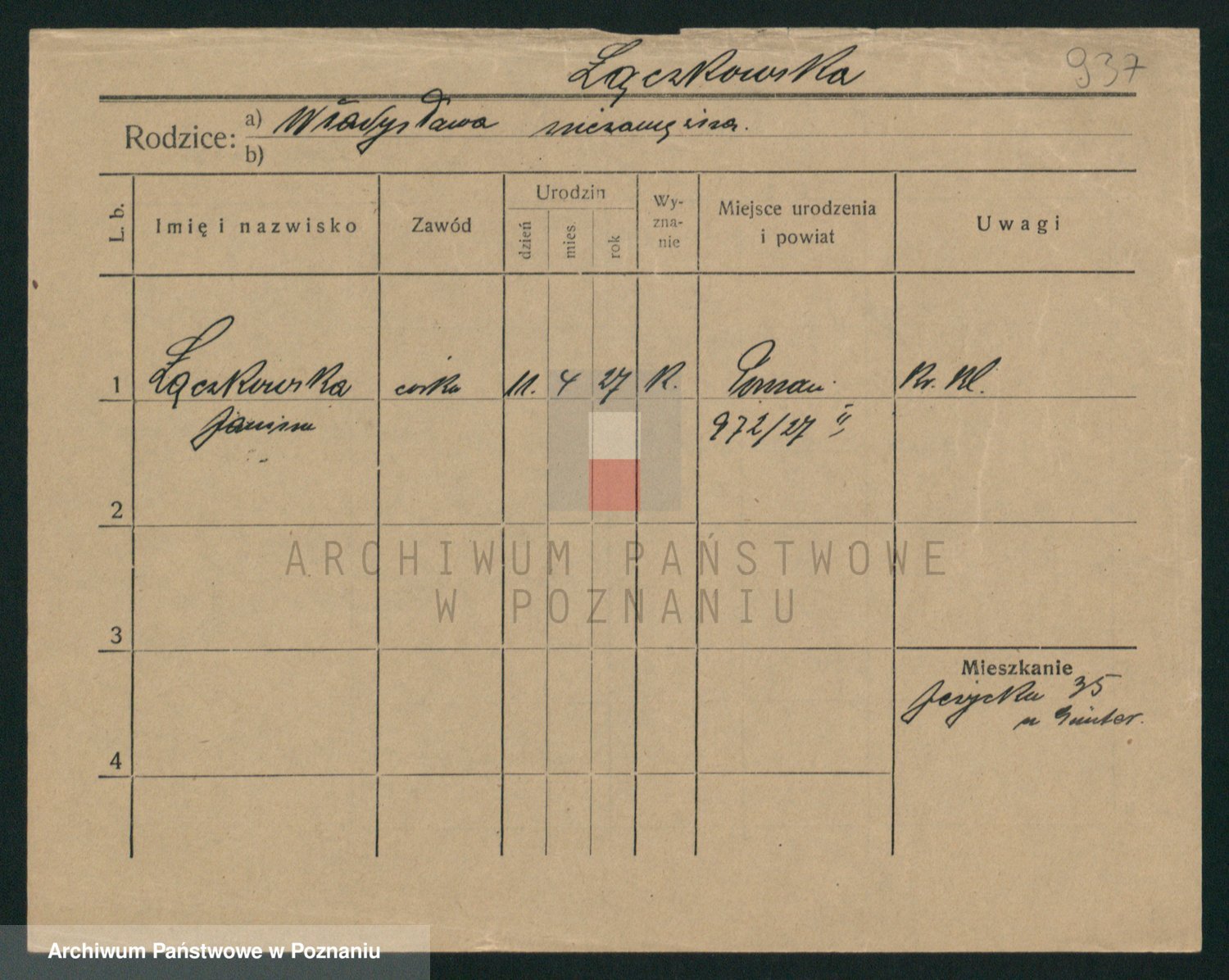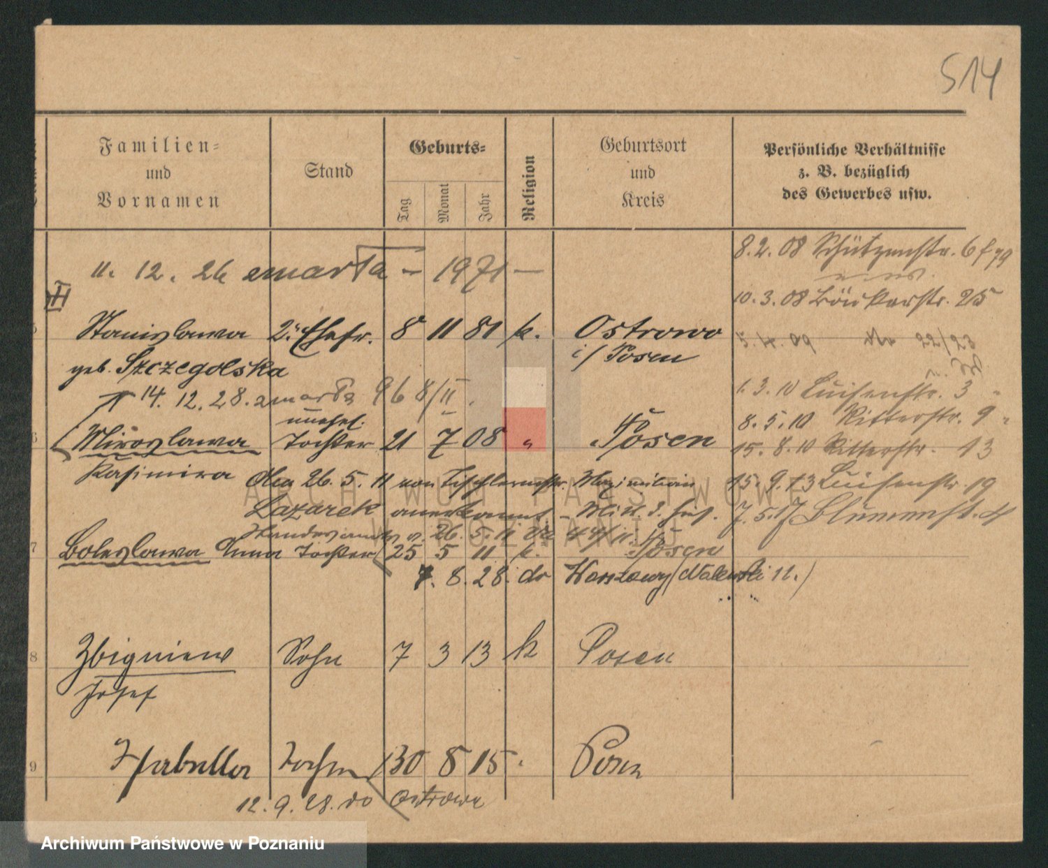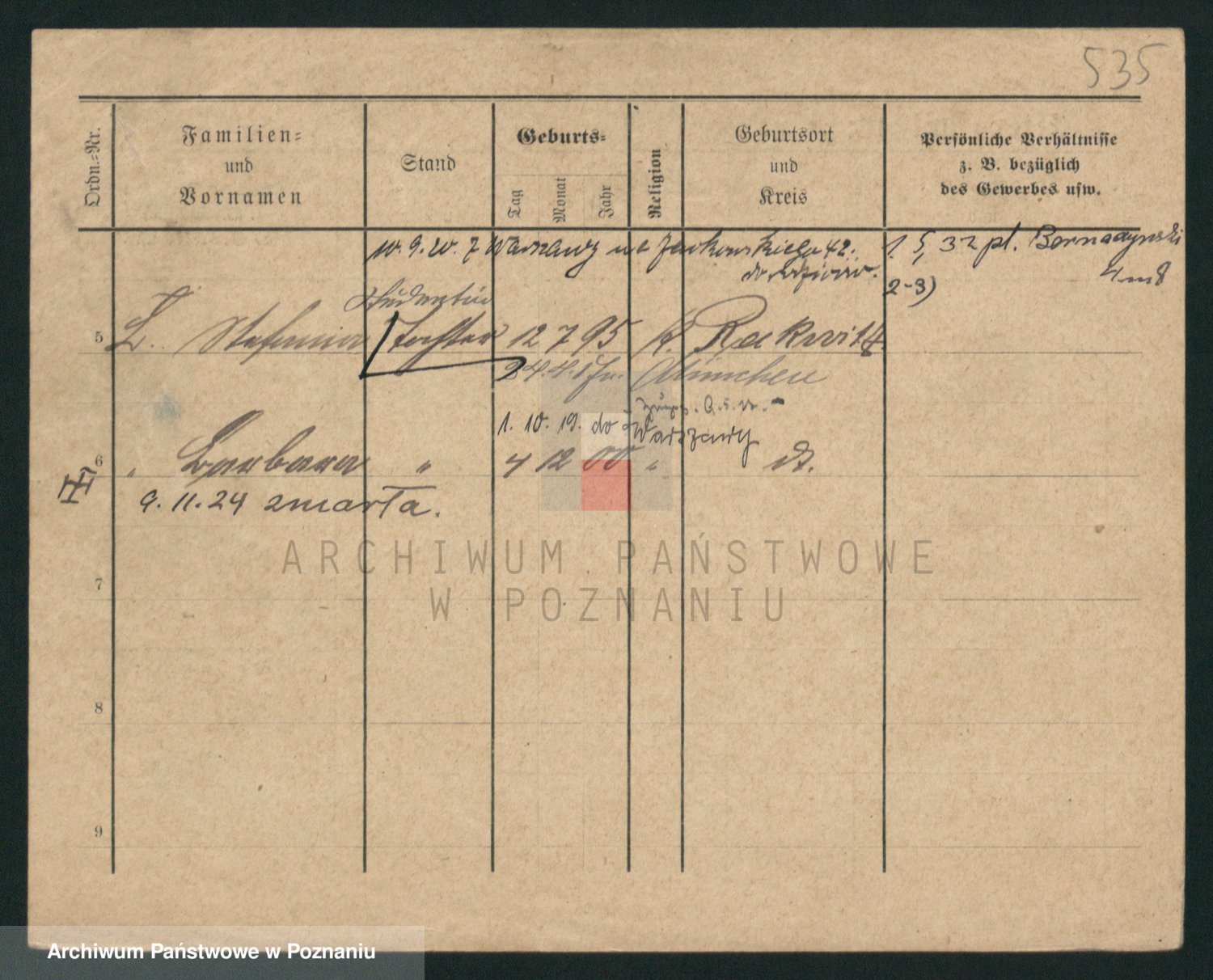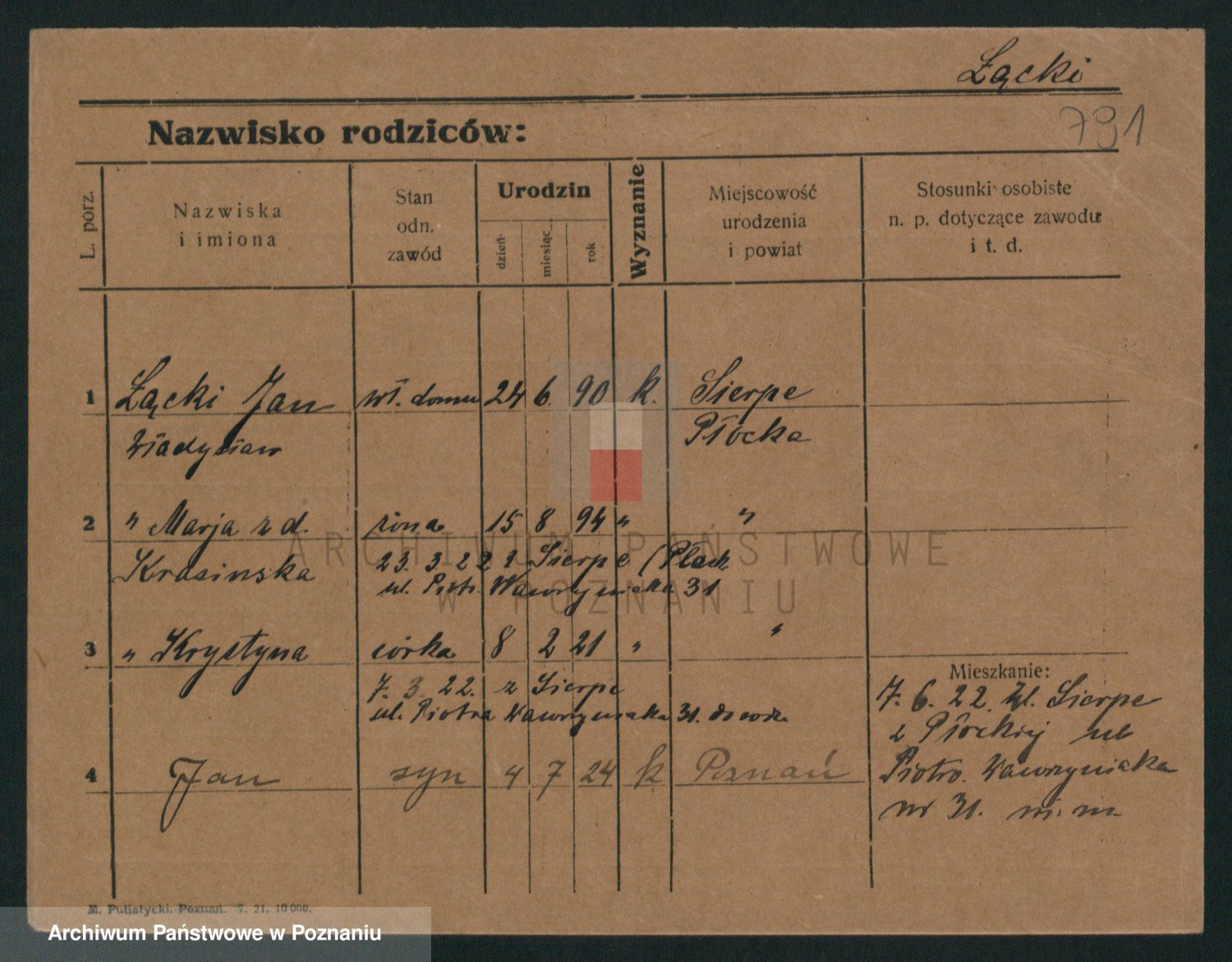 Podgląd karty osobowej dostępny jest po kliknięciu na nazwisko lub ikonkę karty. Można dokonywać powiększenia (ikony na górze) lub przechodzić między kolejnymi skanami (strzałki po bokach).