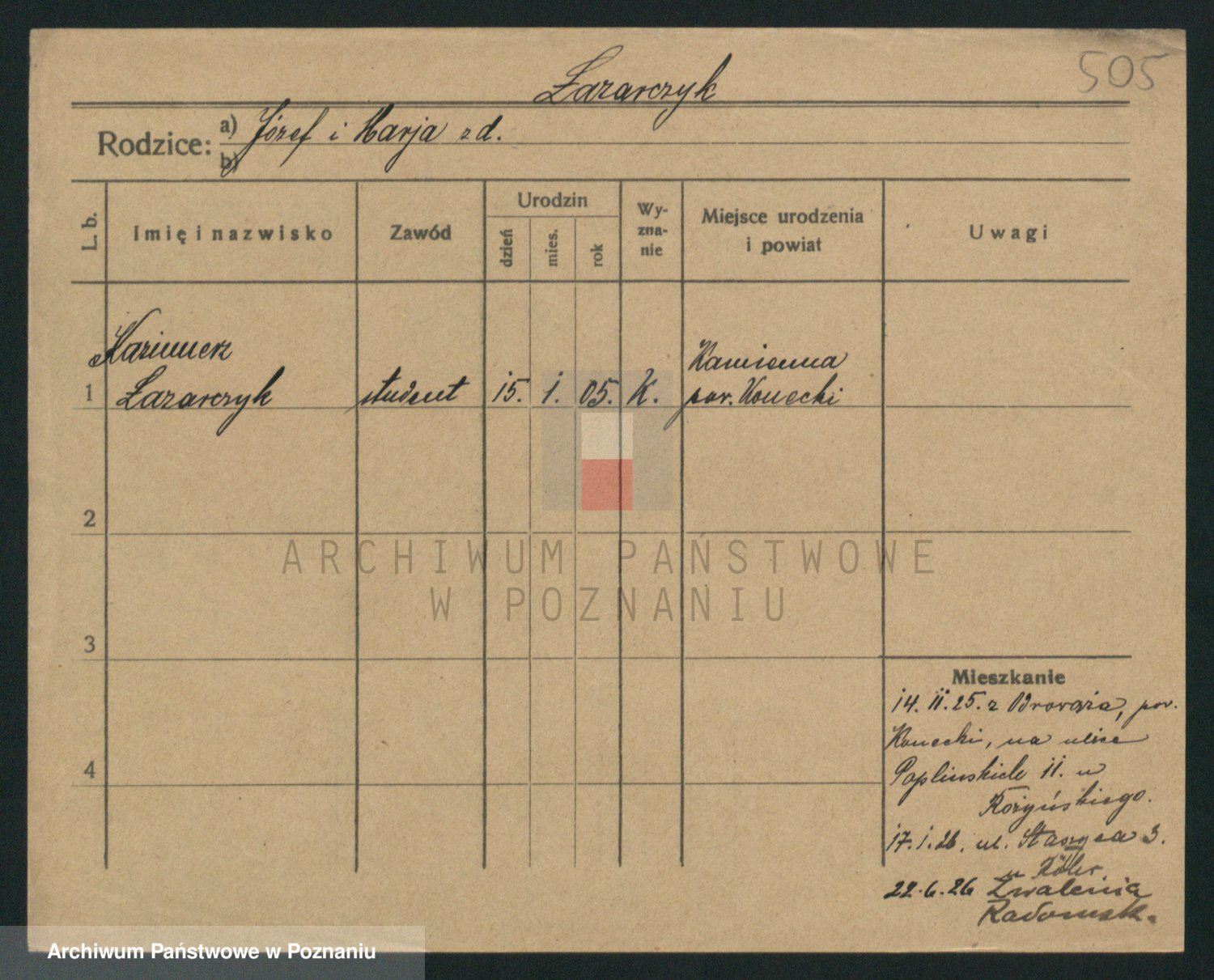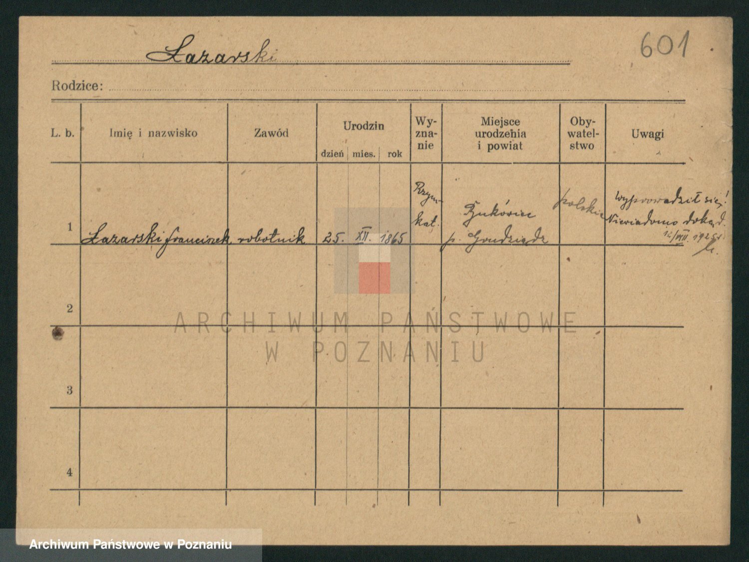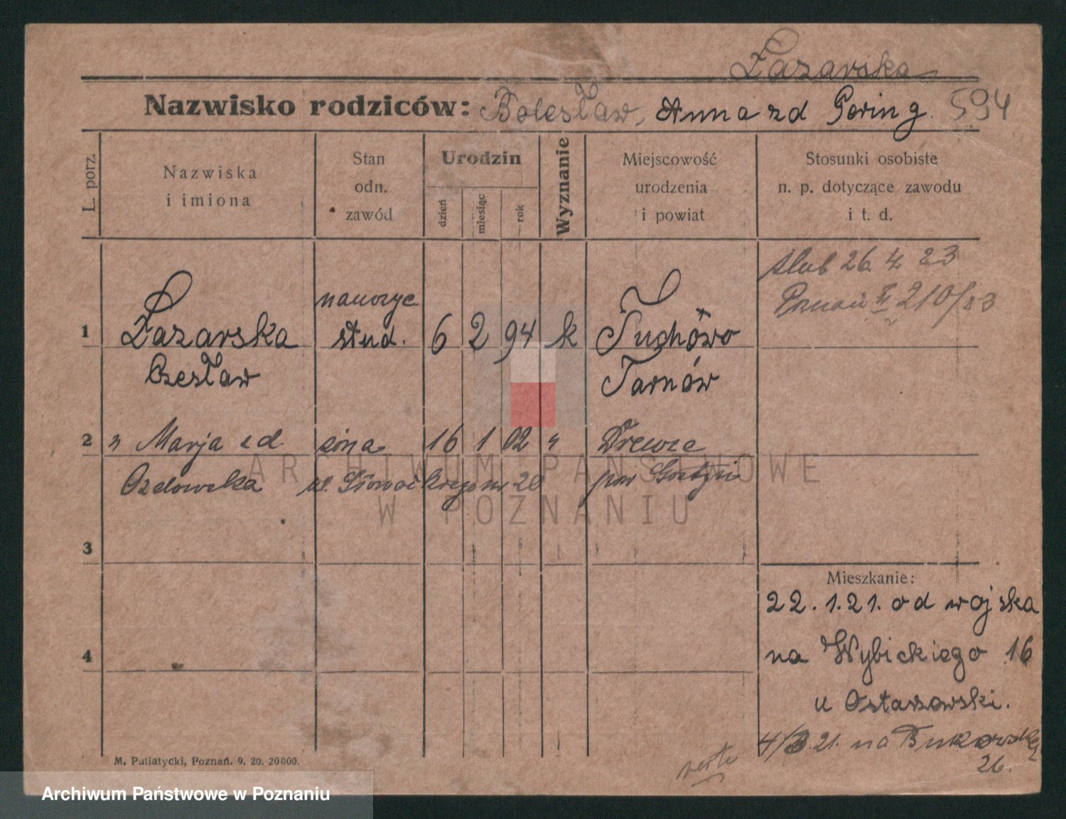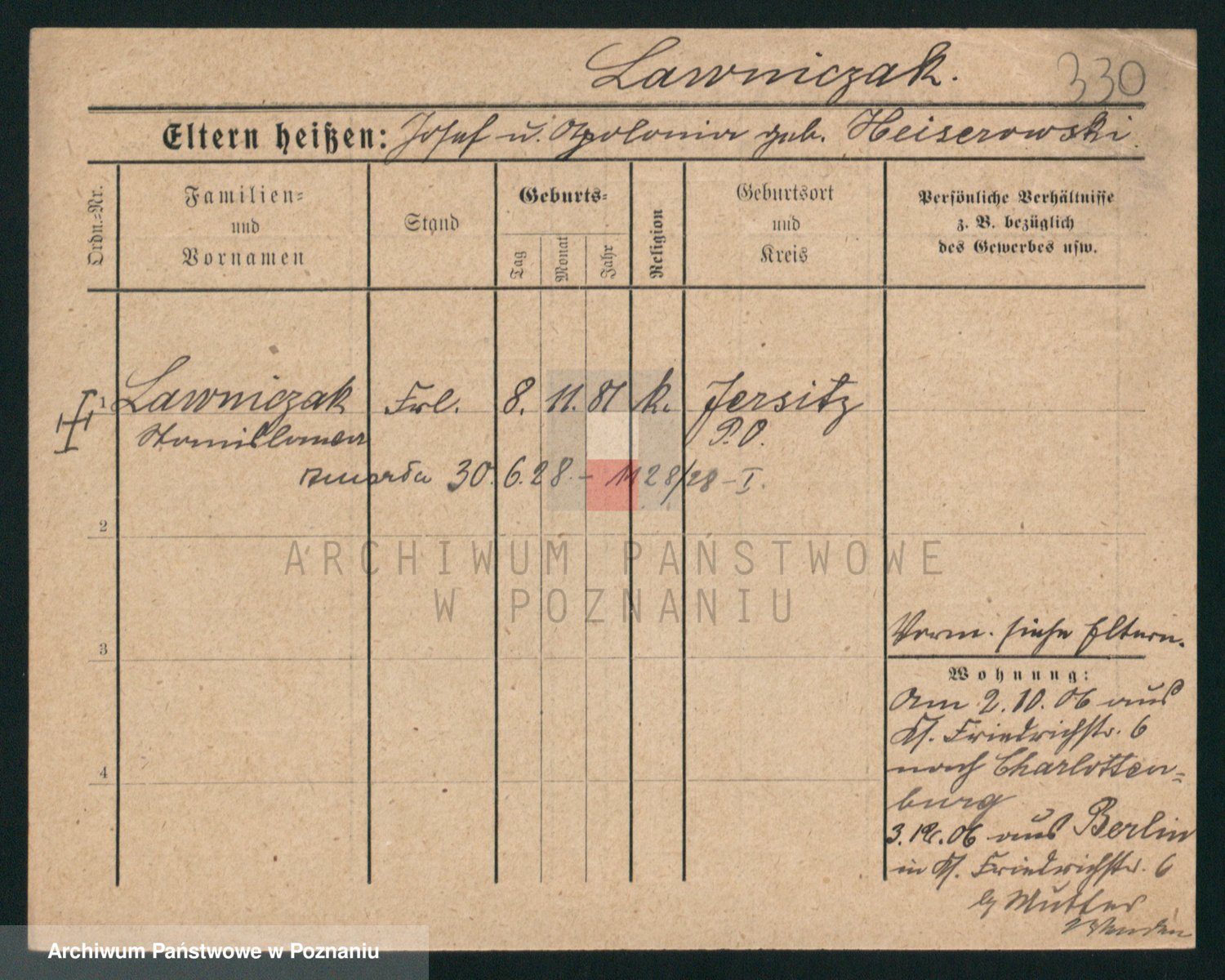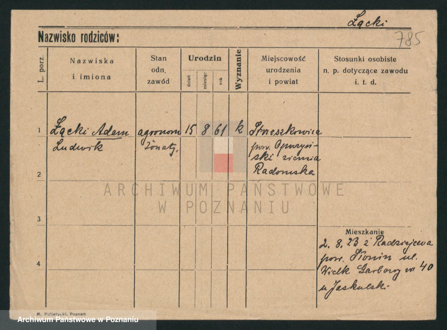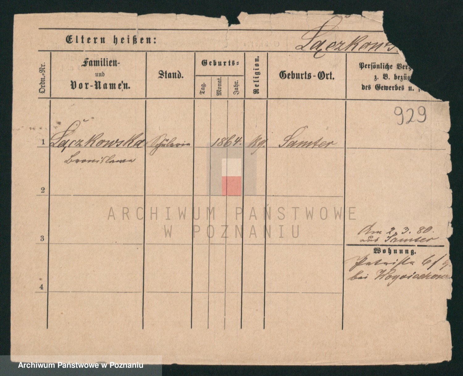 Podgląd karty osobowej dostępny jest po kliknięciu na nazwisko lub ikonkę karty. Można dokonywać powiększenia (ikony na górze) lub przechodzić między kolejnymi skanami (strzałki po bokach).