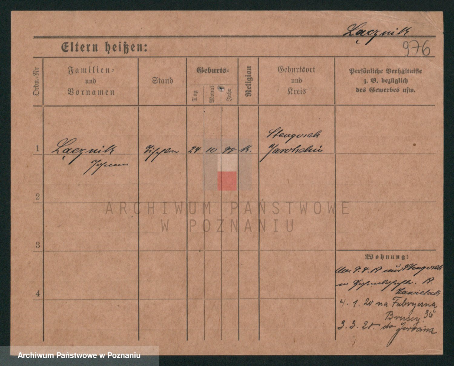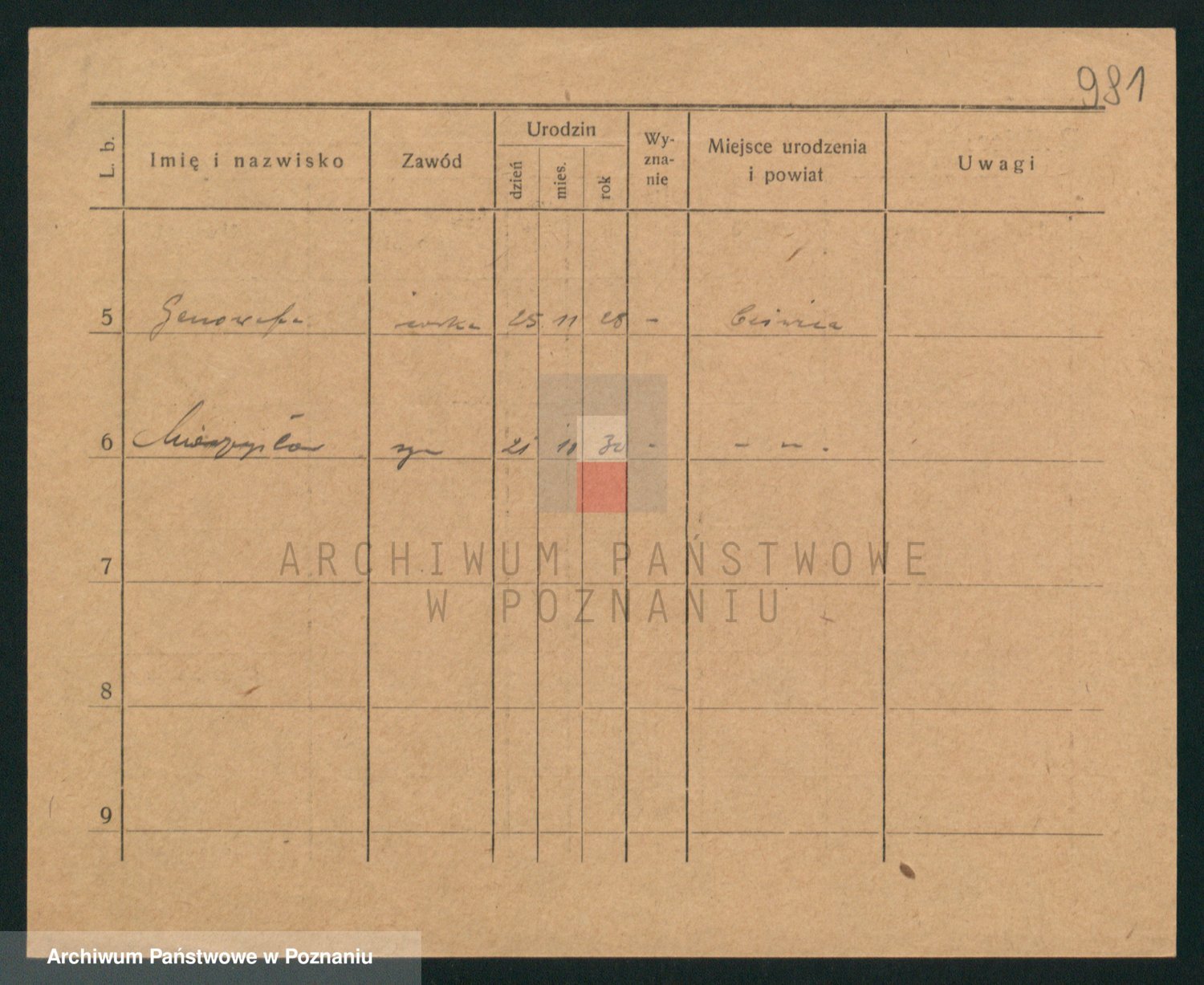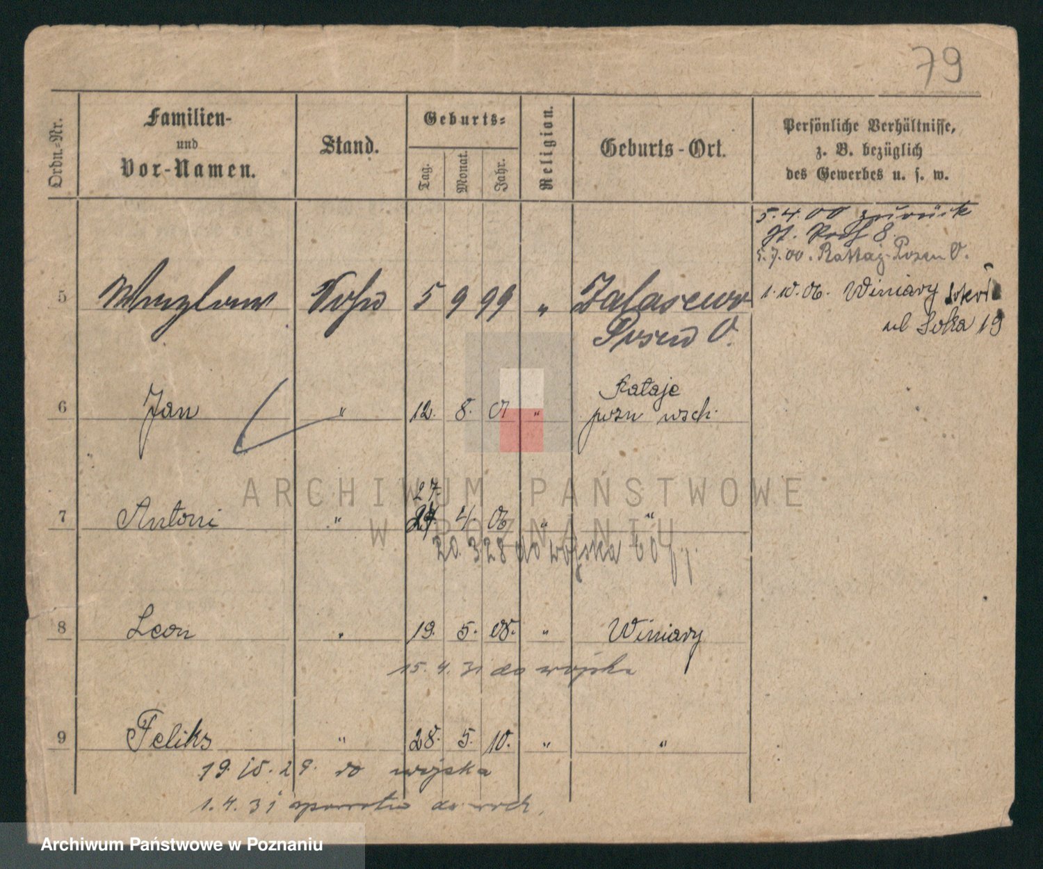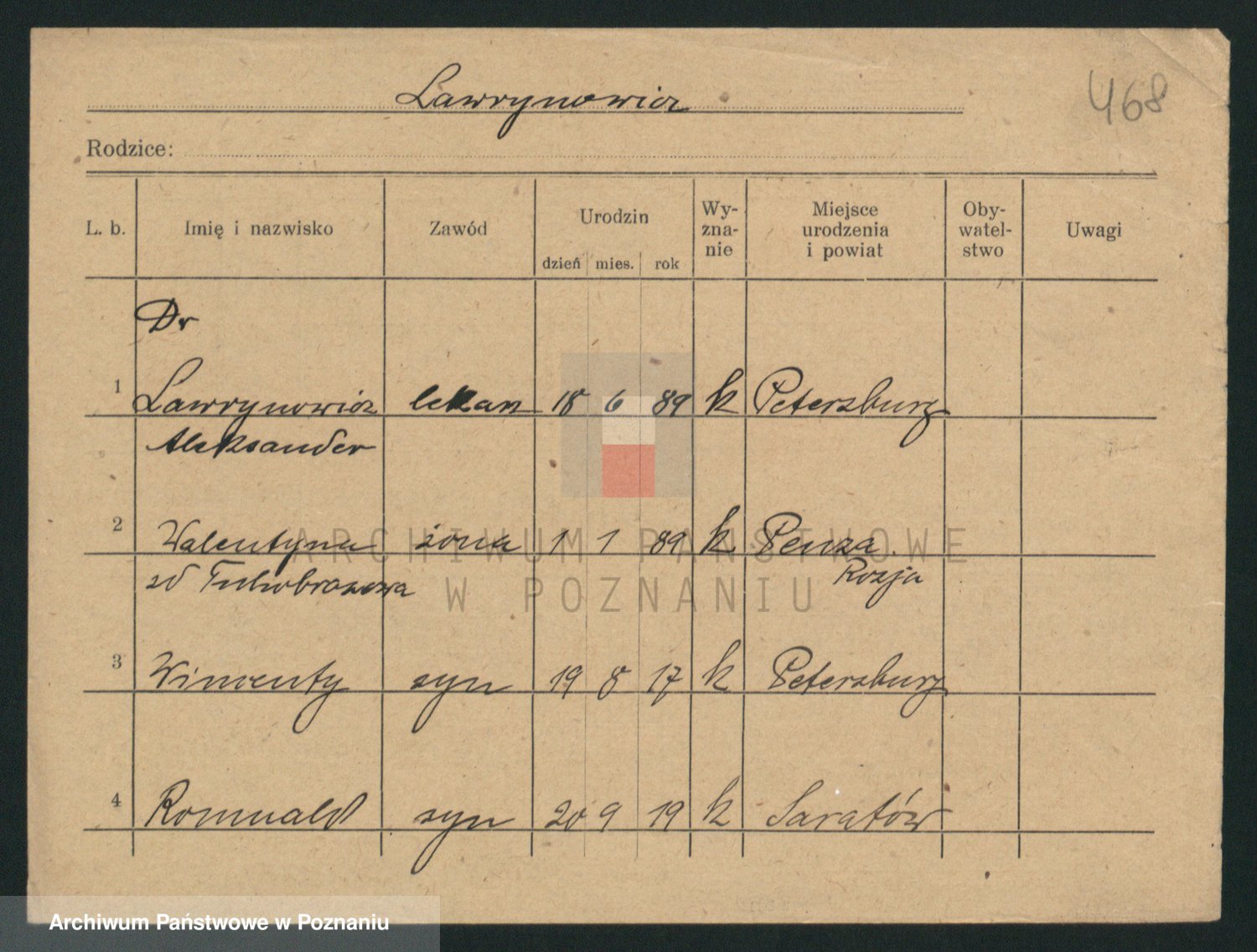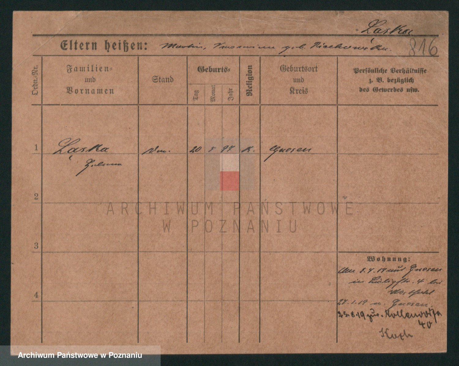 Podgląd karty osobowej dostępny jest po kliknięciu na nazwisko lub ikonkę karty. Można dokonywać powiększenia (ikony na górze) lub przechodzić między kolejnymi skanami (strzałki po bokach).