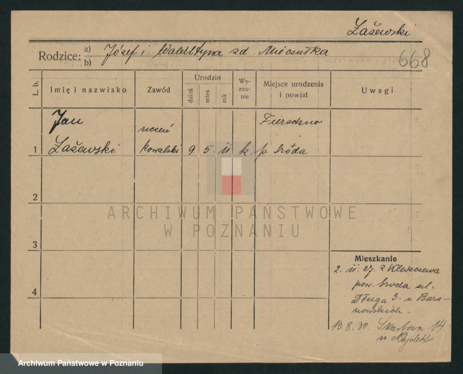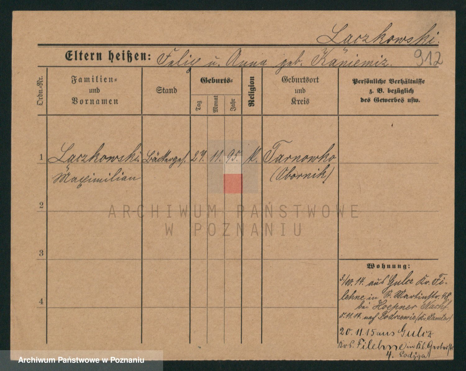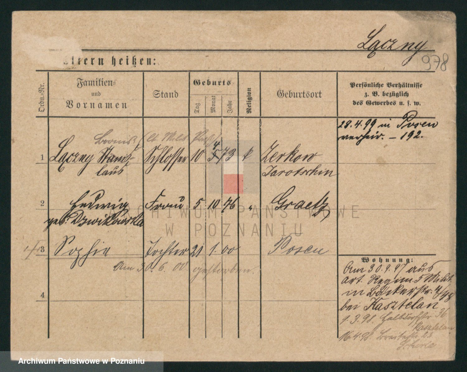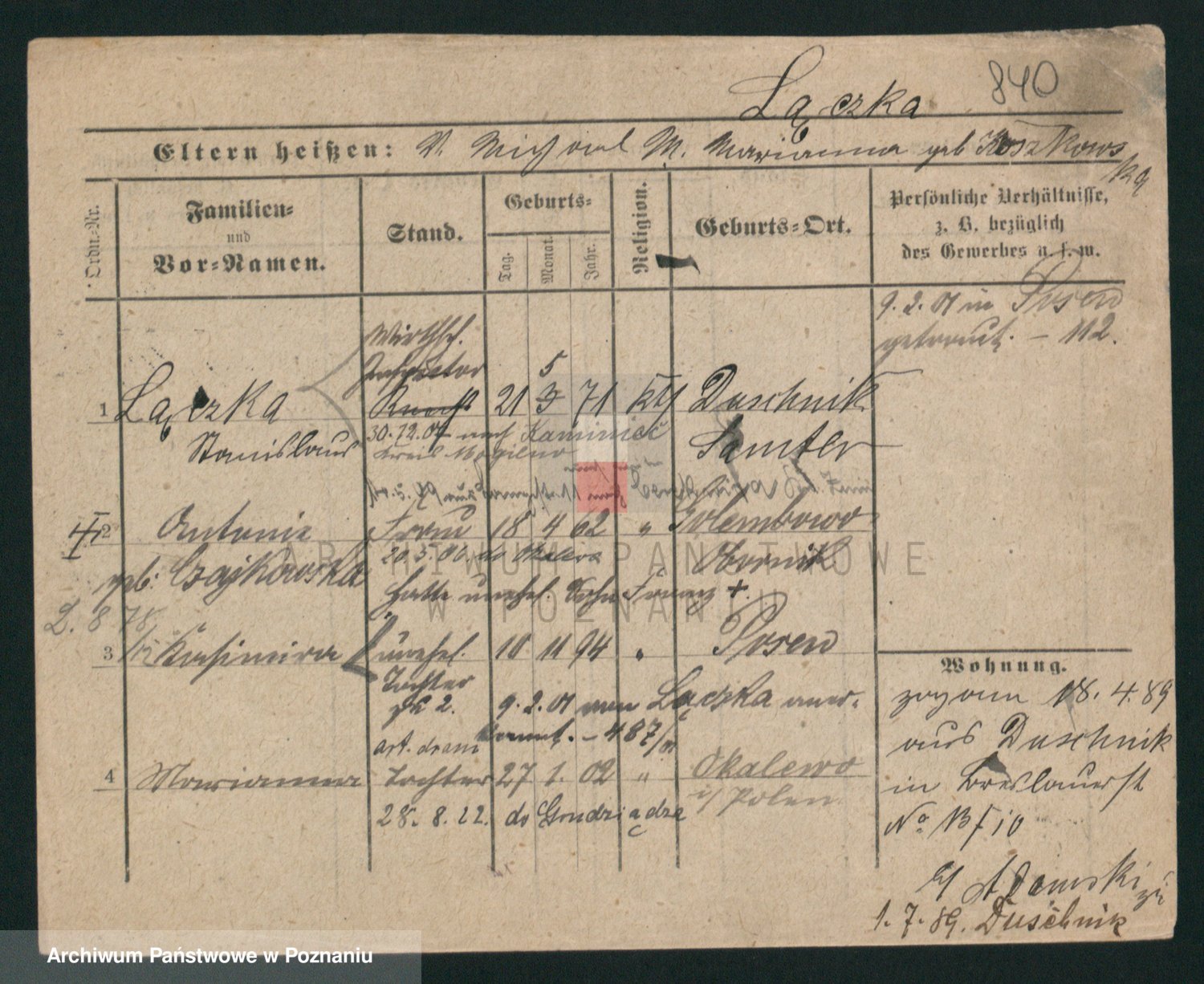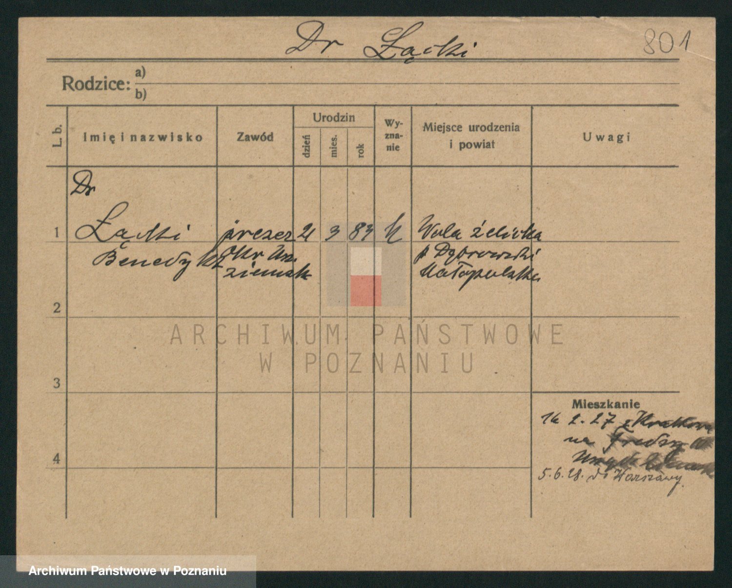 Podgląd karty osobowej dostępny jest po kliknięciu na nazwisko lub ikonkę karty. Można dokonywać powiększenia (ikony na górze) lub przechodzić między kolejnymi skanami (strzałki po bokach).