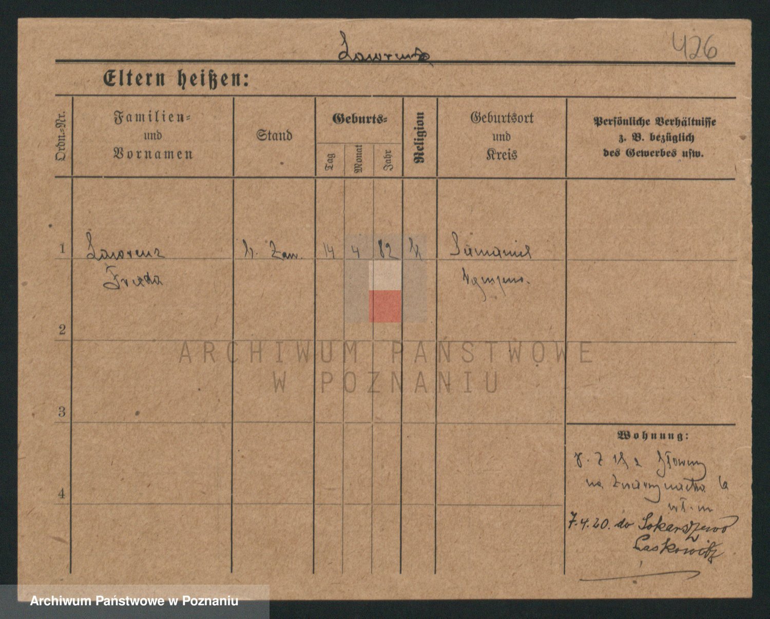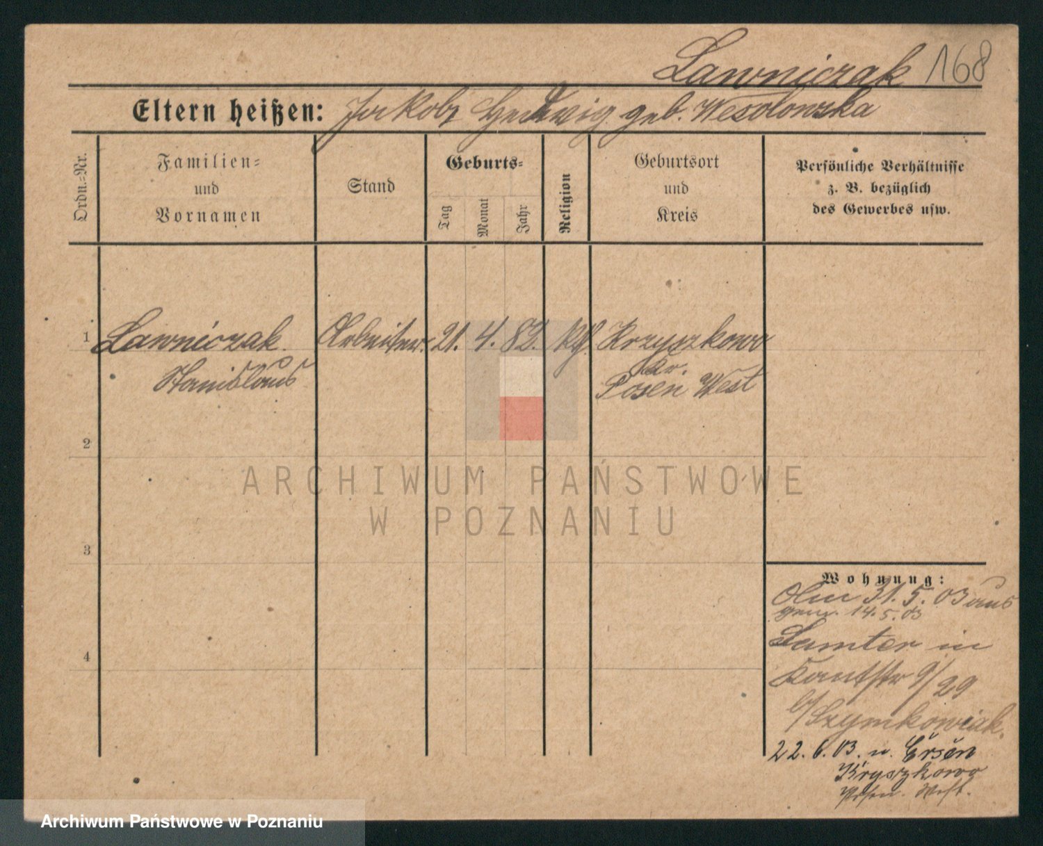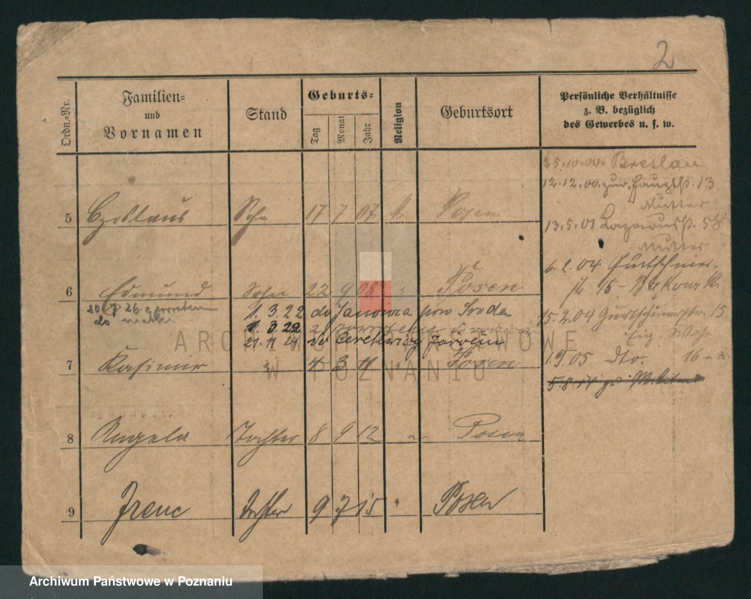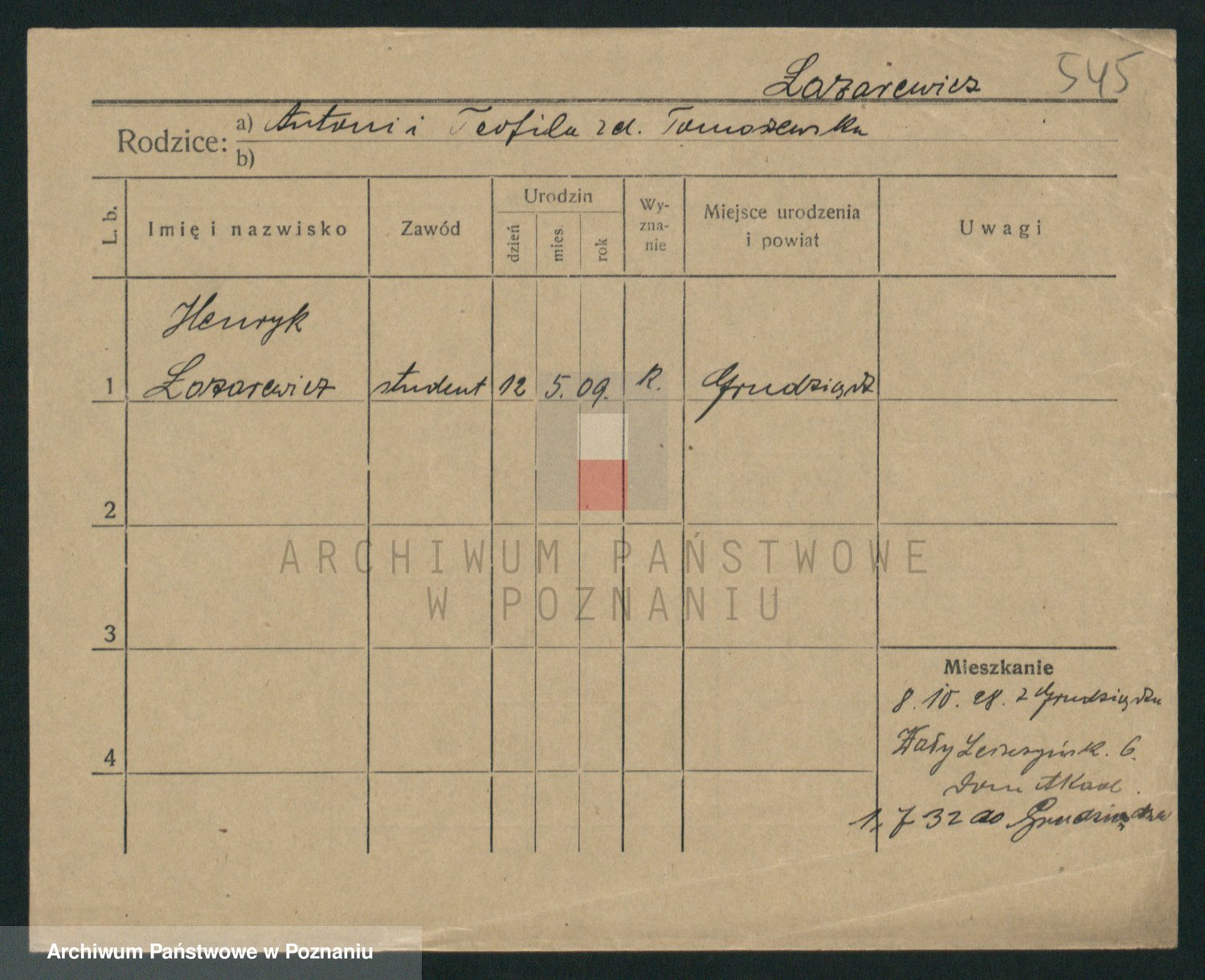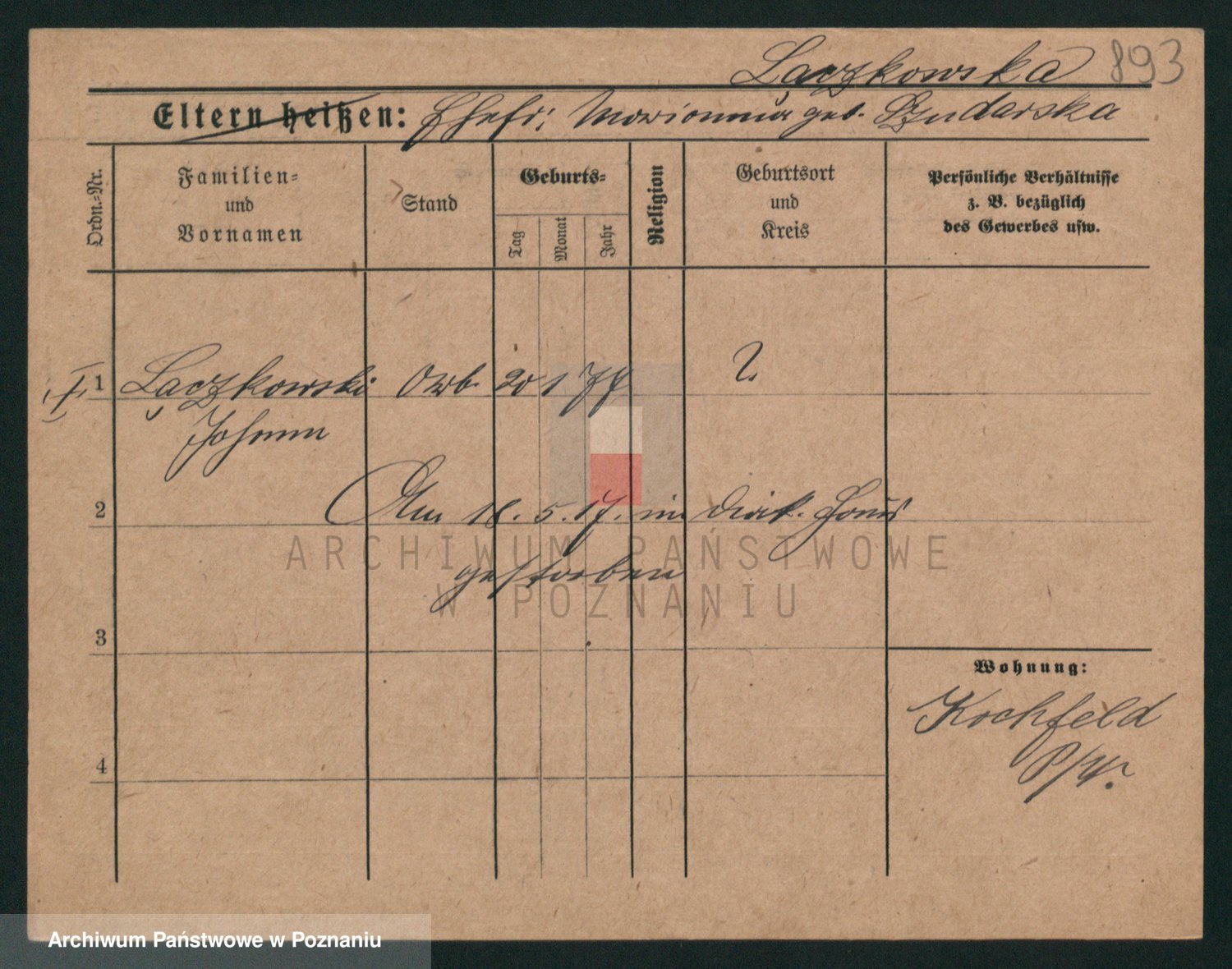 Podgląd karty osobowej dostępny jest po kliknięciu na nazwisko lub ikonkę karty. Można dokonywać powiększenia (ikony na górze) lub przechodzić między kolejnymi skanami (strzałki po bokach).