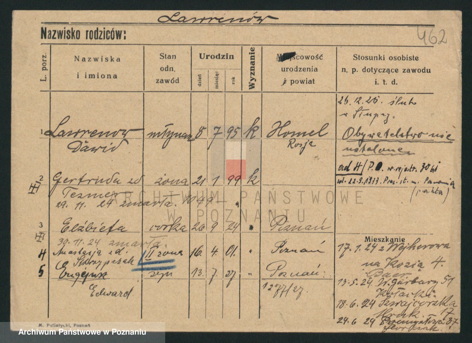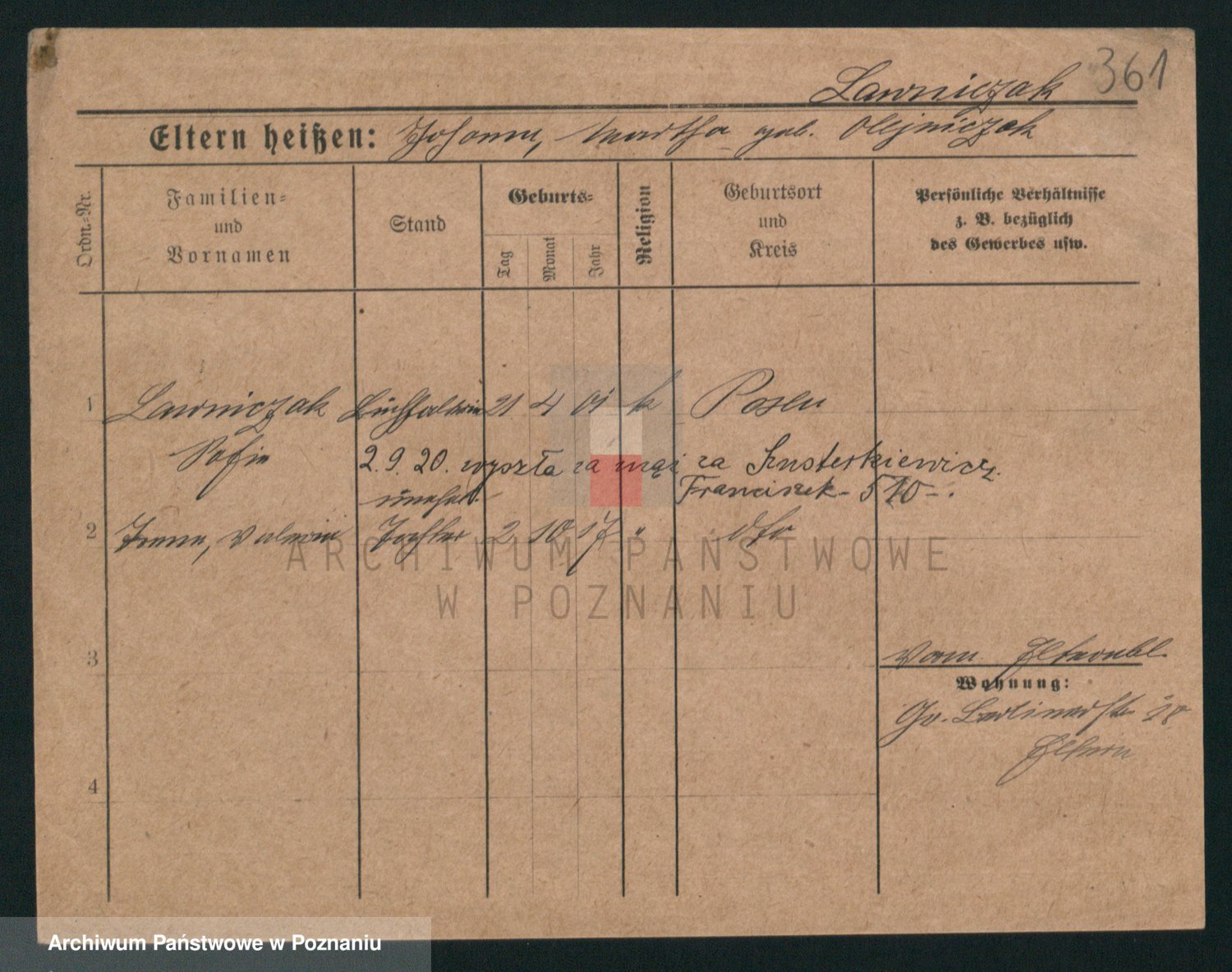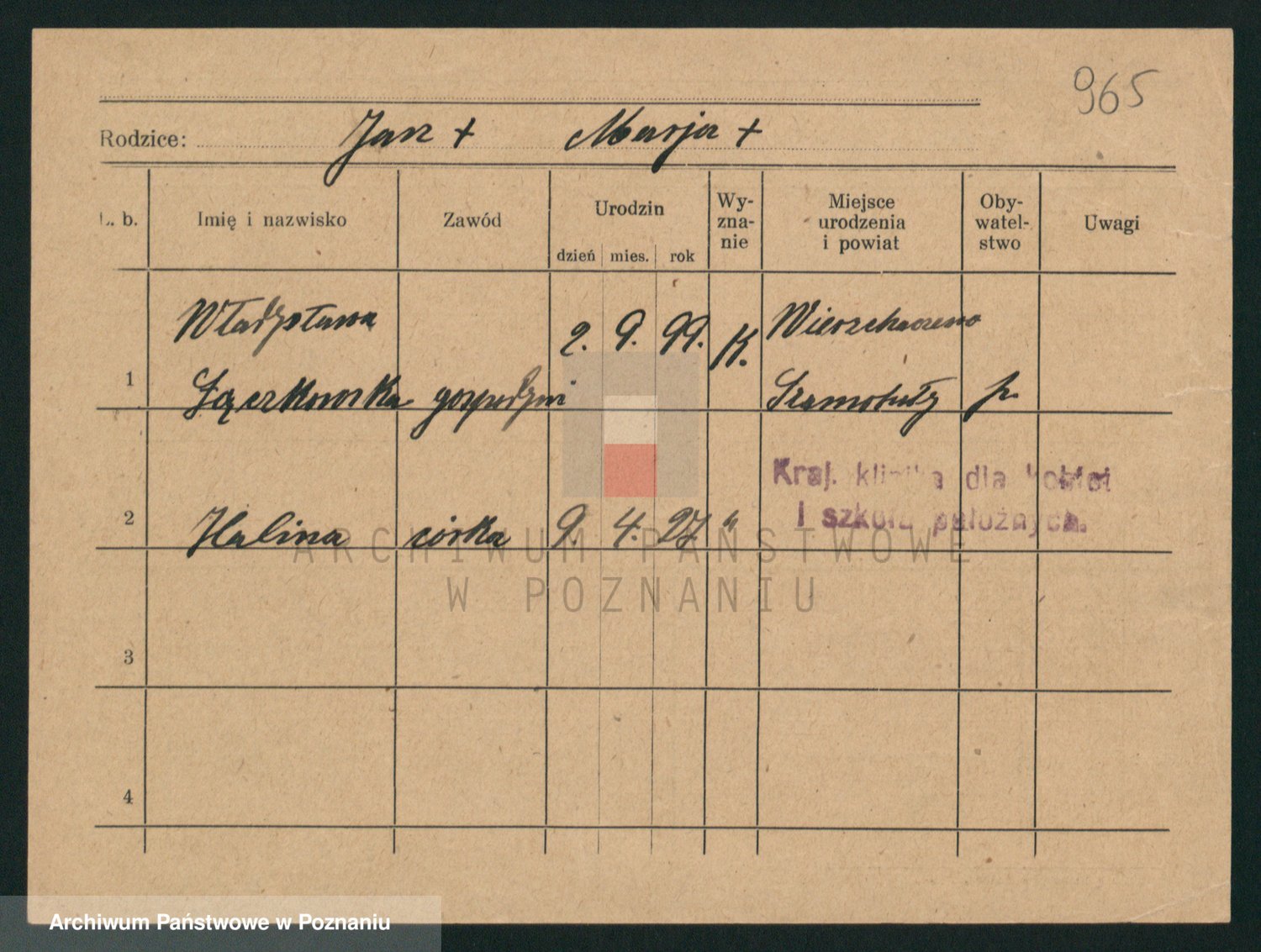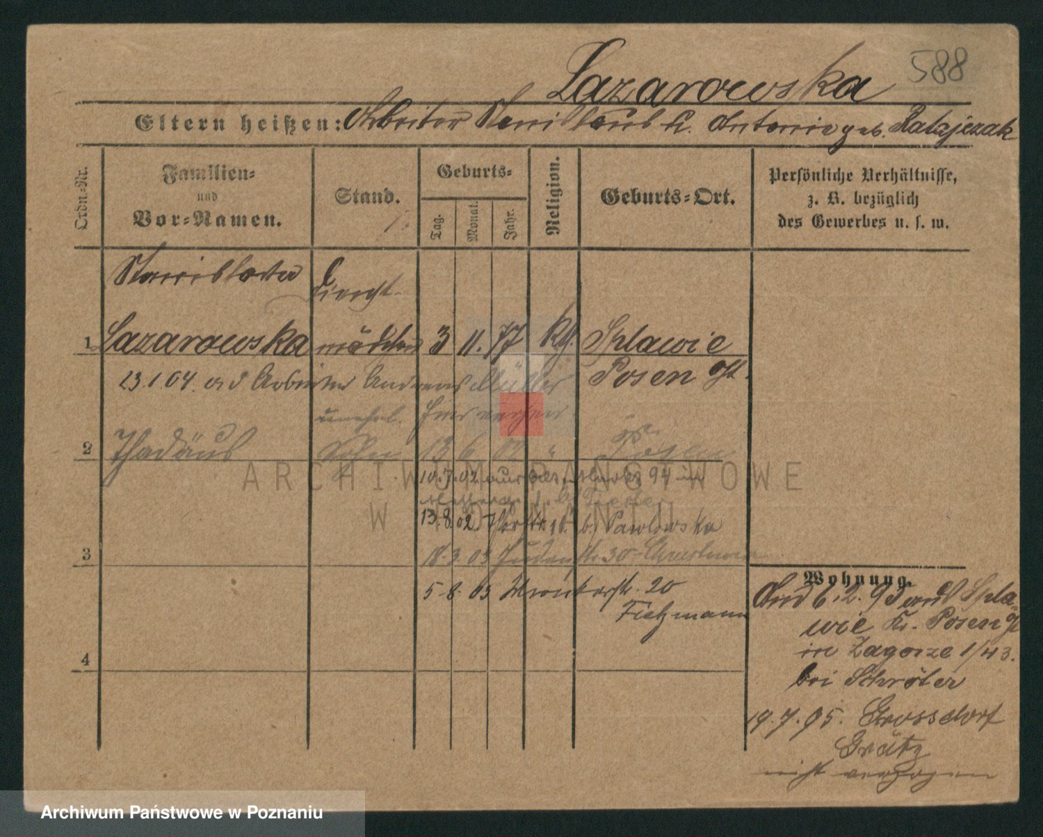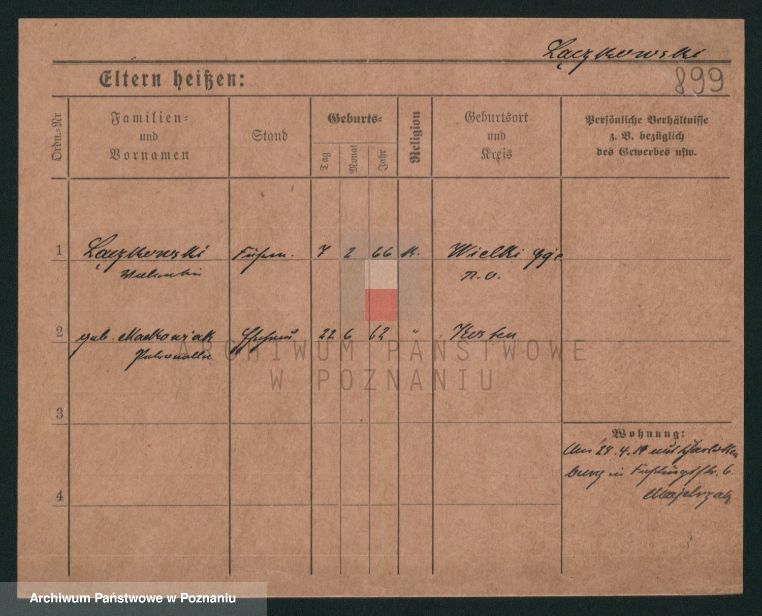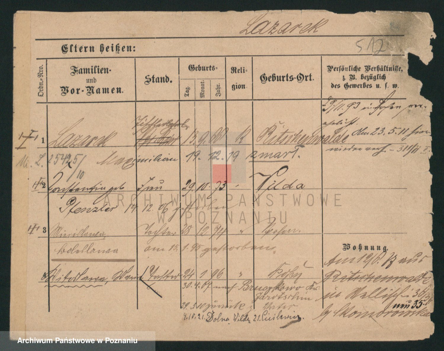 Podgląd karty osobowej dostępny jest po kliknięciu na nazwisko lub ikonkę karty. Można dokonywać powiększenia (ikony na górze) lub przechodzić między kolejnymi skanami (strzałki po bokach).