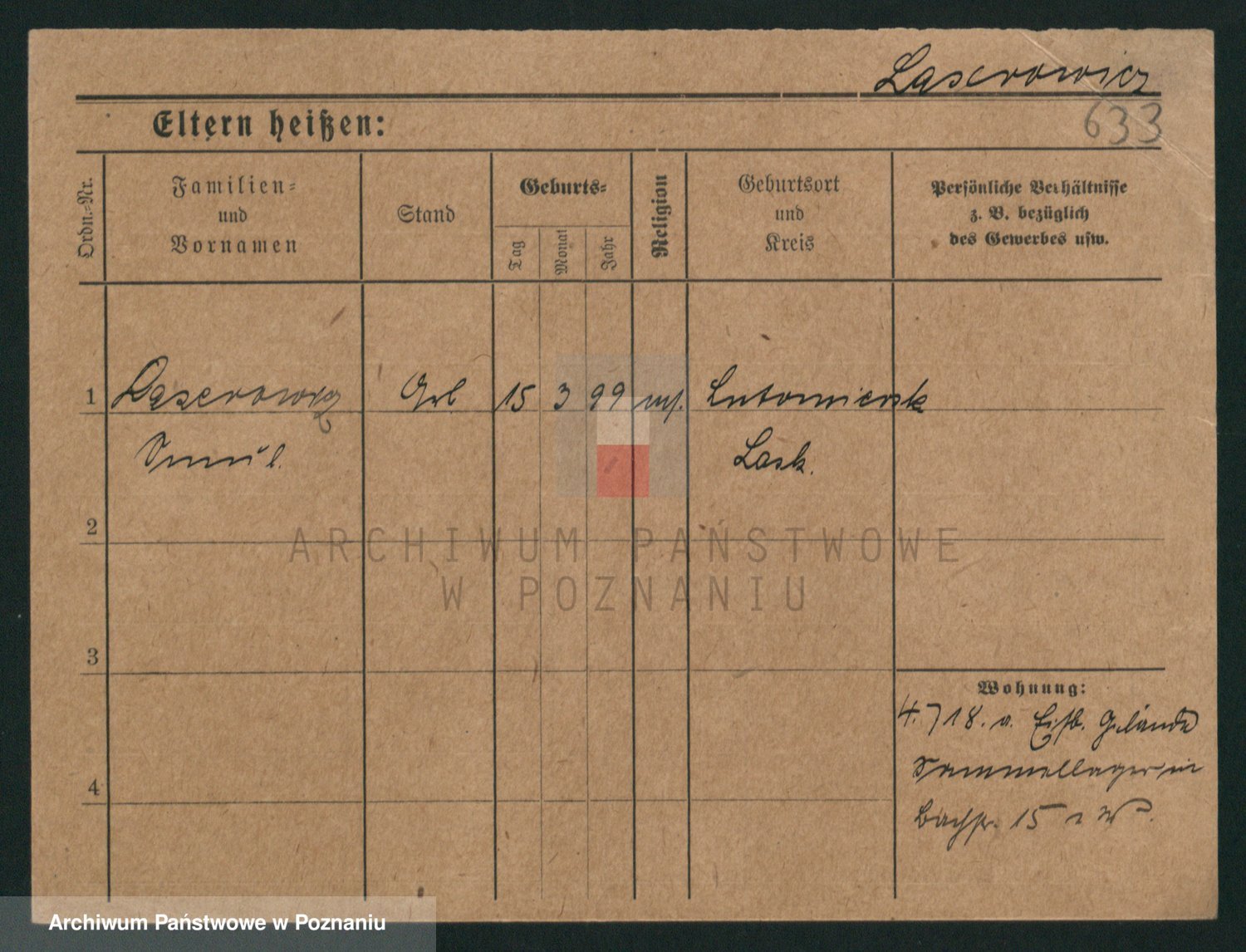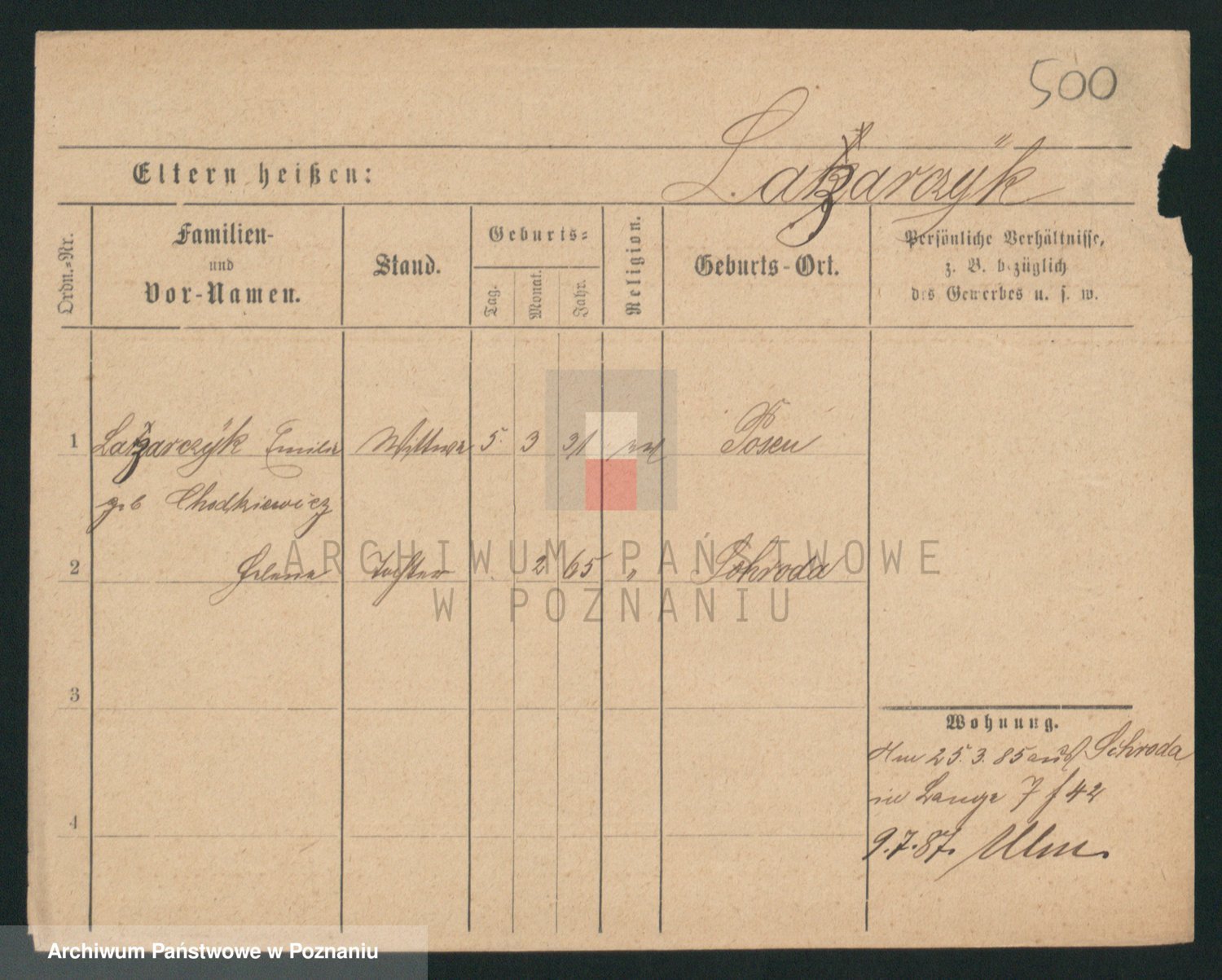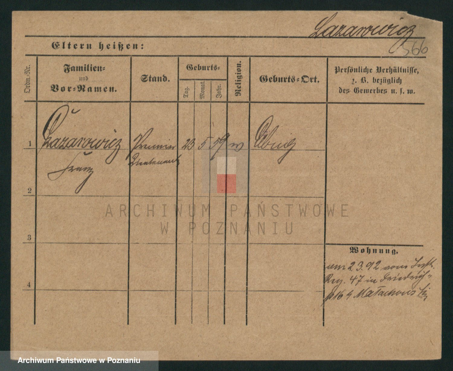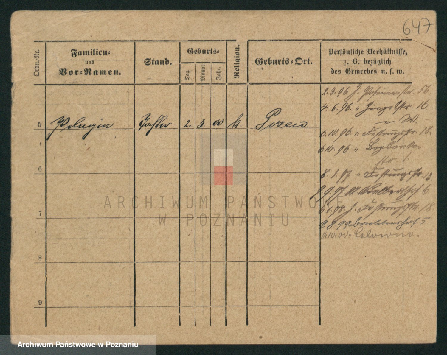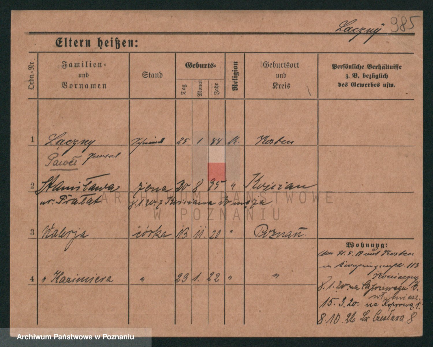 Podgląd karty osobowej dostępny jest po kliknięciu na nazwisko lub ikonkę karty. Można dokonywać powiększenia (ikony na górze) lub przechodzić między kolejnymi skanami (strzałki po bokach).