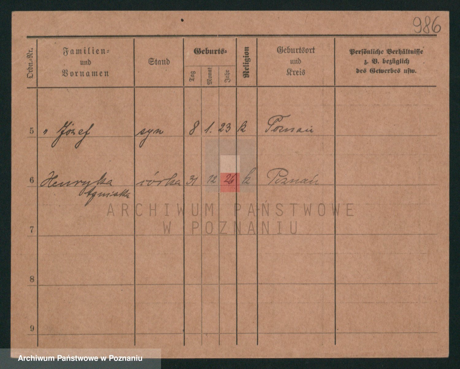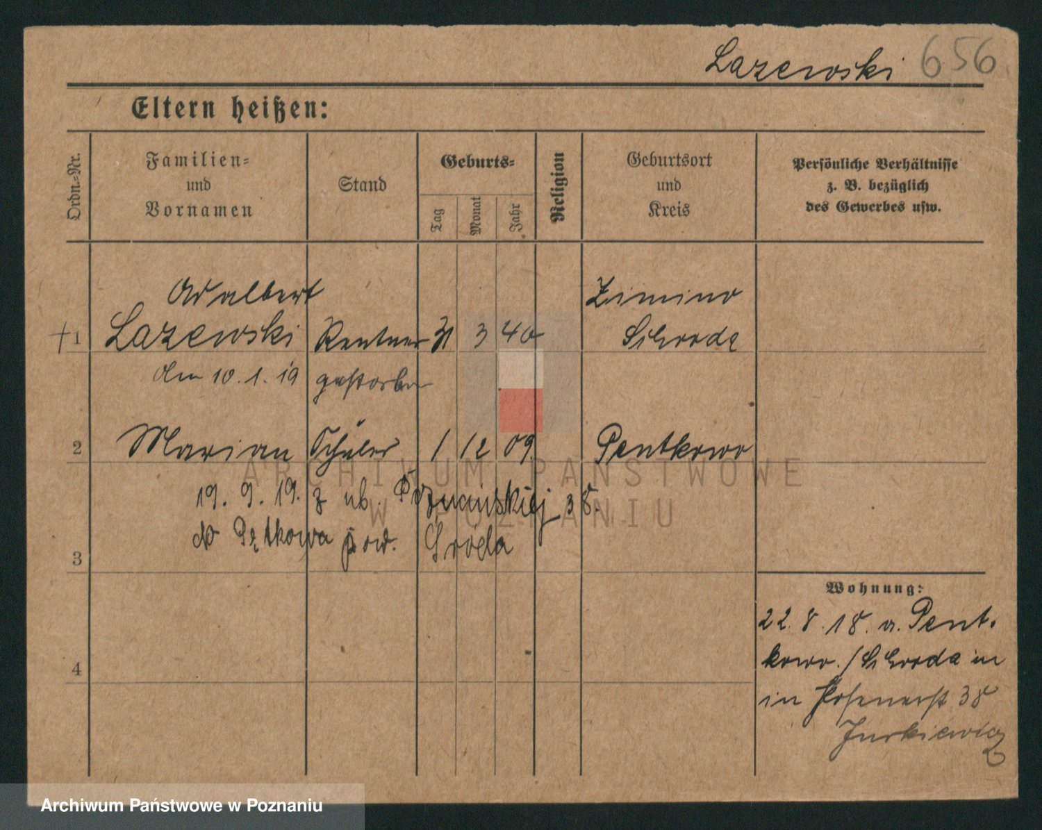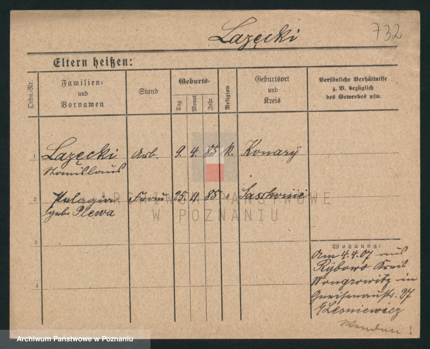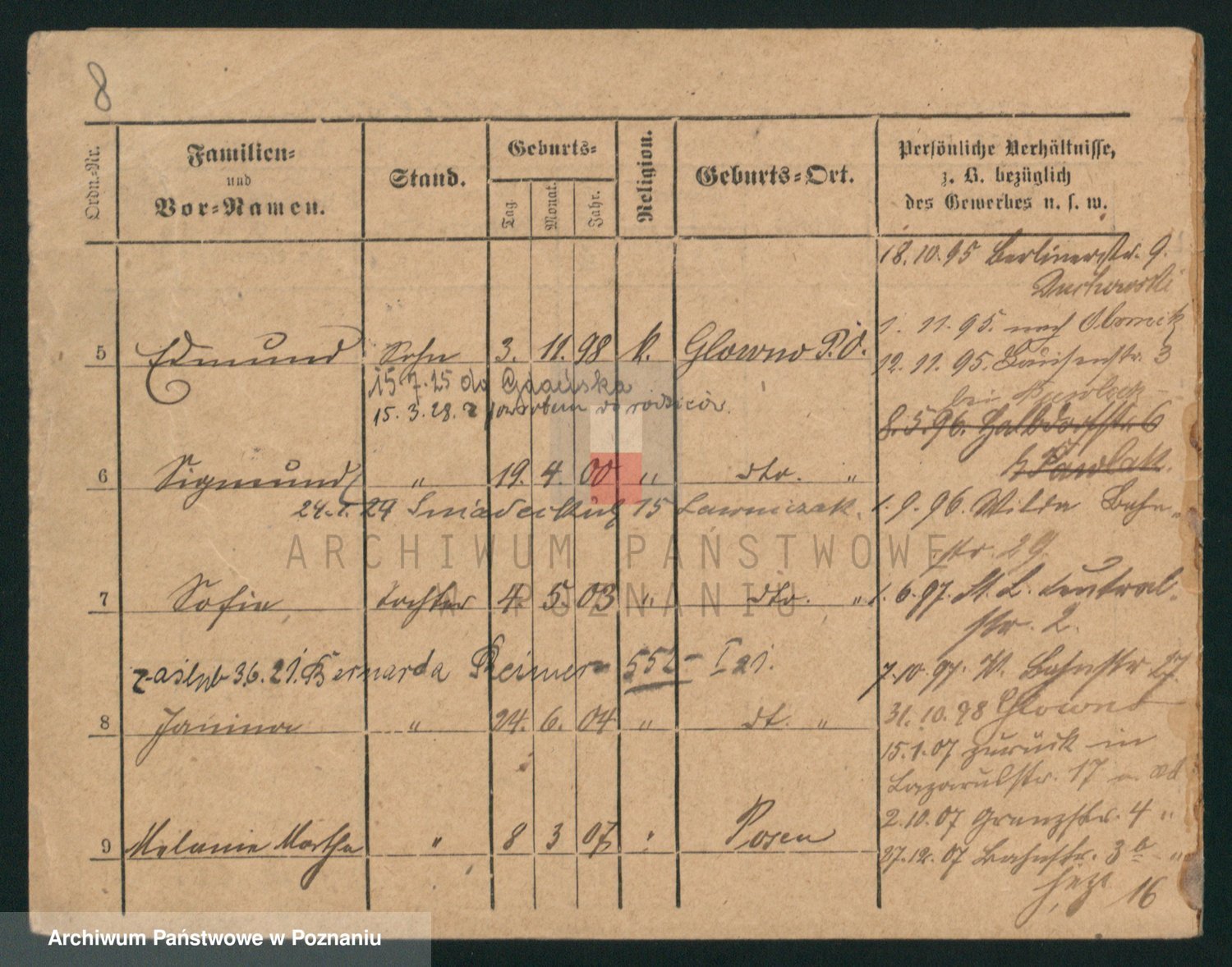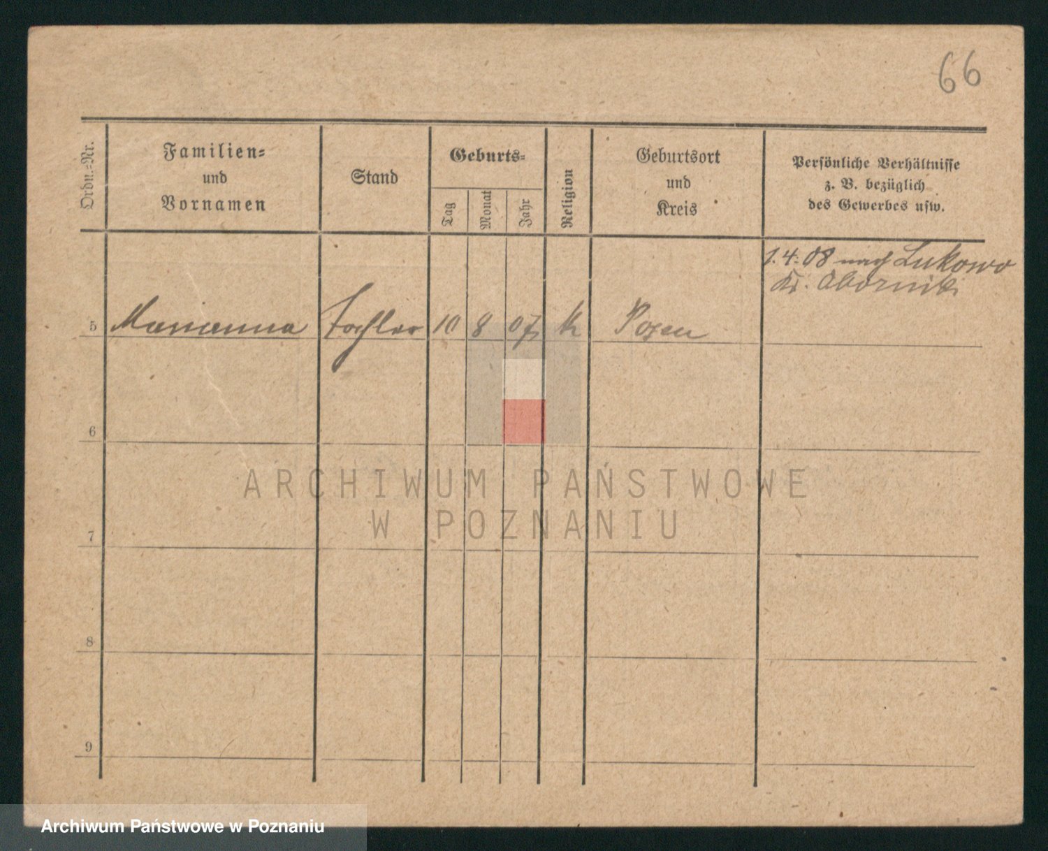 Podgląd karty osobowej dostępny jest po kliknięciu na nazwisko lub ikonkę karty. Można dokonywać powiększenia (ikony na górze) lub przechodzić między kolejnymi skanami (strzałki po bokach).