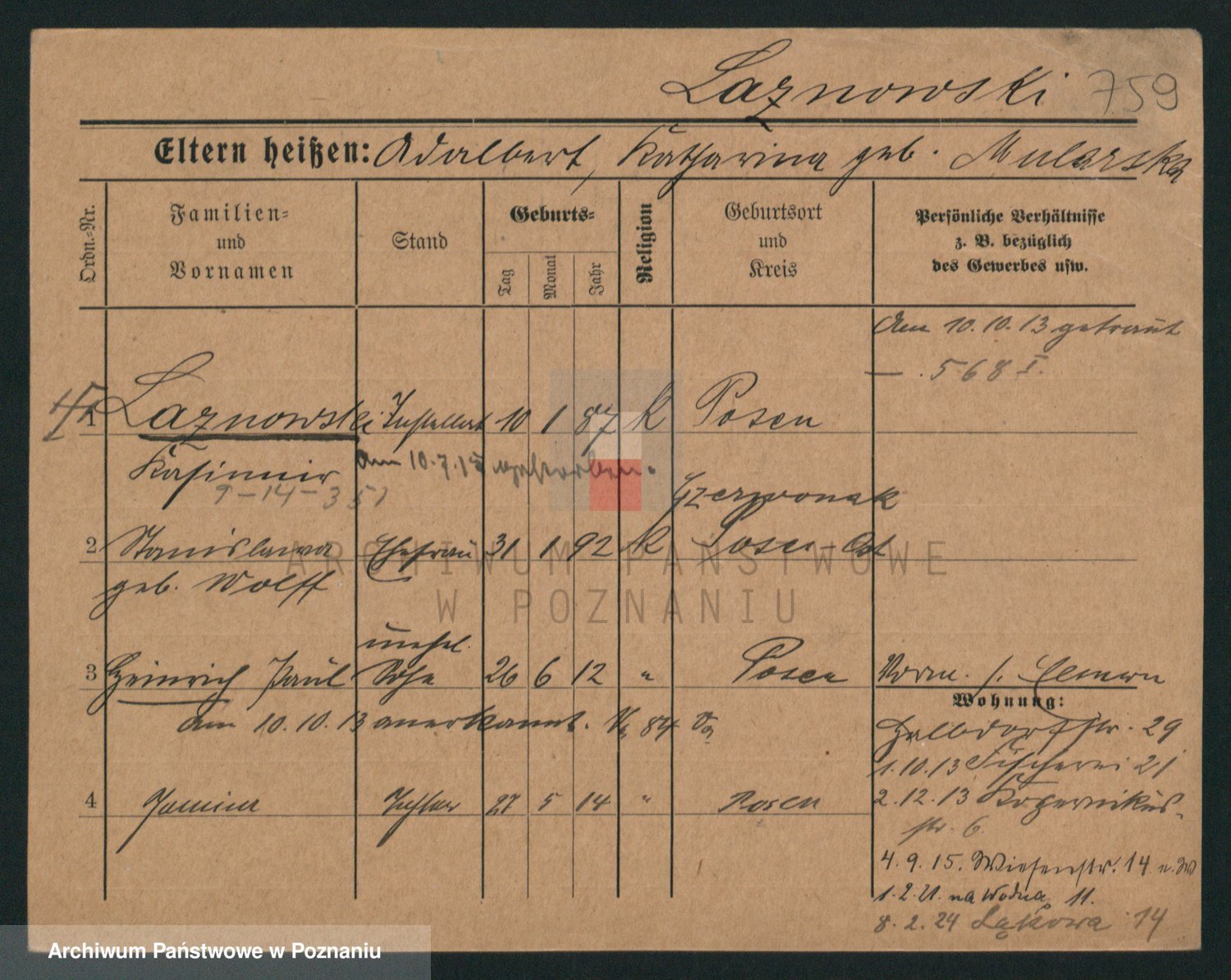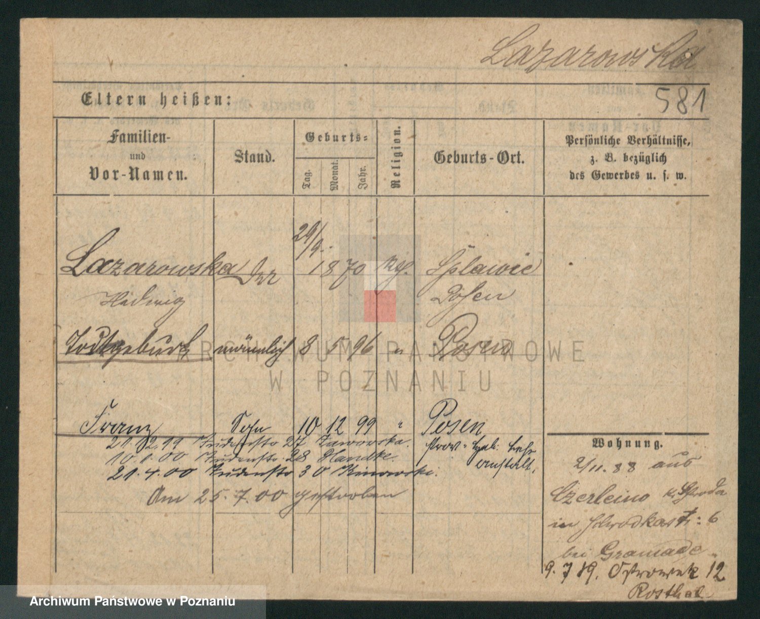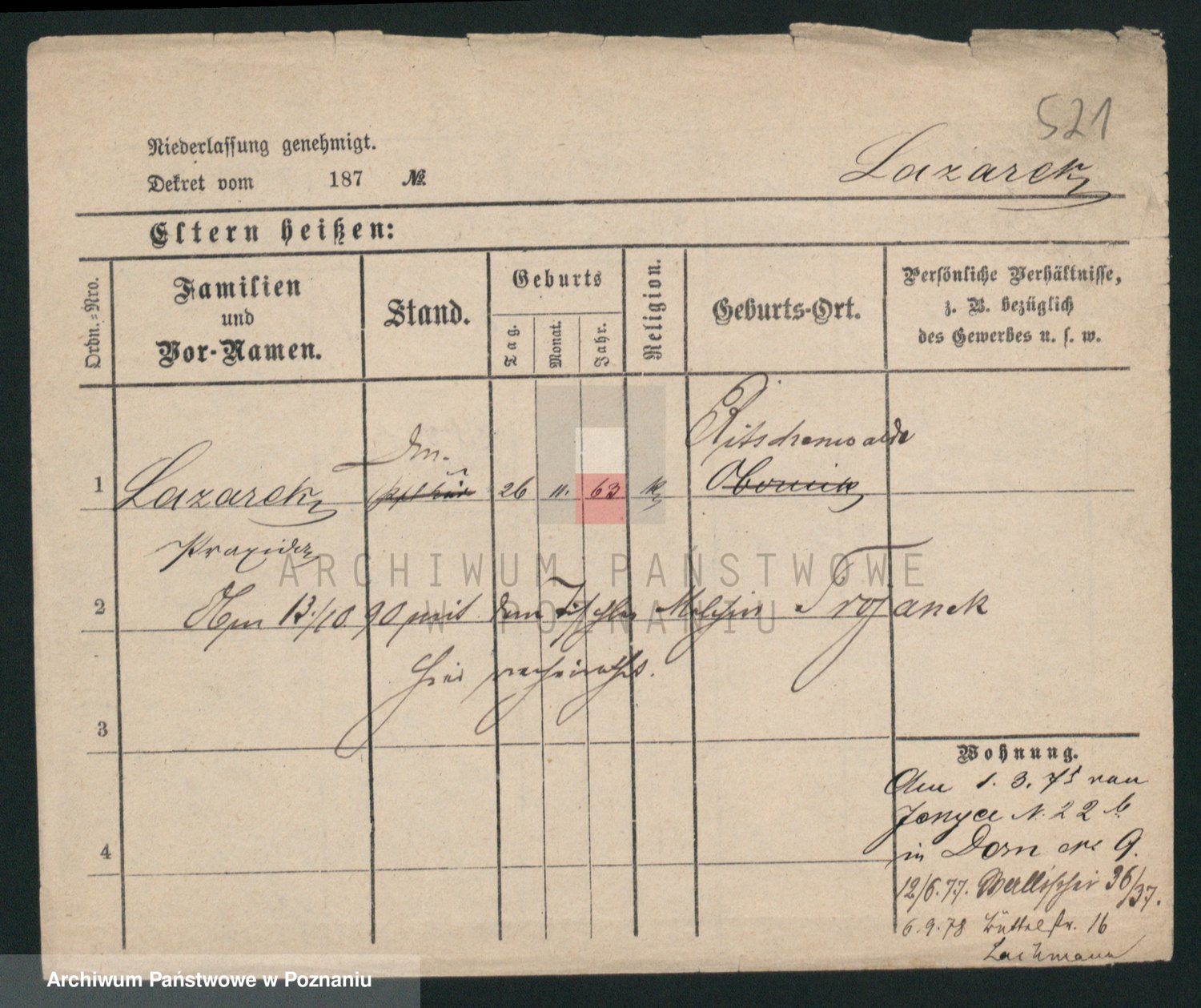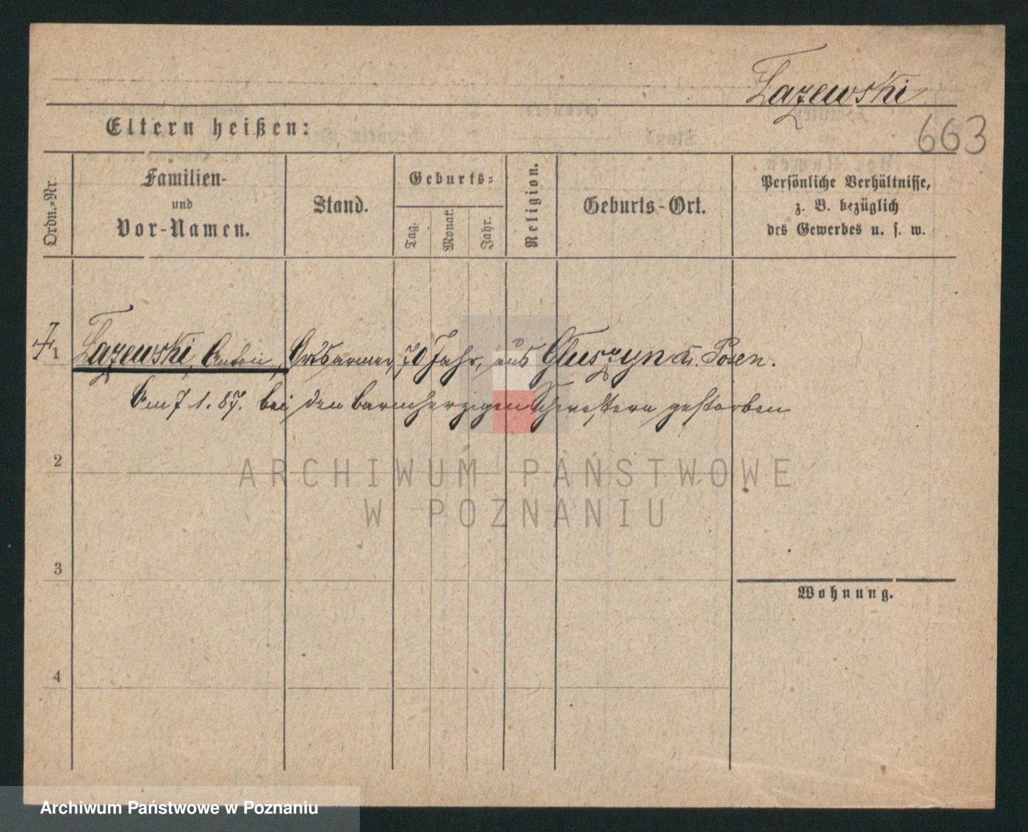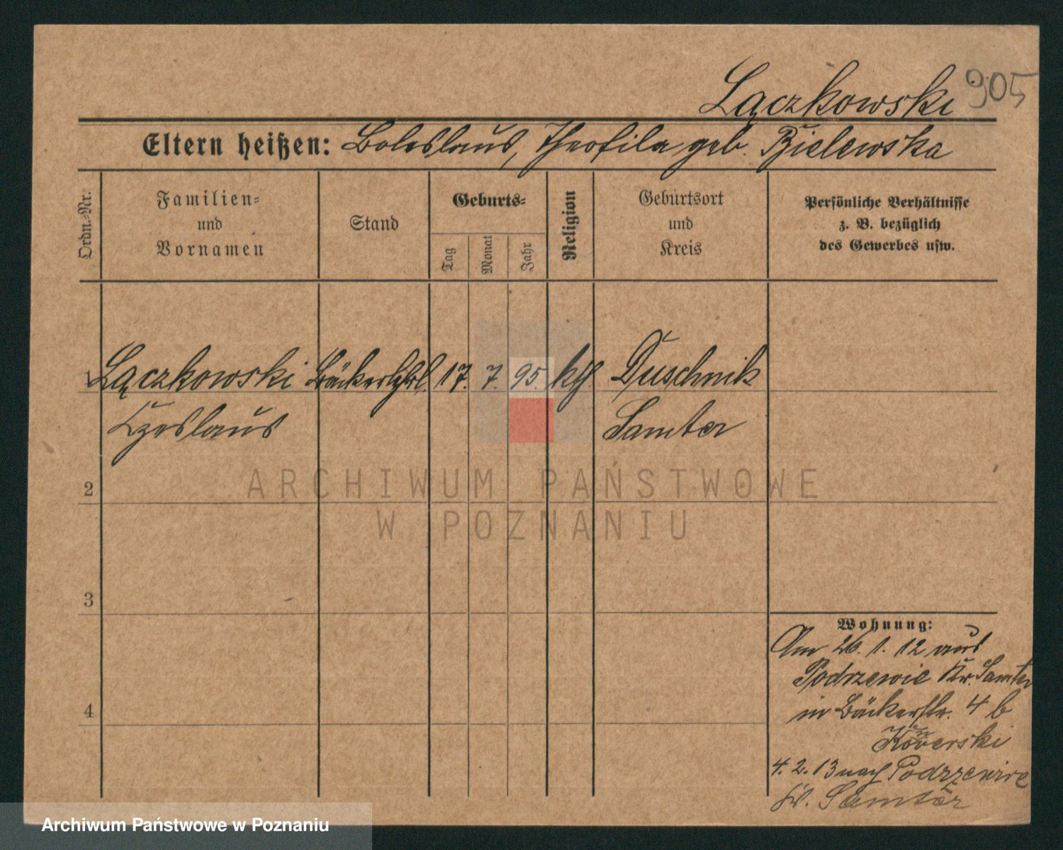 Podgląd karty osobowej dostępny jest po kliknięciu na nazwisko lub ikonkę karty. Można dokonywać powiększenia (ikony na górze) lub przechodzić między kolejnymi skanami (strzałki po bokach).