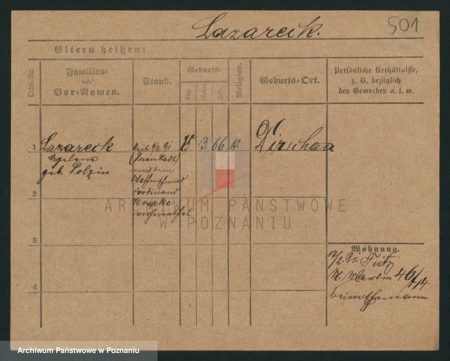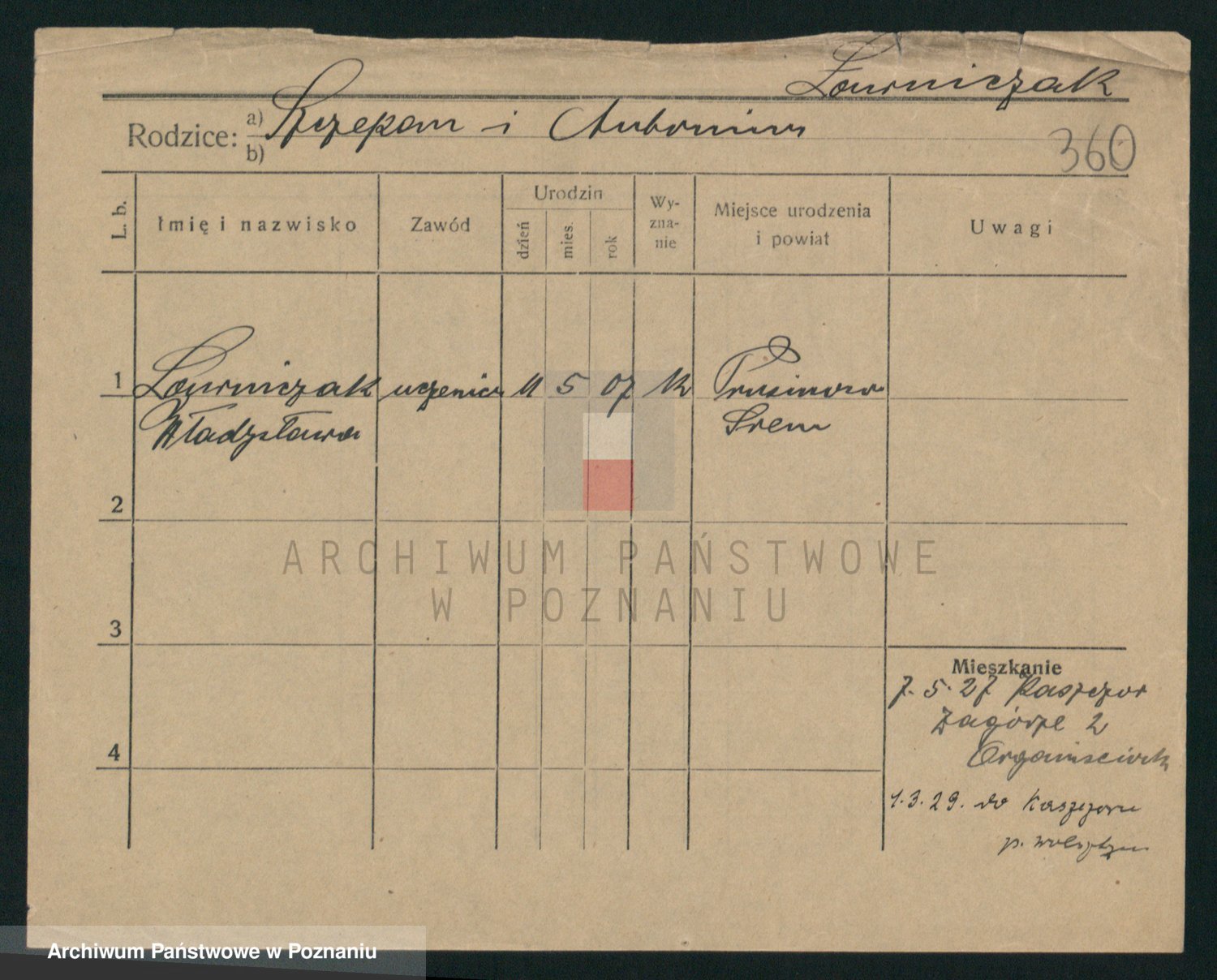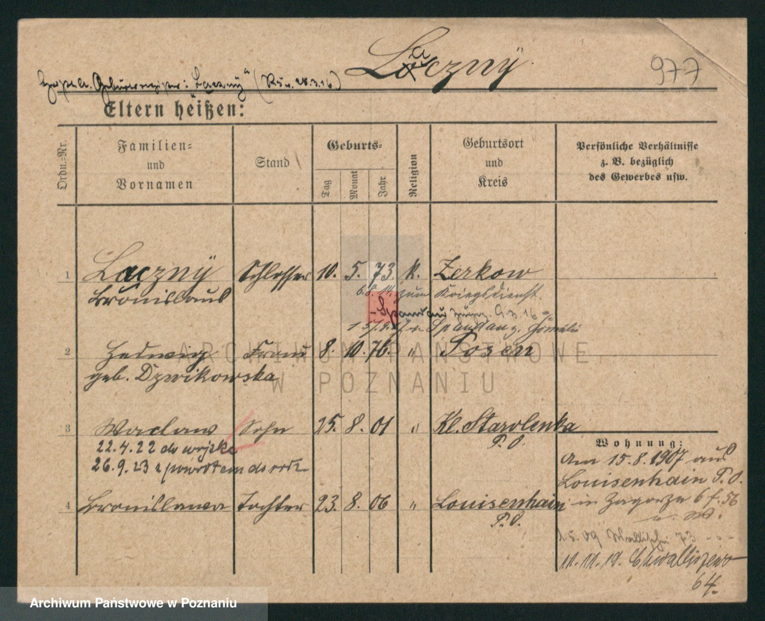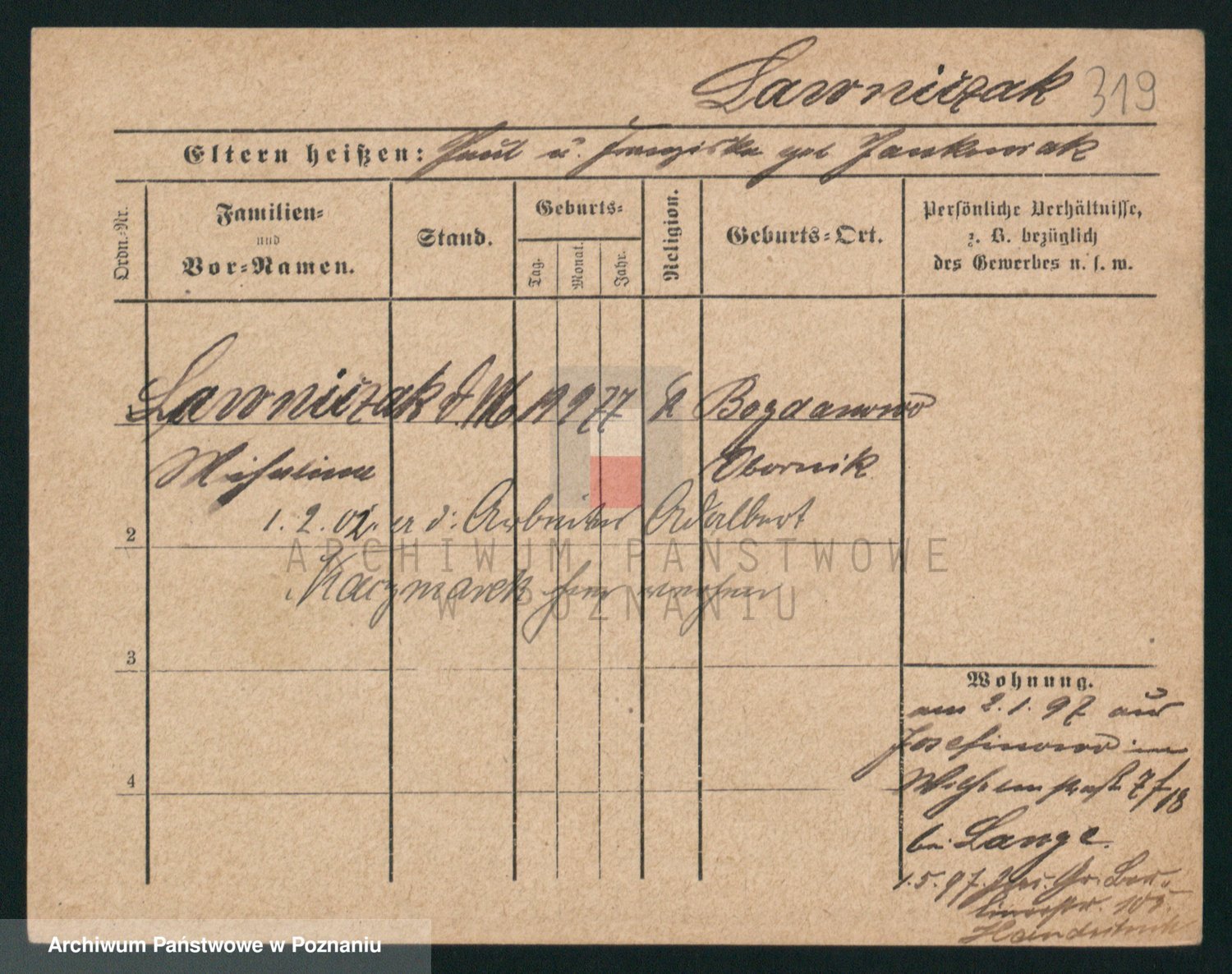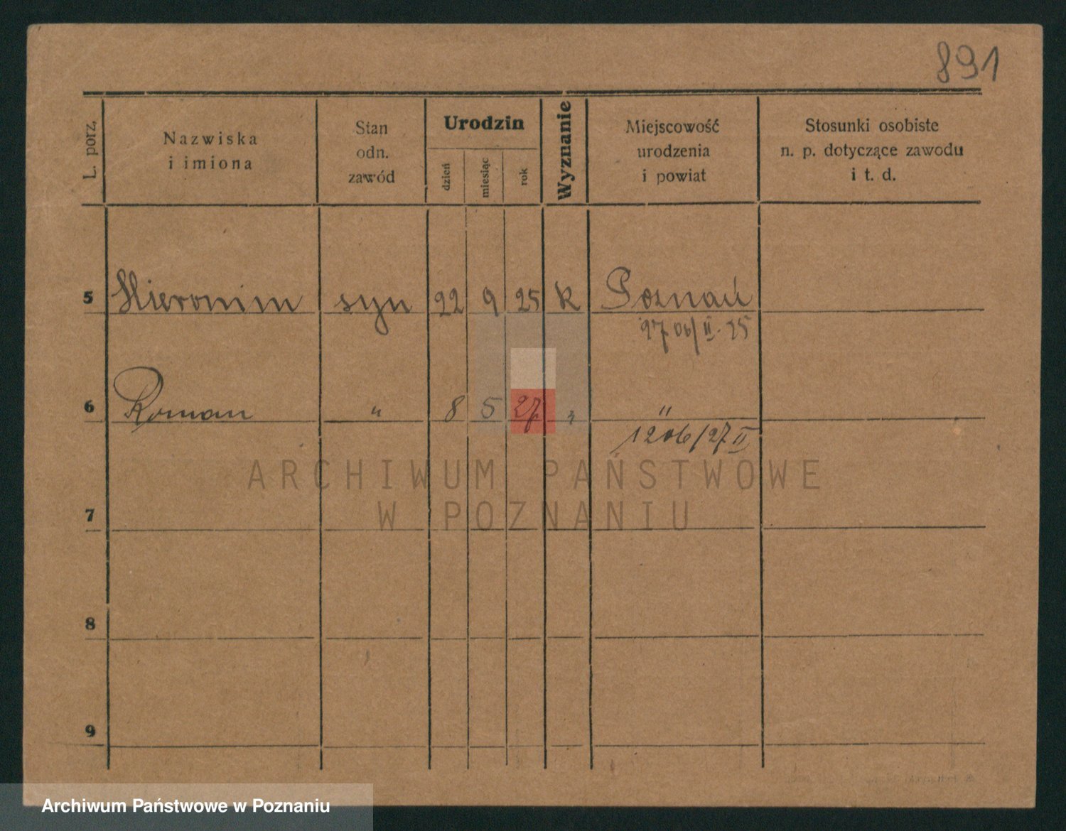 Podgląd karty osobowej dostępny jest po kliknięciu na nazwisko lub ikonkę karty. Można dokonywać powiększenia (ikony na górze) lub przechodzić między kolejnymi skanami (strzałki po bokach).