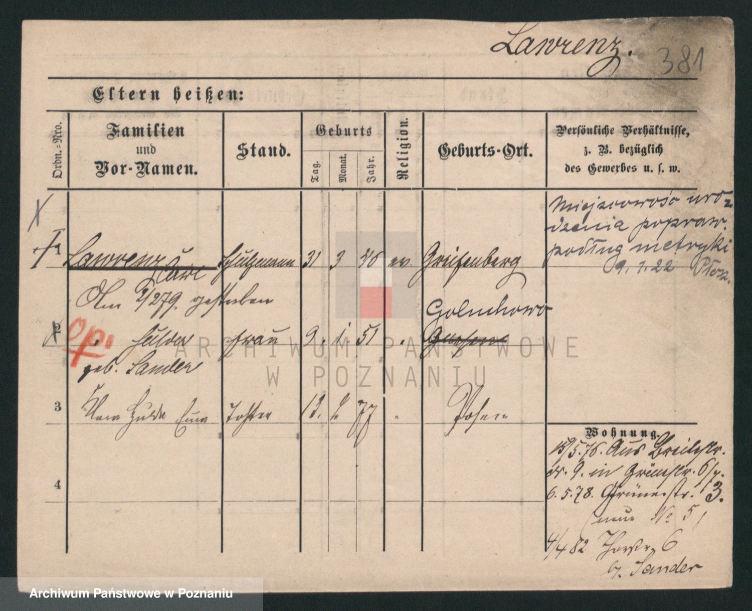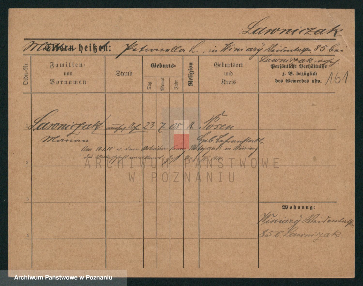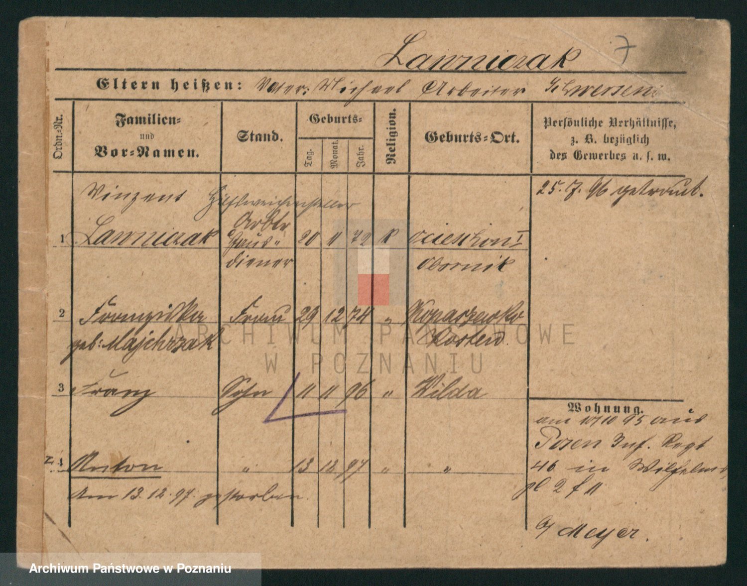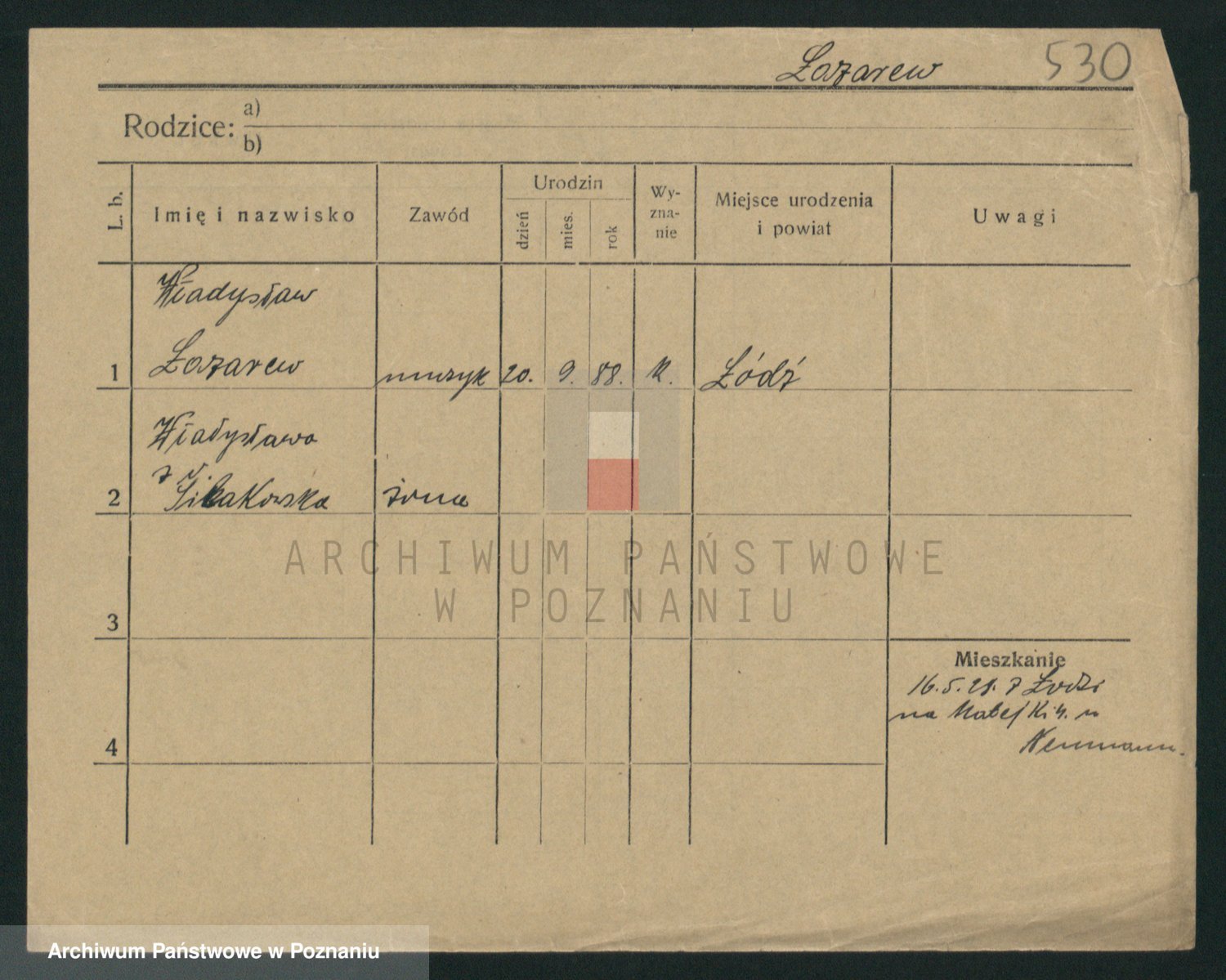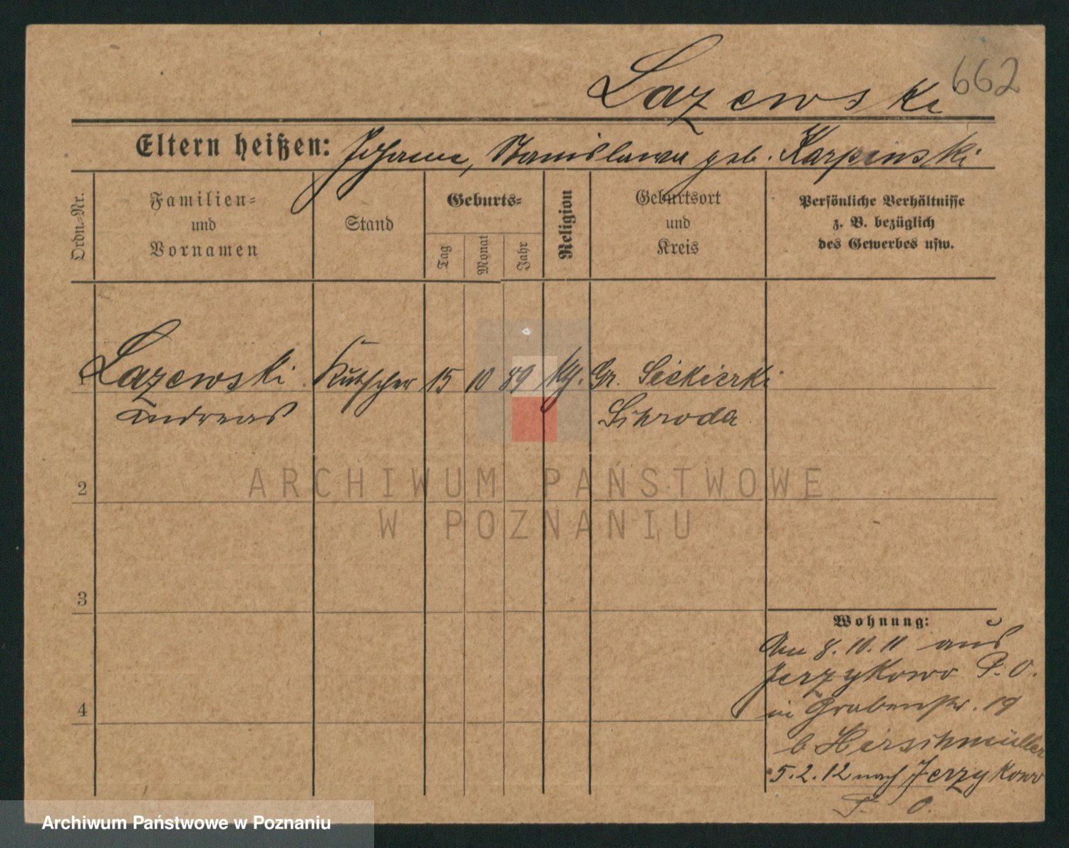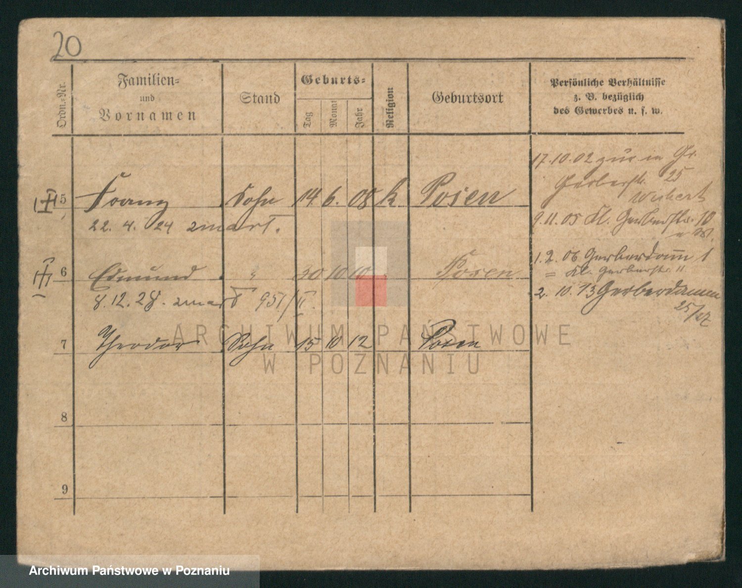Podgląd karty osobowej dostępny jest po kliknięciu na nazwisko lub ikonkę karty. Można dokonywać powiększenia (ikony na górze) lub przechodzić między kolejnymi skanami (strzałki po bokach).