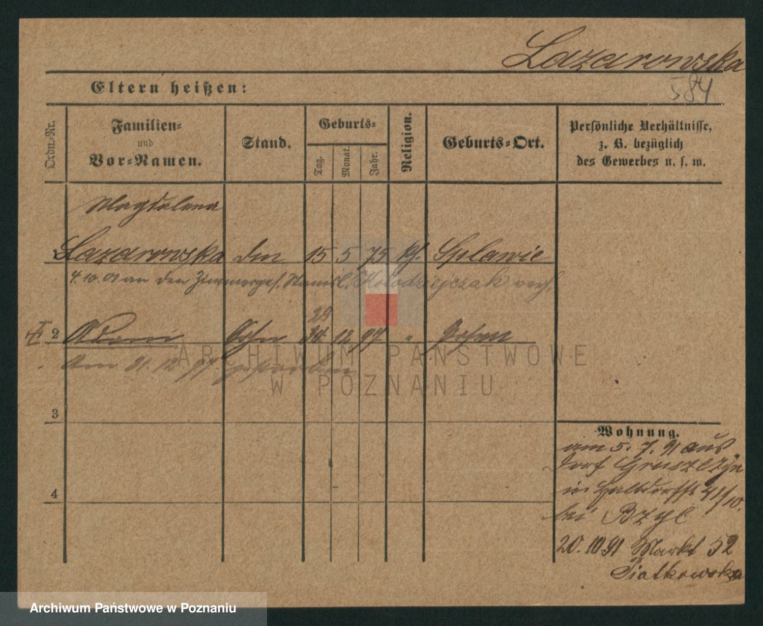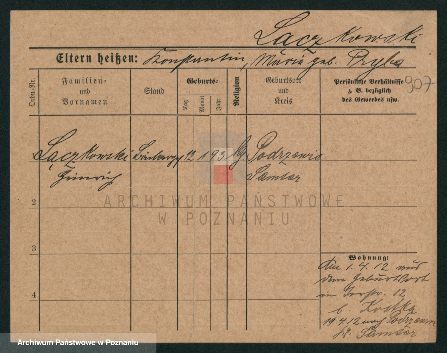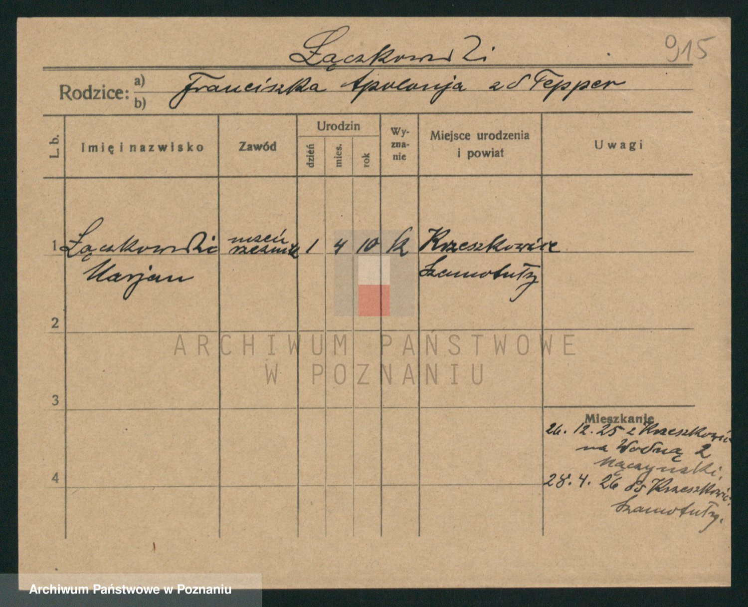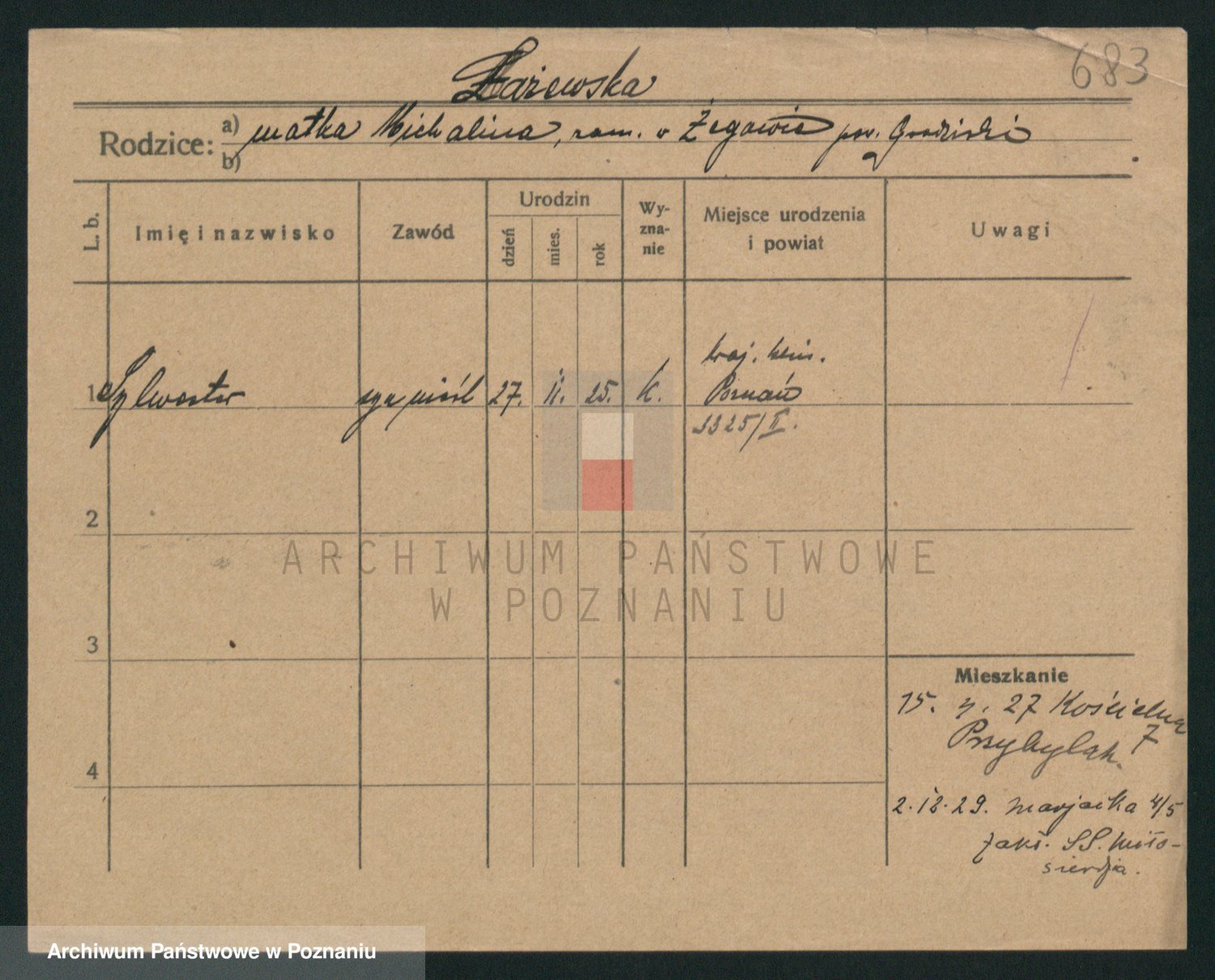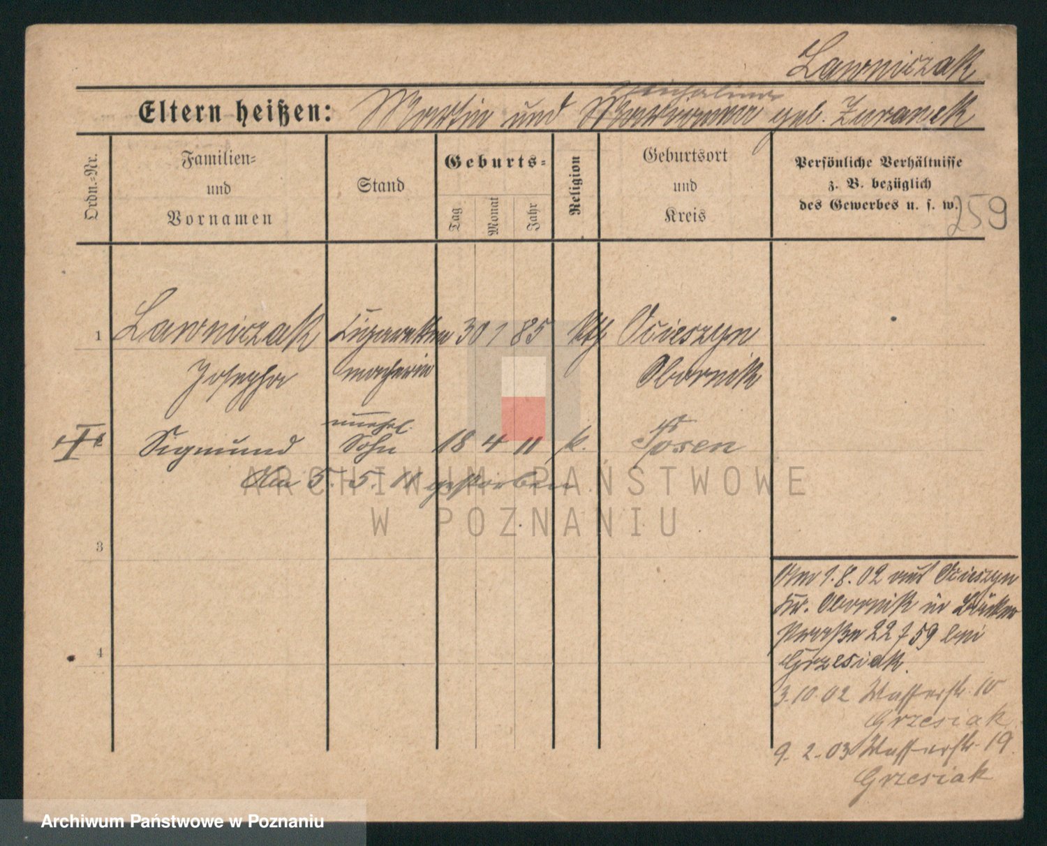 Podgląd karty osobowej dostępny jest po kliknięciu na nazwisko lub ikonkę karty. Można dokonywać powiększenia (ikony na górze) lub przechodzić między kolejnymi skanami (strzałki po bokach).