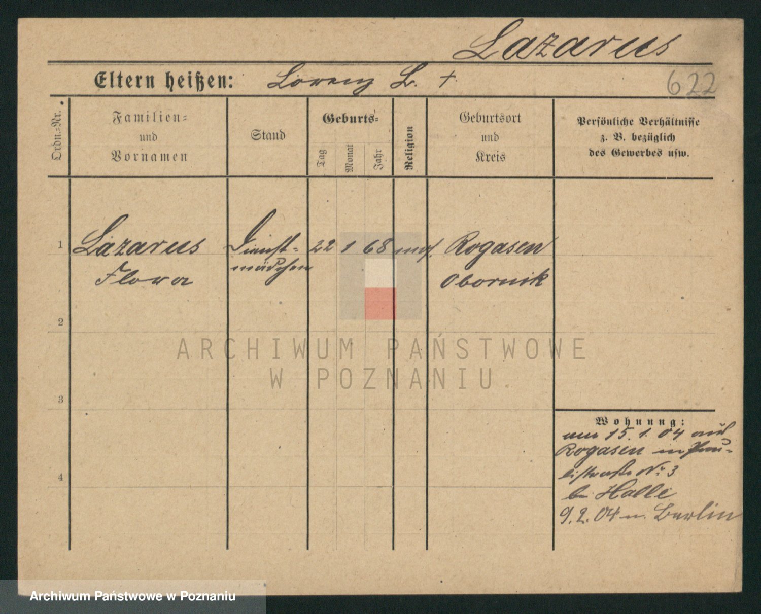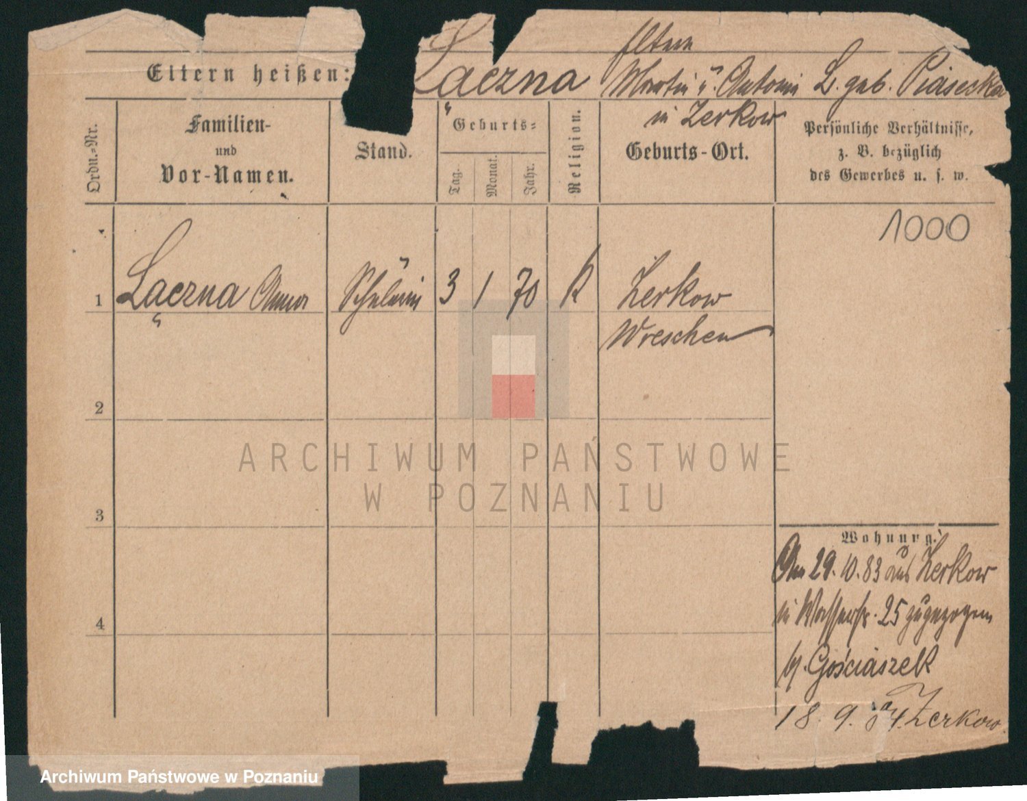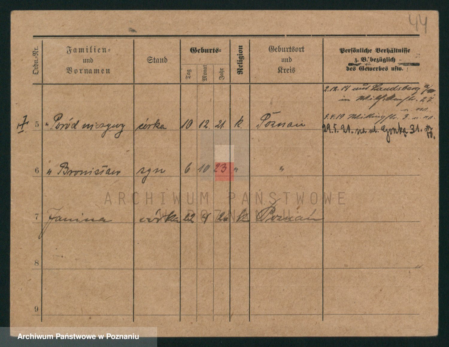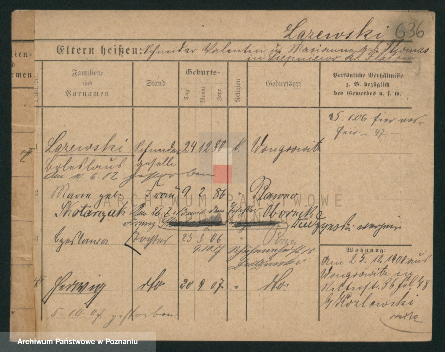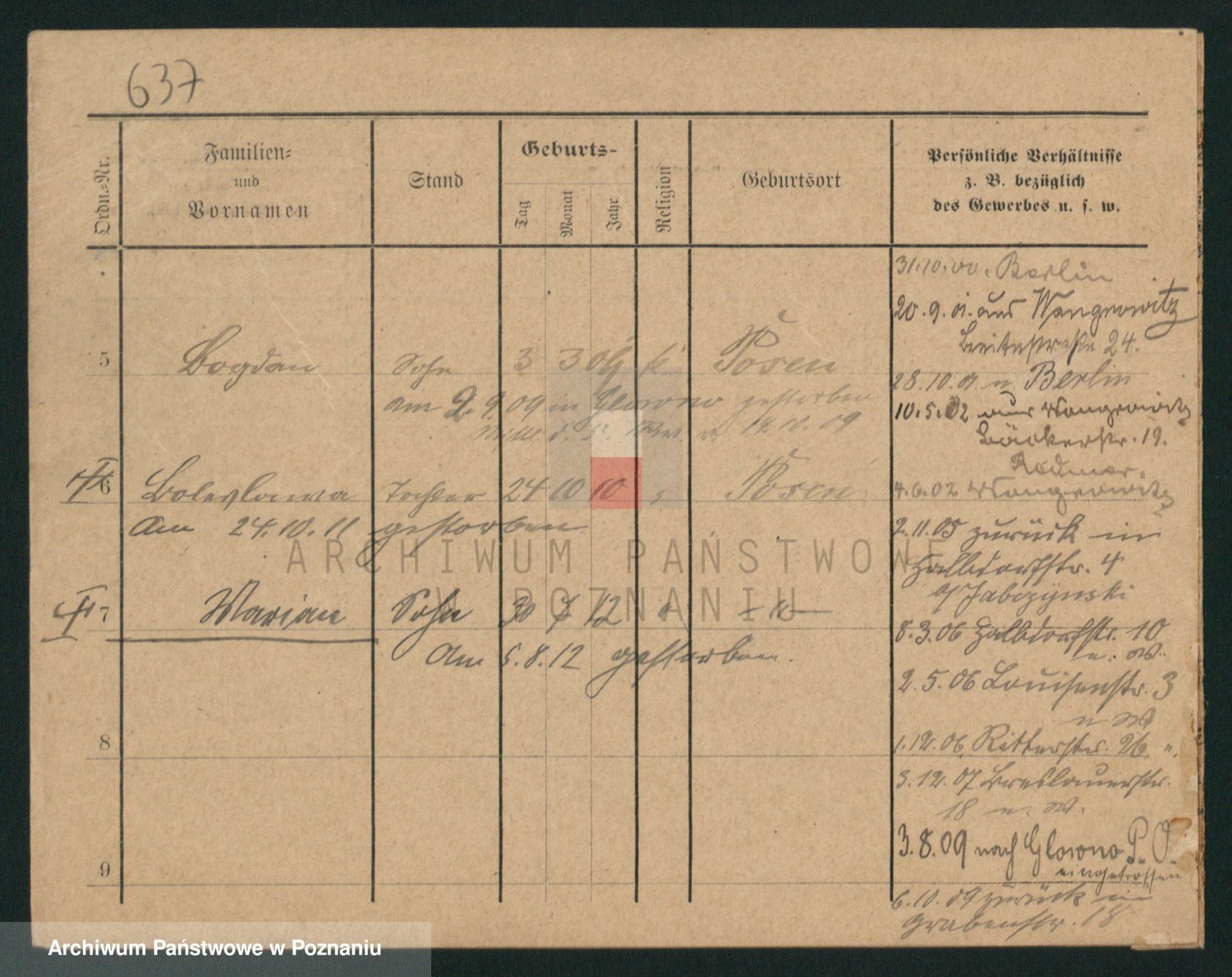 Podgląd karty osobowej dostępny jest po kliknięciu na nazwisko lub ikonkę karty. Można dokonywać powiększenia (ikony na górze) lub przechodzić między kolejnymi skanami (strzałki po bokach).