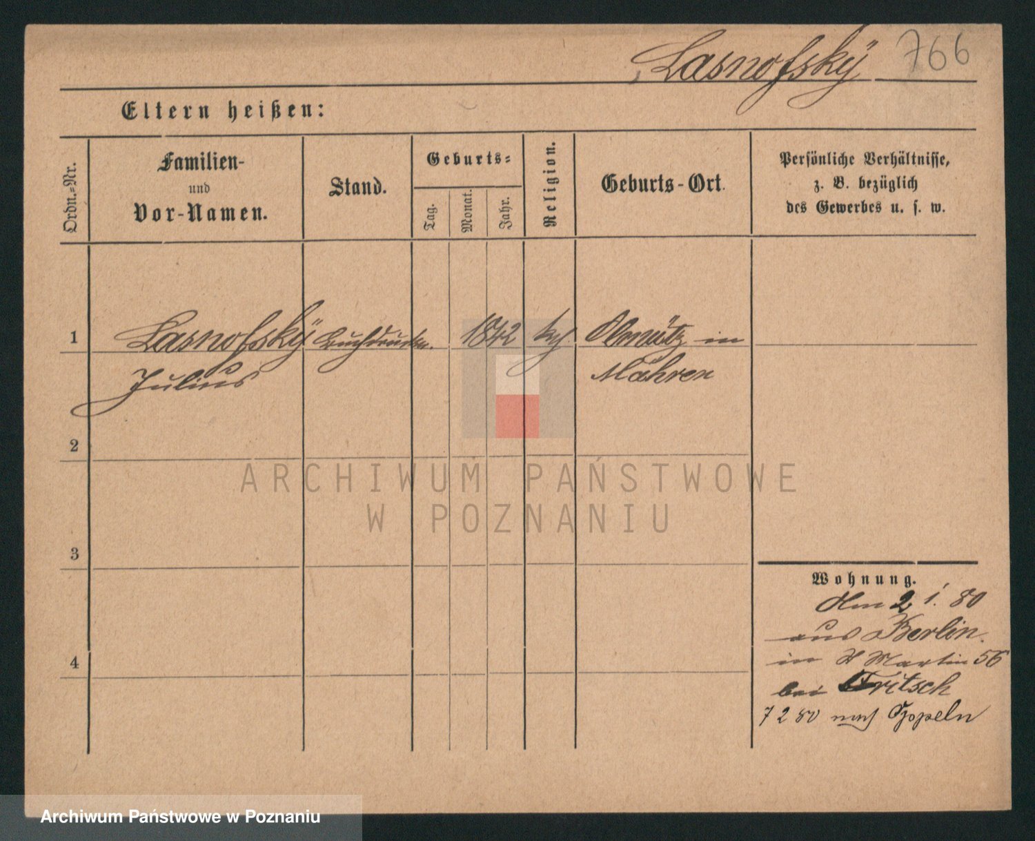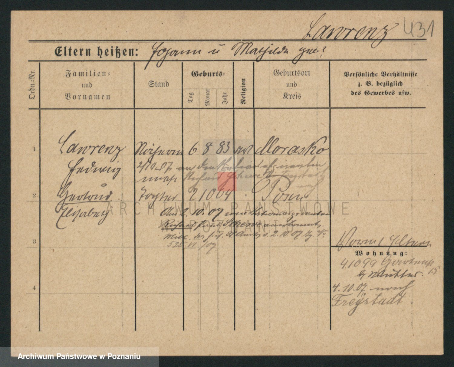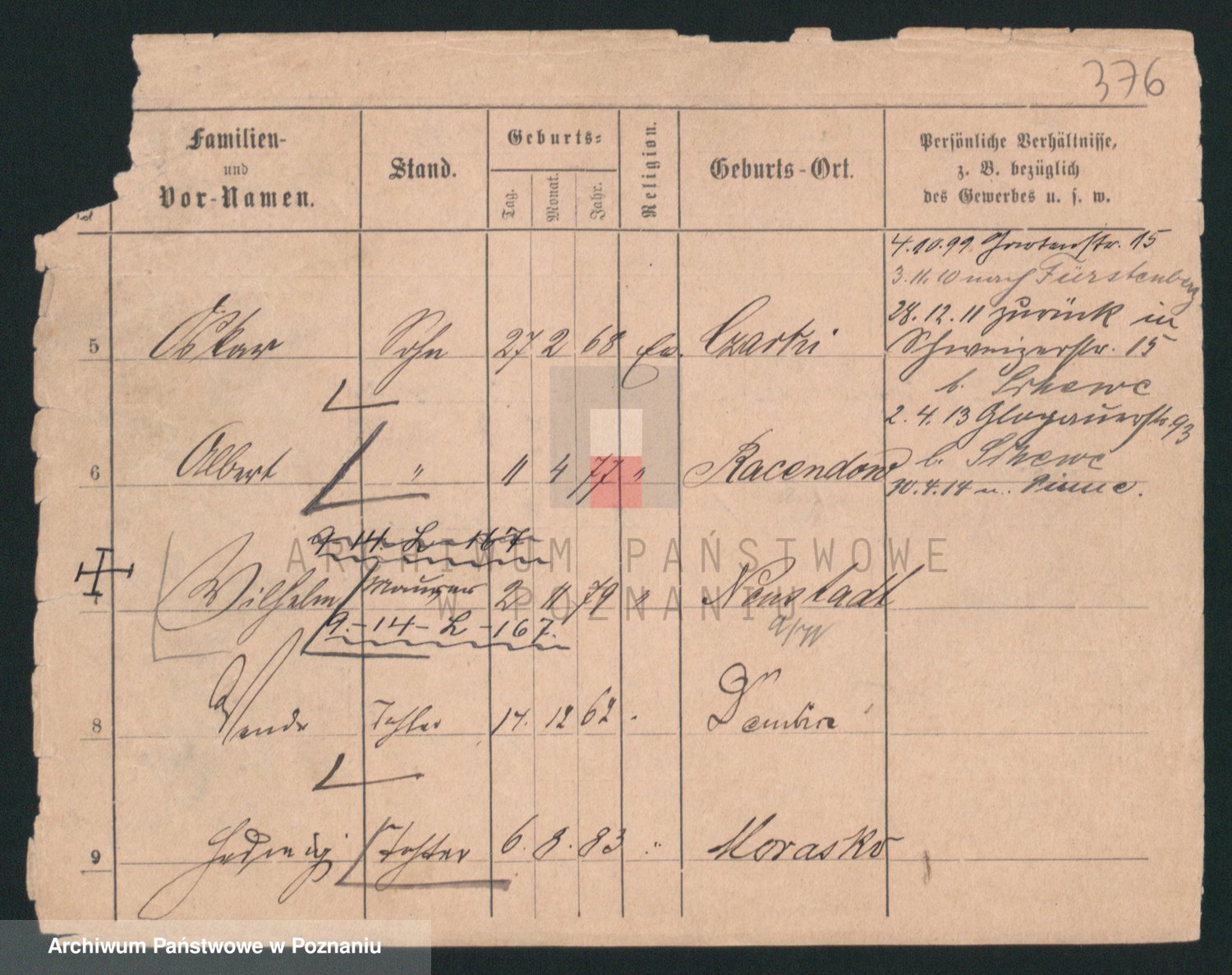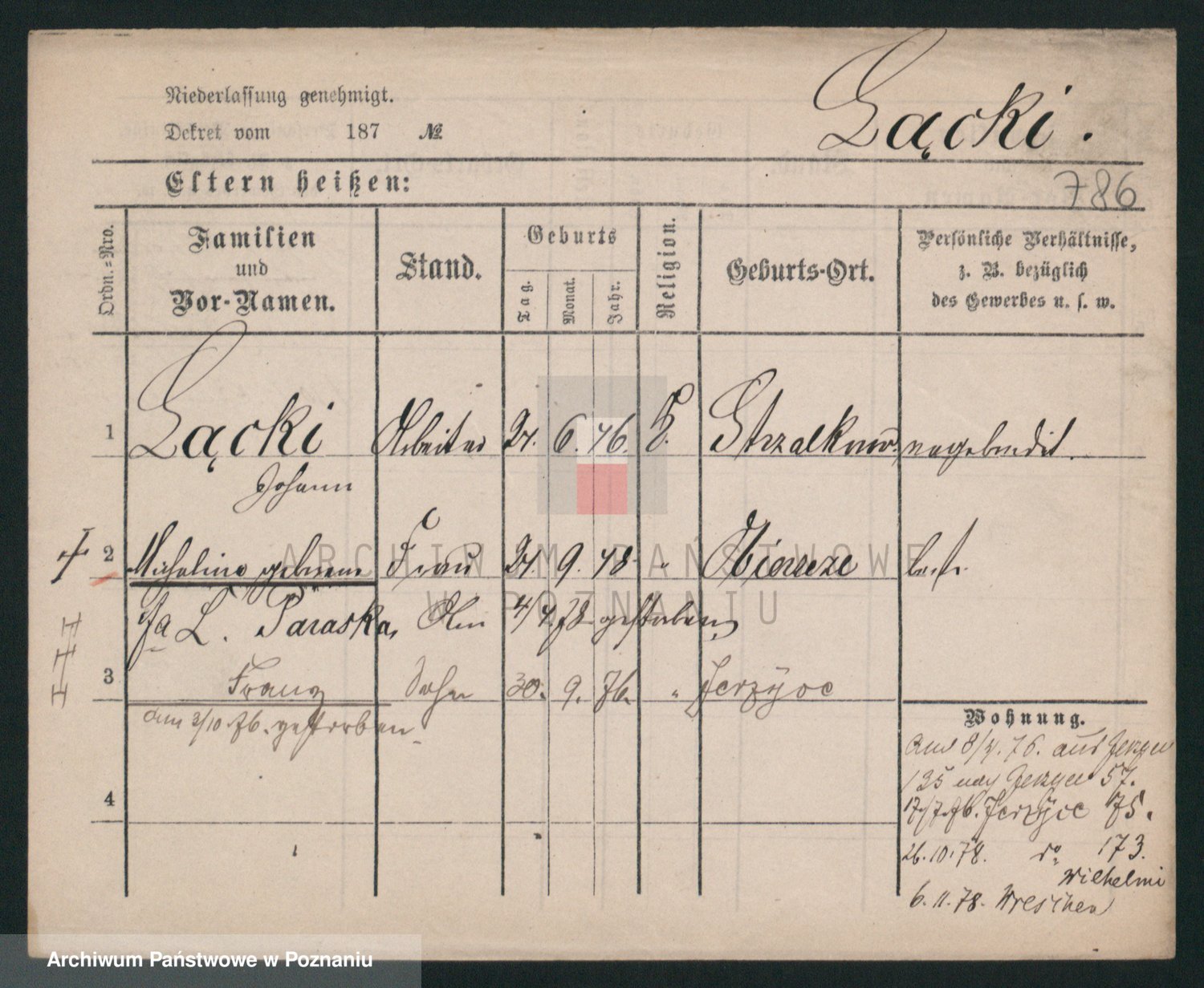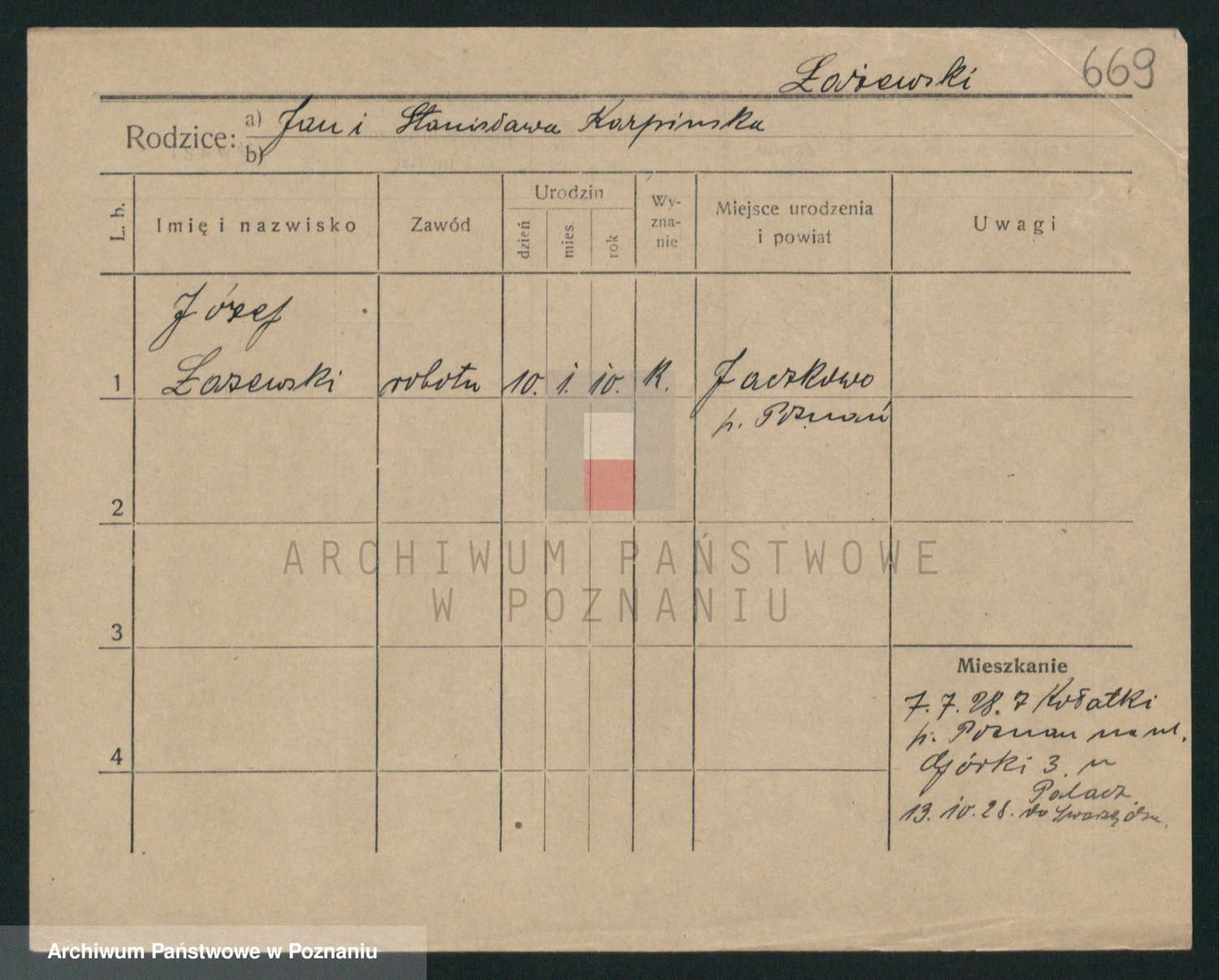 Podgląd karty osobowej dostępny jest po kliknięciu na nazwisko lub ikonkę karty. Można dokonywać powiększenia (ikony na górze) lub przechodzić między kolejnymi skanami (strzałki po bokach).