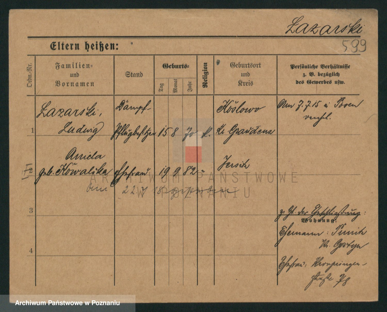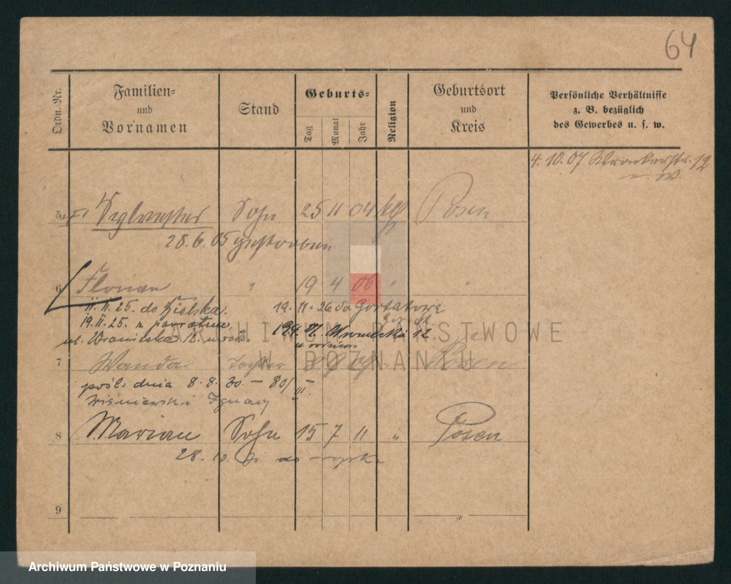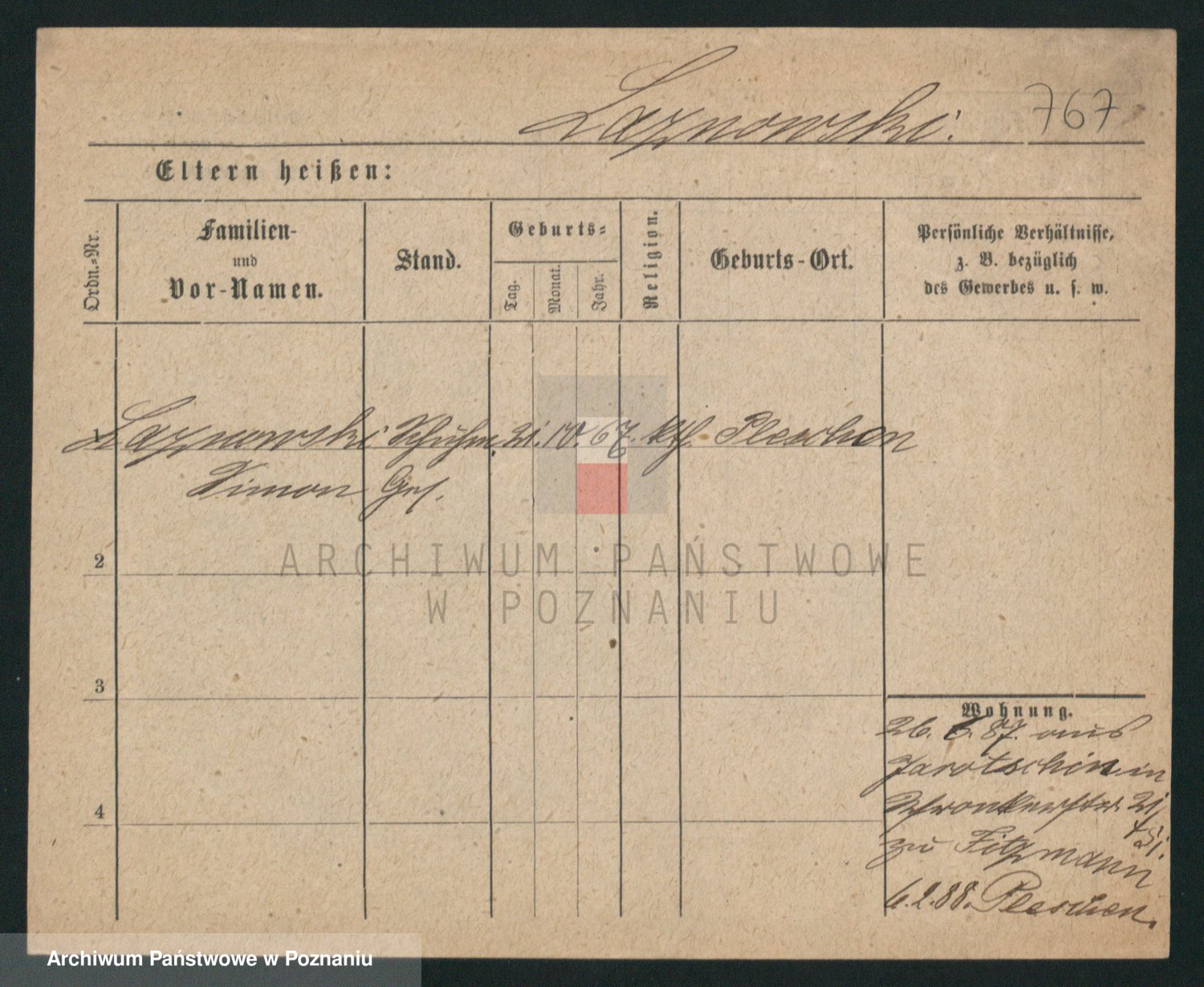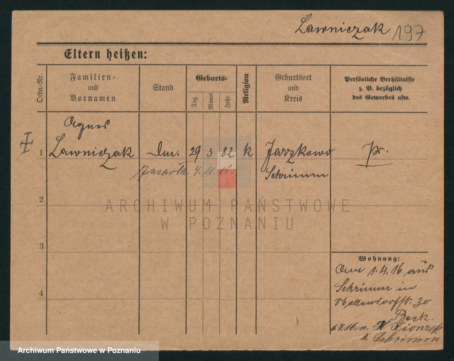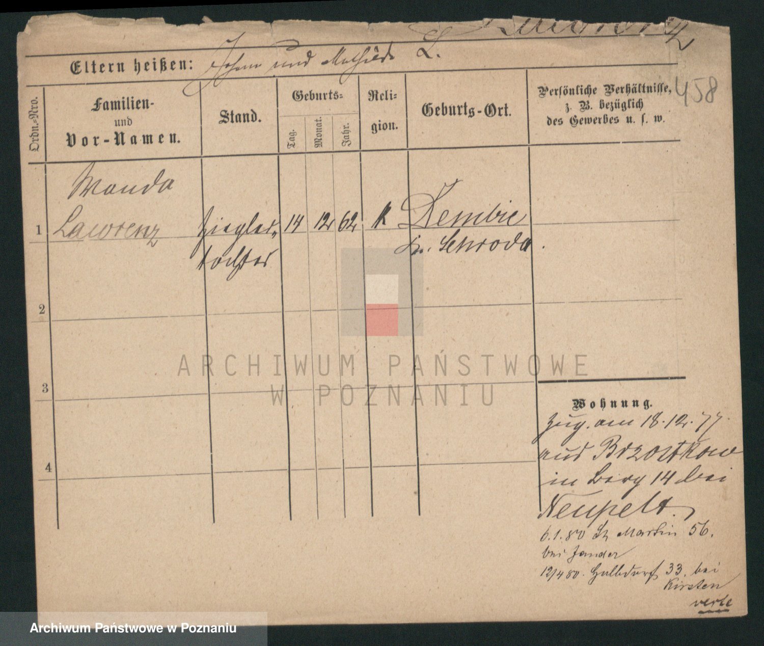 Podgląd karty osobowej dostępny jest po kliknięciu na nazwisko lub ikonkę karty. Można dokonywać powiększenia (ikony na górze) lub przechodzić między kolejnymi skanami (strzałki po bokach).
