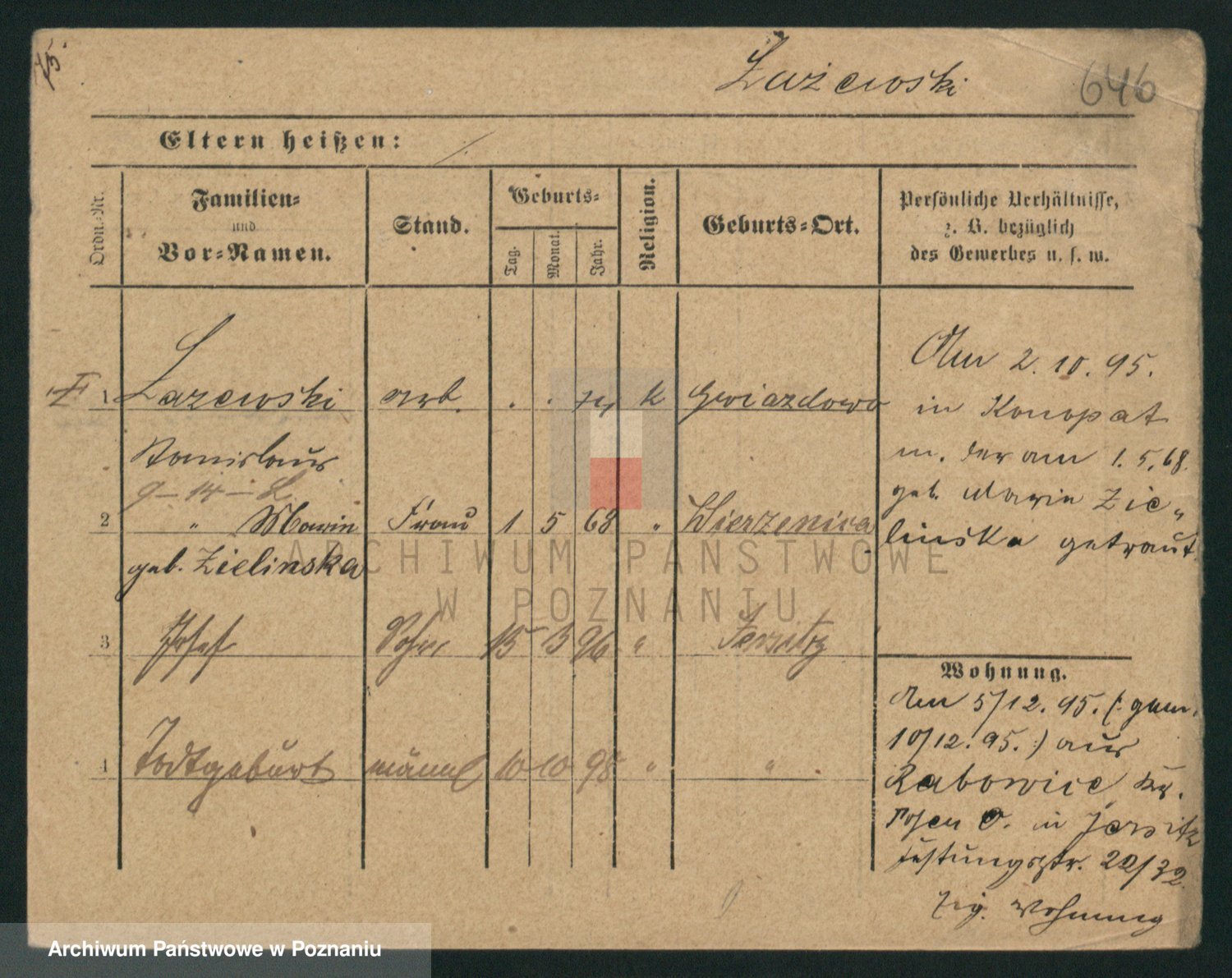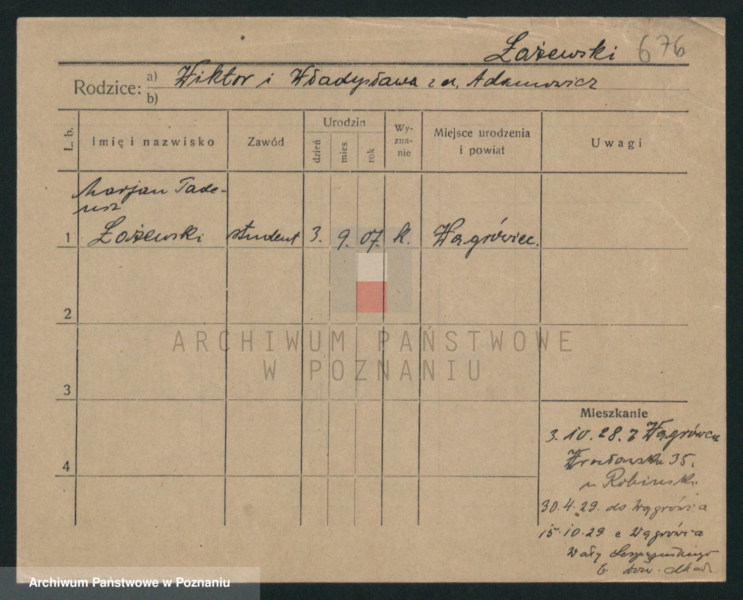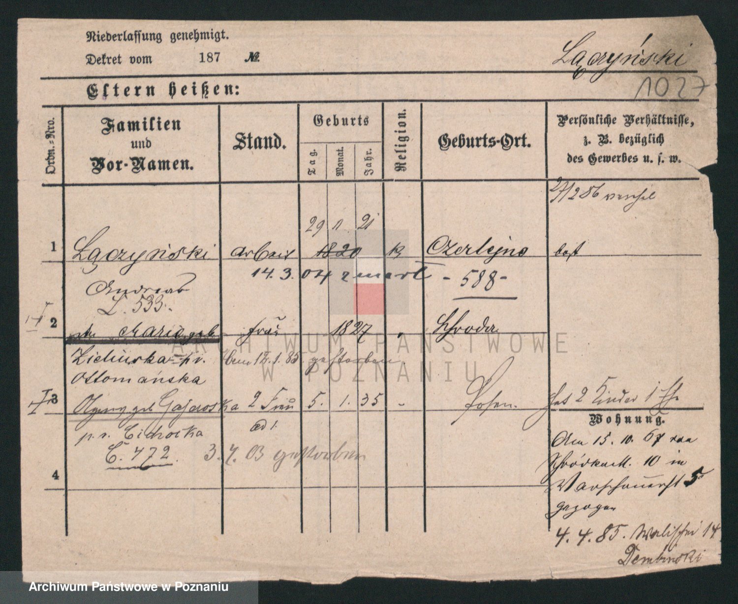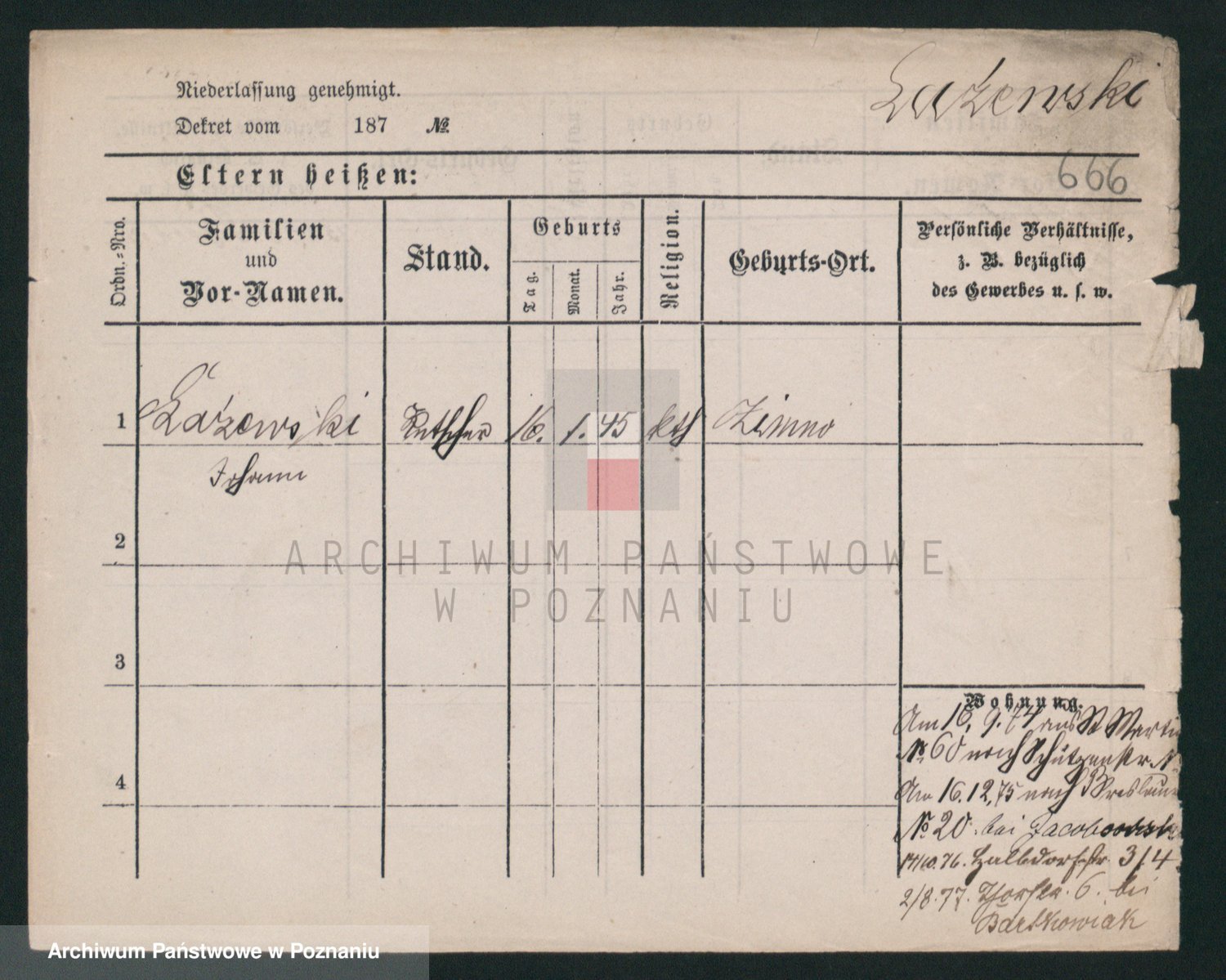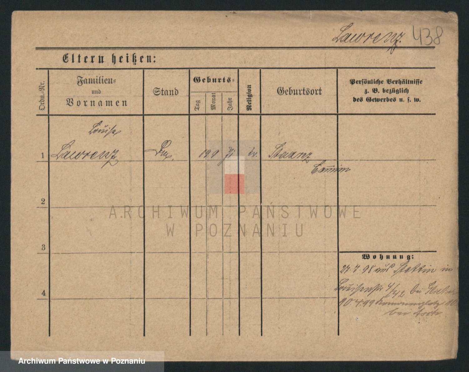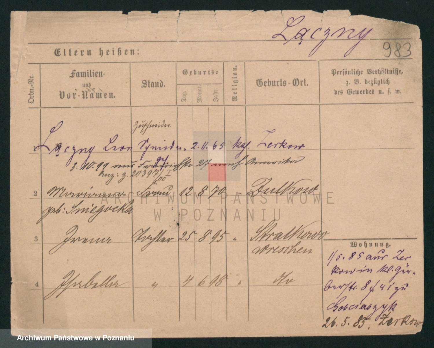 Podgląd karty osobowej dostępny jest po kliknięciu na nazwisko lub ikonkę karty. Można dokonywać powiększenia (ikony na górze) lub przechodzić między kolejnymi skanami (strzałki po bokach).