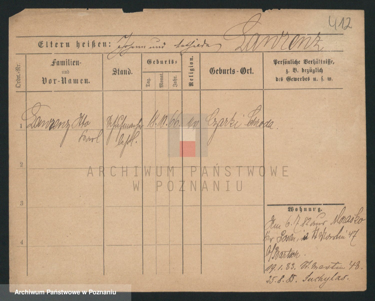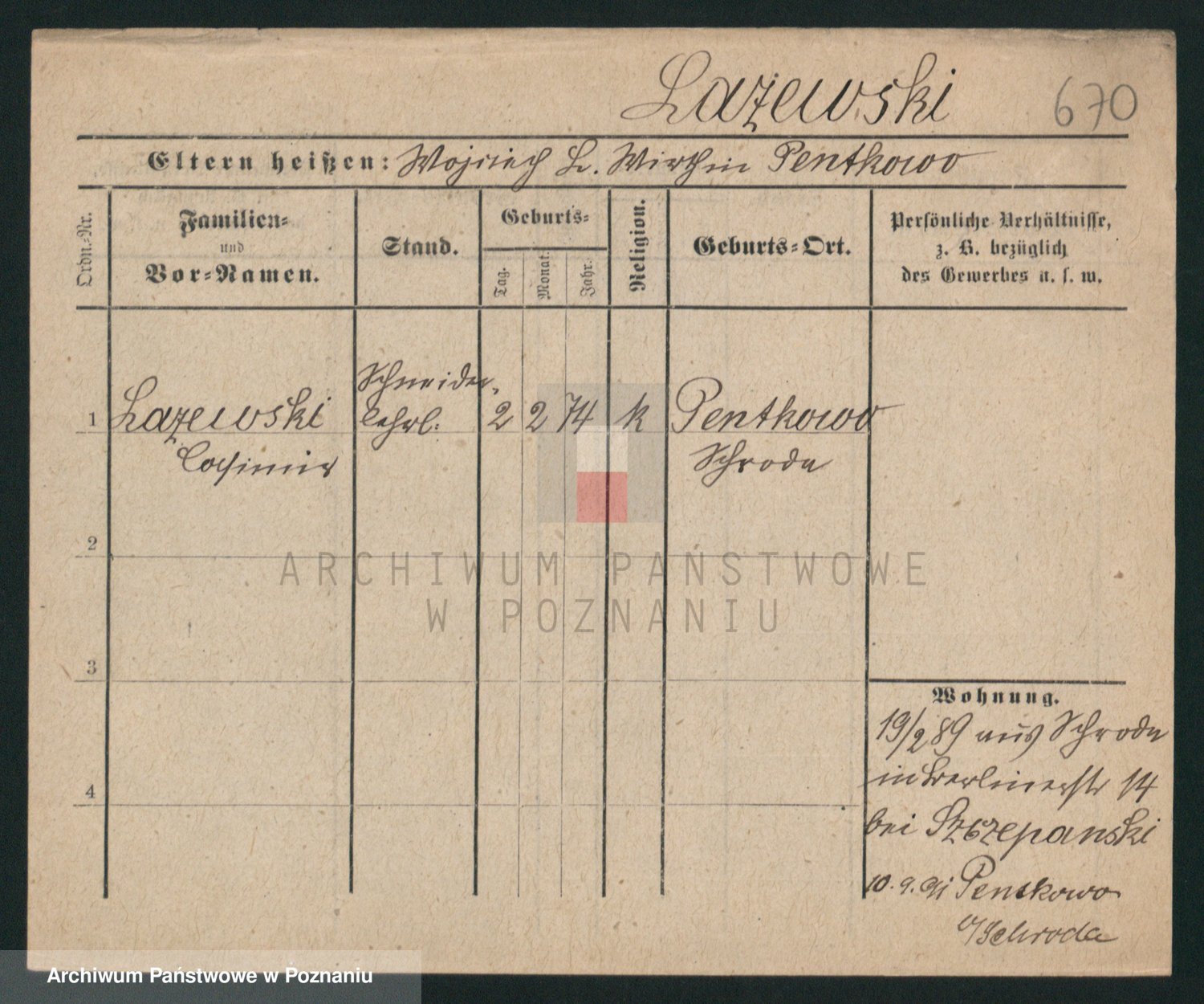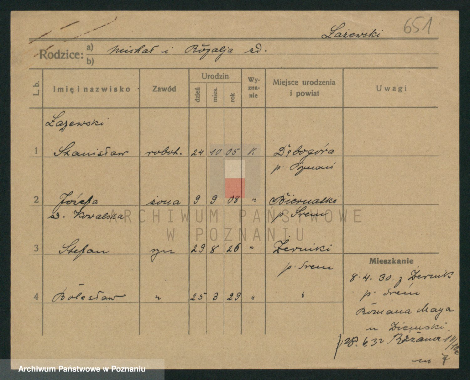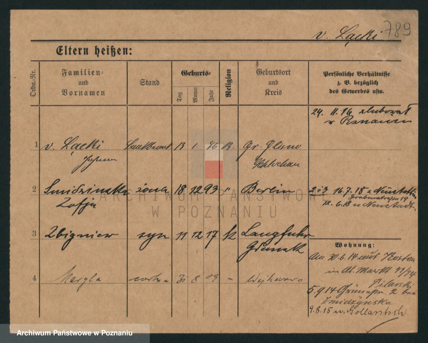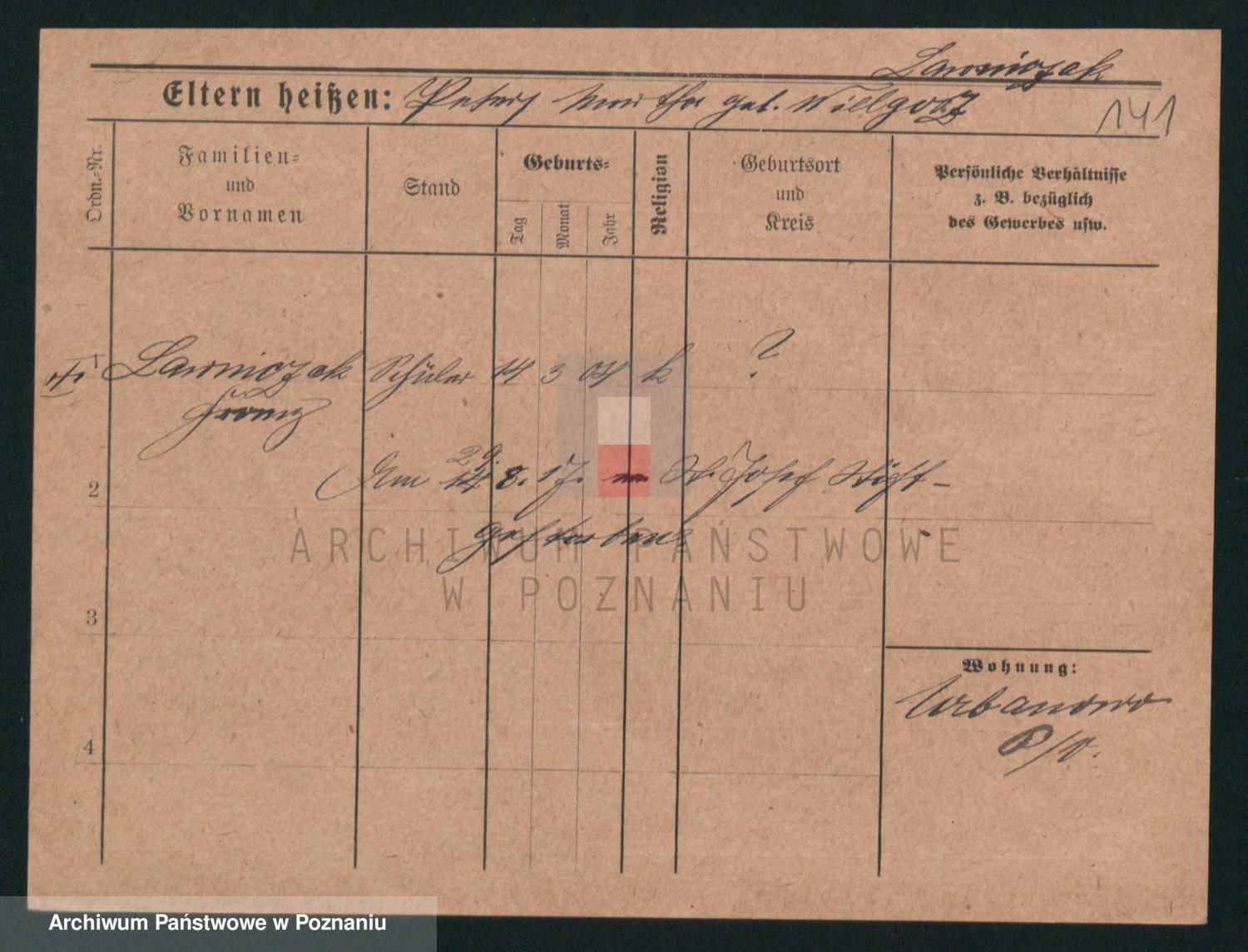 Podgląd karty osobowej dostępny jest po kliknięciu na nazwisko lub ikonkę karty. Można dokonywać powiększenia (ikony na górze) lub przechodzić między kolejnymi skanami (strzałki po bokach).