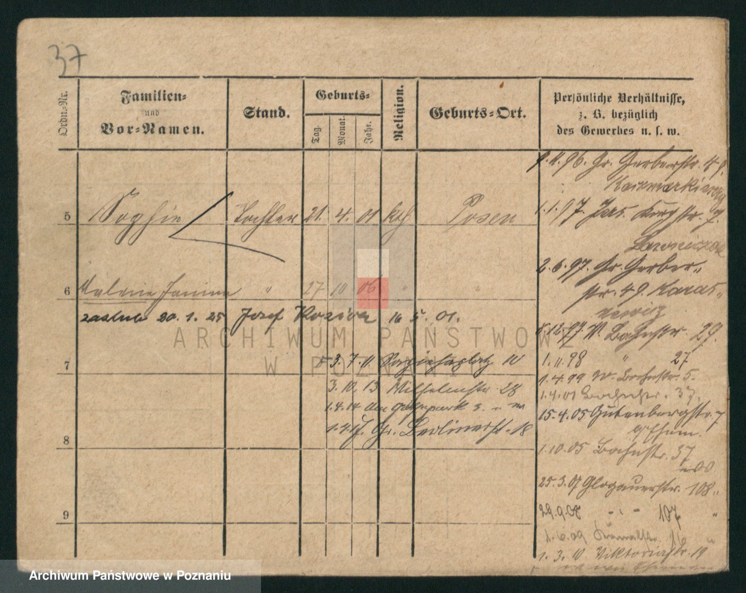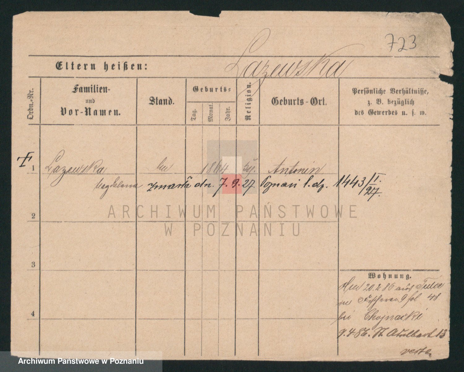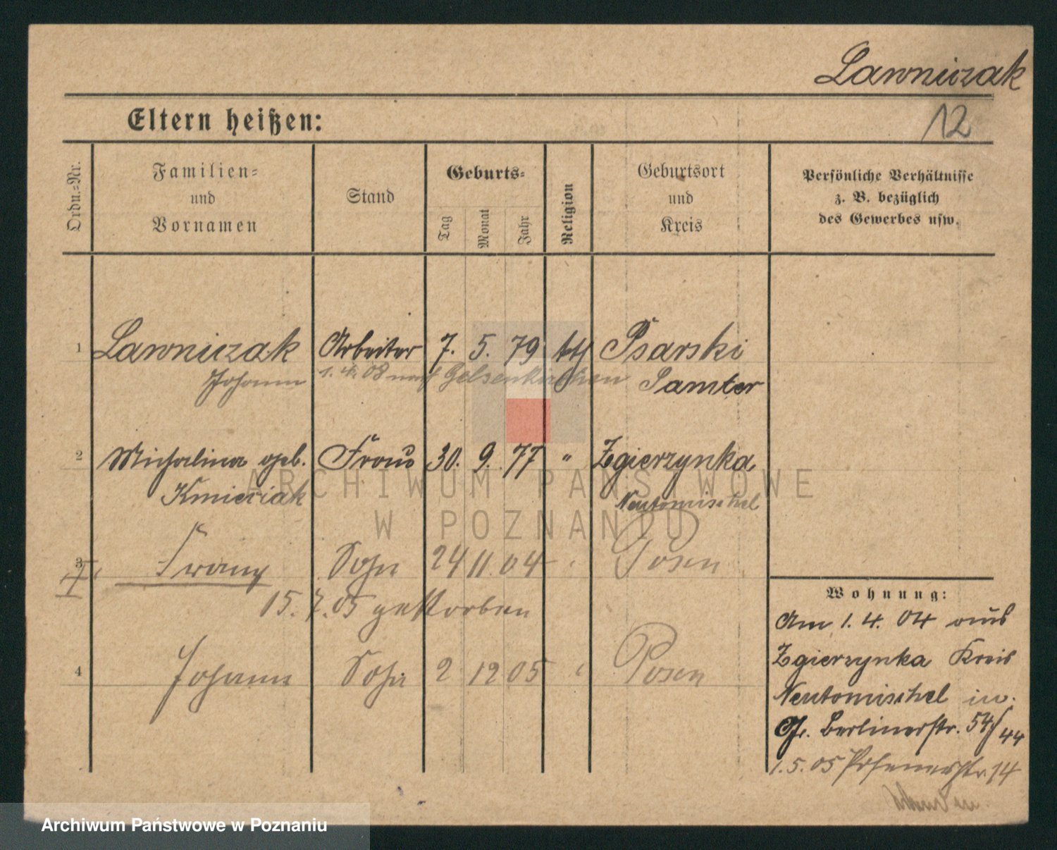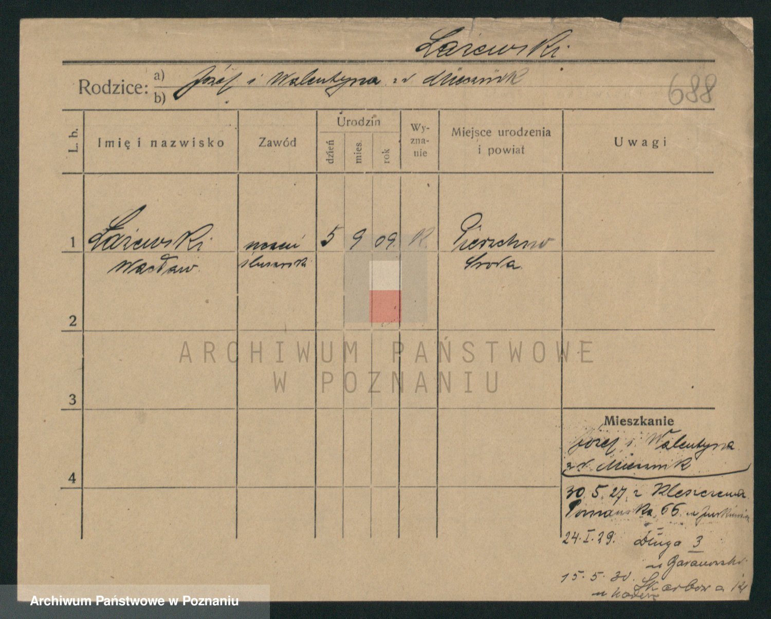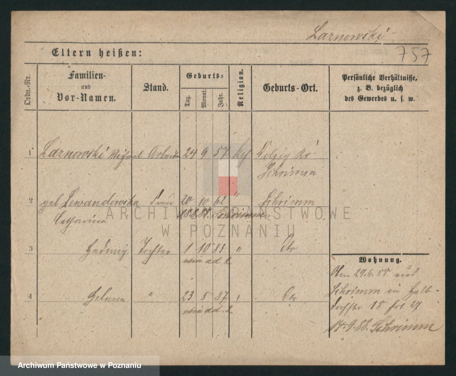 Podgląd karty osobowej dostępny jest po kliknięciu na nazwisko lub ikonkę karty. Można dokonywać powiększenia (ikony na górze) lub przechodzić między kolejnymi skanami (strzałki po bokach).