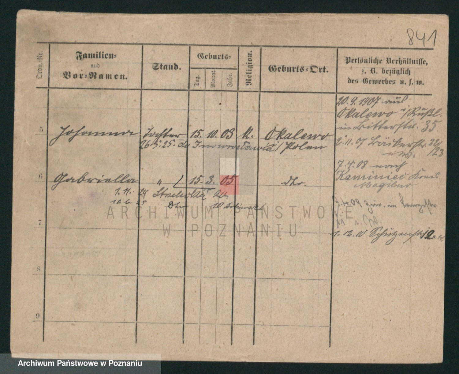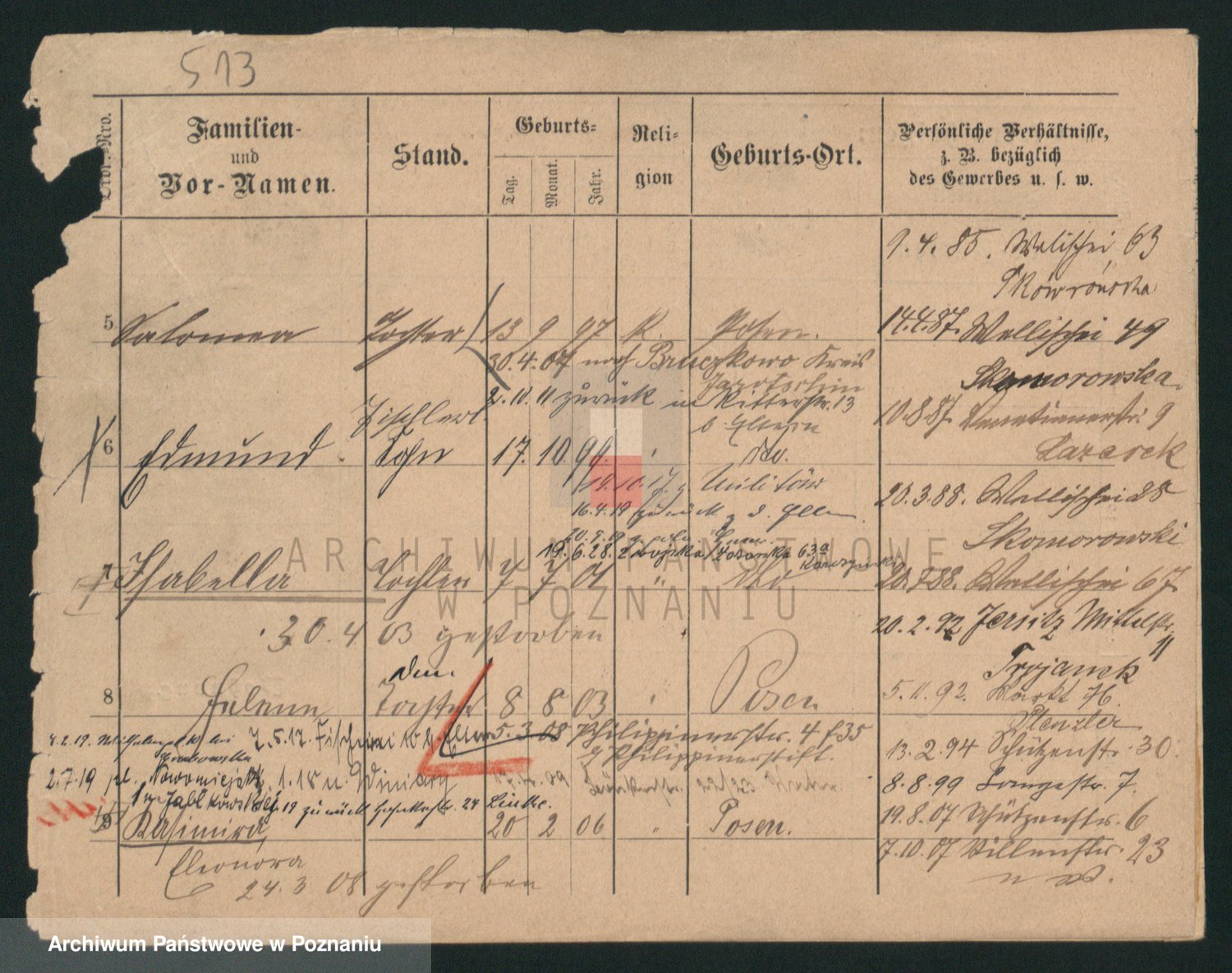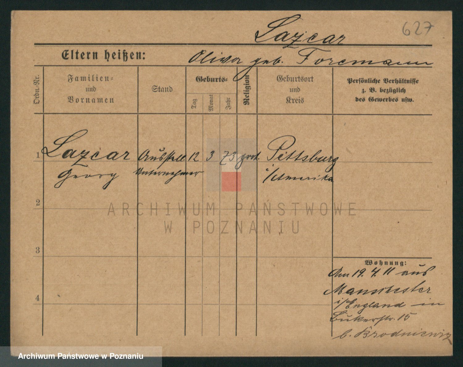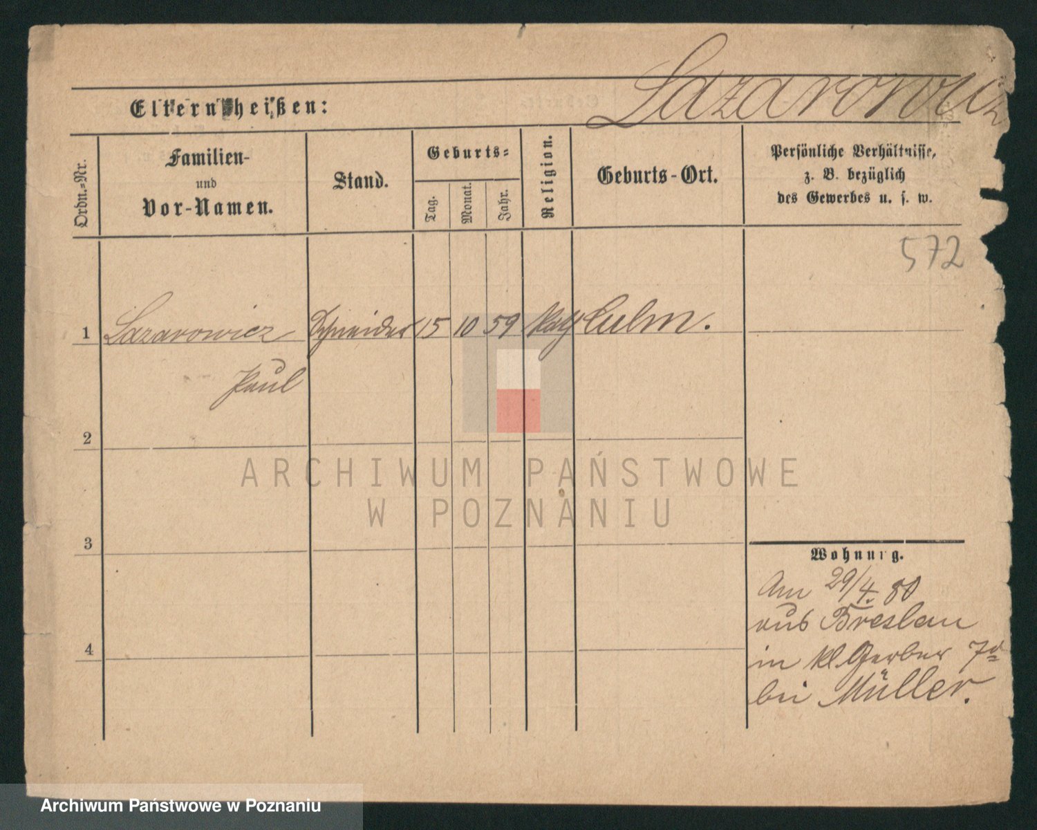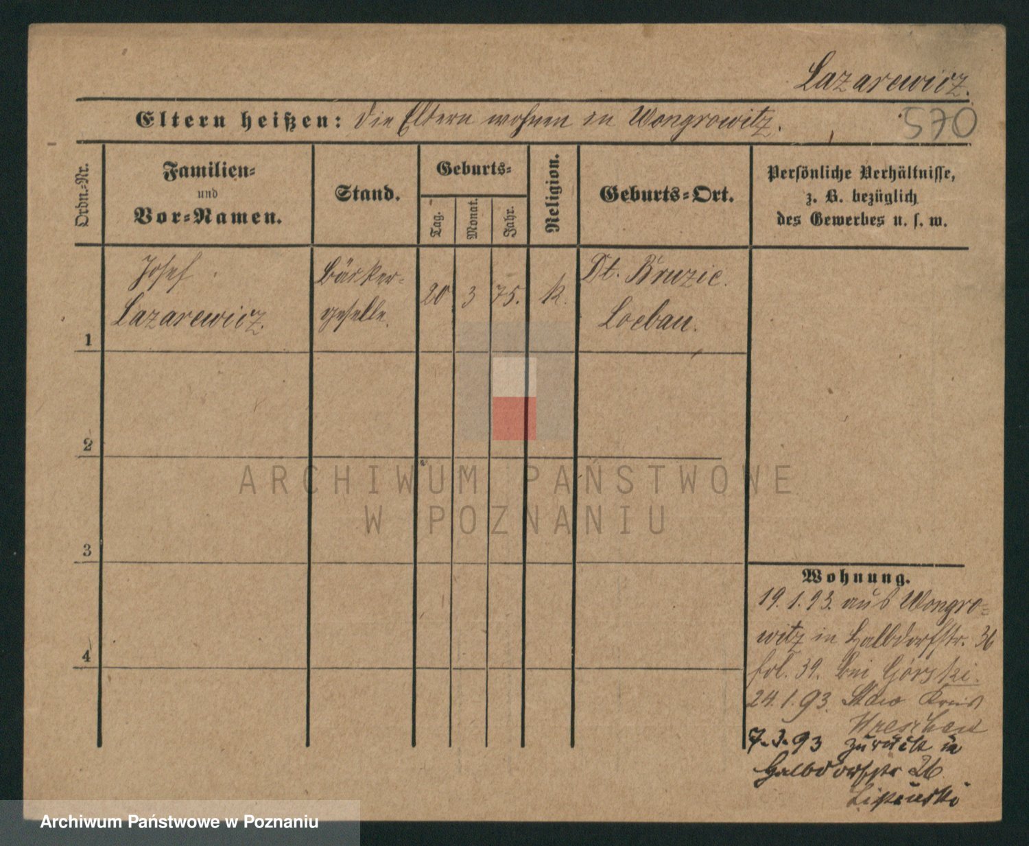Podgląd karty osobowej dostępny jest po kliknięciu na nazwisko lub ikonkę karty. Można dokonywać powiększenia (ikony na górze) lub przechodzić między kolejnymi skanami (strzałki po bokach).