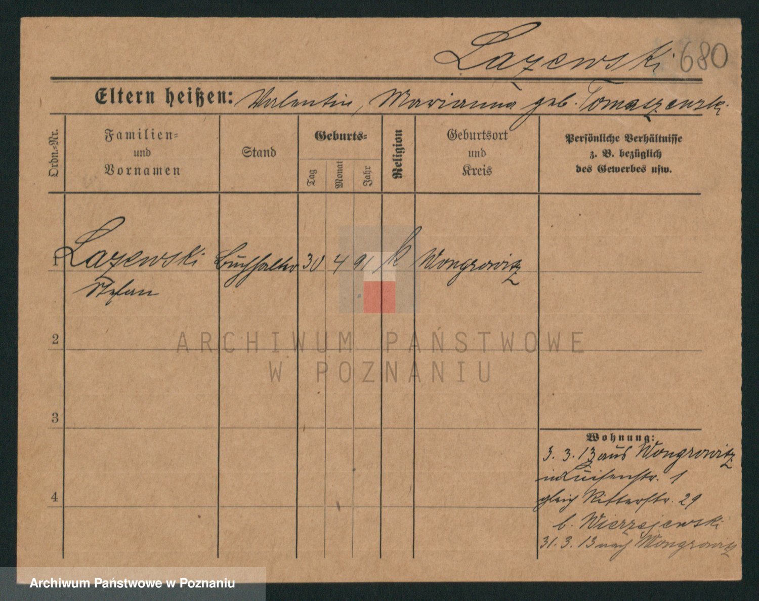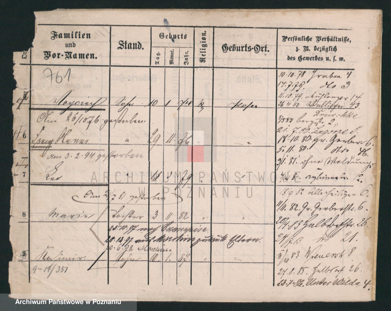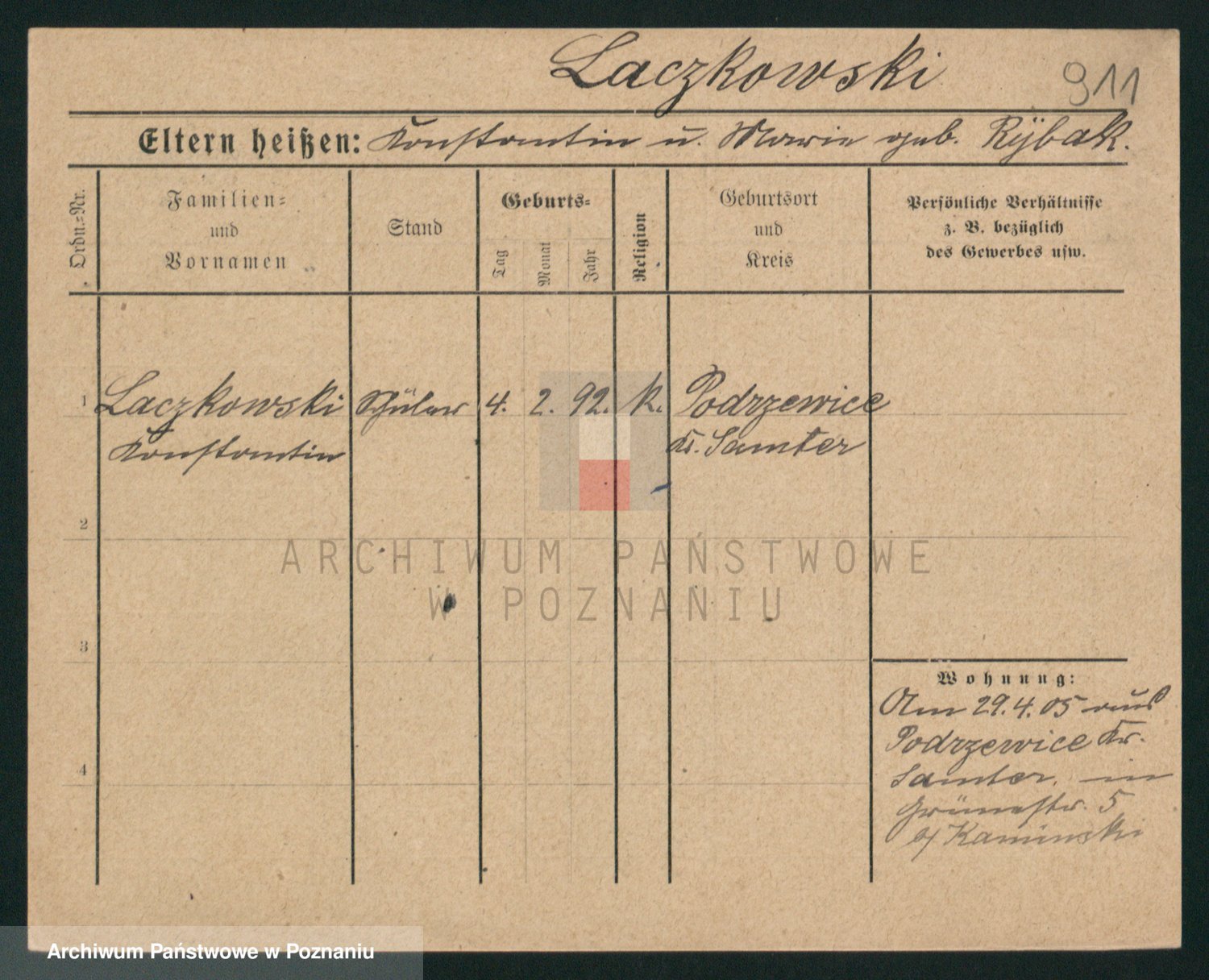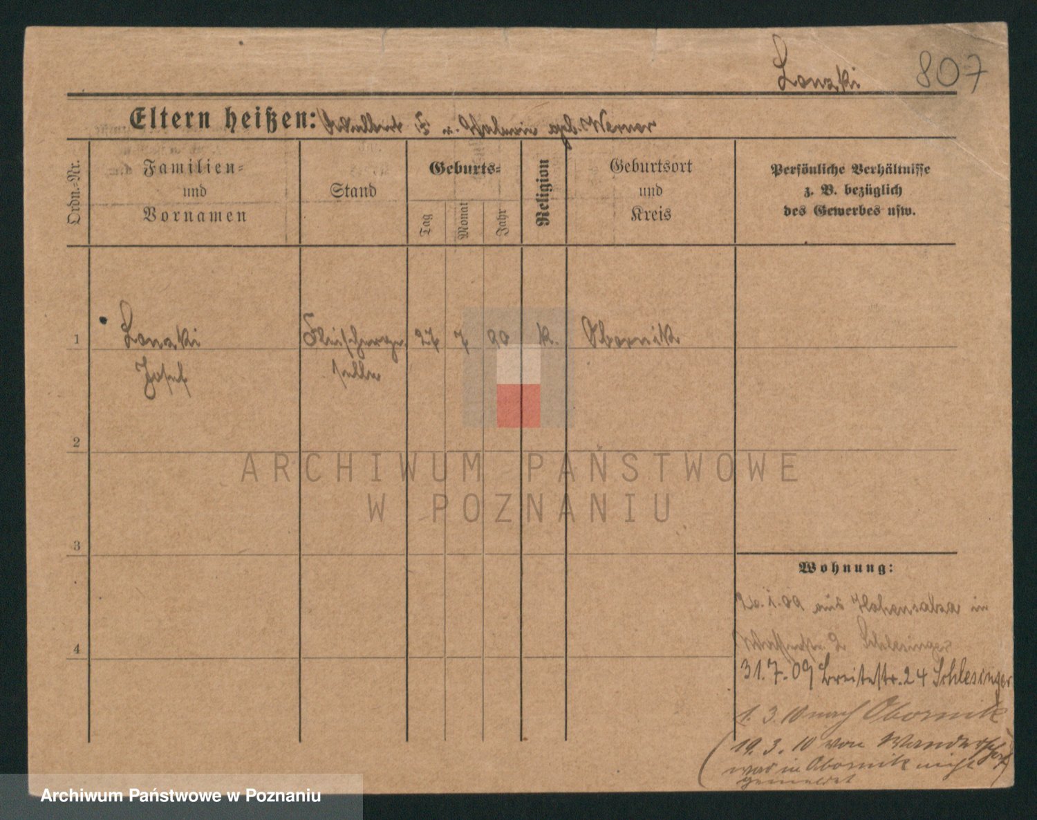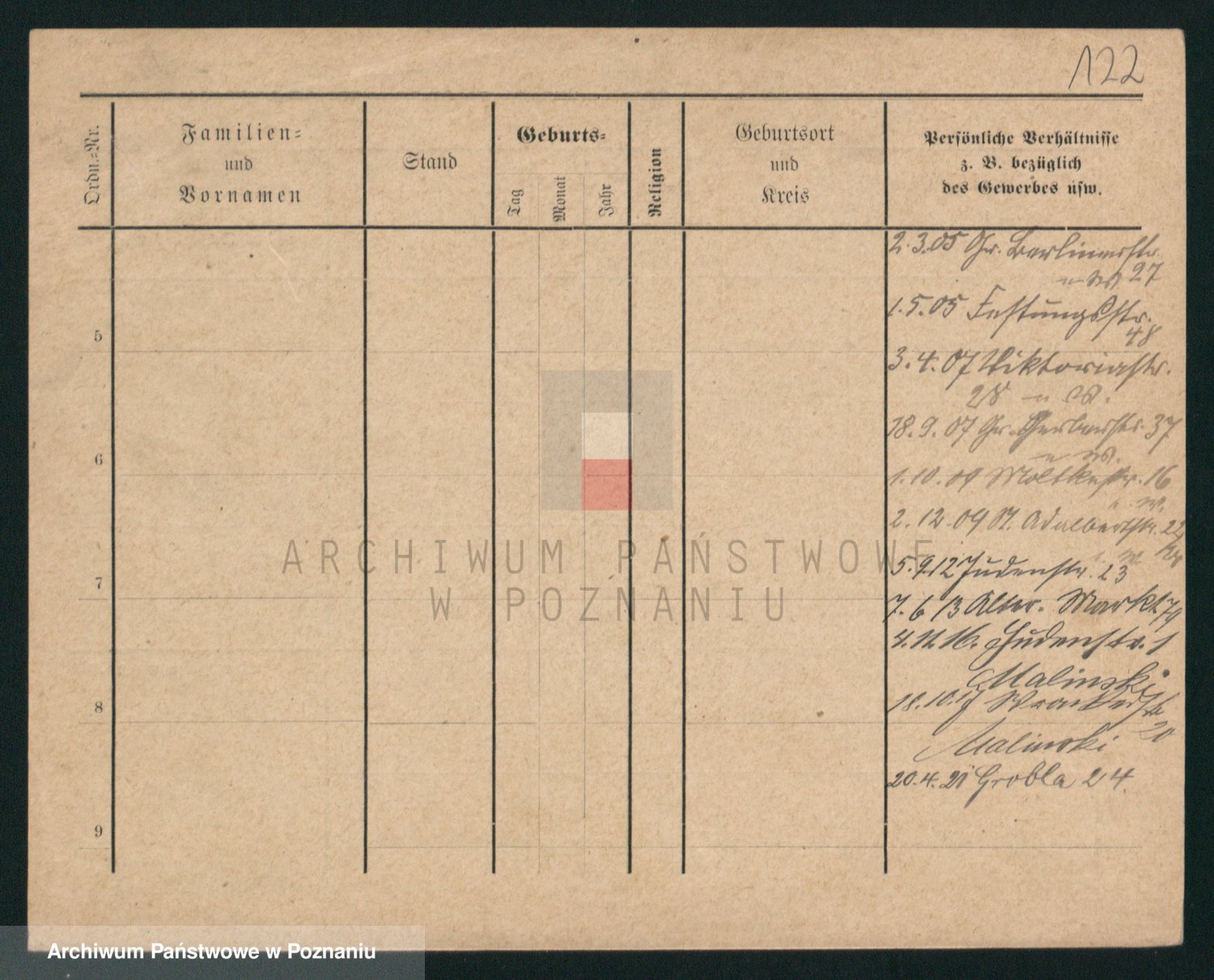 Podgląd karty osobowej dostępny jest po kliknięciu na nazwisko lub ikonkę karty. Można dokonywać powiększenia (ikony na górze) lub przechodzić między kolejnymi skanami (strzałki po bokach).