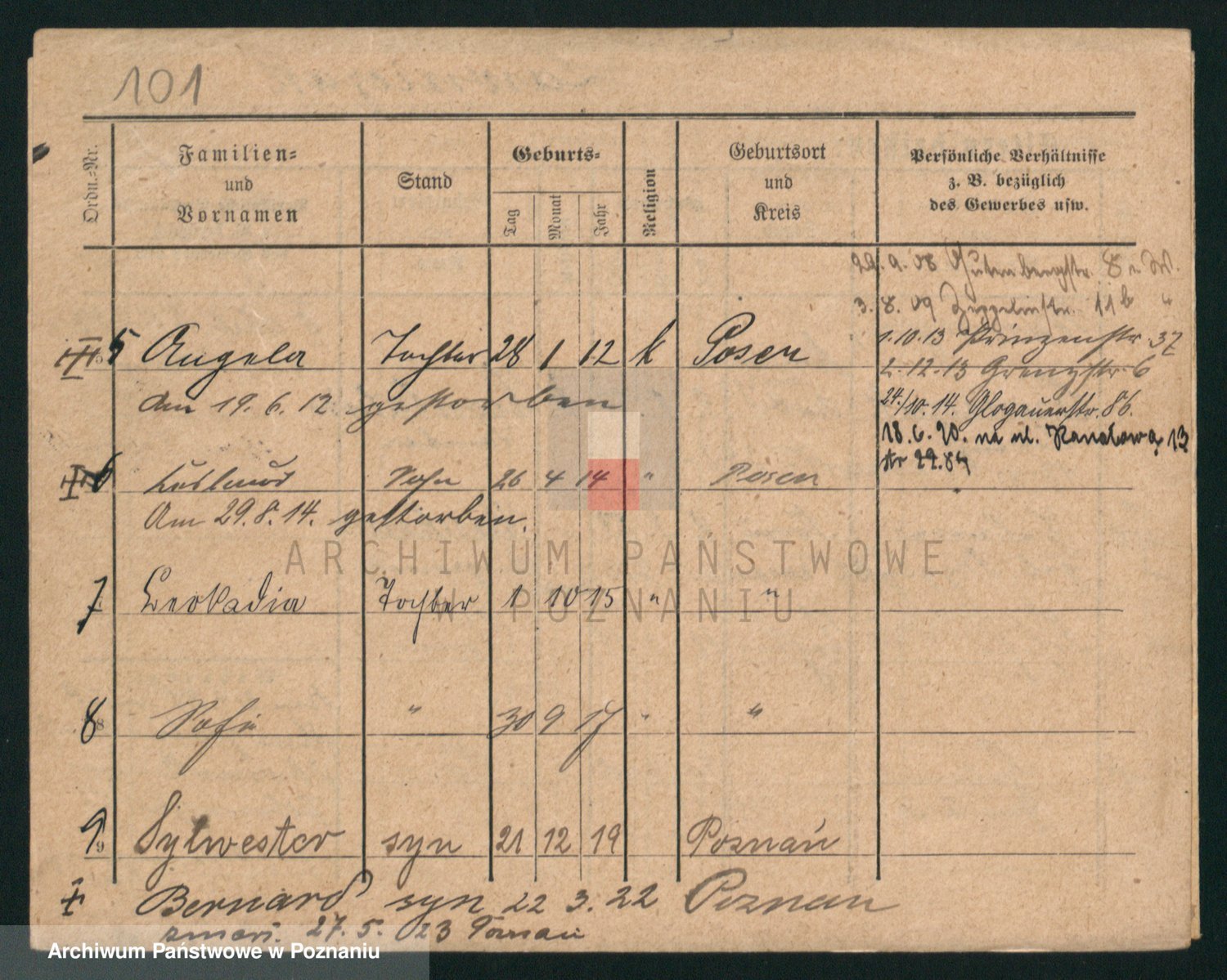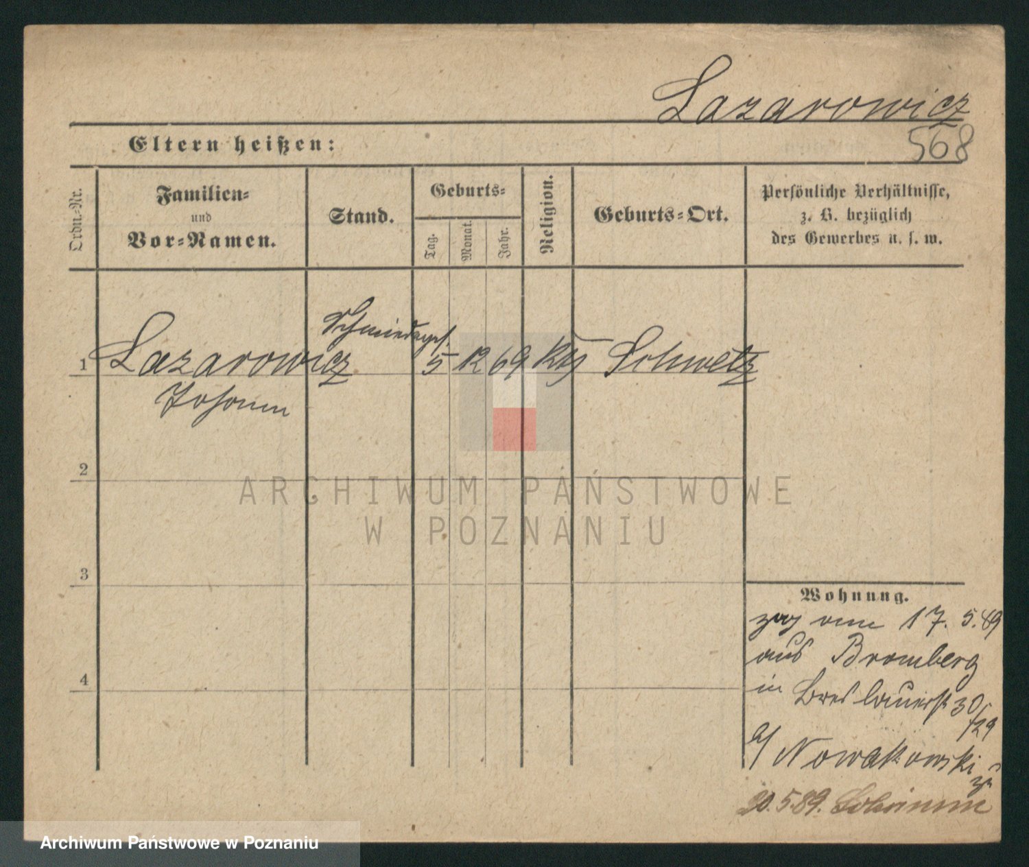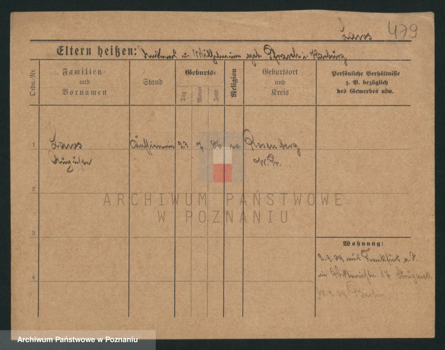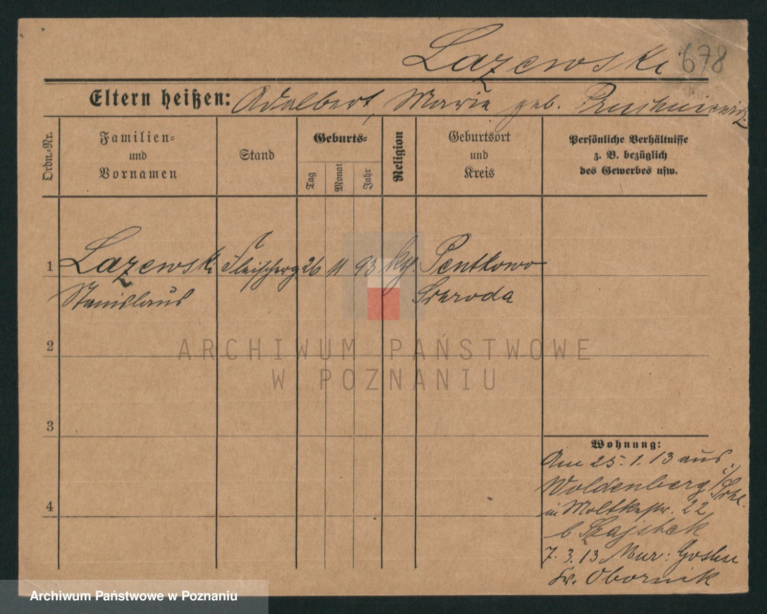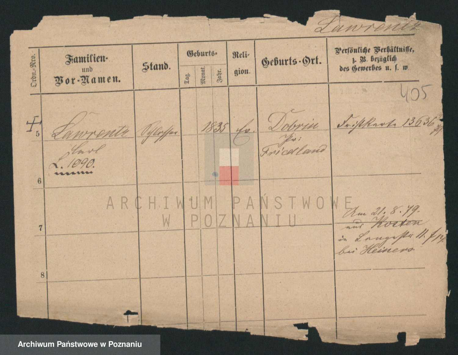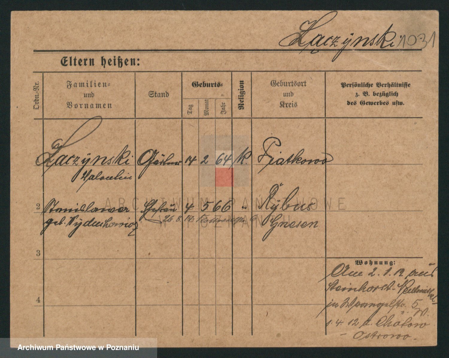 Podgląd karty osobowej dostępny jest po kliknięciu na nazwisko lub ikonkę karty. Można dokonywać powiększenia (ikony na górze) lub przechodzić między kolejnymi skanami (strzałki po bokach).