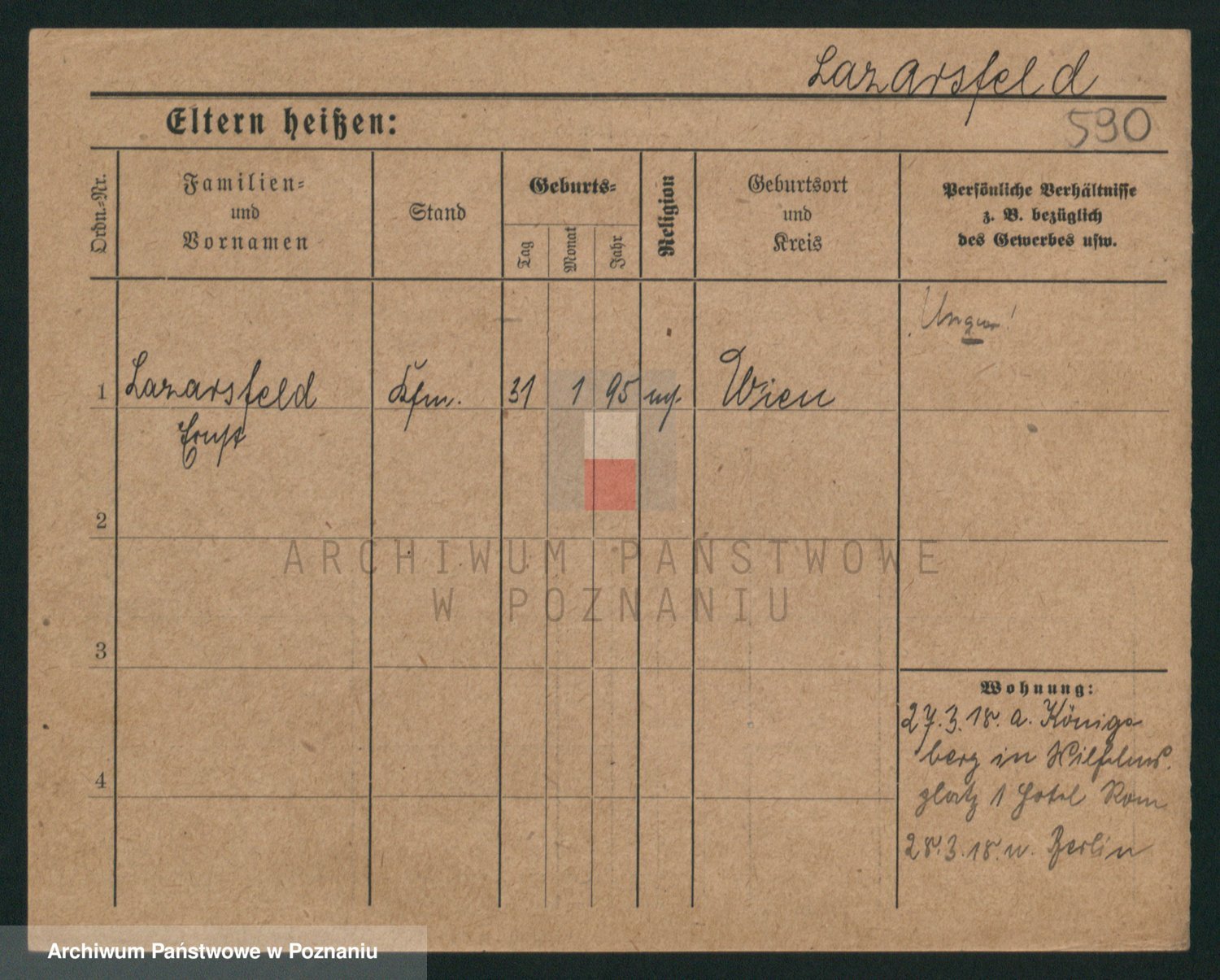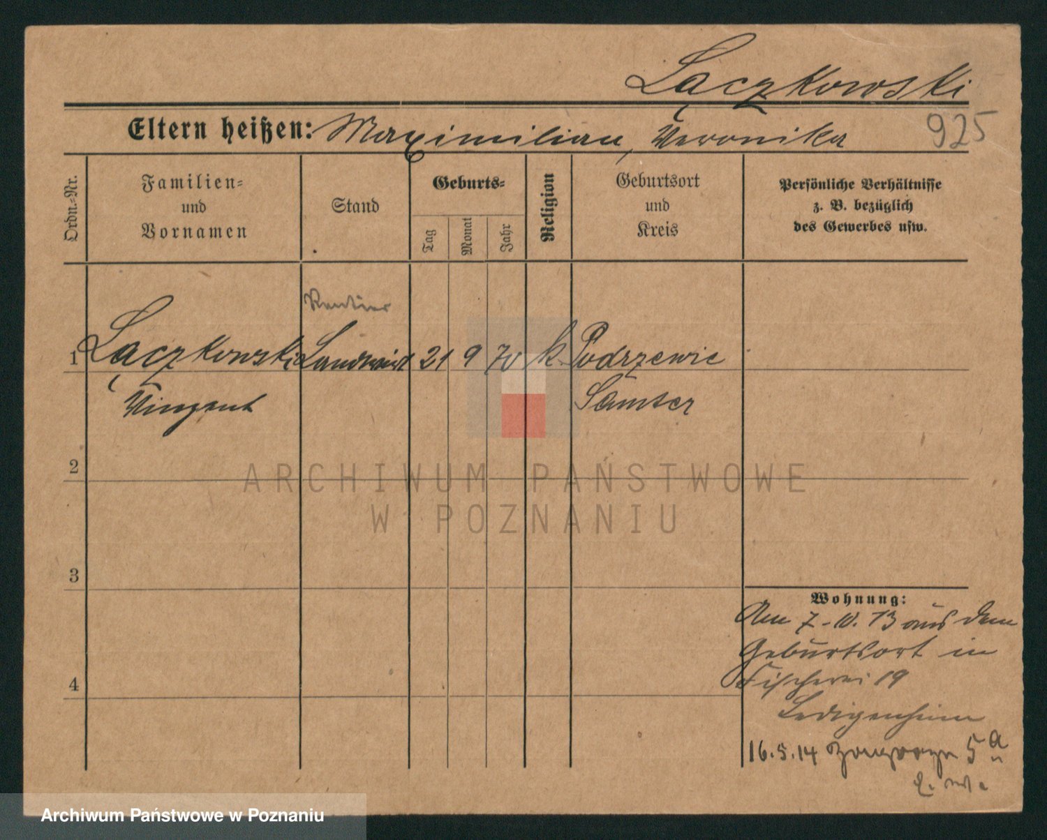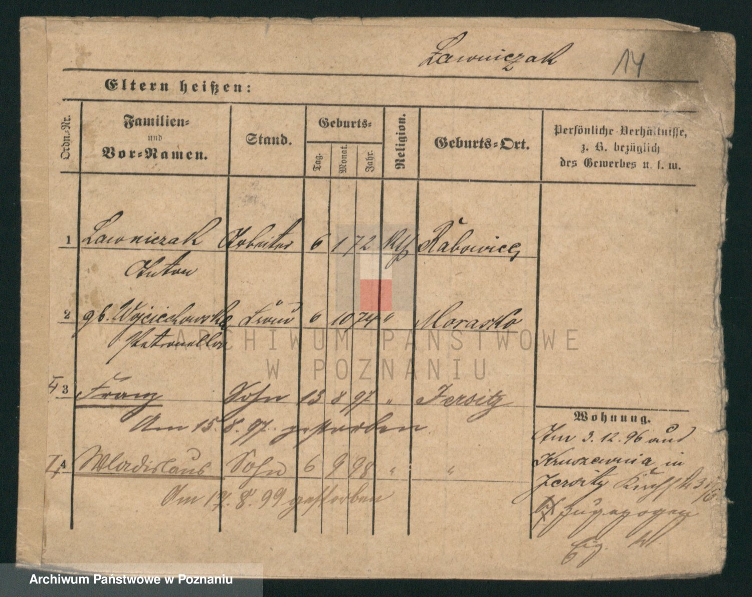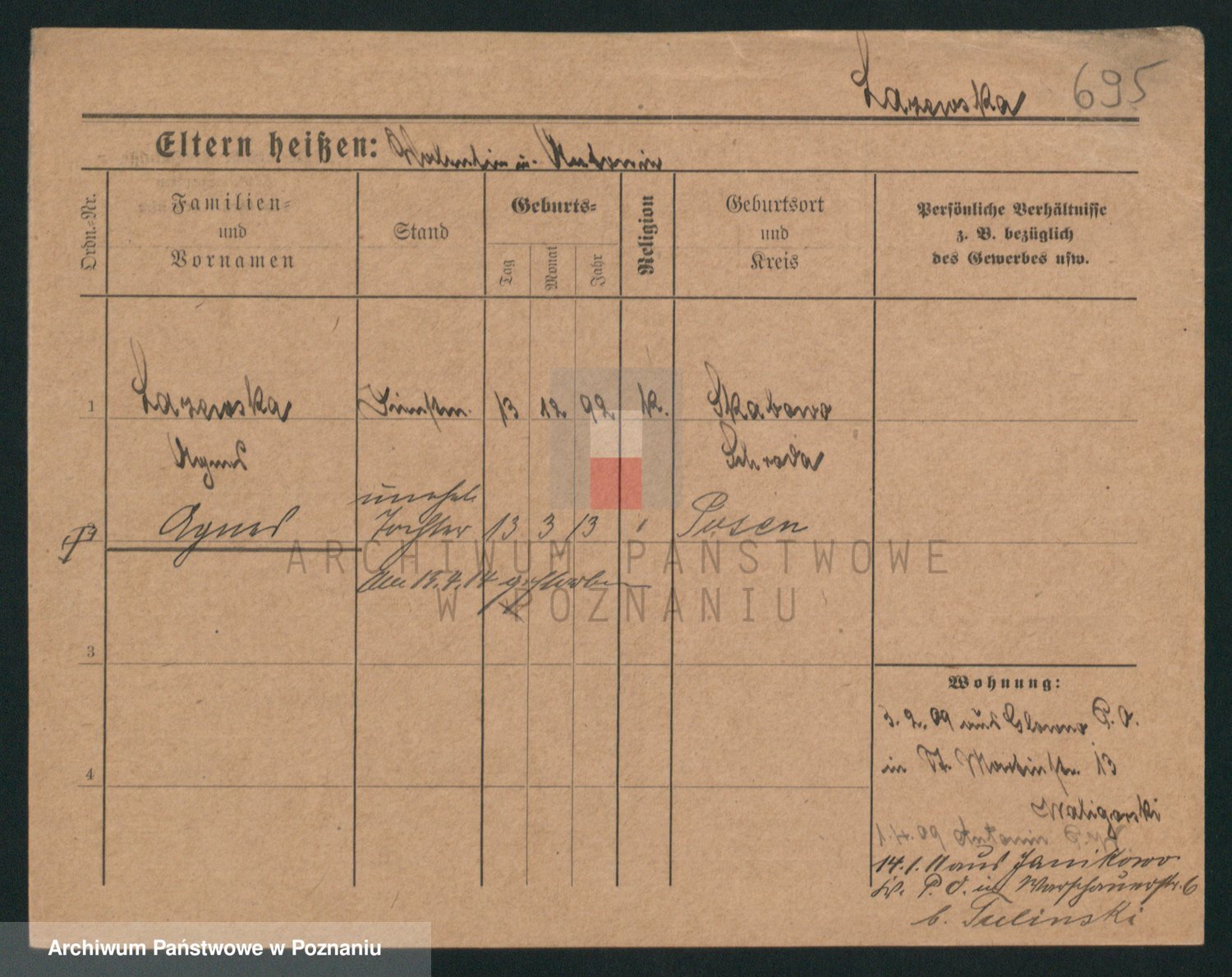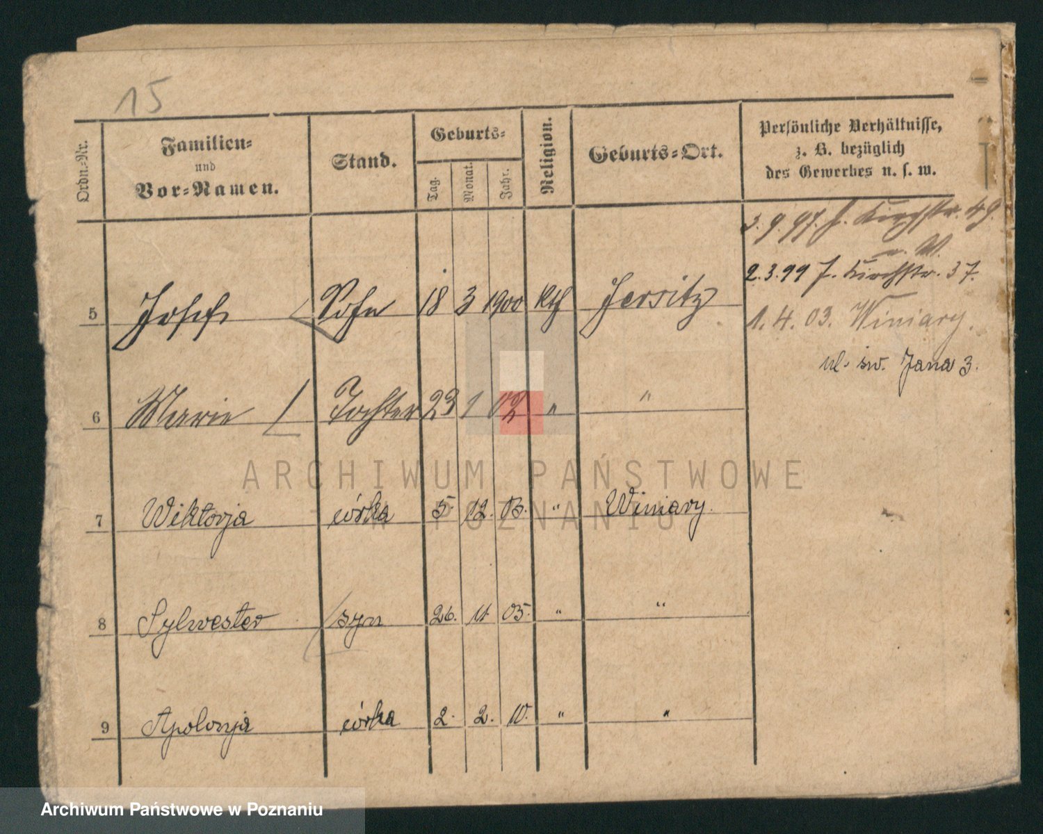 Podgląd karty osobowej dostępny jest po kliknięciu na nazwisko lub ikonkę karty. Można dokonywać powiększenia (ikony na górze) lub przechodzić między kolejnymi skanami (strzałki po bokach).