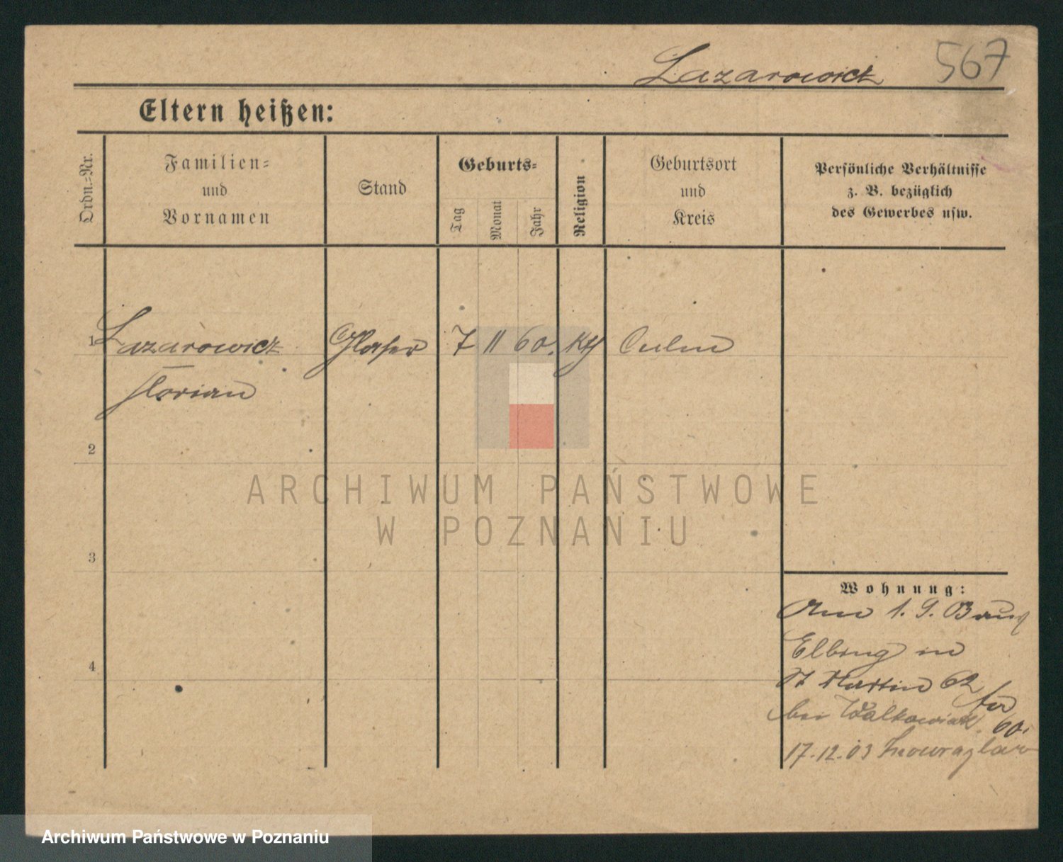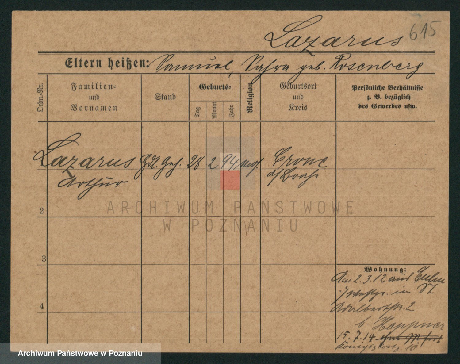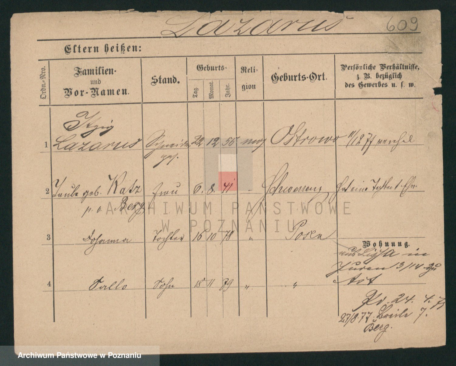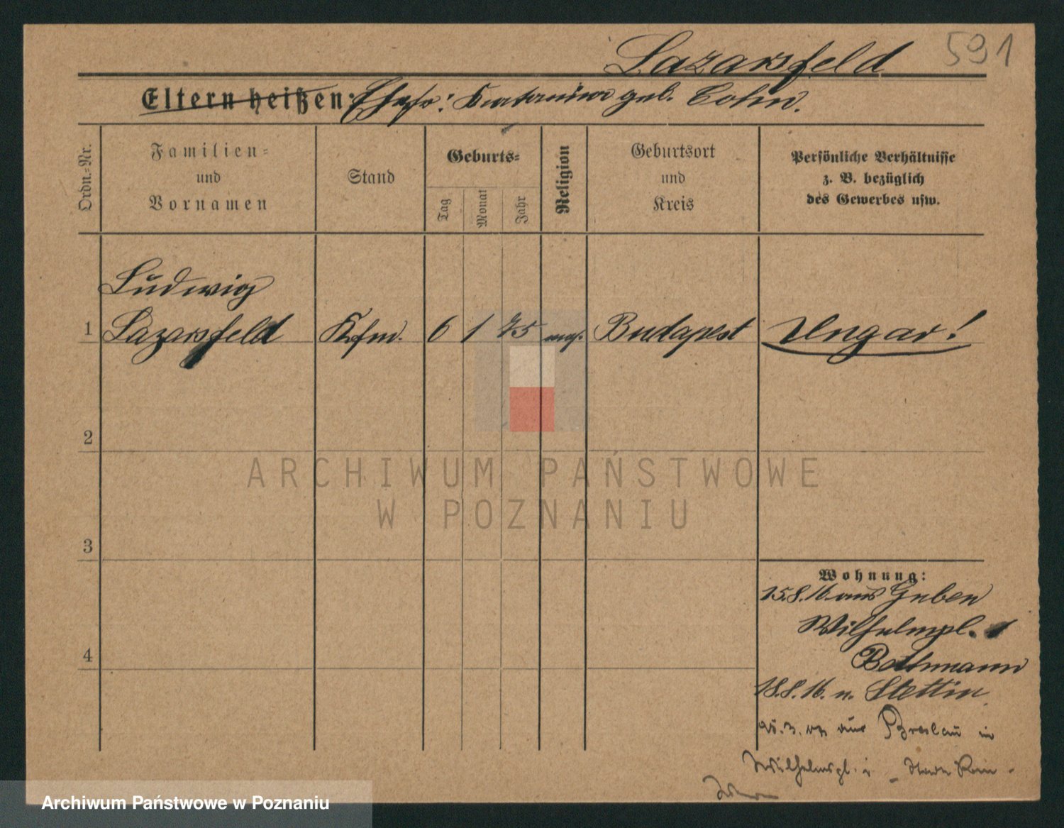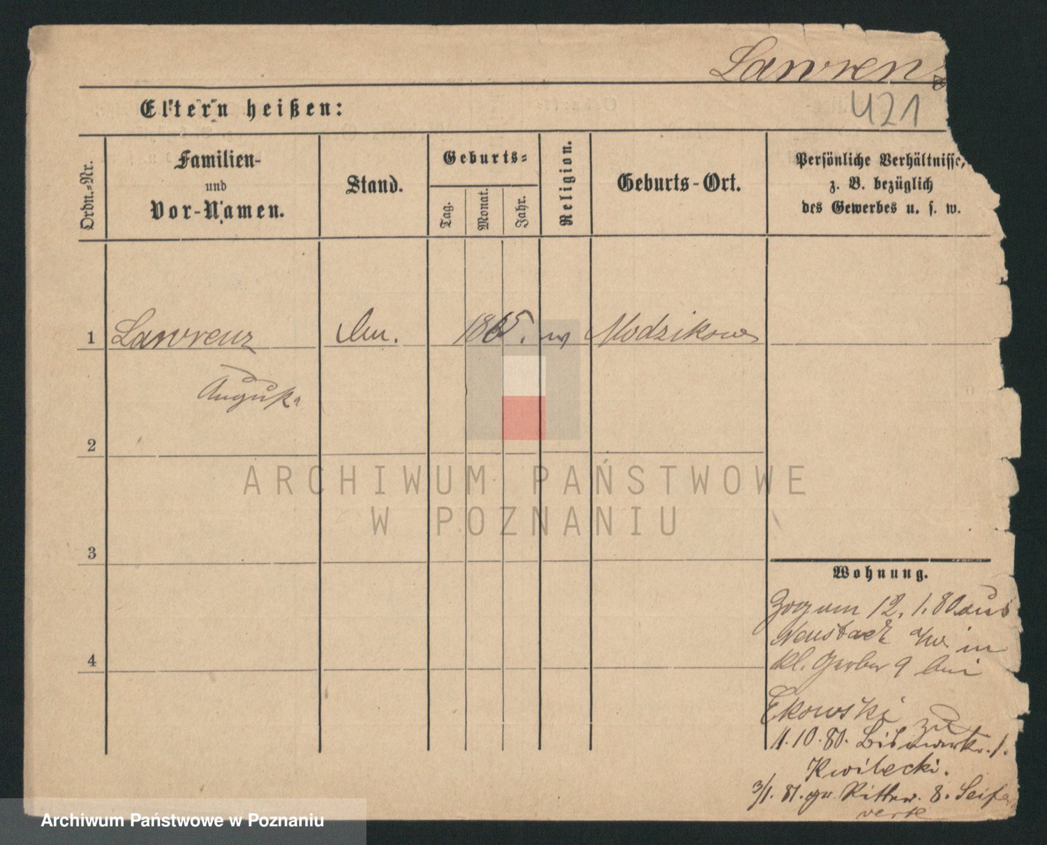 Podgląd karty osobowej dostępny jest po kliknięciu na nazwisko lub ikonkę karty. Można dokonywać powiększenia (ikony na górze) lub przechodzić między kolejnymi skanami (strzałki po bokach).