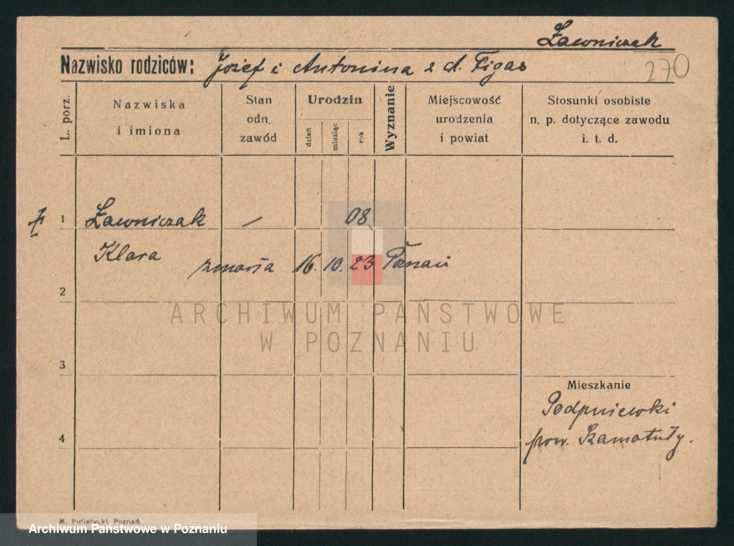 Lawniczak, Theodosia Klara