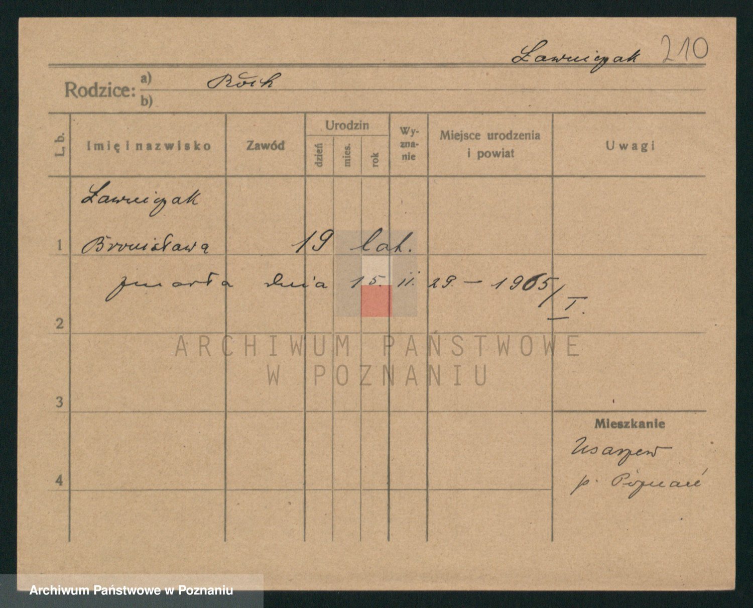 Ławniczak z.d. Sliwinska, Czesława Anna