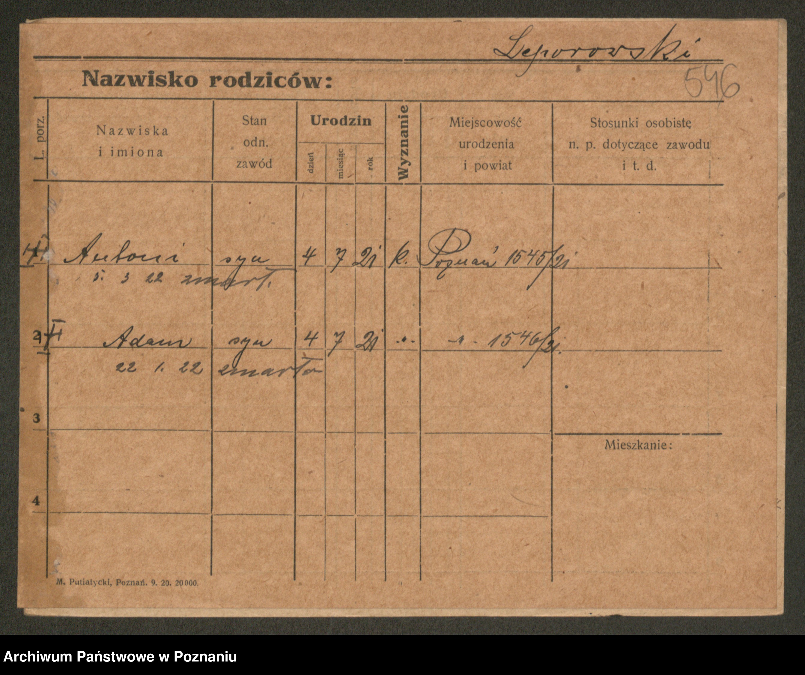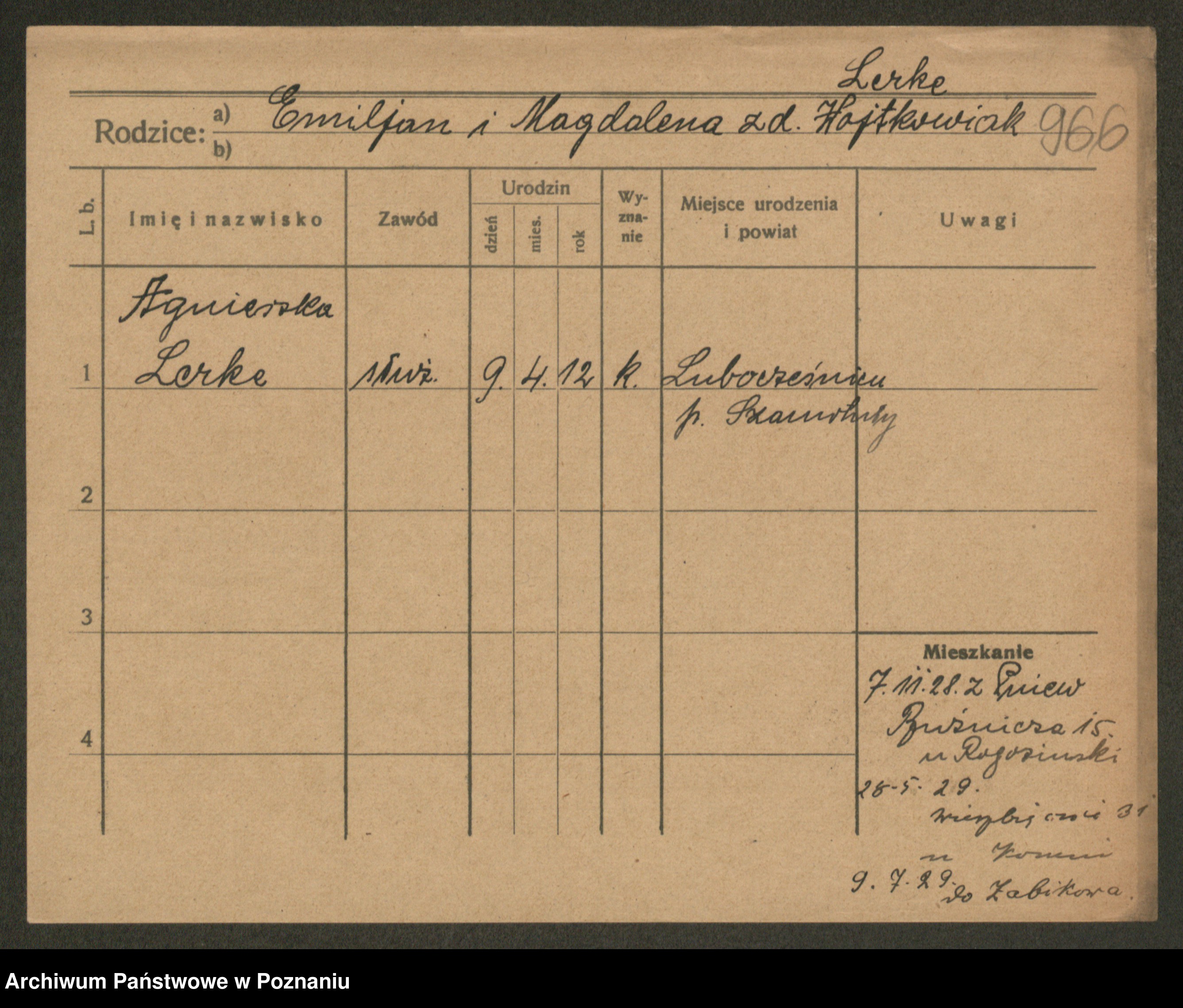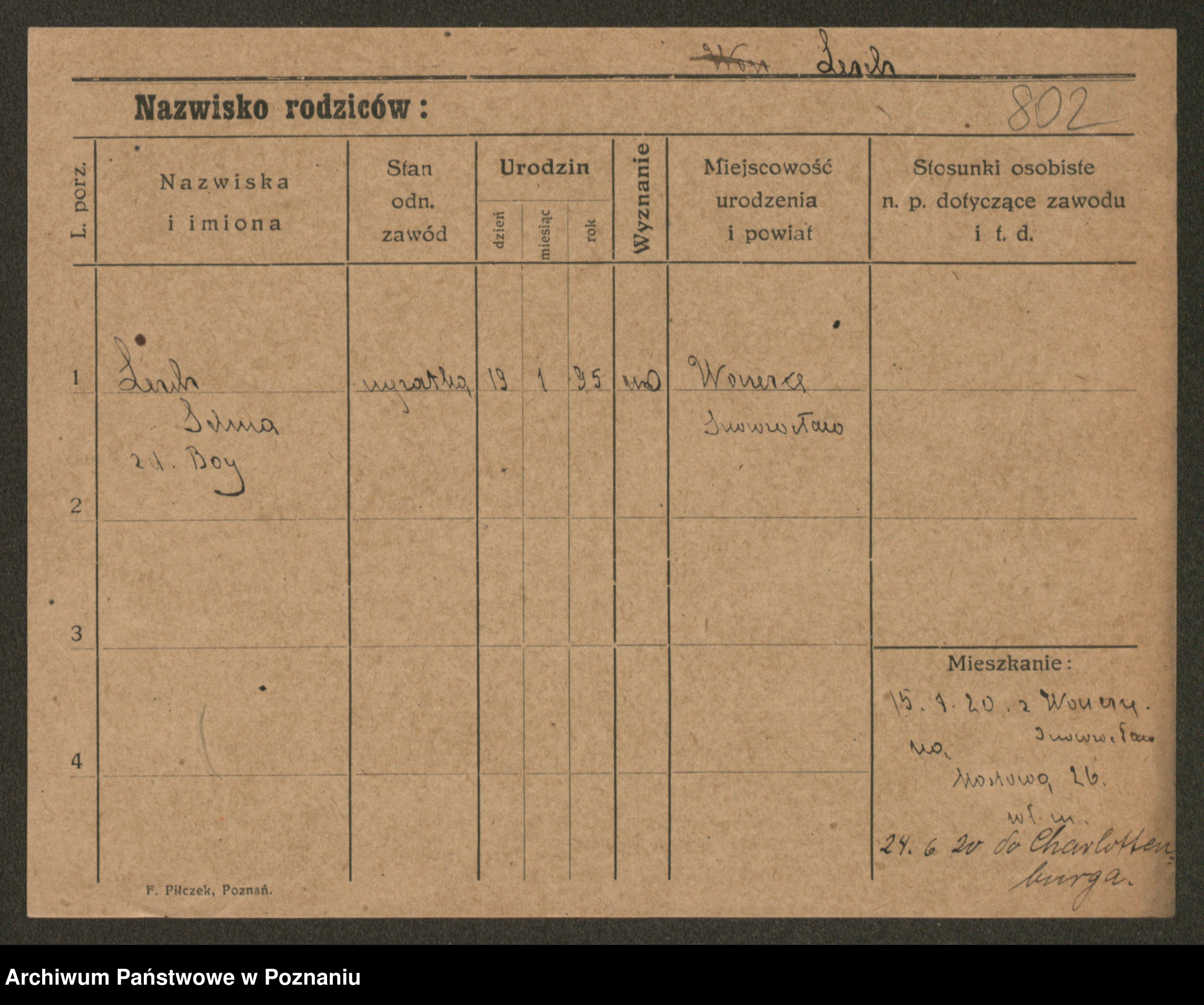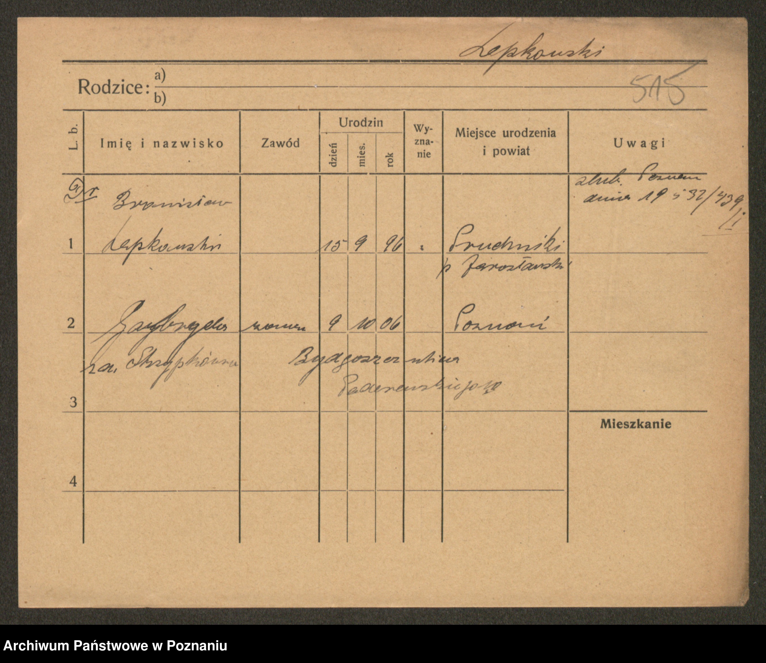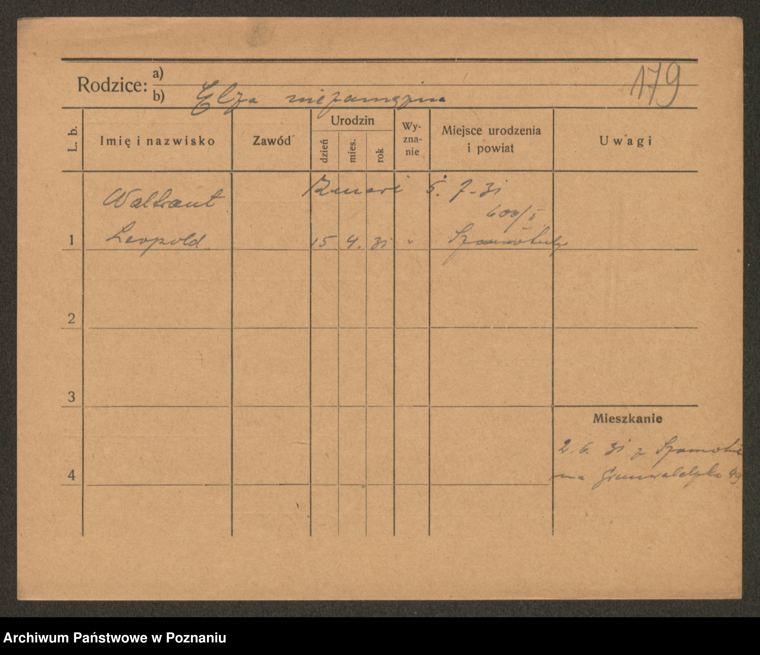 Podgląd karty osobowej dostępny jest po kliknięciu na nazwisko lub ikonkę karty. Można dokonywać powiększenia (ikony na górze) lub przechodzić między kolejnymi skanami (strzałki po bokach).