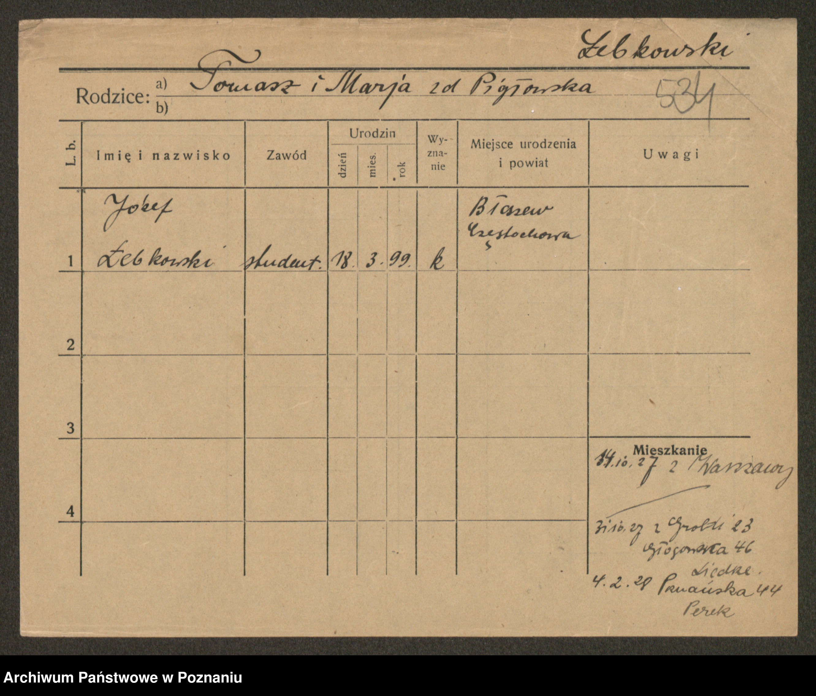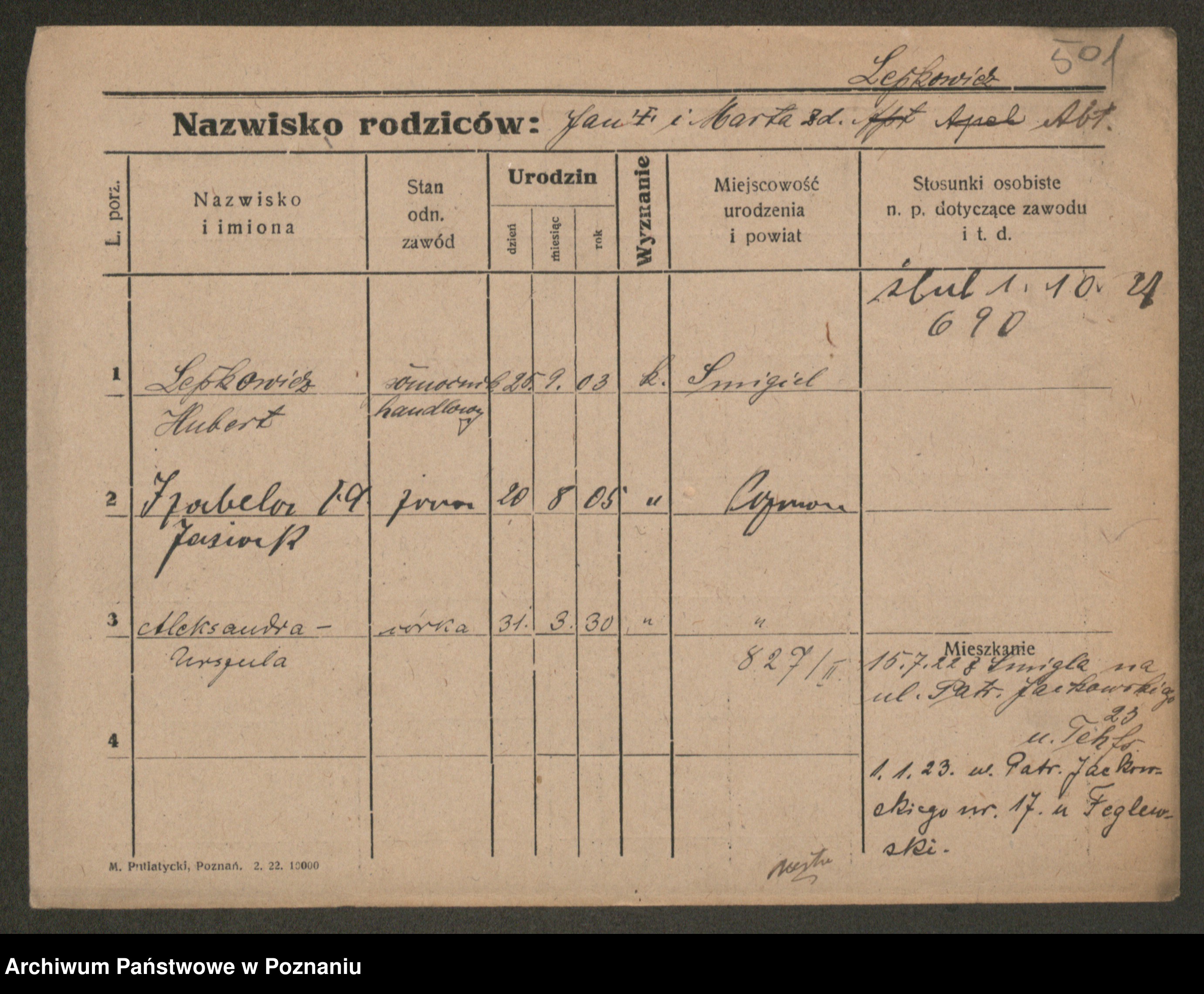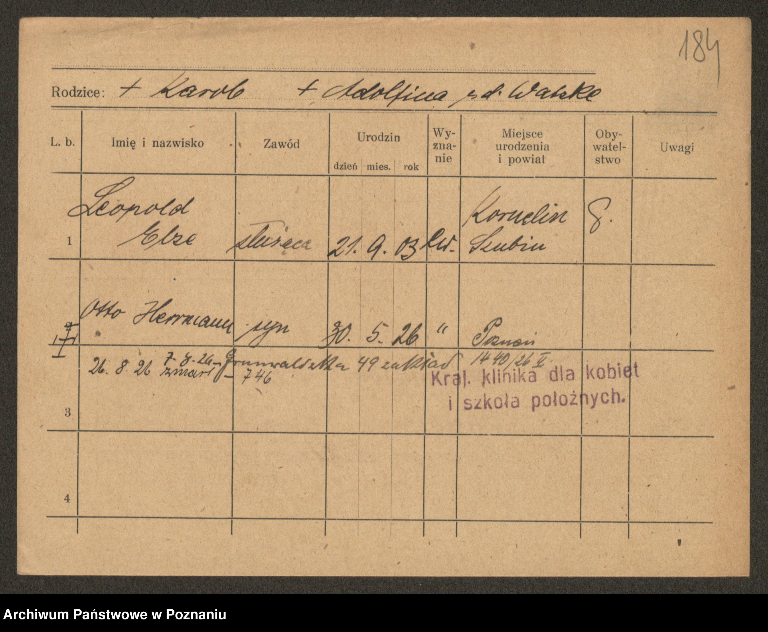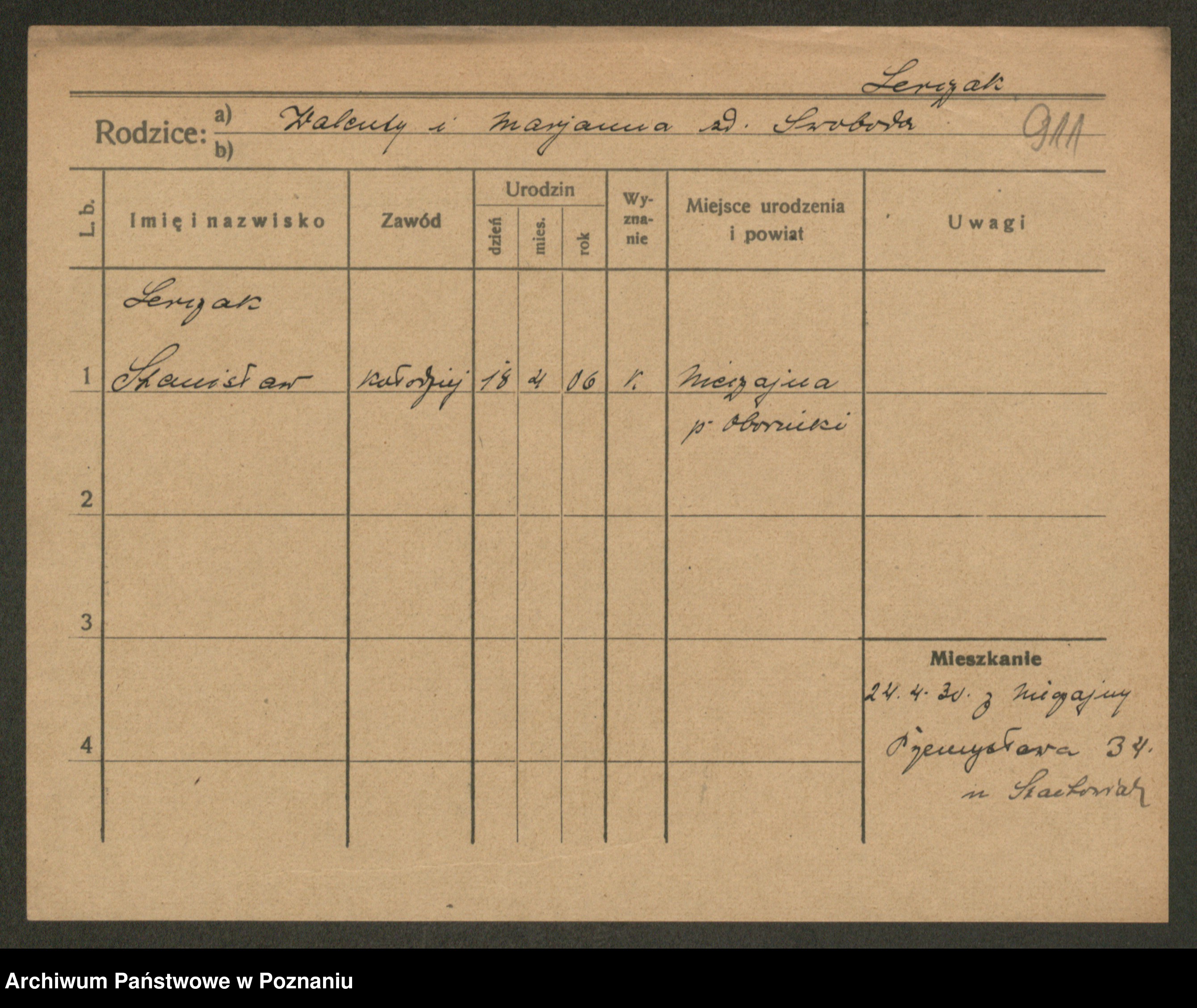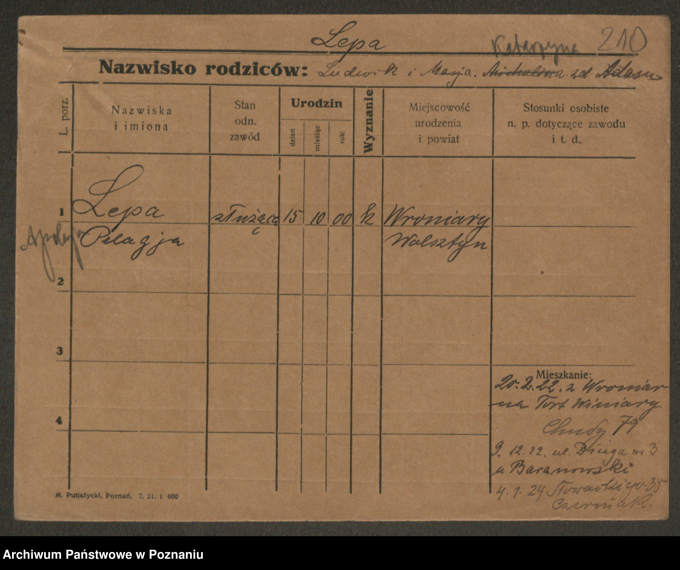 Podgląd karty osobowej dostępny jest po kliknięciu na nazwisko lub ikonkę karty. Można dokonywać powiększenia (ikony na górze) lub przechodzić między kolejnymi skanami (strzałki po bokach).