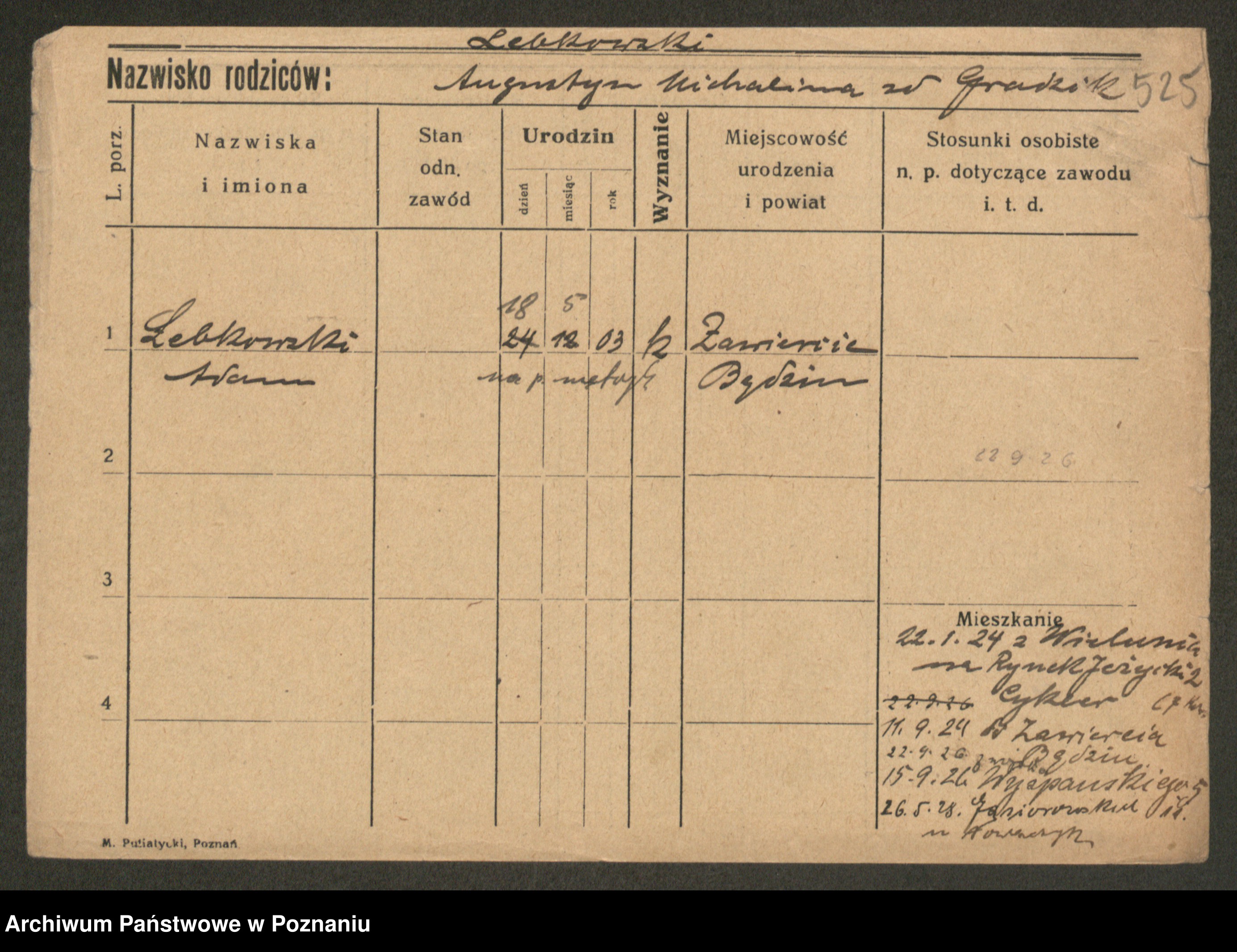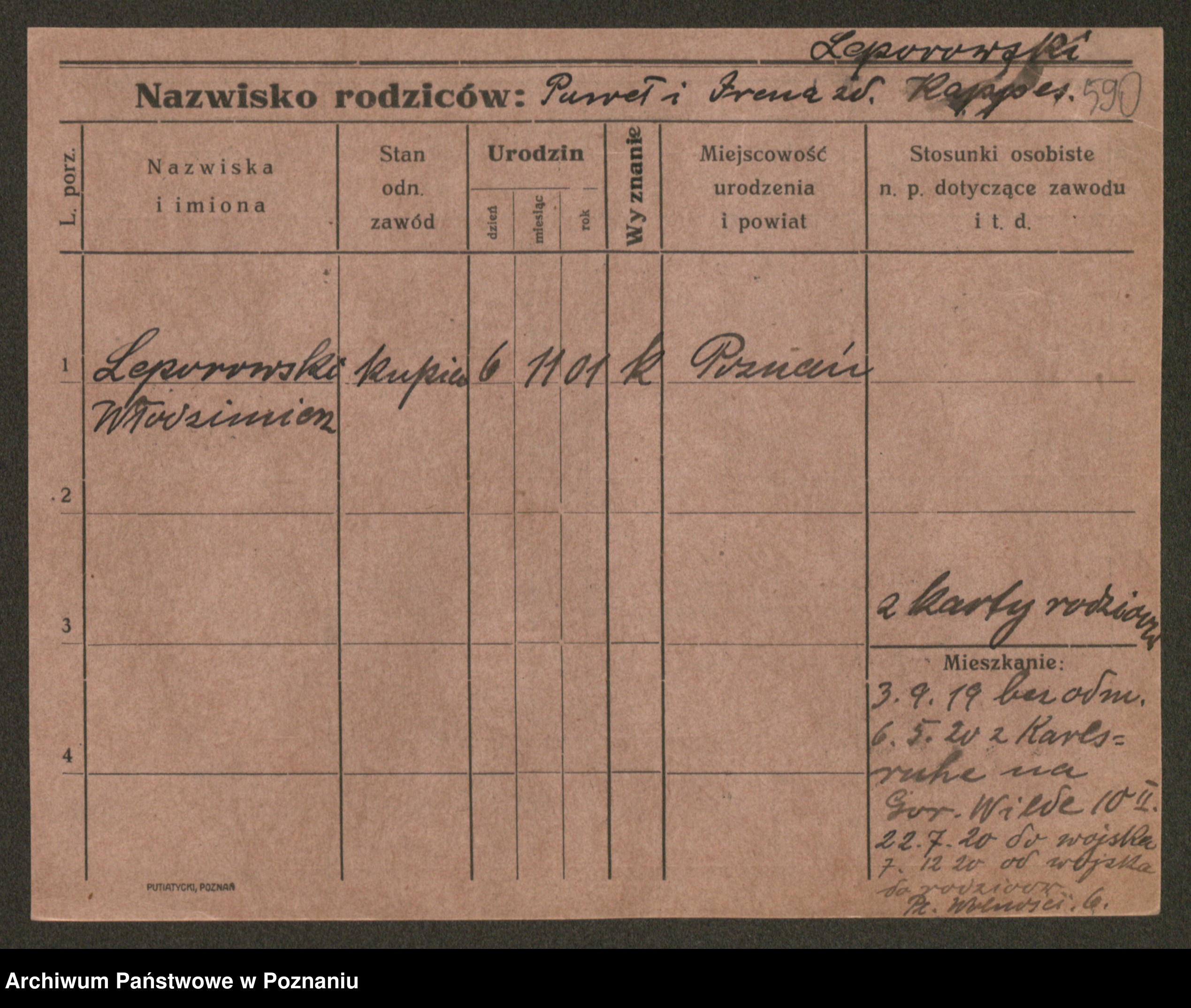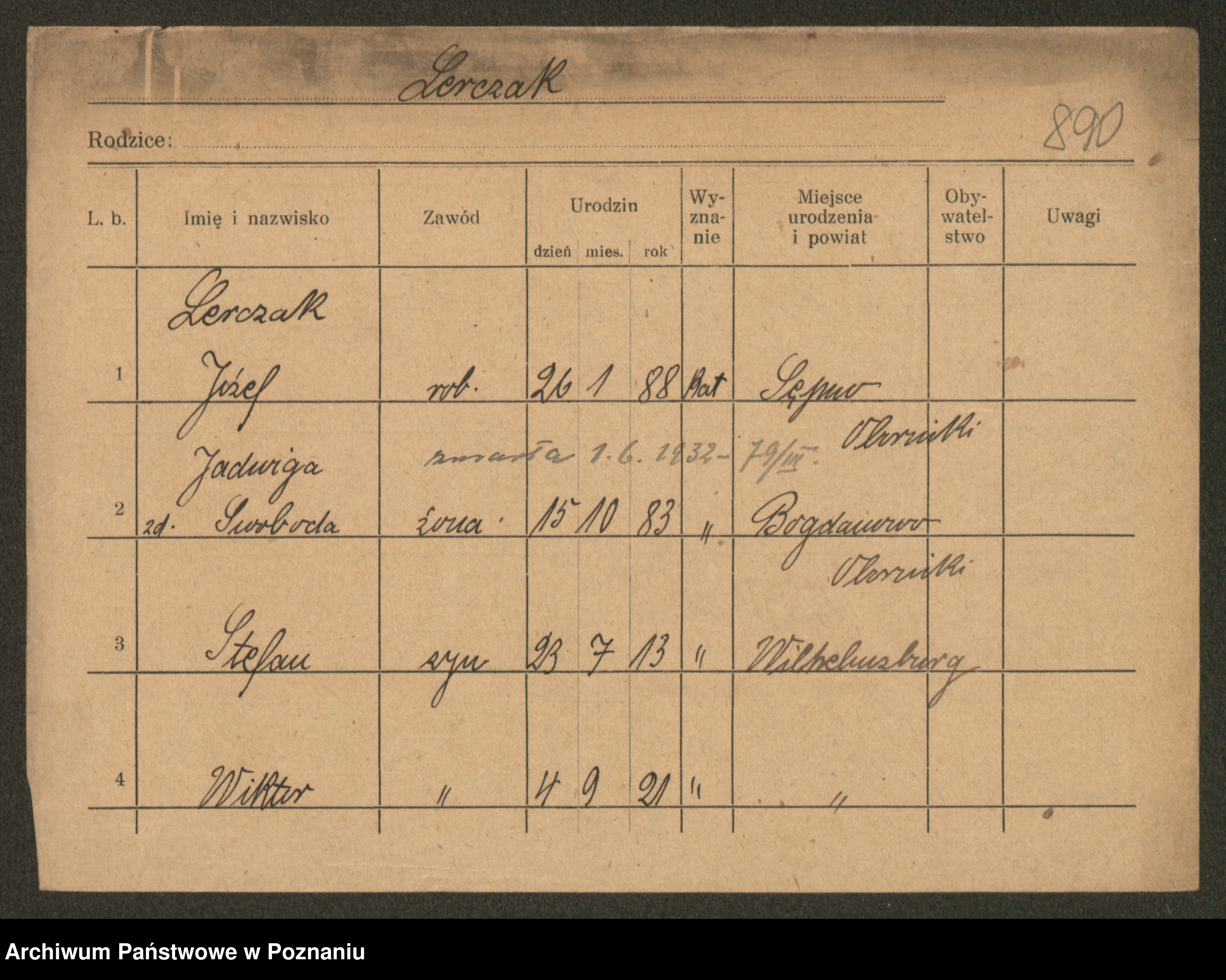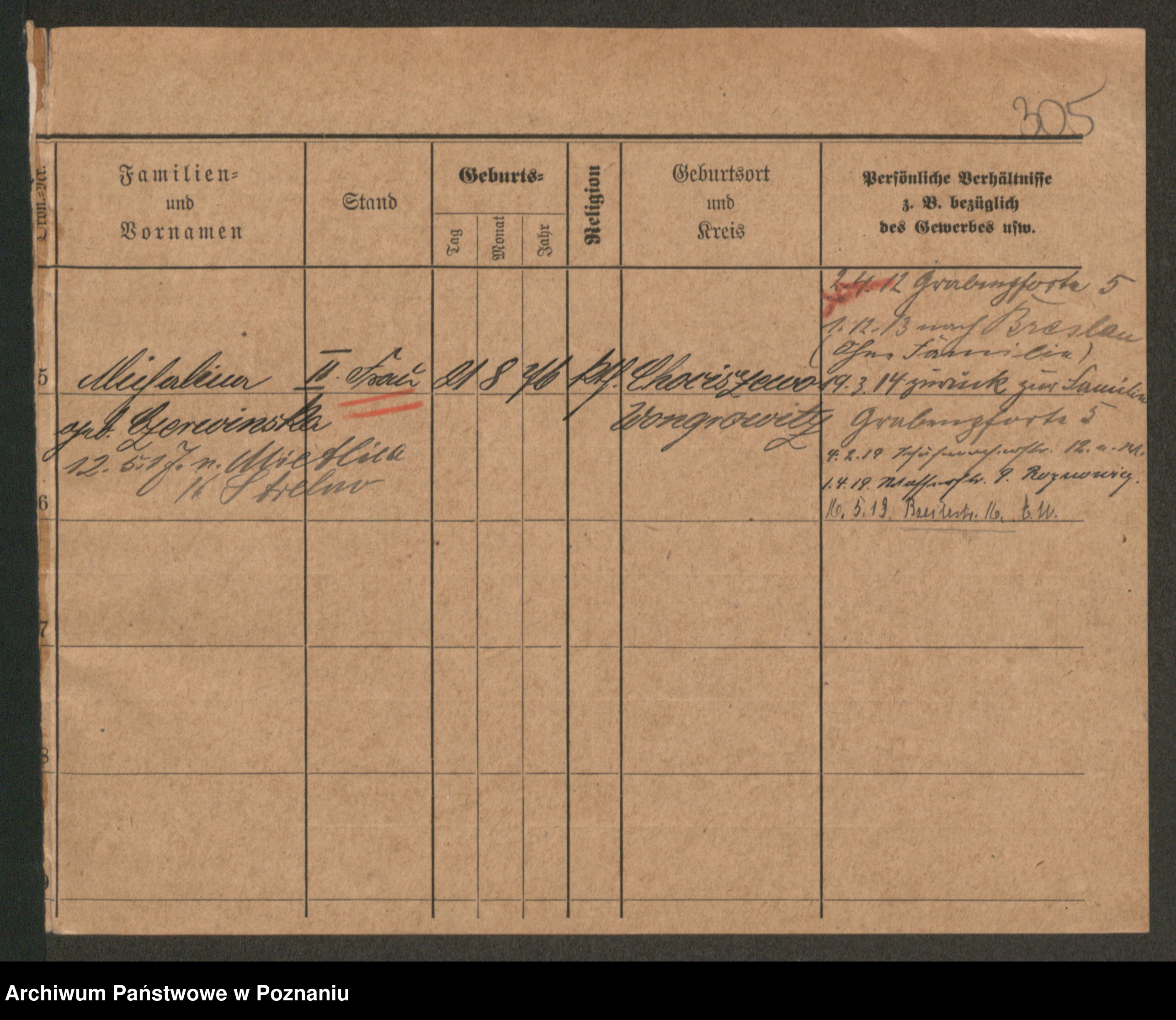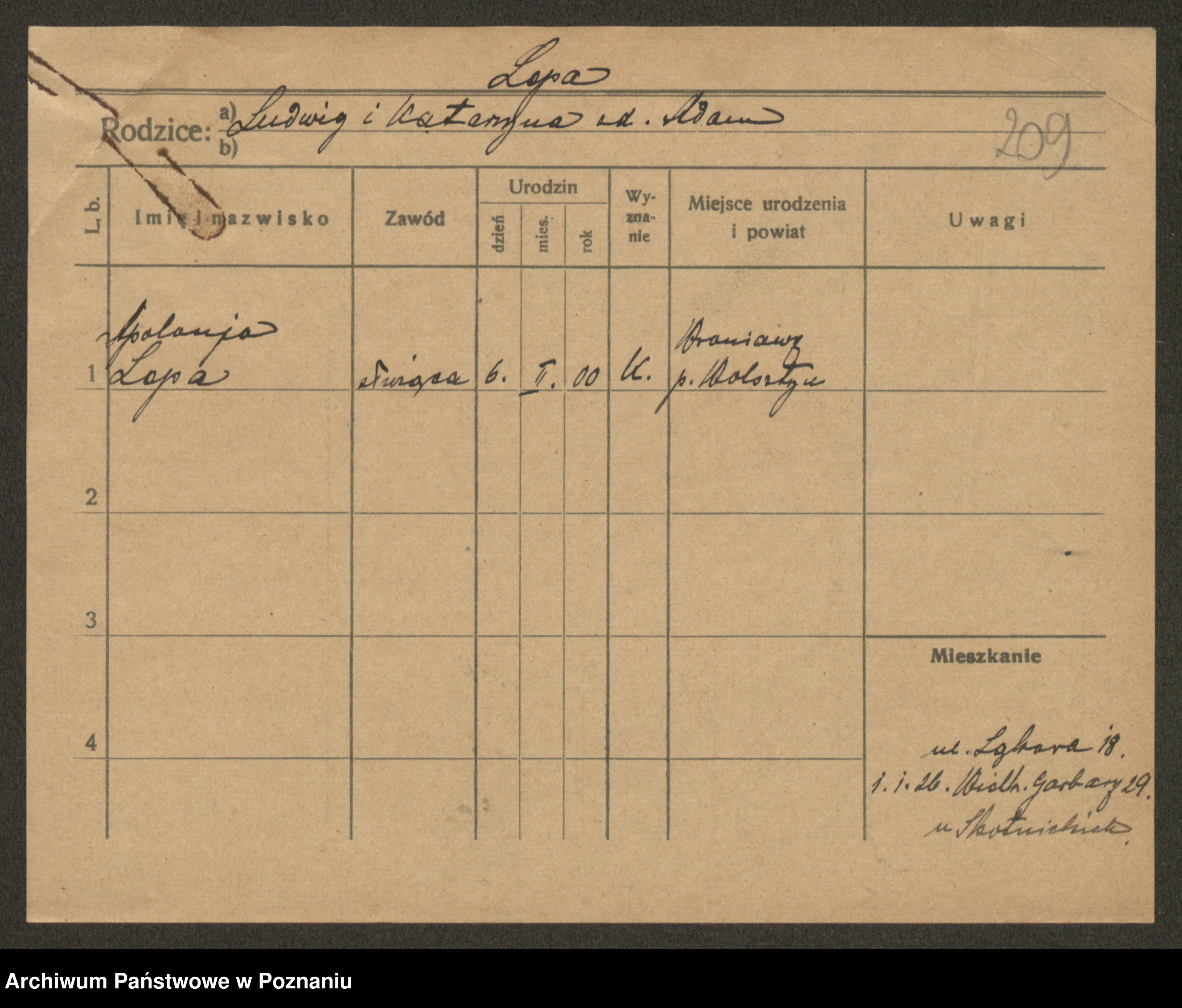 Podgląd karty osobowej dostępny jest po kliknięciu na nazwisko lub ikonkę karty. Można dokonywać powiększenia (ikony na górze) lub przechodzić między kolejnymi skanami (strzałki po bokach).