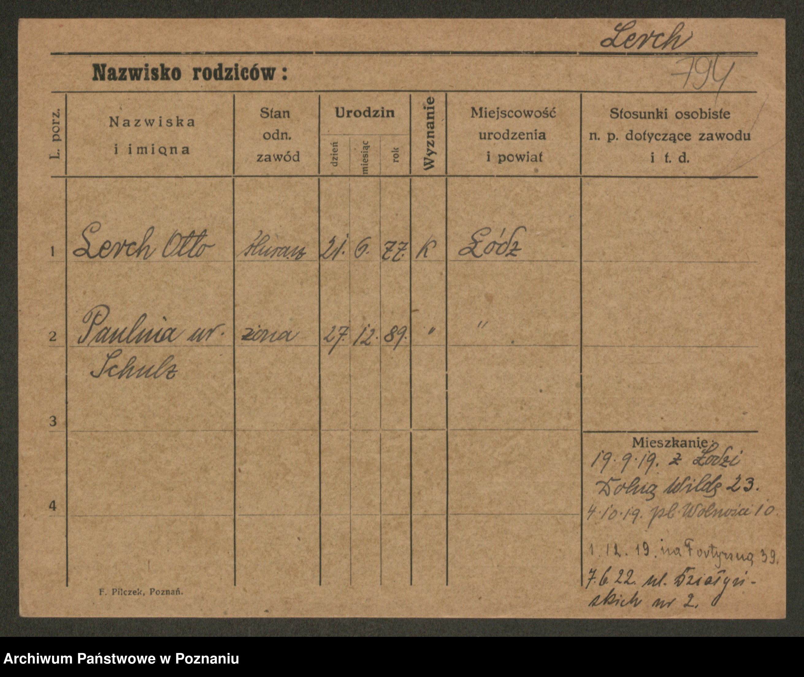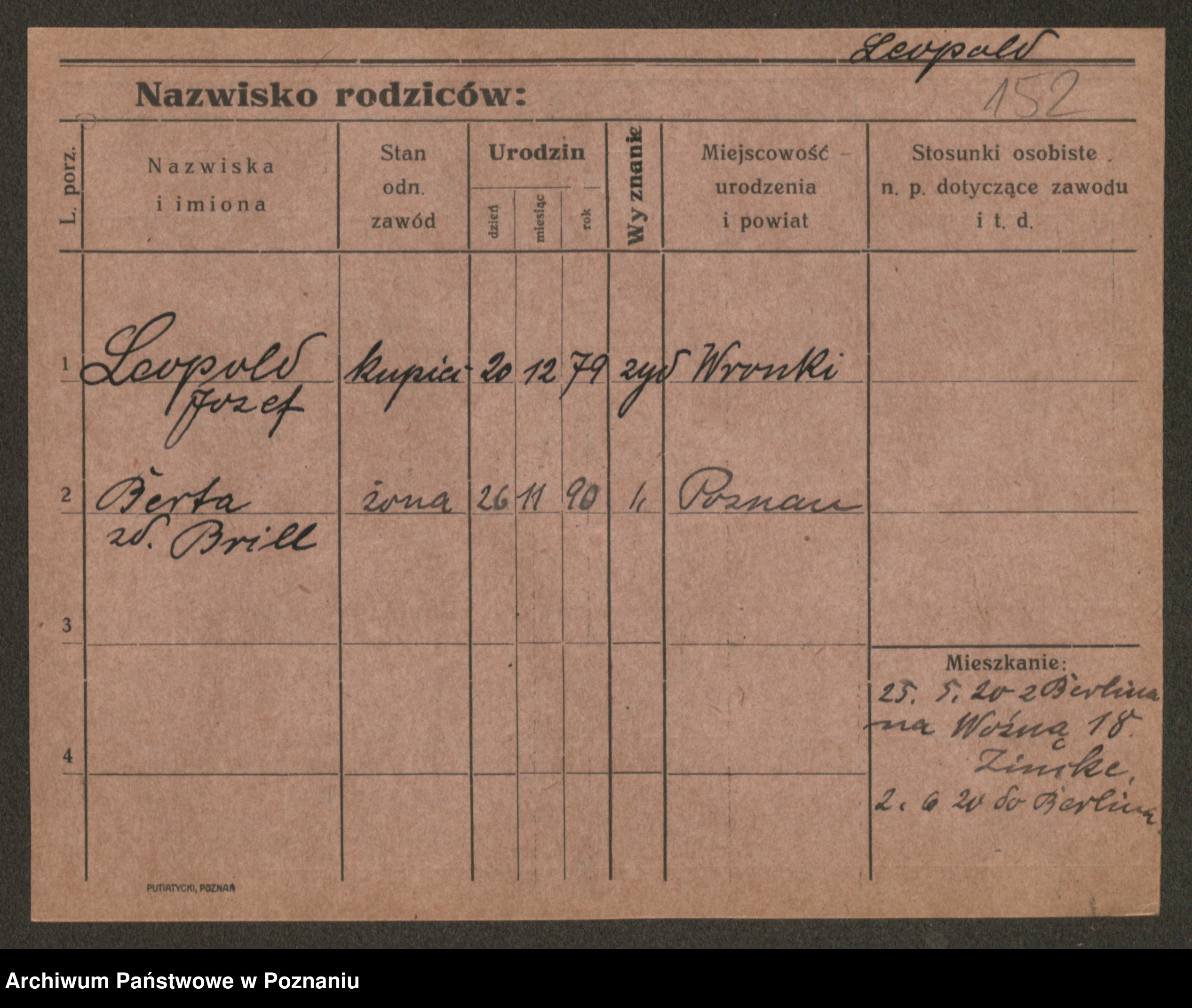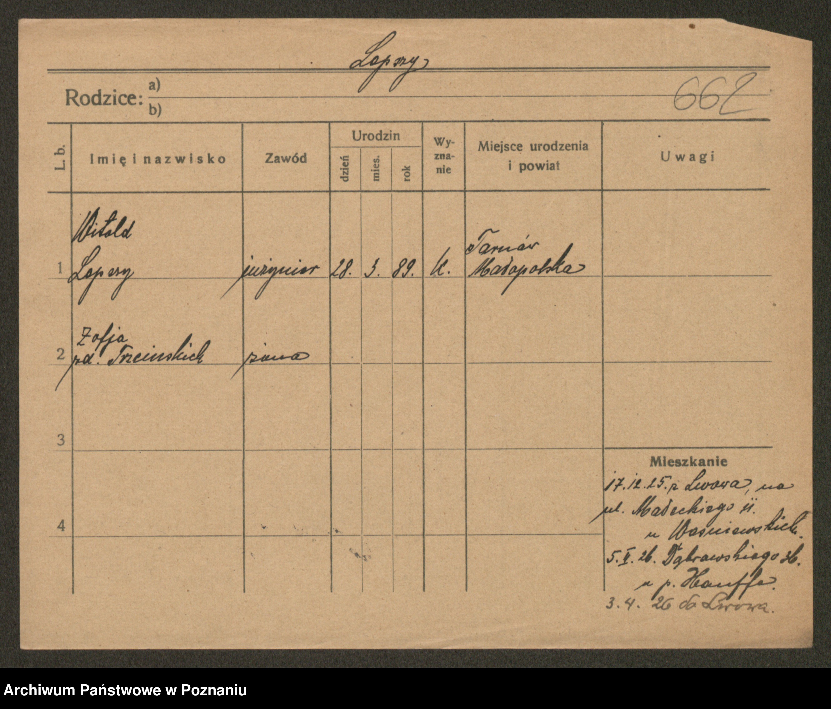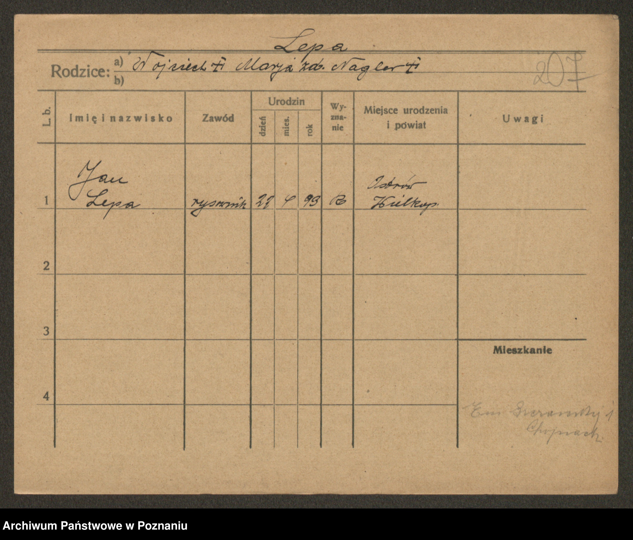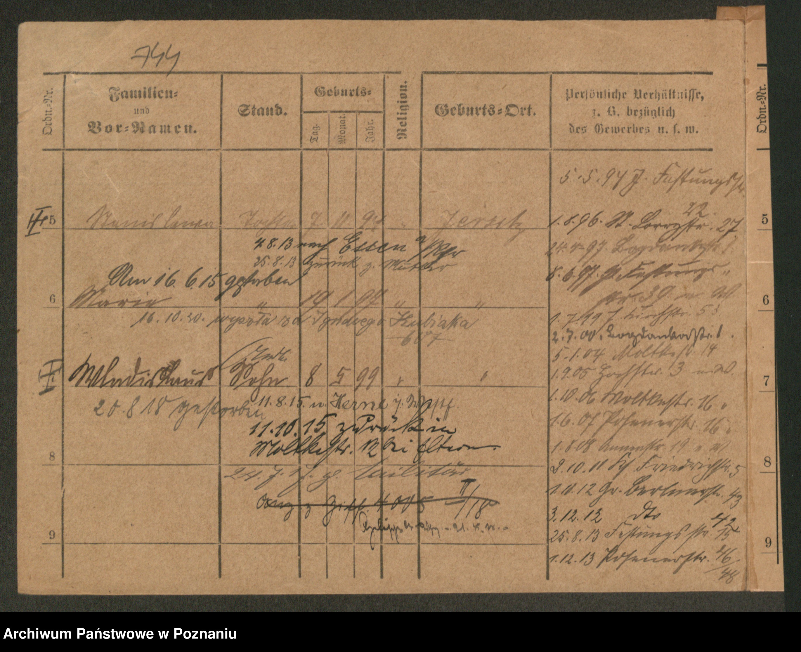 Podgląd karty osobowej dostępny jest po kliknięciu na nazwisko lub ikonkę karty. Można dokonywać powiększenia (ikony na górze) lub przechodzić między kolejnymi skanami (strzałki po bokach).
