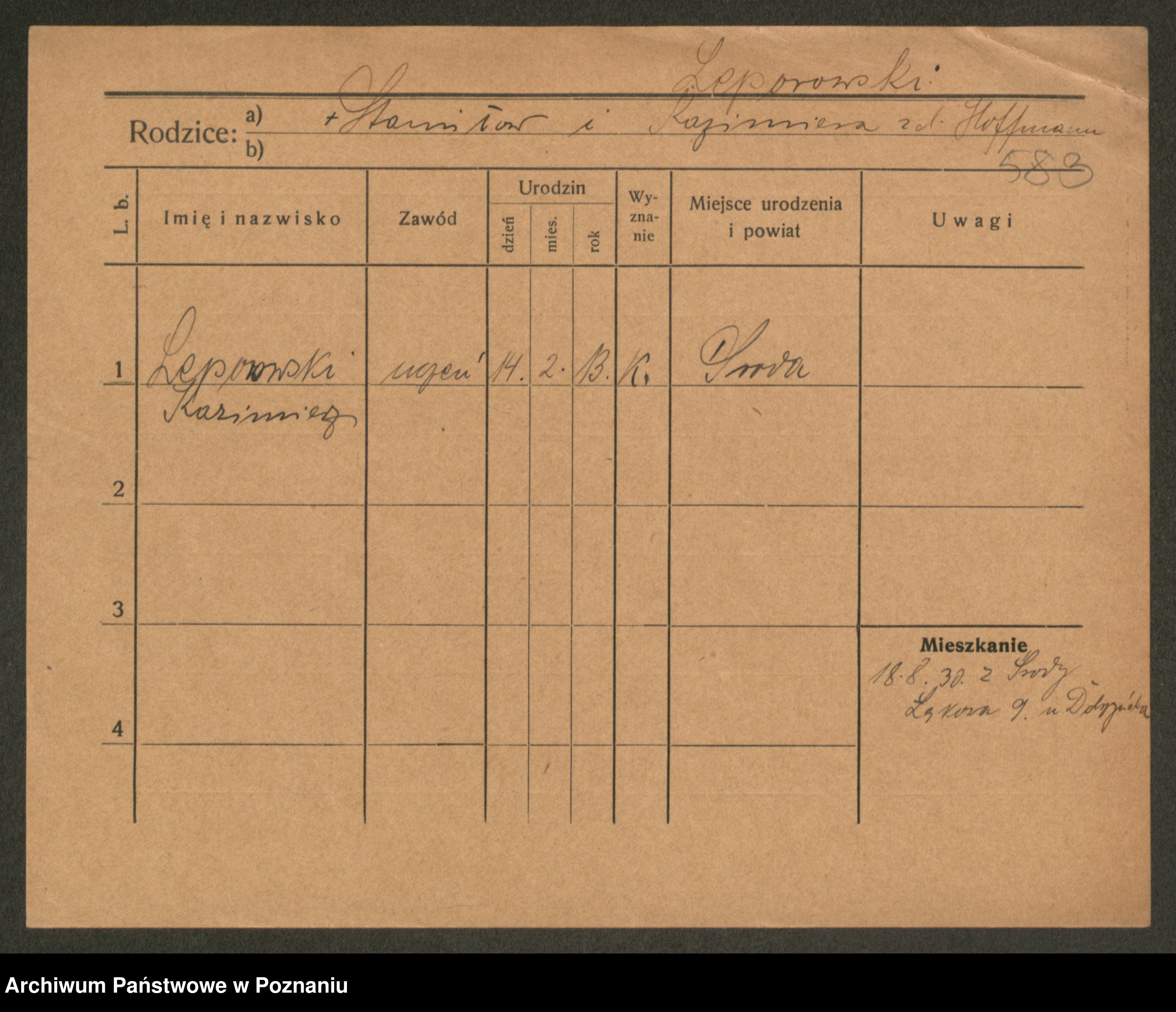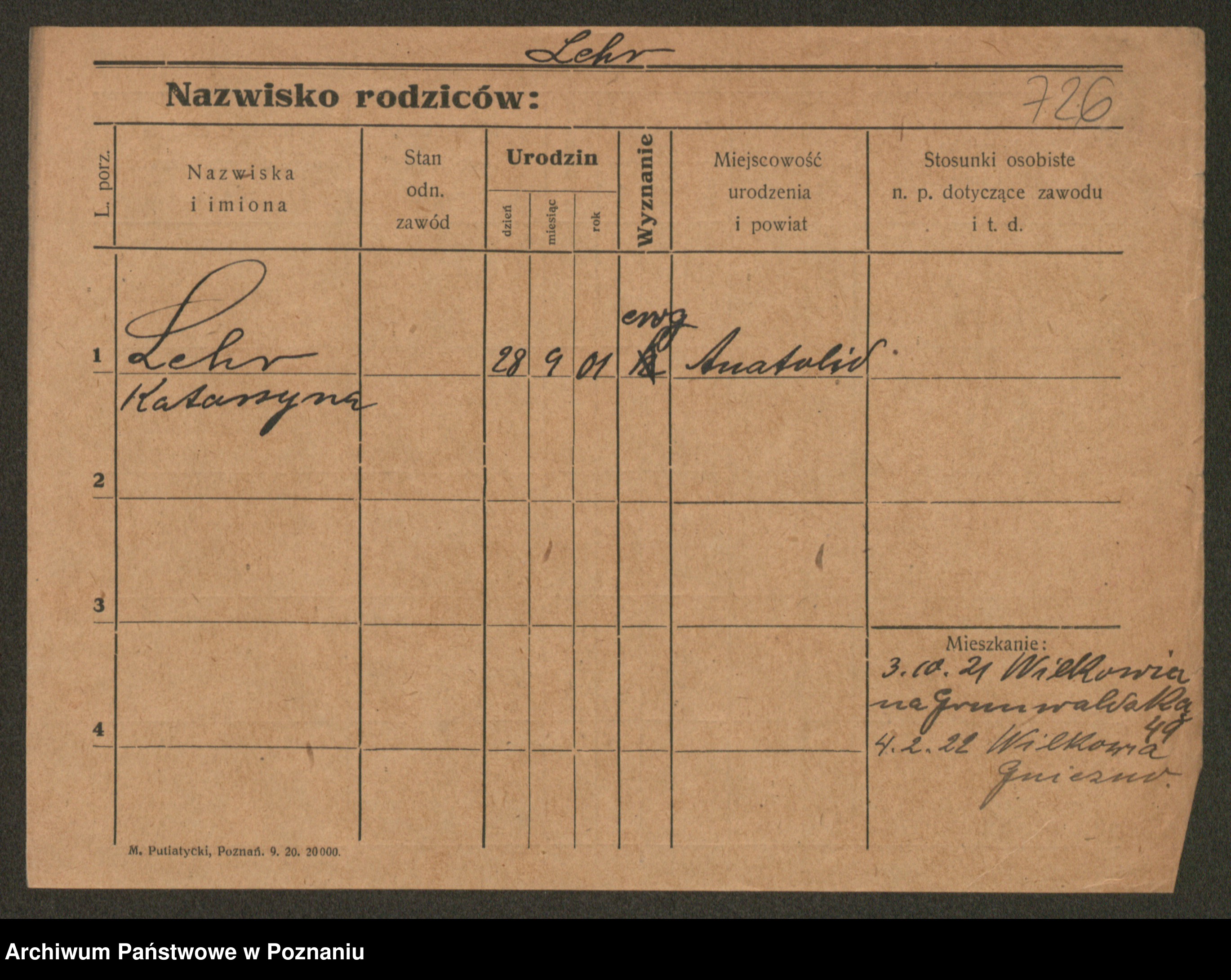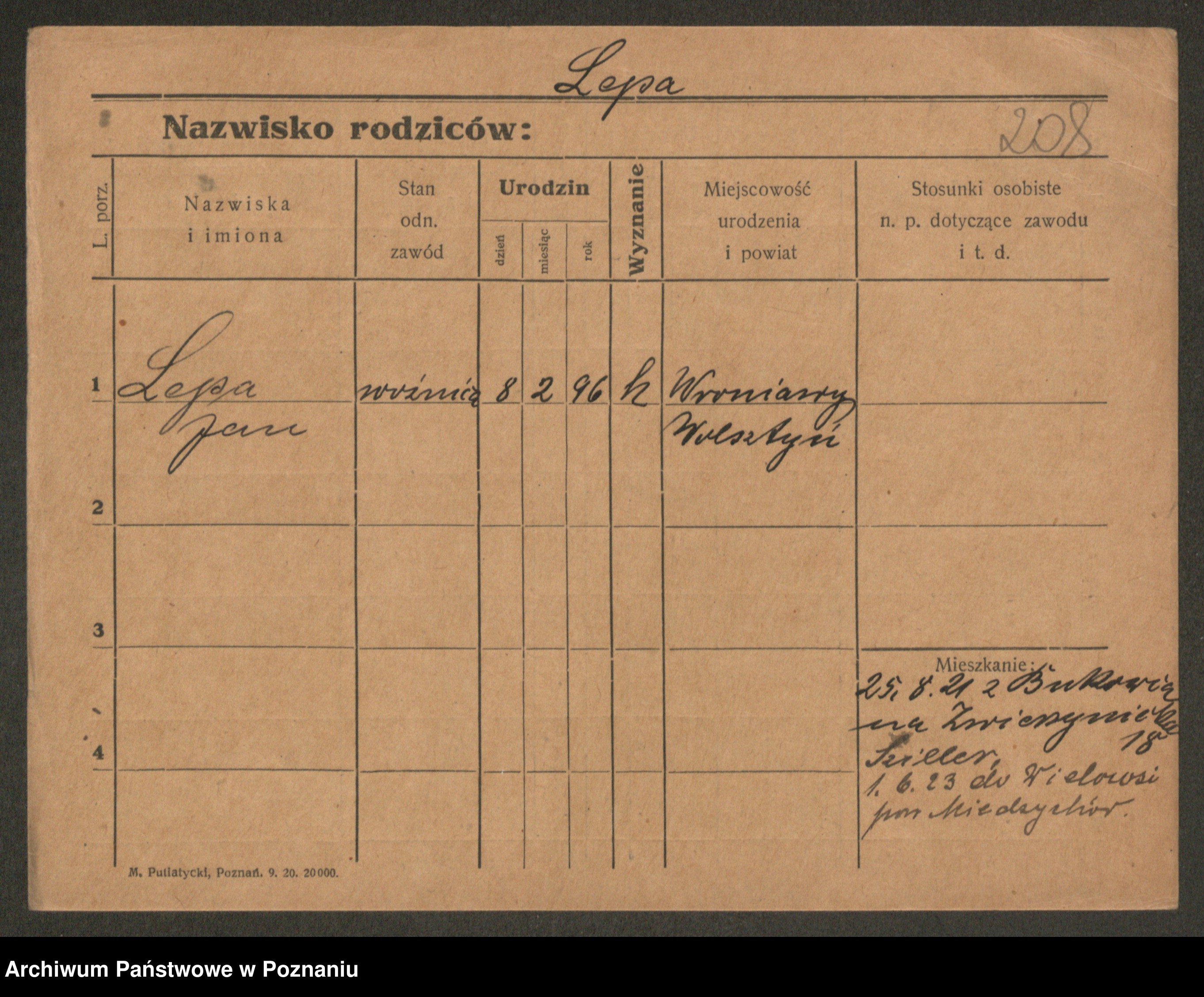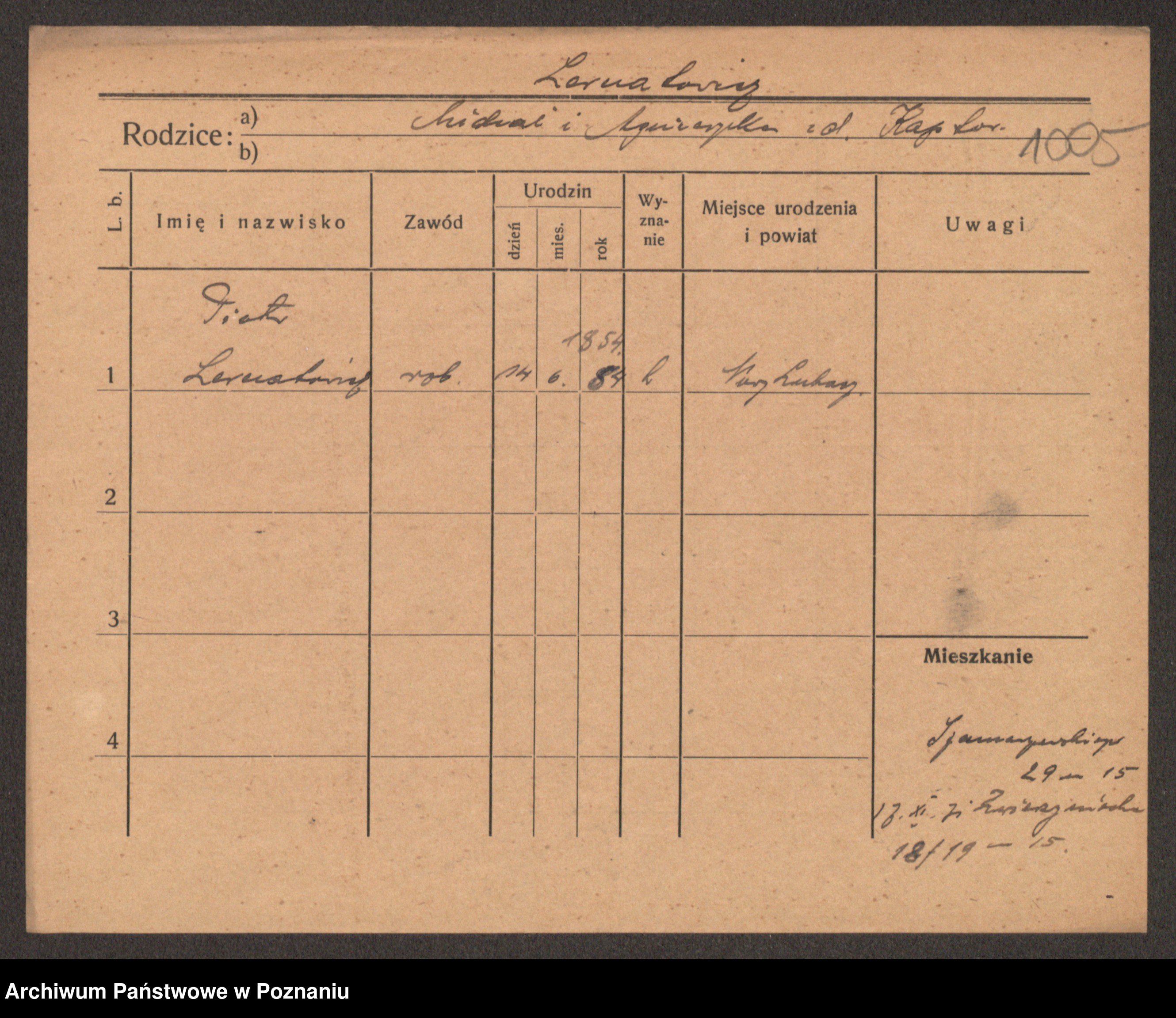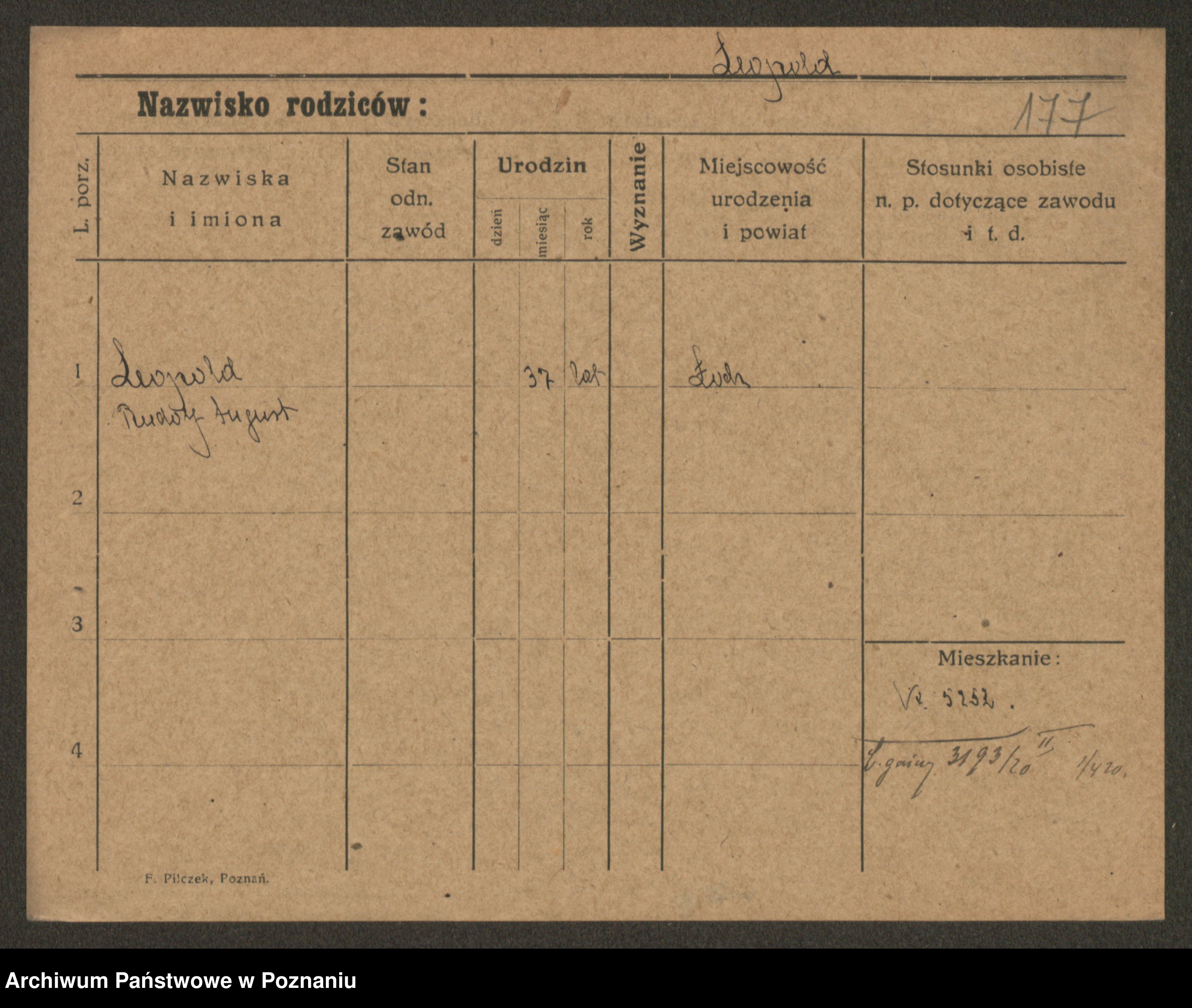 Podgląd karty osobowej dostępny jest po kliknięciu na nazwisko lub ikonkę karty. Można dokonywać powiększenia (ikony na górze) lub przechodzić między kolejnymi skanami (strzałki po bokach).