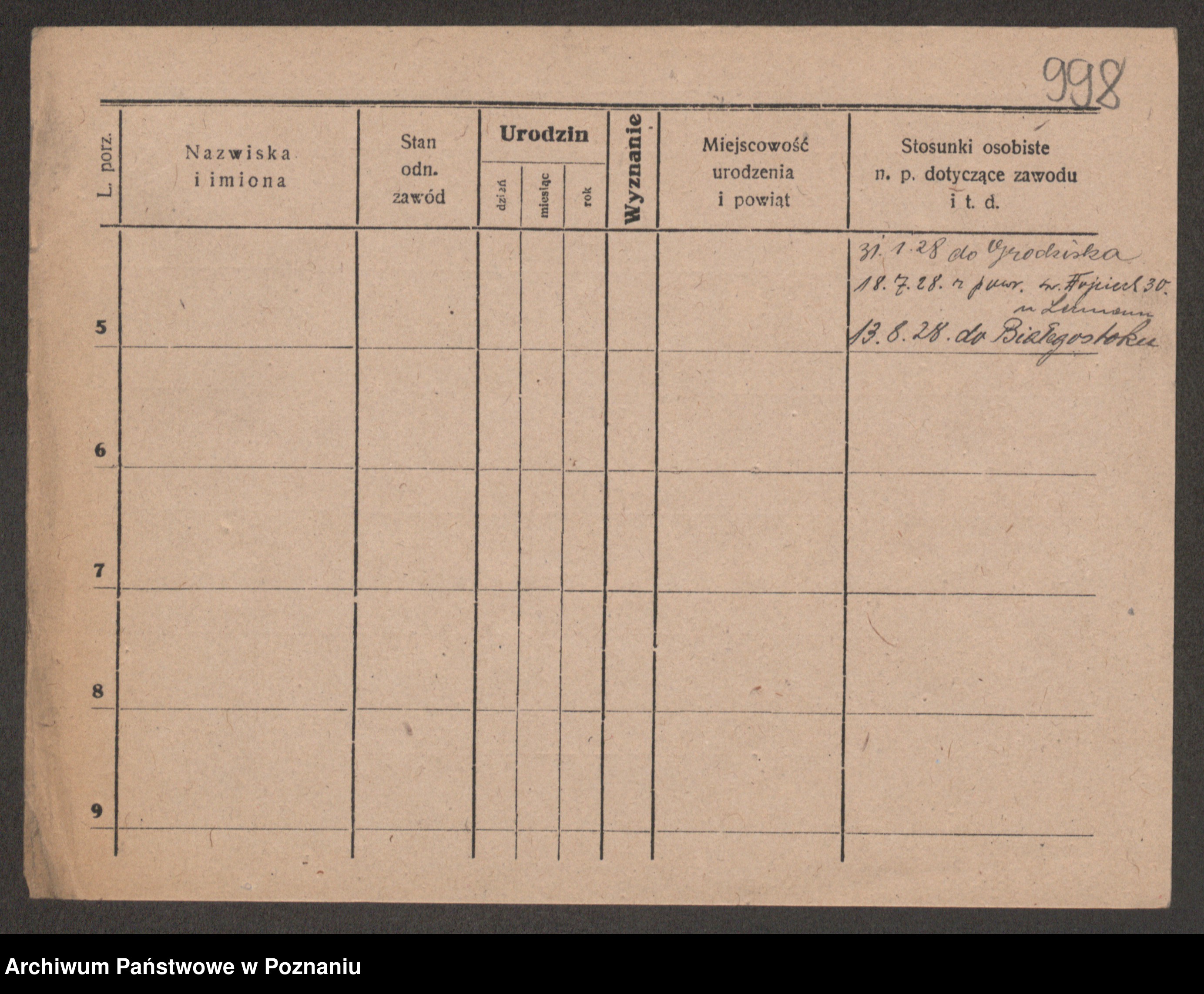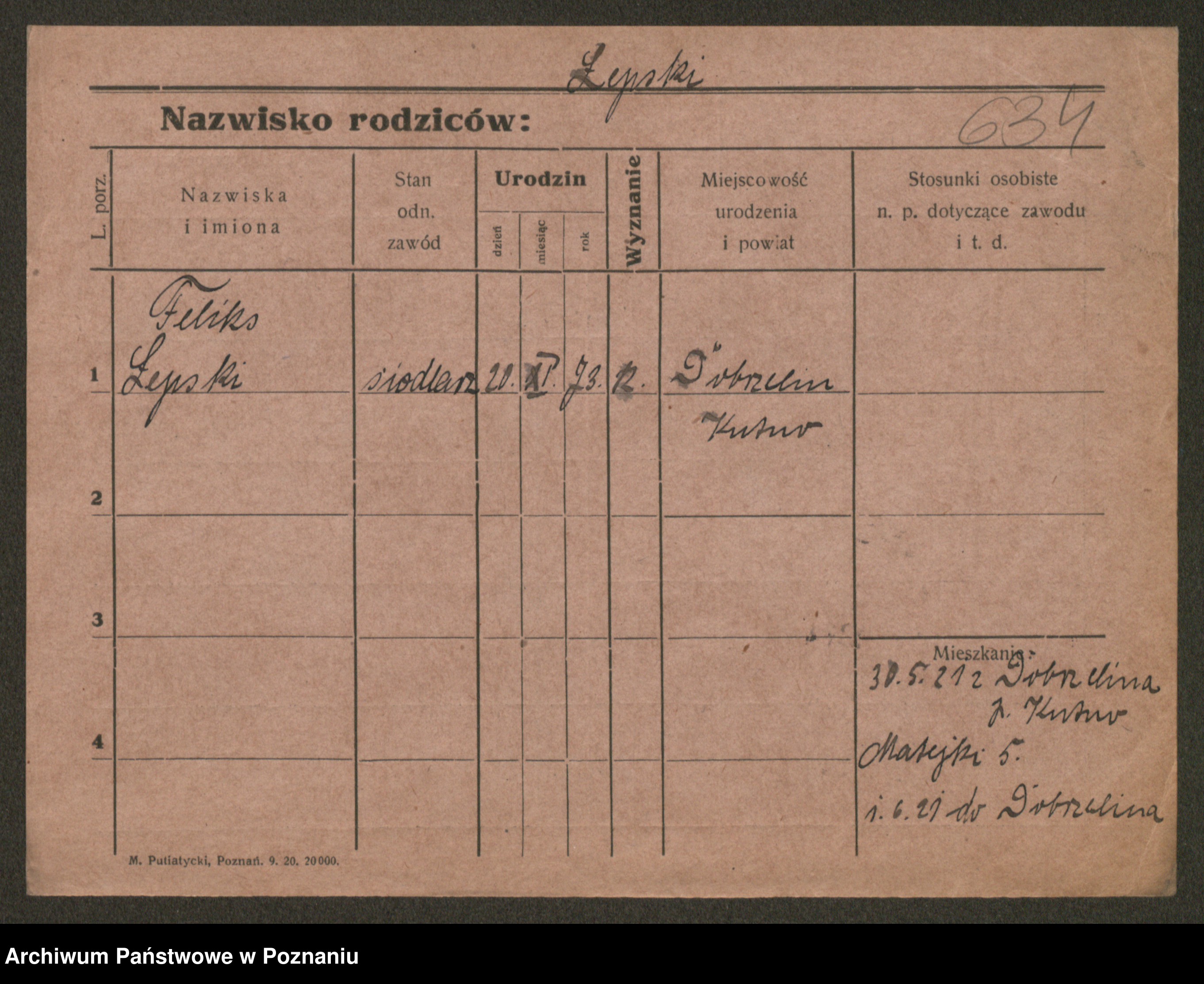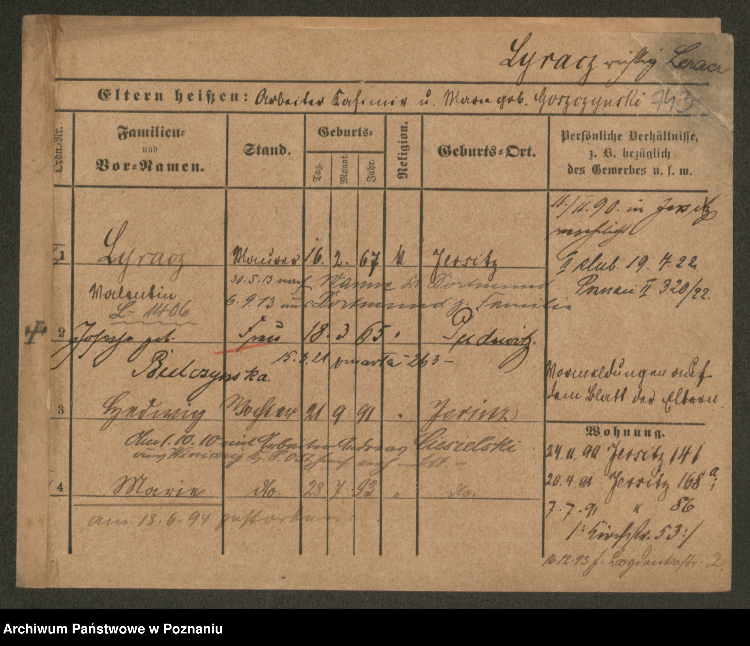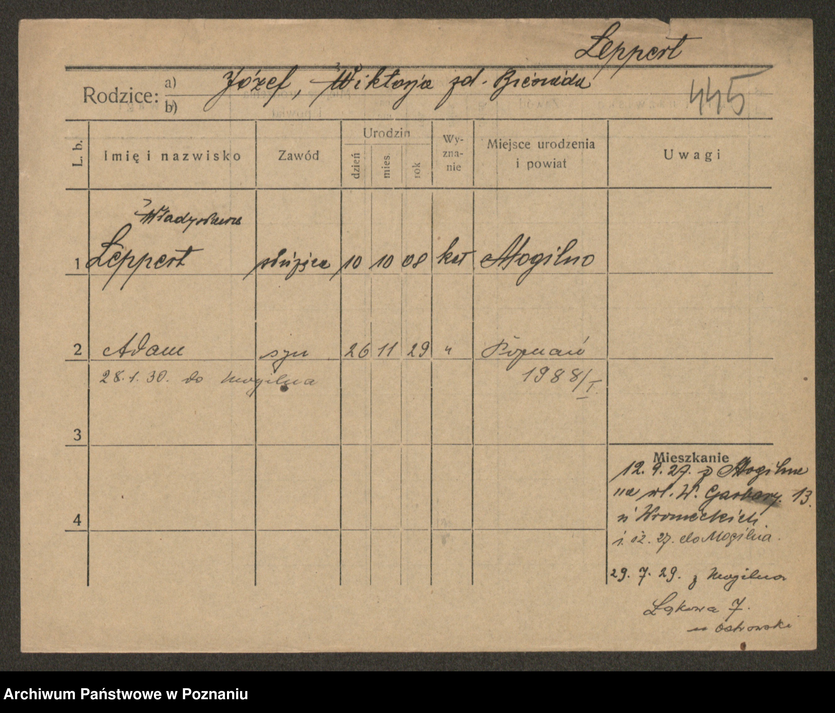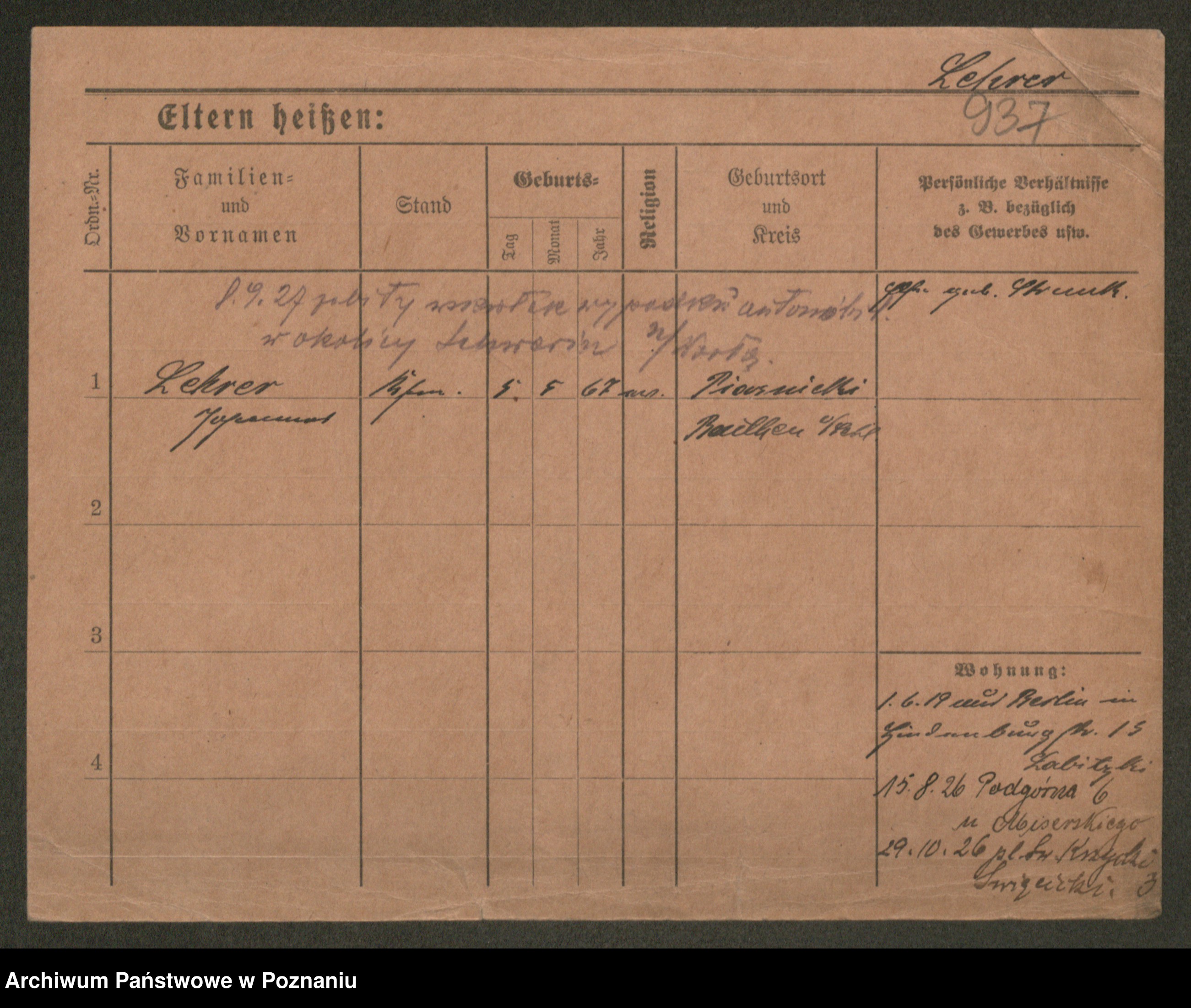 Podgląd karty osobowej dostępny jest po kliknięciu na nazwisko lub ikonkę karty. Można dokonywać powiększenia (ikony na górze) lub przechodzić między kolejnymi skanami (strzałki po bokach).