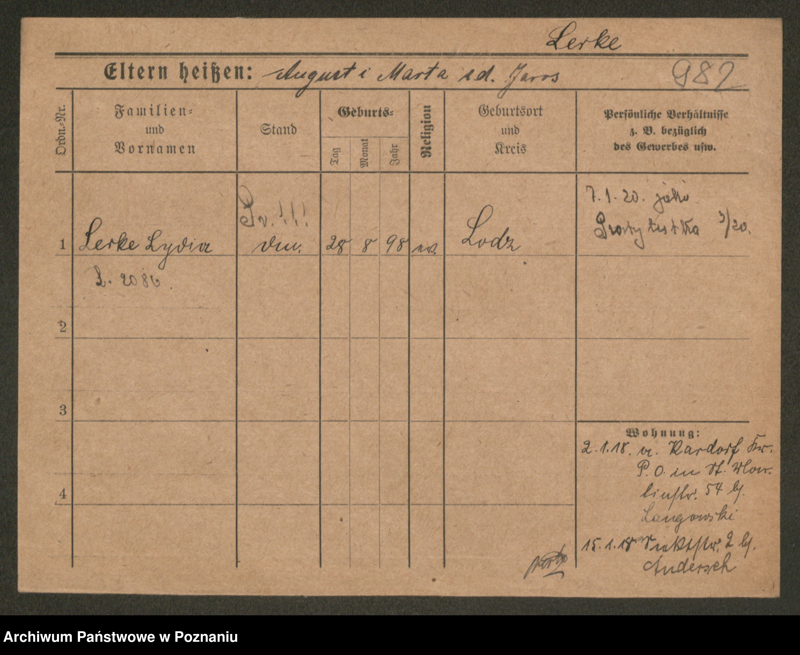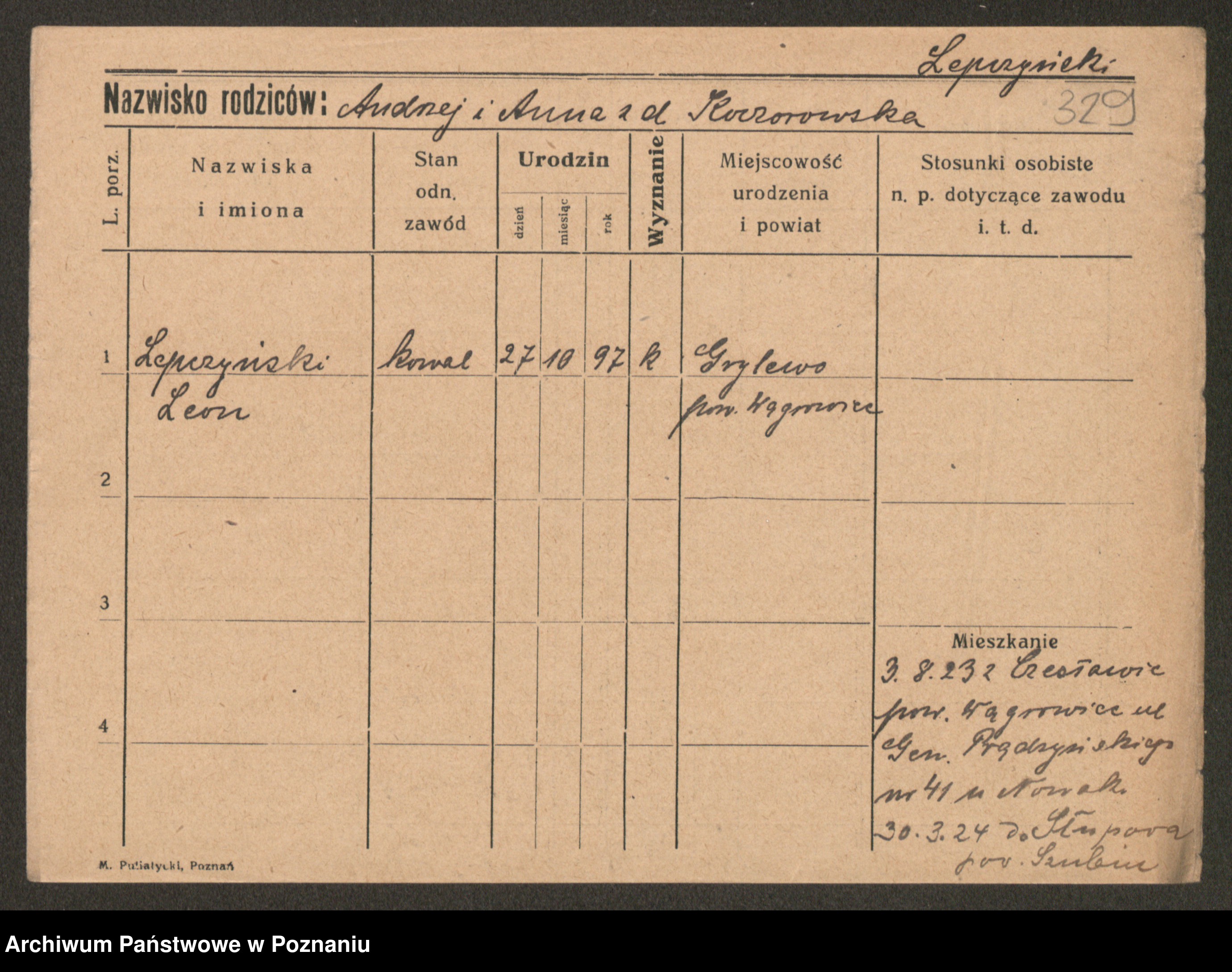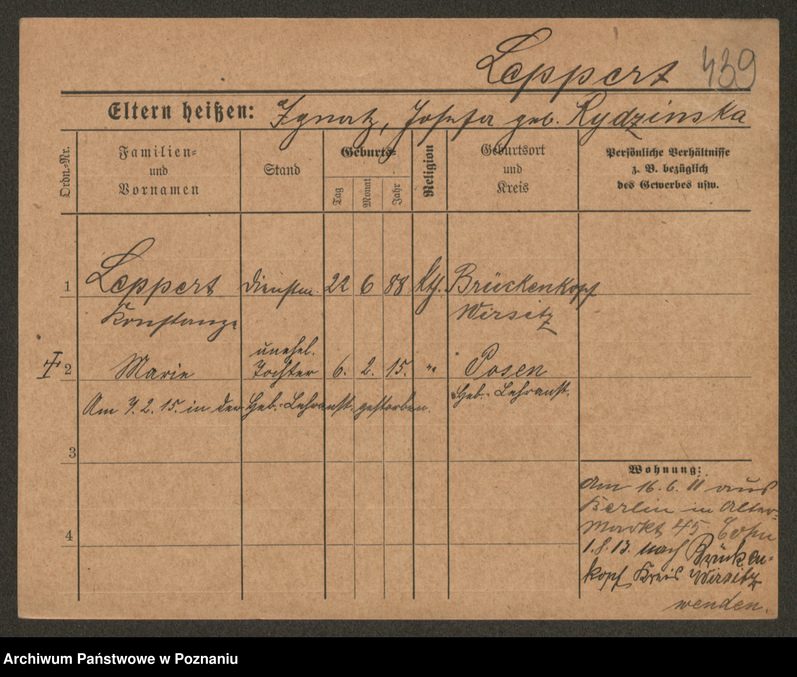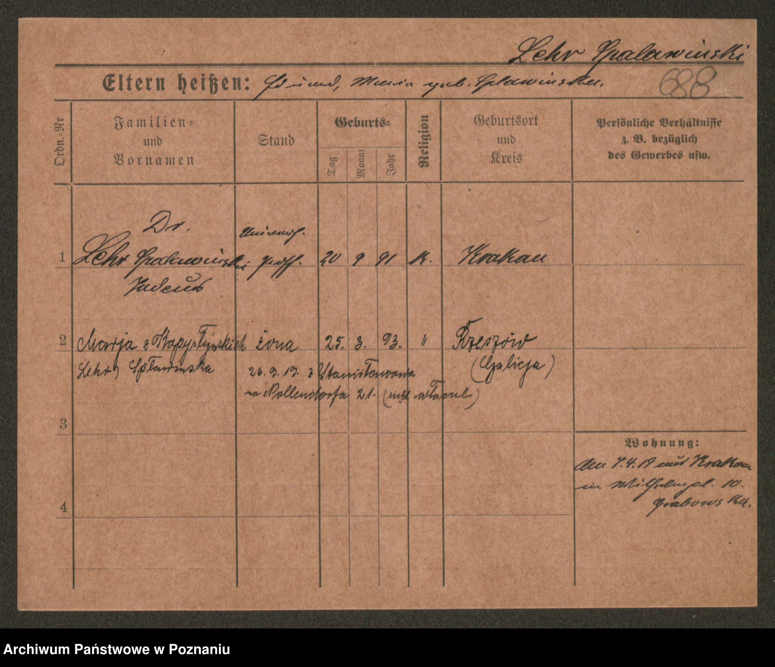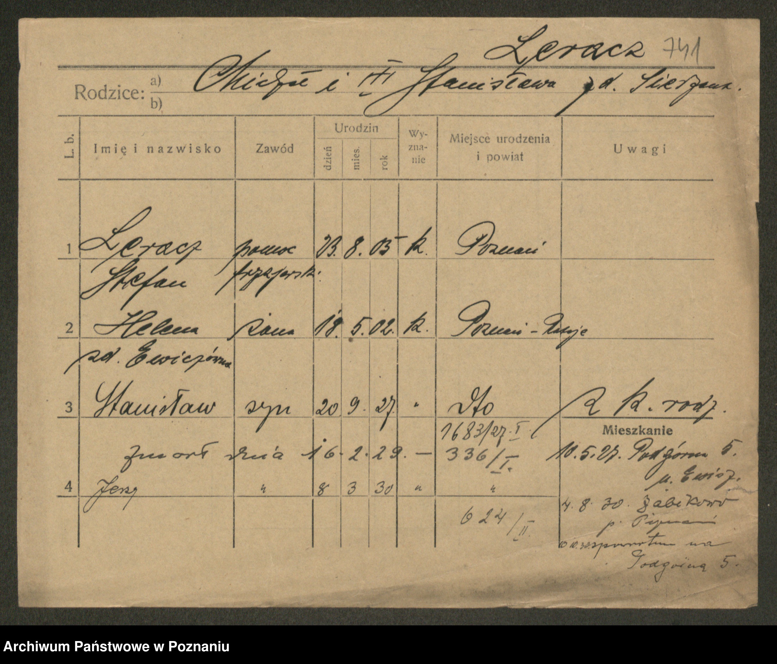 Podgląd karty osobowej dostępny jest po kliknięciu na nazwisko lub ikonkę karty. Można dokonywać powiększenia (ikony na górze) lub przechodzić między kolejnymi skanami (strzałki po bokach).